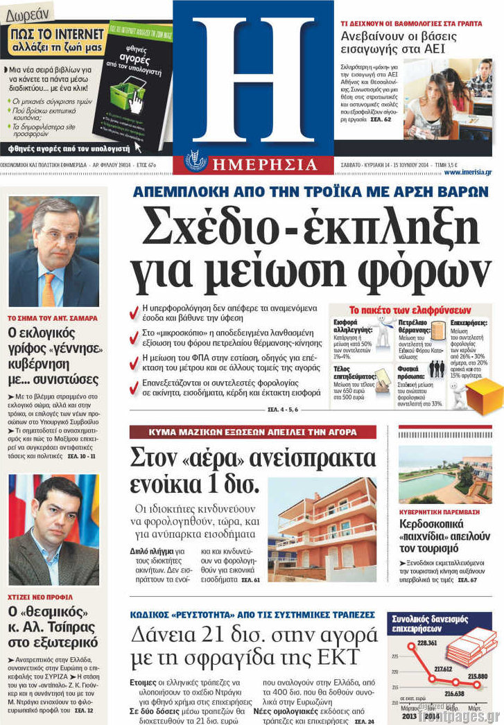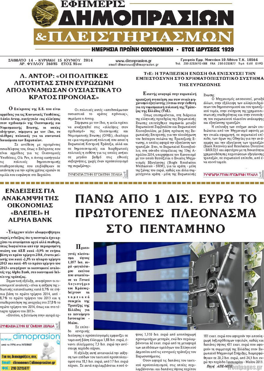 Οι οικονομικές εφημερίδες Enikos Newsroom 07:39, Σάββατο 14 Ιουνίου 2014 Media Οι οικονομικές εφημερίδες Διαβάστε τα πρωτοσέλιδα των οικονομικών εφημερίδων: ΟΙΚΟΝΟΜΙΚΕΣ ΕΦΗΜΕΡΙΔΕΣ ΠΡΩΤΟΣΕΛΙΔΑ Μοιράσου το: σχολίασε κι εσύ (0 σχόλια) Ακολουθήστε το enikos.gr στο Google News και μάθετε πρώτοι όλες τις ειδήσεις Δείτε όλες τις τελευταίες ειδήσεις από την Ελλάδα και τον Κόσμο στο enikos.gr Ειδήσεις Ροή Ειδήσεων 2 ώρες πριν Πούτιν: «Ανοησίες» και «υστερίες» οι ισχυρισμοί της Ευρώπης για πιθανή σύγκρουση με τη Ρωσία – «Κάνουν πλύση εγκεφάλου» 6 ώρες πριν Έρευνα MRB: Η πρόθεση ψήφου και τα σημαντικότερα προβλήματα – Οι «λέξεις» που εκφράζουν τους πολίτες 3 ώρες πριν Αμοργός: «Θα προσπαθήσω να το κάνω κάθε μέρα» – Ποιος είναι ο αγρότης που έστησε μόνος του το πρώτο μπλόκο στο νησί 52 λεπτά πριν Τραγωδία στην Αλεξανδρούπολη: Παιδάκι 3 ετών μεταφέρθηκε νεκρό από τη μητέρα του στο νοσοκομείο 2 ώρες πριν Συνάντηση Μητσοτάκη με την Κ.Ο. της ΝΔ: Οι αφίξεις των βουλευτών, τα γλυκά και τα «πηγαδάκια» 6 ώρες πριν Τα 4 ζώδια που ξαναβρίσκουν τον εαυτό τους – «Μπαίνετε επιτέλους στην ουσία των πραγμάτων» 7 ώρες πριν 20 χρόνια τα Χριστούγεννα ξεκινούν στα Public με μεγάλη ποικιλία σε δώρα! 5 ώρες πριν «Δεν είχα κλάψει από τότε που διαγνώστηκα με καρκίνο, ώσπου ένα τηλεφώνημα με έκανε να λυγίσω» – Η συγκλονιστική εξομολόγηση ενός άνδρα 4 ώρες πριν Τα 7 σπάνια χαρακτηριστικά που κάνουν κάποιους ανθρώπους ακαταμάχητους 6 λεπτά πριν Νέο επεισόδιο στην Εξεταστική ανάμεσα σε Κωνσταντοπούλου και Συρεγγέλα – Διακόπηκε προσωρινά η συνεδρίαση 13 λεπτά πριν Εξαφάνιση 33χρονου γιατρού στην Κρήτη: Για απάτη κατηγορείται ο ιδιωτικός ερευνητής που συνελήφθη 19 λεπτά πριν Εξεταστική για ΟΠΕΚΕΠΕ-Μυλωνάκης: Διαχρονικές, διακομματικές οι παθογένειες – Τι είπε για Μπουκώρο και Βάρρα 24 λεπτά πριν Παναθηναϊκός: Θέλει τον Κέπα της Άρσεναλ δανεικό για 6 μήνες 30 λεπτά πριν Το Λαϊκό Λαχείο στον ρυθμό των Χριστουγέννων: Μοιράζει μέχρι και 1.000.000 ευρώ στην ειδική κλήρωση της Παρασκευής 19 Δεκεμβρίου ENIKOS NETWORK 5 πράγματα που αποφεύγει γαστρεντερολόγος για να μειώσει τον κίνδυνο καρκίνου του εντέρου Ανησυχητική αύξηση της υπέρτασης στα παιδιά – Πώς θα τα προστατέψουμε; Συντάξεις Ιανουαρίου 2026: Σε ποιους θα πιστωθούν την Πέμπτη τα χρήματα και τι αυξήσεις θα δοθούν – Δείτε αναλυτικά παραδεί... ΕΛΕΤΑΕΝ: Πόσα χρήματα θα δοθούν σε δήμους και νοικοκυριά από τις ΑΠΕ Σύγχρονος Νοστράδαμος: Προειδοποιεί για «μεγάλο γεγονός» τους επόμενους μήνες που θα συγκλονίσει τη Βρετανία και τον κόσμο Τεστ παρατηρητικότητας: Μπορείτε να βρείτε τις 3 διαφορές στις εικόνες με έναν πιγκουίνο σε 14 δευτερόλεπτα περισσότερα 12:35 , Τετάρτη 17 Δεκεμβρίου 2025 Μίρκα Παπακωνσταντίνου: «Δεν ήμουν αισιόδοξη για τα νούμερα – Είμαι ρεαλίστρια» Στα γυρίσματα του εορταστικού επεισοδίου της αγαπημένης σειράς “Το Σόι Σου”, βρέθηκε η κάμερα ... 12:12 , Τετάρτη 17 Δεκεμβρίου 2025 Ακούστε την εκπομπή του Νίκου Χατζηνικολάου 17/12/2025 Ακούστε την εκπομπή του Νίκου Χατζηνικολάου στον ραδιοφωνικό σταθμό RealFm 97,8, την Τετάρτη 1... 11:35 , Τετάρτη 17 Δεκεμβρίου 2025 Home Alone: Το σπίτι της ταινίας θα ανακαινιστεί – Επιστροφή στην αισθητική της δεκαετίας του ’90 Οι νέοι ιδιοκτήτες του πραγματικού σπιτιού που παρουσιάζεται στην κλασική ταινία του 1990 «Hom... 11:25 , Τετάρτη 17 Δεκεμβρίου 2025 Grand Hotel: Απόψε το τελευταίο επεισόδιο της χρονιάς – Όλα τα μυστικά μένουν εδώ Το τελευταίο επεισόδιο της χρονιάς 