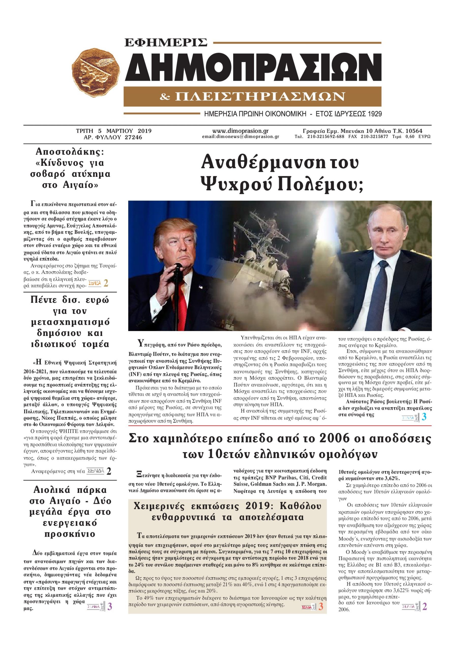 Οι οικονομικές εφημερίδες 5/3/19 Enikos Newsroom 06:51, Τρίτη 05 Μαρτίου 2019 Media Διαβάστε τα πρωτοσέλιδα των οικονομικών εφημερίδων: ΟΙΚΟΝΟΜΙΚΕΣ ΕΦΗΜΕΡΙΔΕΣ ΠΡΩΤΟΣΕΛΙΔΑ Μοιράσου το: σχολίασε κι εσύ (0 σχόλια) Ακολουθήστε το enikos.gr στο Google News και μάθετε πρώτοι όλες τις ειδήσεις Δείτε όλες τις τελευταίες ειδήσεις από την Ελλάδα και τον Κόσμο στο enikos.gr Ειδήσεις Ροή Ειδήσεων 45 λεπτά πριν Ευρωπαϊκή Ένωση: Χωρίς συμφωνία, για την μακροπρόθεσμη χρηματοδότηση της Ουκρανίας, ολοκληρώθηκε η Σύνοδος Κορυφής στις Βρυξέλλες 4 ώρες πριν ΟΠΕΚΕΠΕ: Προφυλακιστέος ο φερόμενος αρχηγός και ο λογιστής της εγκληματικής οργάνωσης 5 ώρες πριν Αυξάνουν την πίεση προς την κυβέρνηση οι αγρότες: Κλείνουν παρακαμπτήριους και ανοίγουν διόδια – Τι θα γίνει τις γιορτές 5 ώρες πριν Φοινικούντα: Το Σάββατο απολογείται ο 30χρονος γιος γνωστού επιχειρηματία της Πλάκας που παραδόθηκε – Όσα είπε στους αστυνομικούς και ο ρόλος του στο έγκλημα 4 ώρες πριν ΑΕΚ – Κραϊόβα 3-2: Επική ανατροπή και πρόκριση στους «16» του Conference League η Ένωση 5 ώρες πριν Αρχαιολόγοι ανακάλυψαν ρωμαϊκά τεχνουργήματα από μια πόλη που δεν υπήρξε ποτέ – Τα τρία εντυπωσιακά κτίρια και ο αμφορέας με τις… σαρδέλες 6 ώρες πριν Ύπνος: Η απλή βραδινή ρουτίνα για να προστατεύσετε τα μαλλιά σας από το κρύο κατά τη διάρκεια του χειμώνα 7 ώρες πριν Manifesting: Πώς να συναντήσετε τον σύντροφο της ζωής σας, ανάλογα με τον μήνα γέννησής σας 2 ημέρες πριν 20 χρόνια τα Χριστούγεννα ξεκινούν στα Public με μεγάλη ποικιλία σε δώρα! 1 λεπτό πριν Στη Φλόριντα σήμερα οι διαβουλεύσεις σχετικά με τα επόμενα στάδια για τη Λωρίδα της Γάζας 6 λεπτά πριν Σίσσυ Τουμάση: «Είμαι ασθενοφοβική πάρα πολύ και με πιάνει μια παράνοια μ’ αυτό» 30 λεπτά πριν Ντόναλντ Τραμπ: Δεν χρειάζομαι την έγκριση του Κογκρέσου για να διατάξω στρατιωτικά πλήγματα στη Βενεζουέλα 45 λεπτά πριν Ευρωπαϊκή Ένωση: Χωρίς συμφωνία, για την μακροπρόθεσμη χρηματοδότηση της Ουκρανίας, ολοκληρώθηκε η Σύνοδος Κορυφής στις Βρυξέλλες 1 ώρα πριν GNTM: «Κλείδωσαν» οι τέσσερις φιναλίστ – Μεγάλη ανατροπή στις τελευταίες αποχωρήσεις ENIKOS NETWORK Σε περίοδο αυξημένης δραστηριότητας η γρίπη στην Ελλάδα-Μέτρα προστασίας από τον ΕΟΔΥ Σκέφτεστε συνέχεια συζητήσεις που έχετε κάνει; Τι σημαίνει αυτό, σύμφωνα με ειδικό Στεγαστικό: Τι λέει η ΠΟΜΙΔΑ για τα νέα μέτρα που ανακοίνωσε ο Κυριάκος Μητσοτάκης Λαγκάρντ: Αισιόδοξη για την ανάπτυξη της Ευρωζώνης, αβέβαιη για τον πληθωρισμό Χαρτογραφώντας το «σημείο χωρίς επιστροφή»: Για πρώτη φορά αποκαλύπτεται με λεπτομέρεια το ακανθώδες όριο της ατμόσφαιρας τ... Η Google καταργεί τη λειτουργία «dark web report» – Πώς θα μπορούν οι χρήστες να διαγράφουν τα δεδομένα τους περισσότερα 02:50 , Παρασκευή 19 Δεκεμβρίου 2025 GNTM: «Κλείδωσαν» οι τέσσερις φιναλίστ – Μεγάλη ανατροπή στις τελευταίες αποχωρήσεις Για προτελευταία φορά εμφανίστηκαν στο πλατό του GNTM οι φιναλίστ του φετινού κύκλου, το βράδυ... 17:45 , Πέμπτη 18 Δεκεμβρίου 2025 ROUK ZOUK: Εορταστικό επεισόδιο με καλεσμένους τους πρωταγωνιστές του «Γιατί ρε πατέρα» Το Σάββατο 20 Δεκεμβρίου στις 21:00, η Ζέτα Μακρυπούλια υποδέχεται εκλεκτούς ηθοποιούς που όλο... 17:20 , Πέμπτη 18 Δεκεμβρίου 2025 Άγιος έρωτας: Η Χριστίνα εξομολογείται στον πατέρα Νικόλαο, απόψε στις 21:00 στον Alpha Η Νότα αποφασίζει να εκδικηθεί τον Πέτρο και τον Στέφανο, για χάρη του Λούη, όμως τα πράγματα ... 16:50 , Πέμπτη 18 Δεκεμβρίου 2025 Να μ’ αγαπάς: Ζωή και Φωτεινή συμφιλιώνονται ως μάνα με κόρη, α