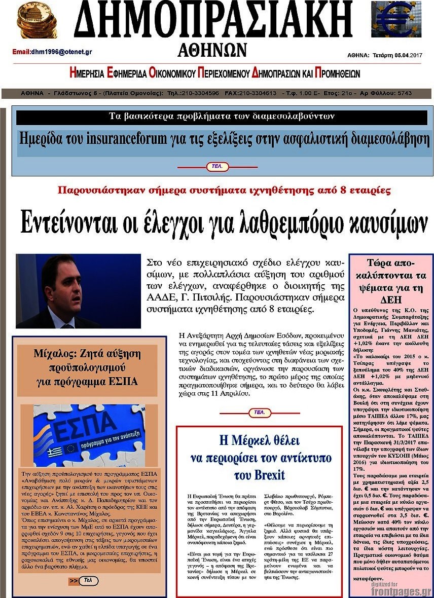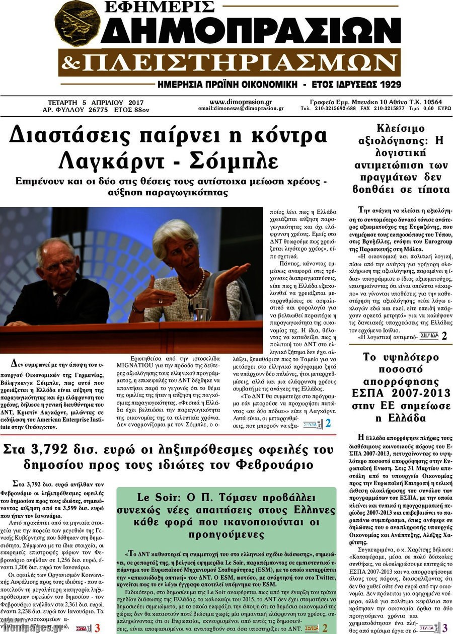 Οι οικονομικές εφημερίδες 5/4/2017 Enikos Newsroom 07:39, Τετάρτη 05 Απριλίου 2017 Media Διαβάστε τα σημερινά πρωτοσέλιδα των οικονομικών εφημερίδων: ΟΙΚΟΝΟΜΙΚΕΣ ΕΦΗΜΕΡΙΔΕΣ ΠΡΩΤΟΣΕΛΙΔΑ Μοιράσου το: σχολίασε κι εσύ (0 σχόλια) Ακολουθήστε το enikos.gr στο Google News και μάθετε πρώτοι όλες τις ειδήσεις Δείτε όλες τις τελευταίες ειδήσεις από την Ελλάδα και τον Κόσμο στο enikos.gr Ειδήσεις Ροή Ειδήσεων 5 ώρες πριν Εκτός ευρωομάδας ΣΥΡΙΖΑ ο Νίκος Παππάς μετά την επίθεση στον δημοσιογράφο Νίκο Γιαννόπουλο – Η μήνυση και οι νέες δηλώσεις 5 ώρες πριν «Αγριεύουν» οι αγρότες: «Δεν συντρέχει λόγος συνάντησης με τον πρωθυπουργό» – Ώρα αποφάσεων στη σύσκεψη της Πέμπτης 5 ώρες πριν Κυψέλη: Χωρίς την οικογένειά της δίπλα της απολογήθηκε η 16χρονη – «Της είχε επιτεθεί κάποιος για να την βιάσει, φοβήθηκε και κυκλοφορούσε με μαχαίρι» 4 ώρες πριν Politico: Το πρόβλημα της Ευρώπης δεν είναι το Βέλγιο αλλά ο Ντόναλντ Τραμπ 6 ώρες πριν Αλεξανδρούπολη: Πολυοργανική ανεπάρκεια λόγω υποσιτισμού η αιτία θανάτου του 3χρονου αγοριού 5 ώρες πριν Μυστήριο με τεράστιες κυκλικές πέτρες 200 κιλών – Ανακαλύφθηκαν τυχαία κατά τη διάρκεια οδικών έργων και κανείς δεν ξέρει από πού προέρχονται 6 ώρες πριν Ύπνος: Ειδικός εξηγεί τον πραγματικό λόγο που ξυπνάτε στις 4 τα ξημερώματα – Ο ρόλος των ορμονών και του κιρκάδιου ρυθμού 7 ώρες πριν Αριθμολογία: Οι άνθρωποι που έχουν γεννηθεί αυτές τις 4 ημερομηνίες, είναι τρυφεροί και αγαπούν ανιδιοτελώς 18 ώρες πριν 20 χρόνια τα Χριστούγεννα ξεκινούν στα Public με μεγάλη ποικιλία σε δώρα! 15 λεπτά πριν Αμερικανικά στρατεύματα στον Ισημερινό για «προσωρινή» επιχείρηση κατά των ναρκωτικών 30 λεπτά πριν Βραζιλία: Το Κογκρέσο ενέκρινε σχέδιο νόμου για τη μείωση της ποινής του πρώην προέδρου Μπολσονάρου 45 λεπτά πριν Ένταση στο περιφερειακό συμβούλιο Δυτικής Μακεδονίας: Φωνές, σπρωξιές και διακοπή – Δείτε βίντεο 59 λεπτά πριν Σουδάν: Επιδρομή drone σε χωριό του Νότιου Κορντοφάν – Οκτώ νεκροί 1 ώρα πριν Αλ Τσαντίρι Νιουζ: Η κόρη της Πάολα στο κοινό – Η ατάκα Λαζόπουλου που την έκανε να «κοκκινήσει» ENIKOS NETWORK Αϋπνία: Το κόλπο που θα σας βοηθήσει να κοιμηθείτε απόψε – Είναι απλό και έχει αποτέλεσμα 2,6 εκατομμύρια πολίτες έχουν ήδη εμβολιαστεί κατά της γρίπης ΕΛΣΤΑΤ: Τι δείχνουν τα νέα στοιχεία για τις ηλεκτρονικές παραγγελίες των επιχειρήσεων ΚΕΠΕ: Οι 3 διακριτές συμβολές των ΜμΕ και της μεταποίησης στην ελληνική οικονομία Χαρτογραφώντας το «σημείο χωρίς επιστροφή»: Για πρώτη φορά αποκαλύπτεται με λεπτομέρεια το ακανθώδες όριο της ατμόσφαιρας τ... Η Google καταργεί τη λειτουργία «dark web report» – Πώς θα μπορούν οι χρήστες να διαγράφουν τα δεδομένα τους περισσότερα 02:30 , Πέμπτη 18 Δεκεμβρίου 2025 Αλ Τσαντίρι Νιουζ: Η κόρη της Πάολα στο κοινό – Η ατάκα Λαζόπουλου που την έκανε να «κοκκινήσει» Γιορτινή διάθεση και ευχάριστες στιγμές γέμισε η αποψινή, τελευταία για το 2025, εκπομπή του «... 22:24 , Τετάρτη 17 Δεκεμβρίου 2025 Το Σπίτι Δίπλα Στο Ποτάμι: Σε κίνδυνο η υγεία του Απόστολου – Τι θα δούμε απόψε “Το Σπίτι Δίπλα στο Ποτάμι” ξετυλίγει το νήμα της ζωής των πέντε αδελφών με καταισ... 21:14 , Τετάρτη 17 Δεκεμβρίου 2025 Παιχνίδια Εκδίκησης: Θα καταφέρει ο Χρήστος να κλονίσει την εμπιστοσύνη της Μάγιας απέναντι στον Άγη; Τα «Παιχνίδια Εκδίκησης» έρχονται απόψε στις 22:30, στον Αντ1, με το τελευταίο επεισόδιο της χ... 20:57 , Τετάρτη 17 Δεκεμβρίου 2025 Άγιος Έρωτας: Η Χλόη καταθέτει εναντίον του πατέρα της και ο Χάρης αποκαλύπτ