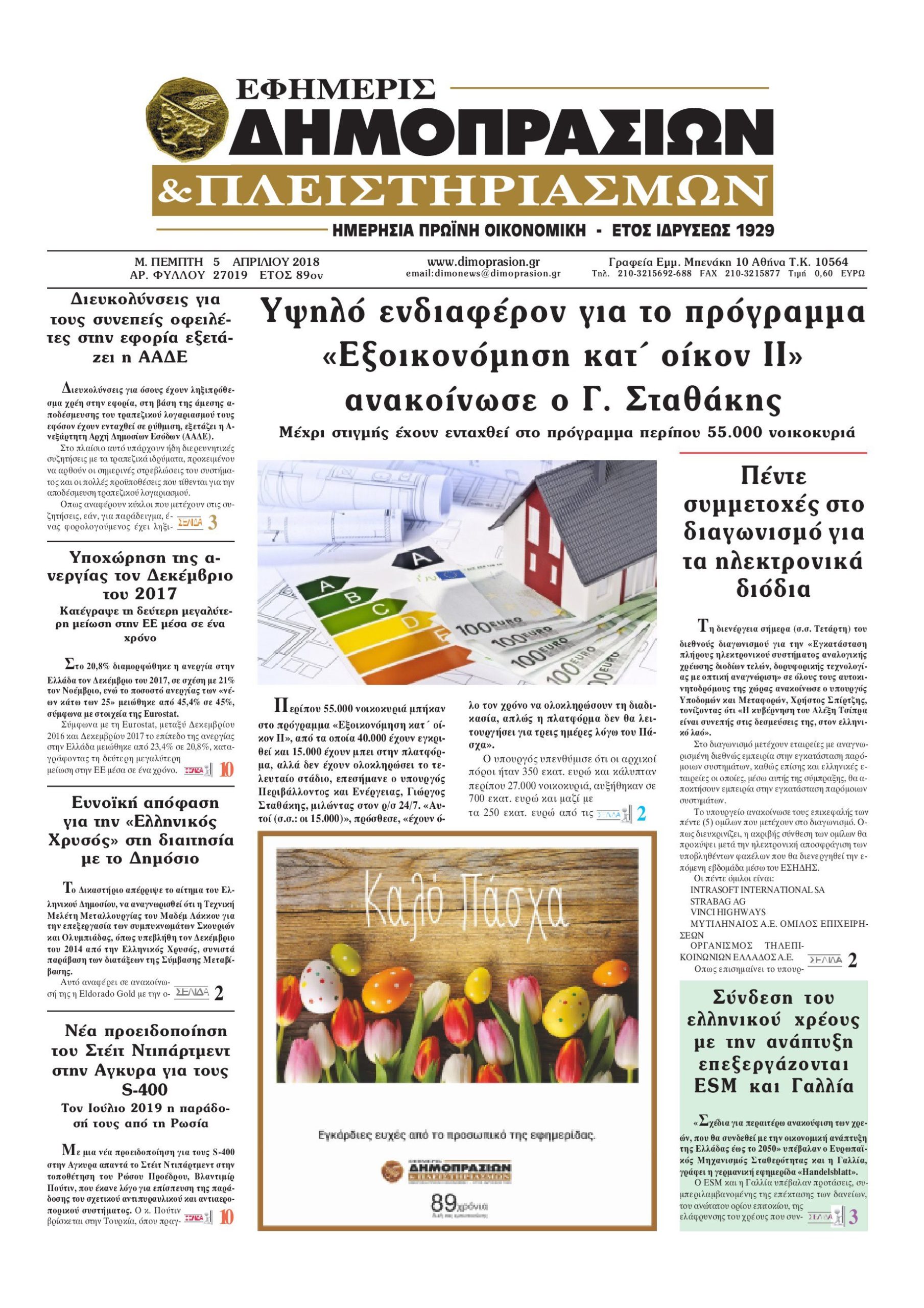 Οι οικονομικές εφημερίδες 5/4/2018 Enikos Newsroom 07:13, Πέμπτη 05 Απριλίου 2018 Media Διαβάστε τα σημερινά πρωτοσέλιδα των οικονομικών εφημερίδων: ΟΙΚΟΝΟΜΙΚΕΣ ΕΦΗΜΕΡΙΔΕΣ ΠΡΩΤΟΣΕΛΙΔΑ Μοιράσου το: σχολίασε κι εσύ (0 σχόλια) Ακολουθήστε το enikos.gr στο Google News και μάθετε πρώτοι όλες τις ειδήσεις Δείτε όλες τις τελευταίες ειδήσεις από την Ελλάδα και τον Κόσμο στο enikos.gr Ειδήσεις Ροή Ειδήσεων 1 ώρα πριν Αυξάνουν την πίεση προς την κυβέρνηση οι αγρότες: Κλείνουν παρακαμπτήριους και ανοίγουν διόδια – Τι θα γίνει τις γιορτές 16 λεπτά πριν ΟΠΕΚΕΠΕ: Προφυλακιστέος ο φερόμενος αρχηγός και ο λογιστής της εγκληματικής οργάνωσης 1 ώρα πριν Φοινικούντα: Το Σάββατο απολογείται ο 30χρονος γιος γνωστού επιχειρηματία της Πλάκας που παραδόθηκε – Όσα είπε στους αστυνομικούς και ο ρόλος του στο έγκλημα 57 λεπτά πριν Μπορεί ο Μαδούρο να αντέξει τον αποκλεισμό του Τραμπ; Τι θα χρειαστεί η Ουάσινγκτον για να τον ανατρέψει 2 ώρες πριν Πρίγκιπας Ουίλιαμ – Κέιτ: Η νέα οικογενειακή φωτογραφία για τις Χριστουγεννιάτικες κάρτες του 2025 2 ώρες πριν Ύπνος: Η απλή βραδινή ρουτίνα για να προστατεύσετε τα μαλλιά σας από το κρύο κατά τη διάρκεια του χειμώνα 3 ώρες πριν Manifesting: Πώς να συναντήσετε τον σύντροφο της ζωής σας, ανάλογα με τον μήνα γέννησής σας 2 ημέρες πριν 20 χρόνια τα Χριστούγεννα ξεκινούν στα Public με μεγάλη ποικιλία σε δώρα! 1 ώρα πριν Αρχαιολόγοι ανακάλυψαν ρωμαϊκά τεχνουργήματα από μια πόλη που δεν υπήρξε ποτέ – Τα τρία εντυπωσιακά κτίρια και ο αμφορέας με τις… σαρδέλες 16 λεπτά πριν ΟΠΕΚΕΠΕ: Προφυλακιστέος ο φερόμενος αρχηγός και ο λογιστής της εγκληματικής οργάνωσης 26 λεπτά πριν Αθηνά Μαξίμου: Η τρυφερή ανάρτηση για τα γενέθλια του Αιμίλιου Χειλάκη – «Είναι η εκλεκτική συγγένειά μου, η επιλογή και η ευθύνη μου» 42 λεπτά πριν Παναθηναϊκός – Χάποελ Τελ Αβίβ 93-82: Με… φόρα από την Κωνσταντινούπολη 57 λεπτά πριν Μπορεί ο Μαδούρο να αντέξει τον αποκλεισμό του Τραμπ; Τι θα χρειαστεί η Ουάσινγκτον για να τον ανατρέψει 1 ώρα πριν Αρχαιολόγοι ανακάλυψαν ρωμαϊκά τεχνουργήματα από μια πόλη που δεν υπήρξε ποτέ – Τα τρία εντυπωσιακά κτίρια και ο αμφορέας με τις… σαρδέλες ENIKOS NETWORK Σε περίοδο αυξημένης δραστηριότητας η γρίπη στην Ελλάδα-Μέτρα προστασίας από τον ΕΟΔΥ Σκέφτεστε συνέχεια συζητήσεις που έχετε κάνει; Τι σημαίνει αυτό, σύμφωνα με ειδικό Στεγαστικό: Τι λέει η ΠΟΜΙΔΑ για τα νέα μέτρα που ανακοίνωσε ο Κυριάκος Μητσοτάκης Λαγκάρντ: Αισιόδοξη για την ανάπτυξη της Ευρωζώνης, αβέβαιη για τον πληθωρισμό Χαρτογραφώντας το «σημείο χωρίς επιστροφή»: Για πρώτη φορά αποκαλύπτεται με λεπτομέρεια το ακανθώδες όριο της ατμόσφαιρας τ... Η Google καταργεί τη λειτουργία «dark web report» – Πώς θα μπορούν οι χρήστες να διαγράφουν τα δεδομένα τους περισσότερα 17:45 , Πέμπτη 18 Δεκεμβρίου 2025 ROUK ZOUK: Εορταστικό επεισόδιο με καλεσμένους τους πρωταγωνιστές του «Γιατί ρε πατέρα» Το Σάββατο 20 Δεκεμβρίου στις 21:00, η Ζέτα Μακρυπούλια υποδέχεται εκλεκτούς ηθοποιούς που όλο... 17:20 , Πέμπτη 18 Δεκεμβρίου 2025 Άγιος έρωτας: Η Χριστίνα εξομολογείται στον πατέρα Νικόλαο, απόψε στις 21:00 στον Alpha Η Νότα αποφασίζει να εκδικηθεί τον Πέτρο και τον Στέφανο, για χάρη του Λούη, όμως τα πράγματα ... 16:50 , Πέμπτη 18 Δεκεμβρίου 2025 Να μ’ αγαπάς: Ζωή και Φωτεινή συμφιλιώνονται ως μάνα με κόρη, απόψε στις 20:00 Η ταυτότητα του Άγγελου αποκαλύπτεται στο νέο επεισόδιο της σειράς “Να μ’ αγαπάς... 15:52 , Πέμπτη 18 Δεκεμβρίου 2025 Το Σπίτι Δίπλα Στο Ποτάμι: Το καθηλωτικ