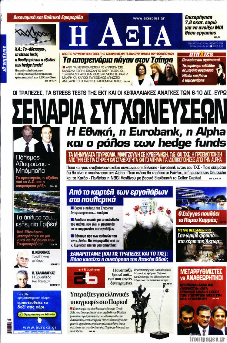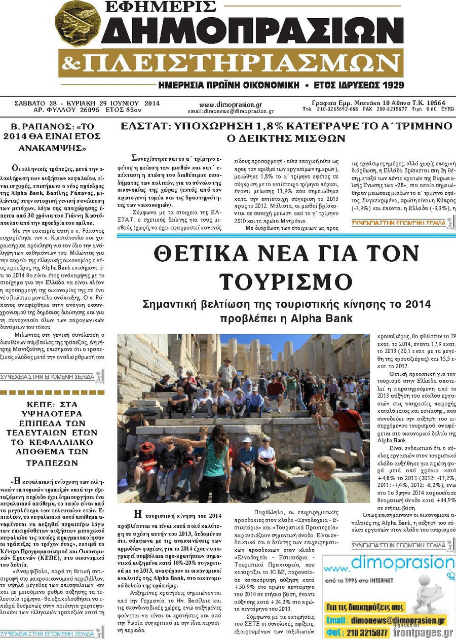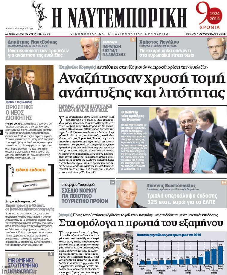 Οι οικονομικές εφημερίδες Enikos Newsroom 07:35, Σάββατο 28 Ιουνίου 2014 Media Οι οικονομικές εφημερίδες Διαβάστε τα πρωτοσέλιδα των οικονομικών εφημερίδων… ΟΙΚΟΝΟΜΙΚΕΣ ΕΦΗΜΕΡΙΔΕΣ ΠΡΩΤΟΣΕΛΙΔΑ Μοιράσου το: σχολίασε κι εσύ (0 σχόλια) Ακολουθήστε το enikos.gr στο Google News και μάθετε πρώτοι όλες τις ειδήσεις Δείτε όλες τις τελευταίες ειδήσεις από την Ελλάδα και τον Κόσμο στο enikos.gr Ειδήσεις Ροή Ειδήσεων 8 ώρες πριν Μητσοτάκης: Αναγκαία η μεταρρύθμιση του πρωτογενούς τομέα – Τα 6 νέα μέτρα για το στεγαστικό και οι αναφορές σε «Ιθάκη» και «πολιτικούς του καναπέ» 7 ώρες πριν Δάνεια σε ελβετικό φράγκο: Τα βασικά σημεία της ρύθμισης – ανάσας για 40.000 δανειολήπτες – Αναλυτικός οδηγός με ερωτήσεις και απαντήσεις 7 ώρες πριν Κυψέλη: Εξιτήριο πήρε η 14χρονη μαθήτρια που μαχαιρώθηκε από την 16χρονη σε σχολείο – «Θέλω να βοηθήσω το παιδί, έχει μπλέξει με κακές παρέες» 6 ώρες πριν Τραμπ: Γιατί κατέθεσε τώρα την αγωγή κατά του BBC – Πώς η κίνησή του εξυπηρετεί το νέο δόγμα του για «αντίσταση» στην Ευρώπη, υπέρ των συντηρητικών 7 ώρες πριν ΟΠΕΚΕΠΕ – Παράνομες επιδοτήσεις: Ελεύθεροι με περιοριστικούς όρους και οι 7 κατηγορούμενοι που απολογήθηκαν σήμερα 6 ώρες πριν Ανακαλύφθηκε βυθισμένη πέτρινη κατασκευή ανοιχτά της Κριμαίας – Αποτελεί μέρος αρχαίας ελληνικής αποικίας 7 ώρες πριν Ύπνος: Αυτό μπορεί να είναι το χειρότερο λάθος για το βιολογικό ρολόι σας, σύμφωνα με ειδικό 8 ώρες πριν Αριθμολογία: Οι άνθρωποι που έχουν γεννηθεί αυτές τις 3 ημερομηνίες, προσελκύουν μεγάλη τύχη πριν από το τέλος του 2025 10 ώρες πριν Οι 7 συμπεριφορές που μαρτυρούν ότι ένας άνδρας επενδύει μακροπρόθεσμα σε μια σχέση 6 λεπτά πριν Εφημερεύοντα φαρμακεία σε Αθήνα και Θεσσαλονίκη (17/12) 12 λεπτά πριν Κόστα Ρίκα: Το Κογκρέσο απέρριψε το αίτημα για άρση της ασυλίας του προέδρου Τσάβες 20 λεπτά πριν Κολομβία: Νεκροί τέσσερις αστυνομικοί σε βομβιστικές επιθέσεις ανταρτών 28 λεπτά πριν Στάση εργασίας 11:00 – 17:00 σήμερα στα λεωφορεία του ΟΑΣΑ – Ποιες γραμμές θα λειτουργήσουν 44 λεπτά πριν Παλαιστινιακό: «Η λύση των δύο κρατών είναι ο μόνος βιώσιμος δρόμος», τόνισε η Ελλάδα στο Συμβούλιο Ασφαλείας του ΟΗΕ ENIKOS NETWORK Αίτημα ΙΣΑ για την εξαίρεση των προσωπικών γιατρών από τις κατ’ οίκον επισκέψεις Η σκανδιναβική μέθοδος στον ύπνο που μπορεί να σώσει έναν γάμο Πιερρακάκης: Ο προϋπολογισμός συμβάλλει ουσιαστικά στην ενίσχυση της αγοραστικής δύναμης της πλειονότητας των εργαζομένων e-ΕΦΚΑ: Παρατείνεται η προθεσμία για την υποβολή ΑΠΔ – Ποιους αφορά Σύγχρονος Νοστράδαμος: Προειδοποιεί για «μεγάλο γεγονός» τους επόμενους μήνες που θα συγκλονίσει τη Βρετανία και τον κόσμο Τεστ παρατηρητικότητας: Μπορείτε να βρείτε τις 3 διαφορές στις εικόνες με έναν πιγκουίνο σε 14 δευτερόλεπτα περισσότερα 20:06 , Τρίτη 16 Δεκεμβρίου 2025 Ο ΣΚΑΙ καταγγέλλει τον ΕΚΚΟΜΕΔ Επιστολή με την οποία καταγράφει την έντονη διαμαρτυρία του προς τον διευθύνοντα σύμβουλο του... 17:40 , Τρίτη 16 Δεκεμβρίου 2025 Eurovision: Στις 4 Ιανουαρίου αποκαλύπτονται τα 28 τραγούδια του ελληνικού τελικού Η αγωνία τελειώνει, η γιορτή της Eurovision αρχίζει στην ΕΡΤ από τις πρώτες ημέρες της νέας χρ... 17:09 , Τρίτη 16 Δεκεμβρίου 2025 Alter Ego Media: Βαθύτατη θλίψη και ειλικρινή συλλυπητήρια για την απώλεια της Ειρήνης Μαρινάκη Τη βαθύτατη θλίψη και τα ειλικρινή συλλυπητήριά της εκφράζει η Alter Ego Media για τον θάνατο ... 13:00 , Τρίτη 16 Δεκεμβρίου 2025 «Στο Παρά Πέντε – 20 Χρόνια Μετά»: Κυκλοφόρησε το τρέιλερ του ε