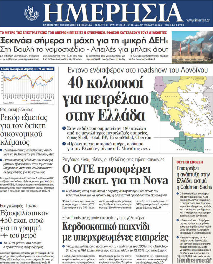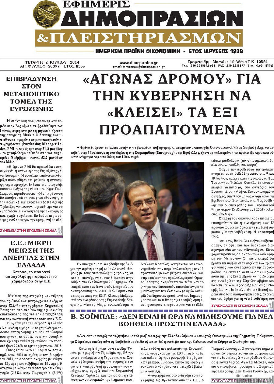 Οι oικονομικές εφημερίδες Enikos Newsroom 08:28, Τετάρτη 02 Ιουλίου 2014 Media Οι oικονομικές εφημερίδες Διαβάστε τα πρωτοσέλιδα των οικονομικών εφημερίδων: ΕΦΗΜΕΡΙΔΕΣ ΟΙΚΟΝΟΜΙΚΕΣ ΕΦΗΜΕΡΙΔΕΣ ΠΡΩΤΟΣΕΛΙΔΑ Μοιράσου το: σχολίασε κι εσύ (0 σχόλια) Ακολουθήστε το enikos.gr στο Google News και μάθετε πρώτοι όλες τις ειδήσεις Δείτε όλες τις τελευταίες ειδήσεις από την Ελλάδα και τον Κόσμο στο enikos.gr Ειδήσεις Ροή Ειδήσεων 8 ώρες πριν Μητσοτάκης: Αναγκαία η μεταρρύθμιση του πρωτογενούς τομέα – Τα 6 νέα μέτρα για το στεγαστικό και οι αναφορές σε «Ιθάκη» και «πολιτικούς του καναπέ» 7 ώρες πριν Δάνεια σε ελβετικό φράγκο: Τα βασικά σημεία της ρύθμισης – ανάσας για 40.000 δανειολήπτες – Αναλυτικός οδηγός με ερωτήσεις και απαντήσεις 7 ώρες πριν Κυψέλη: Εξιτήριο πήρε η 14χρονη μαθήτρια που μαχαιρώθηκε από την 16χρονη σε σχολείο – «Θέλω να βοηθήσω το παιδί, έχει μπλέξει με κακές παρέες» 6 ώρες πριν Τραμπ: Γιατί κατέθεσε τώρα την αγωγή κατά του BBC – Πώς η κίνησή του εξυπηρετεί το νέο δόγμα του για «αντίσταση» στην Ευρώπη, υπέρ των συντηρητικών 7 ώρες πριν ΟΠΕΚΕΠΕ – Παράνομες επιδοτήσεις: Ελεύθεροι με περιοριστικούς όρους και οι 7 κατηγορούμενοι που απολογήθηκαν σήμερα 7 ώρες πριν Ανακαλύφθηκε βυθισμένη πέτρινη κατασκευή ανοιχτά της Κριμαίας – Αποτελεί μέρος αρχαίας ελληνικής αποικίας 8 ώρες πριν Ύπνος: Αυτό μπορεί να είναι το χειρότερο λάθος για το βιολογικό ρολόι σας, σύμφωνα με ειδικό 9 ώρες πριν Αριθμολογία: Οι άνθρωποι που έχουν γεννηθεί αυτές τις 3 ημερομηνίες, προσελκύουν μεγάλη τύχη πριν από το τέλος του 2025 11 ώρες πριν Οι 7 συμπεριφορές που μαρτυρούν ότι ένας άνδρας επενδύει μακροπρόθεσμα σε μια σχέση 2 λεπτά πριν Τα ζώδια σήμερα, Τετάρτη 17 Δεκεμβρίου: Κριοί, η αυτοπεποίθησή σας ενισχύεται 10 λεπτά πριν Εφημερεύοντα φαρμακεία σε Αθήνα και Θεσσαλονίκη (17/12) 15 λεπτά πριν Κόστα Ρίκα: Το Κογκρέσο απέρριψε το αίτημα για άρση της ασυλίας του προέδρου Τσάβες 23 λεπτά πριν Κολομβία: Νεκροί τέσσερις αστυνομικοί σε βομβιστικές επιθέσεις ανταρτών 31 λεπτά πριν Στάση εργασίας 11:00 – 17:00 σήμερα στα λεωφορεία του ΟΑΣΑ – Ποιες γραμμές θα λειτουργήσουν ENIKOS NETWORK Αίτημα ΙΣΑ για την εξαίρεση των προσωπικών γιατρών από τις κατ’ οίκον επισκέψεις Η σκανδιναβική μέθοδος στον ύπνο που μπορεί να σώσει έναν γάμο Πιερρακάκης: Ο προϋπολογισμός συμβάλλει ουσιαστικά στην ενίσχυση της αγοραστικής δύναμης της πλειονότητας των εργαζομένων e-ΕΦΚΑ: Παρατείνεται η προθεσμία για την υποβολή ΑΠΔ – Ποιους αφορά Σύγχρονος Νοστράδαμος: Προειδοποιεί για «μεγάλο γεγονός» τους επόμενους μήνες που θα συγκλονίσει τη Βρετανία και τον κόσμο Τεστ παρατηρητικότητας: Μπορείτε να βρείτε τις 3 διαφορές στις εικόνες με έναν πιγκουίνο σε 14 δευτερόλεπτα περισσότερα 20:06 , Τρίτη 16 Δεκεμβρίου 2025 Ο ΣΚΑΙ καταγγέλλει τον ΕΚΚΟΜΕΔ Επιστολή με την οποία καταγράφει την έντονη διαμαρτυρία του προς τον διευθύνοντα σύμβουλο του... 17:40 , Τρίτη 16 Δεκεμβρίου 2025 Eurovision: Στις 4 Ιανουαρίου αποκαλύπτονται τα 28 τραγούδια του ελληνικού τελικού Η αγωνία τελειώνει, η γιορτή της Eurovision αρχίζει στην ΕΡΤ από τις πρώτες ημέρες της νέας χρ... 17:09 , Τρίτη 16 Δεκεμβρίου 2025 Alter Ego Media: Βαθύτατη θλίψη και ειλικρινή συλλυπητήρια για την απώλεια της Ειρήνης Μαρινάκη Τη βαθύτατη θλίψη και τα ειλικρινή συλλυπητήριά της εκφράζει η Alter Ego Media για τον θάνατο ... 13:00 , Τρίτη 16 Δεκεμβρίου 2025 «Στο Παρά Πέντε – 20 Χρόνια Μετά»: Κυκλοφόρησε το τρέιλερ του επετειακού επεισοδίου της θρυλι