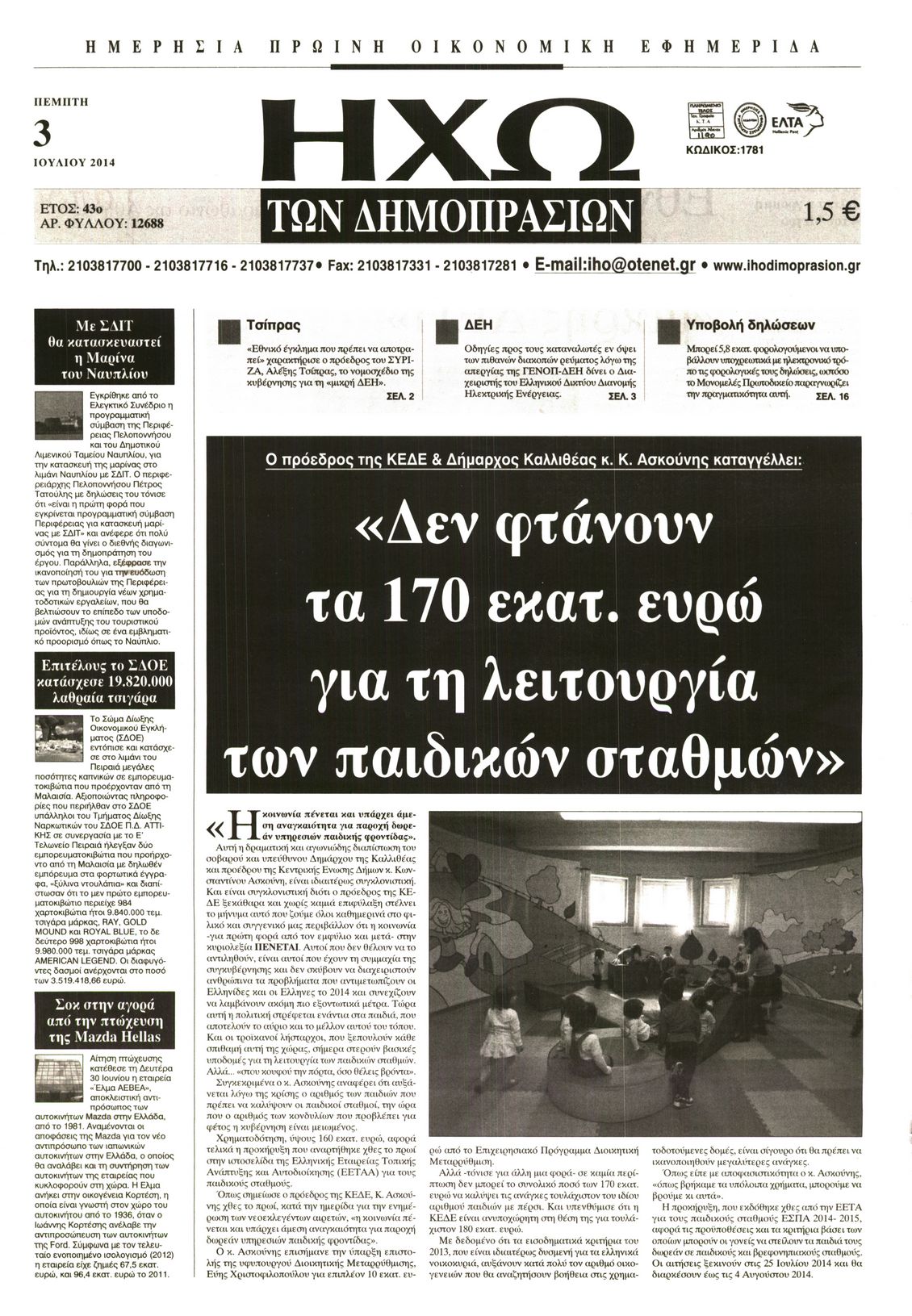 Οι oικονομικές εφημερίδες Enikos Newsroom 08:16, Πέμπτη 03 Ιουλίου 2014 Media Οι oικονομικές εφημερίδες Διαβάστε τα πρωτοσέλιδα των οικονομικών εφημερίδων: ΕΦΗΜΕΡΙΔΕΣ ΟΙΚΟΝΟΜΙΚΕΣ ΕΦΗΜΕΡΙΔΕΣ ΠΡΩΤΟΣΕΛΙΔΑ Μοιράσου το: σχολίασε κι εσύ (0 σχόλια) Ακολουθήστε το enikos.gr στο Google News και μάθετε πρώτοι όλες τις ειδήσεις Δείτε όλες τις τελευταίες ειδήσεις από την Ελλάδα και τον Κόσμο στο enikos.gr Ειδήσεις Ροή Ειδήσεων 2 ώρες πριν Εκτός ευρωομάδας ΣΥΡΙΖΑ ο Νίκος Παππάς μετά την επίθεση στον δημοσιογράφο Νίκο Γιαννόπουλο – Η μήνυση και οι νέες δηλώσεις 3 ώρες πριν «Αγριεύουν» οι αγρότες: «Δεν συντρέχει λόγος συνάντησης με τον πρωθυπουργό» – Ώρα αποφάσεων στη σύσκεψη της Πέμπτης 3 ώρες πριν Κυψέλη: Χωρίς την οικογένειά της δίπλα της απολογήθηκε η 16χρονη – «Της είχε επιτεθεί κάποιος για να την βιάσει, φοβήθηκε και κυκλοφορούσε με μαχαίρι» 2 ώρες πριν Politico: Το πρόβλημα της Ευρώπης δεν είναι το Βέλγιο αλλά ο Ντόναλντ Τραμπ 4 ώρες πριν Αλεξανδρούπολη: Πολυοργανική ανεπάρκεια λόγω υποσιτισμού η αιτία θανάτου του 3χρονου αγοριού 2 ώρες πριν Μυστήριο με τεράστιες κυκλικές πέτρες 200 κιλών – Ανακαλύφθηκαν τυχαία κατά τη διάρκεια οδικών έργων και κανείς δεν ξέρει από πού προέρχονται 3 ώρες πριν Ύπνος: Ειδικός εξηγεί τον πραγματικό λόγο που ξυπνάτε στις 4 τα ξημερώματα – Ο ρόλος των ορμονών και του κιρκάδιου ρυθμού 4 ώρες πριν Αριθμολογία: Οι άνθρωποι που έχουν γεννηθεί αυτές τις 4 ημερομηνίες, είναι τρυφεροί και αγαπούν ανιδιοτελώς 16 ώρες πριν 20 χρόνια τα Χριστούγεννα ξεκινούν στα Public με μεγάλη ποικιλία σε δώρα! 1 λεπτό πριν Μουντιάλ 2026: Η νέα ταξιδιωτική απαγόρευση του Ντόναλντ Τραμπ πλήττει (και) τους οπαδούς Σενεγάλης – Ακτής Ελεφαντοστού 13 λεπτά πριν Κυριάκος Μητσοτάκης: Στις Βρυξέλλες για την Σύνοδο Κορυφής ΕΕ και Δυτικών Βαλκανίων – Δείτε φωτογραφίες 25 λεπτά πριν Σάρα Εσκενάζυ: Η πρώτη ανάρτηση για το θάνατο του πατέρα της, Αλμπέρτο Εσκενάζυ και η επιθυμία της οικογένειας 41 λεπτά πριν Παρί Σεν Ζερμέν – Φλαμένγκο 2-1 πεν. (1-1 κ.δ.): Οι Γάλλοι σήκωσαν και το Διηπειρωτικό με ήρωα τον Σαφόνοφ που έπιασε 4 πέναλτι 56 λεπτά πριν Βέλγους πολιτικούς και επικεφαλής χρηματοπιστωτικών ιδρυμάτων στοχοποιεί η Μόσχα για τα κατασχεθέντα περιουσιακά στοιχεία ENIKOS NETWORK Αϋπνία: Το κόλπο που θα σας βοηθήσει να κοιμηθείτε απόψε – Είναι απλό και έχει αποτέλεσμα 2,6 εκατομμύρια πολίτες έχουν ήδη εμβολιαστεί κατά της γρίπης ΕΛΣΤΑΤ: Τι δείχνουν τα νέα στοιχεία για τις ηλεκτρονικές παραγγελίες των επιχειρήσεων ΚΕΠΕ: Οι 3 διακριτές συμβολές των ΜμΕ και της μεταποίησης στην ελληνική οικονομία Χαρτογραφώντας το «σημείο χωρίς επιστροφή»: Για πρώτη φορά αποκαλύπτεται με λεπτομέρεια το ακανθώδες όριο της ατμόσφαιρας τ... Η Google καταργεί τη λειτουργία «dark web report» – Πώς θα μπορούν οι χρήστες να διαγράφουν τα δεδομένα τους περισσότερα 22:24 , Τετάρτη 17 Δεκεμβρίου 2025 Το Σπίτι Δίπλα Στο Ποτάμι: Σε κίνδυνο η υγεία του Απόστολου – Τι θα δούμε απόψε “Το Σπίτι Δίπλα στο Ποτάμι” ξετυλίγει το νήμα της ζωής των πέντε αδελφών με καταισ... 21:14 , Τετάρτη 17 Δεκεμβρίου 2025 Παιχνίδια Εκδίκησης: Θα καταφέρει ο Χρήστος να κλονίσει την εμπιστοσύνη της Μάγιας απέναντι στον Άγη; Τα «Παιχνίδια Εκδίκησης» έρχονται απόψε στις 22:30, στον Αντ1, με το τελευταίο επεισόδιο της χ... 20:57 , Τετάρτη 17 Δεκεμβρίου 2025 Άγιος Έρωτας: Η Χλόη καταθέτει εναντίον του πατέρα της και ο Χάρης αποκαλύπτει στον Κλεάνθη ότι δεν είναι ο βιολογικός του πατέρας. Γεμάτ