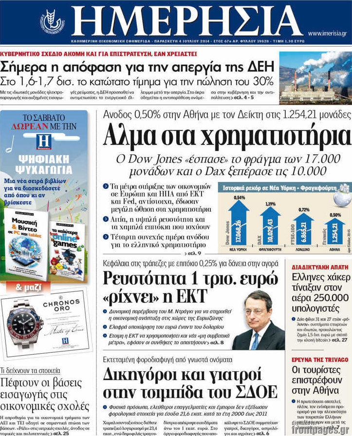Οι οικονομικές εφημερίδες Enikos Newsroom 07:59, Παρασκευή 04 Ιουλίου 2014 Media Οι οικονομικές εφημερίδες Διαβάστε τα πρωτοσέλιδα των οικονομικών εφημερίδων: ΟΙΚΟΝΟΜΙΚΕΣ ΕΦΗΜΕΡΙΔΕΣ ΠΡΩΤΟΣΕΛΙΔΑ Μοιράσου το: σχολίασε κι εσύ (0 σχόλια) Ακολουθήστε το enikos.gr στο Google News και μάθετε πρώτοι όλες τις ειδήσεις Δείτε όλες τις τελευταίες ειδήσεις από την Ελλάδα και τον Κόσμο στο enikos.gr Ειδήσεις Ροή Ειδήσεων 3 ώρες πριν Αγιόκαμπος: «Μια στιγμή μπορεί να σε τελειώσει για μια ζωή» λέει ο ιδιοκτήτης του παντοπωλείου που «χτυπήθηκε» για τρίτη φορά από την κακοκαιρία – «Είχα όνειρα, όλα κατέρρευσαν» 1 ώρα πριν Μητσοτάκης για Τουρκία: «Πριν από τις 15 Φεβρουαρίου η συνάντηση με τον Ερντογάν – Αναφαίρετο δικαίωμά μας η επέκταση των χωρικών υδάτων» 5 ώρες πριν Δολοφονία στη Νέα Πέραμο: Με 10 σφαίρες πισώπλατα εκτέλεσαν τον 27χρονο – Τον κράτησαν 6 μέρες όμηρο; 2 ώρες πριν Δημοσκόπηση Alco: Στις 13 μονάδες η διαφορά ΝΔ-ΠΑΣΟΚ – Πώς αξιολογούν οι πολίτες τις νέες πολιτικές κινήσεις; 5 ώρες πριν Βουλή: Ξεκινούν οι εσωκομματικές διεργασίες για την Αναθεώρηση του Συντάγματος – Οι κοινοβουλευτικές διαδικασίες που προβλέπονται 2 ώρες πριν Oι άνθρωποι που δεν αλλάζουν ποτέ κούρεμα, συνήθως διαθέτουν αυτά τα 9 σπάνια χαρακτηριστικά 6 ώρες πριν Τα 3 ζώδια που θα έχουν την τύχη με το μέρος τους έως τις 8 Φεβρουαρίου – «Αρπάξτε τις ευκαιρίες για το επόμενο βήμα στη ζωή σας» 7 ώρες πριν Ο φλοιός της Γης αψηφά τους κανόνες και οι επιστήμονες μόλις ανακάλυψαν τον λόγο 3 ώρες πριν Λευκές περσίδες ξανά: Η απλή μέθοδος για να εξαφανίσετε την κιτρινίλα χωρίς τρίψιμο 5 λεπτά πριν Ύπνος: Η βραδινή ρουτίνα που εγγυάται 8 ώρες ξεκούρασης, σύμφωνα με ειδικό 12 λεπτά πριν Επστάιν: Η συνομιλία του με την Αριάν Ντε Ρότσιλντ για τον Τσίπρα και τον Βαρουφάκη – Τι έλεγε για την Ελλάδα 21 λεπτά πριν Παναθηναϊκός: «Πράσινος» ο Χάβι Ερνάντεθ 27 λεπτά πριν Μητσοτάκης: «Ο ΟΠΕΚΕΠΕ ήταν μια χαμένη μάχη – Σωστή η διάταξη για τη συνεπιμέλεια» 35 λεπτά πριν Πολωνία: Πρόστιμο στον υπουργό Δικαιοσύνης δεν παραχώρησε προτεραιότητα σε μία πεζή – Έδινε συνέντευξη ενώ οδηγούσε ENIKOS NETWORK 5 πράγματα που κάνουν μαζί τα ευτυχισμένα ζευγάρια Δύο παιδιά με γρίπη στις ΜΕΘ – Συνεχίζεται η απειλή των εποχικών λοιμώξεων S&P Global: Τι δείχνουν τα στοιχεία για τον τομέα της μεταποίησης στην Ελλάδα ΔΥΠΑ: Ποια επιδόματα πληρώθηκαν τον Ιανουάριο 2026 Ευπάθεια στο moltbook ai αποκαλύπτει email, tokens σύνδεσης και api keys Αυτός είναι ο ρόλος της μικρής τρύπας στους νυχοκόπτες – «Είμαι ο μόνος που δεν το ήξερε;»» περισσότερα 18:18 , Δευτέρα 02 Φεβρουαρίου 2026 Άγιος Έρωτας: Η μικρή Ελευθερία δεν θέλει τους νέους της γονείς και η Χλόη καταφεύγει στον πατέρα Νικόλαο Όσα θα δούμε απόψε στο νέο επεισόδιο της σειράς “Άγιος Έρωτας” στις 22:00 στον Alp... 18:07 , Δευτέρα 02 Φεβρουαρίου 2026 MasterChef 10: Το πρώτο Mystery Box έχει την παιχνιδιάρικη υπογραφή του Πάνου Ιωαννίδη Μετά τις πρώτες εβδομάδες και τις διαδικασίες, που προηγήθηκαν, 14 διαγωνιζόμενοι της πρώτης μ... 17:45 , Δευτέρα 02 Φεβρουαρίου 2026 Grand Hotel: Ο Πέτρος και η Αλίκη είναι και πάλι μαζί Καταιγιστικές οι εξελίξεις στο νέο διπλό επεισόδιο της σειράς “Grand Hotel” στις 2... 17:15 , Δευτέρα 02 Φεβρουαρίου 2026 Να μ’ αγαπάς: Η Φωτεινή ανακοινώνει στη Ζωή πως είναι έγκυος, απόψε στις 20:00, με διπλό επεισόδιο Ο Θεόφιλος λαμβάνει τα αποτελέσματα του τεστ DΝA, στο νέο διπλό επεισόδιο της σειράς “Να... ΤΕΛΕΥΤΑΙΕΣ ΕΙΔΗΣΕΙΣ 12 λεπτά πριν Επστάιν: Η συνομιλία του με την Αρ