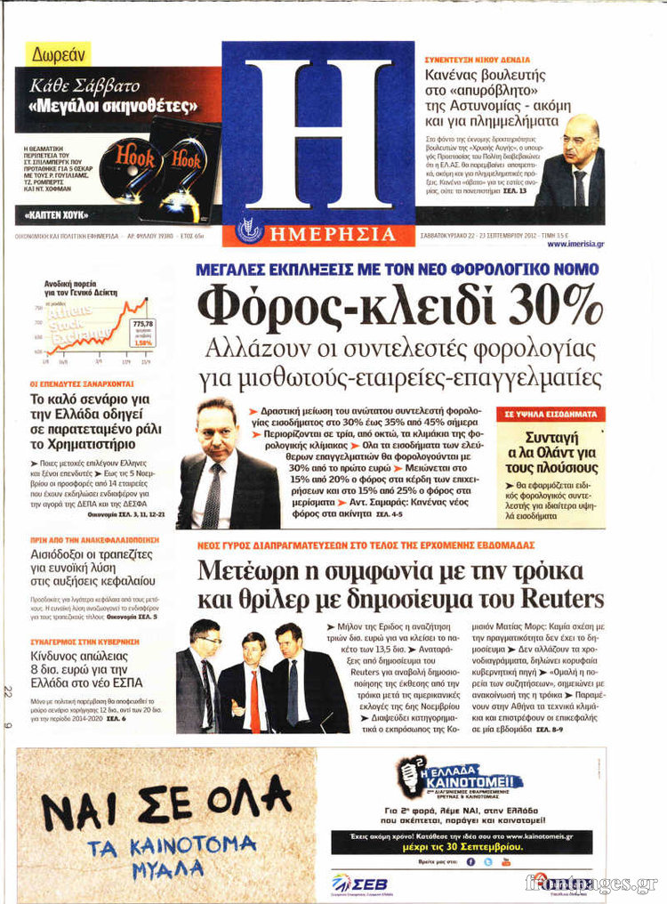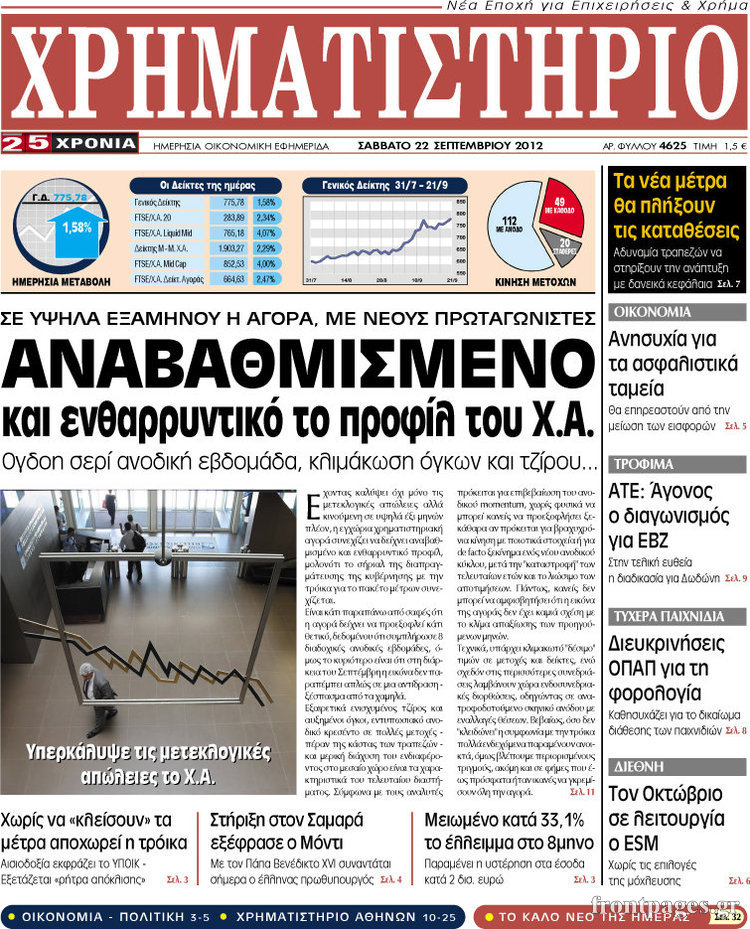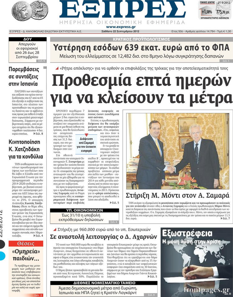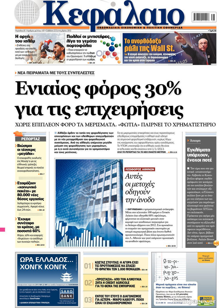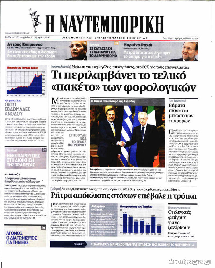 Διαβάστε τα σημερινά πρωτοσέλιδα των οικονομικών εφημερίδων.