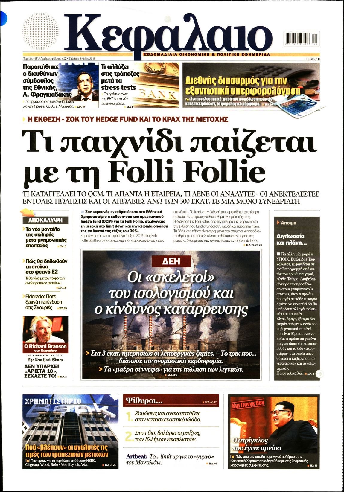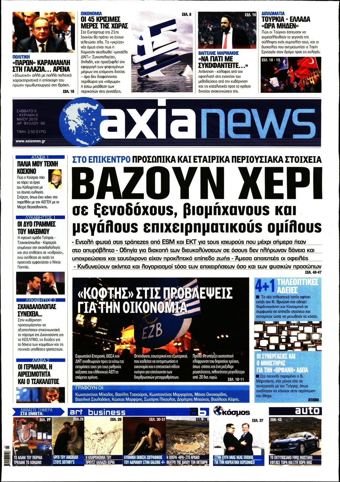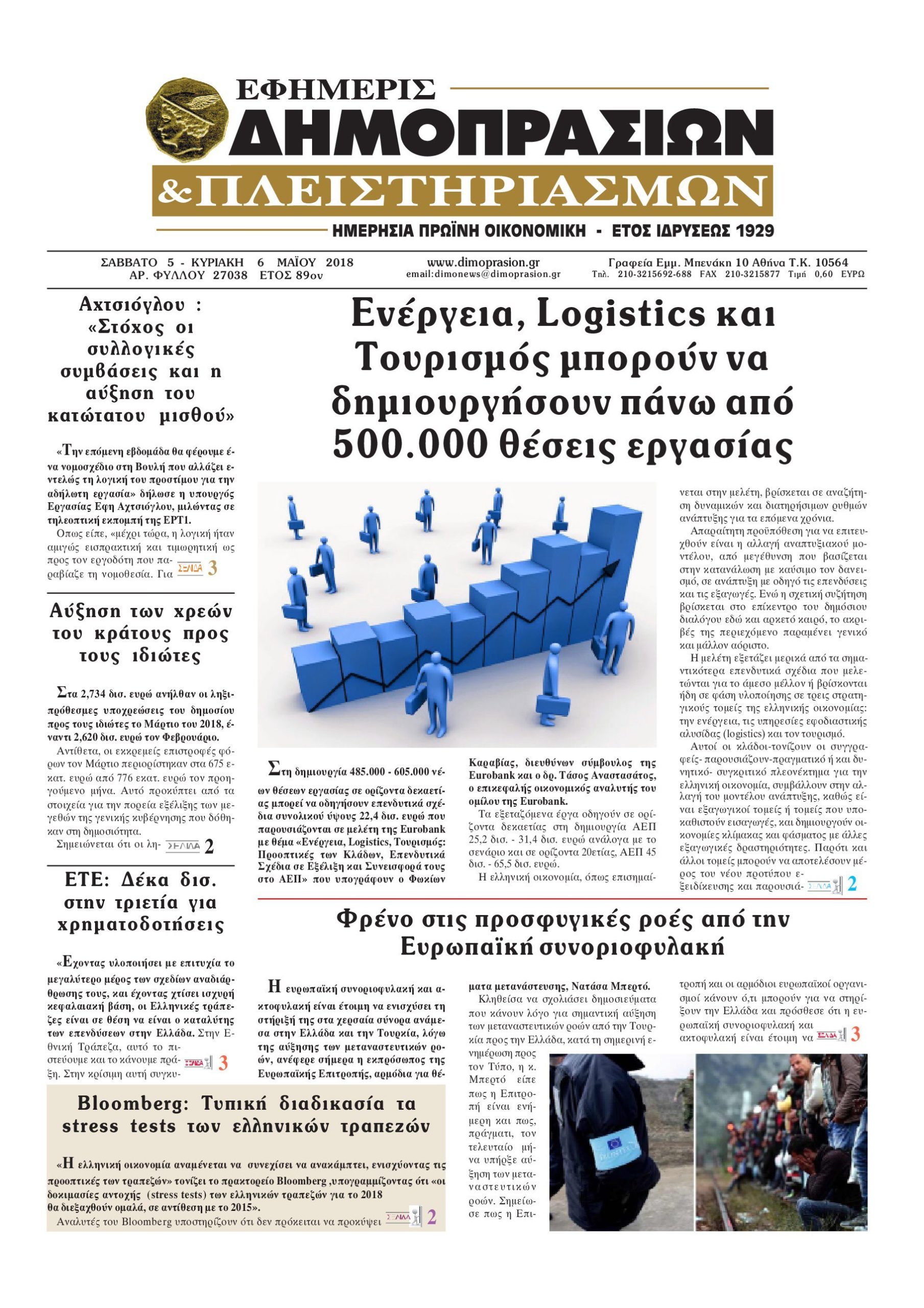Οι οικονομικές εφημερίδες 5/5/2018 Enikos Newsroom 07:15, Σάββατο 05 Μαΐου 2018 Media Διαβάστε τα σημερινά πρωτοσέλιδα των οικονομικών εφημερίδων: ΟΙΚΟΝΟΜΙΚΕΣ ΕΦΗΜΕΡΙΔΕΣ ΠΡΩΤΟΣΕΛΙΔΑ Μοιράσου το: σχολίασε κι εσύ (0 σχόλια) Ακολουθήστε το enikos.gr στο Google News και μάθετε πρώτοι όλες τις ειδήσεις Δείτε όλες τις τελευταίες ειδήσεις από την Ελλάδα και τον Κόσμο στο enikos.gr Ειδήσεις Ροή Ειδήσεων 23 λεπτά πριν Υπόθεση Έπσταϊν: Το Υπουργείο Δικαιοσύνης δημοσιοποίησε μια σειρά από εξαιρετικά επεξεργασμένα αρχεία – «Λείπουν τα πιο σημαντικά έγγραφα», λένε οι Δημοκρατικοί 2 ώρες πριν Σαρωτικοί οι έλεγχοι στους δρόμους ενόψει εορτών – Μπλόκα της τροχαίας σε κεντρικές αρτηρίες της Αττικής 34 λεπτά πριν ΟΝΕΧ – MEGATUGS: Ξεκίνησε η ναυπήγηση ρυμουλκών στην Ελλάδα – Προθάλαμος πολεμικών πλοίων – Δείτε φωτογραφίες και βίντεο 10 ώρες πριν Χριστούγεννα στα μπλόκα: Επιμένουν στις κινητοποιήσεις τους οι αγρότες – Ανοίγουν τα διόδια το Σαββατοκύριακο 9 ώρες πριν Πούτιν: Τα μηνύματα σε Ευρώπη και ΝΑΤΟ από το μαραθώνιο «σόου» του – Η απαίτηση για «σεβασμό» και η ειρήνη «με τους όρους» της Μόσχας 2 ώρες πριν Αυγά: Πόσα μπορείτε να τρώτε την ημέρα με ασφάλεια για μέγιστη πρόσληψη πρωτεΐνης 3 ώρες πριν Τα ζώδια σήμερα, Σάββατο 20 Δεκεμβρίου: Παρθένοι, το σύμπαν σας δίνει το κλειδί 9 ώρες πριν Ανακαλύφθηκαν αρχαία χρυσά νομίσματα 2.200 ετών που απεικονίζουν τον θεό Απόλλωνα – Η άγνωστη σύνδεση με τον Φίλιππο Β΄ της Μακεδονίας 2 ώρες πριν Οπτική ψευδαίσθηση: Μόνο αν είσαι ο Σέρλοκ Χολμς θα βρεις τον αριθμό «87» σε 7 δευτερόλεπτα 3 λεπτά πριν Αρχαιολόγοι ανακάλυψαν σε χωράφι απεικόνιση 600 ετών ενός Αγίου – Τα στοιχεία που δείχνουν ότι μαρτύρησε 11 λεπτά πριν Mega χριστουγεννιάτικη φορολοταρία: «Κλείδωσε» η ημερομηνία για την κλήρωση – Ερωτήσεις και απαντήσεις 18 λεπτά πριν ΗΠΑ: Τέσσερις μετανάστες πέθαναν σε κέντρα κράτησης – Αύξηση θανάτων σε επίπεδο ρεκόρ το 2025 23 λεπτά πριν Υπόθεση Έπσταϊν: Το Υπουργείο Δικαιοσύνης δημοσιοποίησε μια σειρά από εξαιρετικά επεξεργασμένα αρχεία – «Λείπουν τα πιο σημαντικά έγγραφα», λένε οι Δημοκρατικοί 26 λεπτά πριν Καιρός: Αλλαγή σκηνικού σήμερα με βροχές και πτώση της θερμοκρασίας – Οι προβλέψεις των μετεωρολόγων για τα Χριστούγεννα ENIKOS NETWORK Το τεστ των 10 δευτερολέπτων που μπορεί να προβλέψει το προσδόκιμο ζωής σας – Τι λέει ειδικός του Cleveland Επιλέξτε καρέκλα για να μάθετε ποια είναι τα κρυφά χαρακτηριστικά σας – Τι αποκάλυψε για εσάς αυτό το τεστ προσωπικότητας; Mega χριστουγεννιάτικη φορολοταρία: «Κλείδωσε» η ημερομηνία για την κλήρωση – Ερωτήσεις και απαντήσεις Αναστολή μέτρων αναγκαστικής εκτέλεσης για κτηνοτρόφους που πλήττονται από την ευλογιά των αιγοπροβάτων Χαρτογραφώντας το «σημείο χωρίς επιστροφή»: Για πρώτη φορά αποκαλύπτεται με λεπτομέρεια το ακανθώδες όριο της ατμόσφαιρας τ... Η Google καταργεί τη λειτουργία «dark web report» – Πώς θα μπορούν οι χρήστες να διαγράφουν τα δεδομένα τους περισσότερα 05:48 , Σάββατο 20 Δεκεμβρίου 2025 Οι οικονομικές εφημερίδες 20/12/2025 Διαβάστε τα πρωτοσέλιδα από τις οικονομικές εφημερίδες, σήμερα 20/12/2025. 05:43 , Σάββατο 20 Δεκεμβρίου 2025 Οι αθλητικές εφημερίδες 20/12/2025 Διαβάστε τα πρωτοσέλιδα από τις αθλητικές εφημερίδες, σήμερα 20/12/2025. 05:38 , Σάββατο 20 Δεκεμβρίου 2025 Οι πολιτικές εφημερίδες 20/12/2025 Διαβάστε τα πρωτοσέλιδα από τις πολιτικές εφημερίδες, σήμερα 20/12/2025. 04:20 , Σάββατο 20 Δεκεμβρίου 2025 Αγγελική Νικολούλη: Τα συλλυπητήρια για την απ