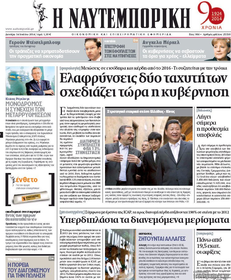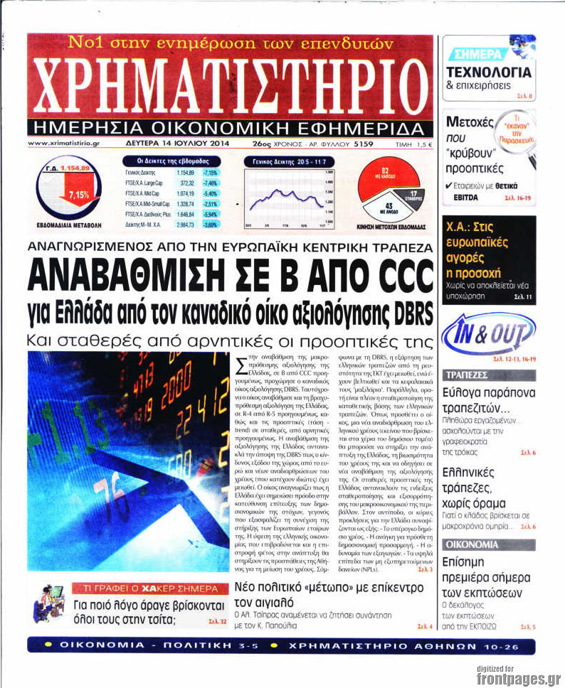 Οι οικονομικές εφημερίδες Enikos Newsroom 07:58, Δευτέρα 14 Ιουλίου 2014 Media Οι οικονομικές εφημερίδες Διαβάστε τα πρωτοσέλιδα των οικονομικών εφημερίδων. ΟΙΚΟΝΟΜΙΚΕΣ ΕΦΗΜΕΡΙΔΕΣ ΠΡΩΤΟΣΕΛΙΔΑ Μοιράσου το: σχολίασε κι εσύ (0 σχόλια) Ακολουθήστε το enikos.gr στο Google News και μάθετε πρώτοι όλες τις ειδήσεις Δείτε όλες τις τελευταίες ειδήσεις από την Ελλάδα και τον Κόσμο στο enikos.gr Ειδήσεις Ροή Ειδήσεων 1 ώρα πριν Δημοσκόπηση Metron Analysis: Στις 10 μονάδες η διαφορά ΝΔ-ΠΑΣΟΚ, στην 3η θέση η Πλεύση Ελευθερίας – 8 στους 10 στηρίζουν τον αγώνα των αγροτών 6 ώρες πριν Αγρότες: «Όχι στον διάλογο, μας εμπαίζει η κυβέρνηση» – Αποφάσισαν κλιμάκωση των κινητοποιήσεων, τι θα γίνει τα Χριστούγεννα 1 ώρα πριν Νίκος Παππάς στον ΑΝΤ1: «Δεν κρύβομαι – Μετά το συμβάν ακολούθησα κανονικά το πρόγραμμά μου» – ΒΙΝΤΕΟ 3 ώρες πριν Αθήνα: Εξαρθρώθηκε εγκληματική οργάνωση που διακινούσε ναρκωτικά σε μορφή σοκολάτας – Δύο τράπερ ανάμεσα στους 4 συλληφθέντες – ΒΙΝΤΕΟ 1 ώρα πριν Διαμαντής Καραναστάσης: Οδηγούσε υπό την επήρεια αλκοόλ – Του αφαιρέθηκε το δίπλωμα και του επιβλήθηκε πρόστιμο 350 ευρώ 2 ώρες πριν Manifesting: Πώς να συναντήσετε τον σύντροφο της ζωής σας, ανάλογα με τον μήνα γέννησής σας 4 ώρες πριν Γάμος: 11 ψυχρές αλλά ευγενικές φράσεις, που λέει ένας άνδρας όταν σκέφτεται τον χωρισμό 3 ώρες πριν Σφουγγάρισμα: Η συνήθεια που θα σας βοηθήσει να διατηρήσετε το σπίτι σας καθαρό και τακτοποιημένο 2 ημέρες πριν 20 χρόνια τα Χριστούγεννα ξεκινούν στα Public με μεγάλη ποικιλία σε δώρα! 5 λεπτά πριν Αυξάνουν την πίεση προς την κυβέρνηση οι αγρότες: Κλείνουν παρακαμπτήριους και ανοίγουν διόδια – Τι θα γίνει τις γιορτές 10 λεπτά πριν Ελισάβετ Κωνσταντινίδου για τον Γεράσιμο Μιχελή και την Πόπη Χριστοδούλου: «Ξέρω ότι έχουν πάει απλώς κάπου αλλού, ότι δεν είναι ο θάνατος έτσι όπως τον έχουμε στο μυαλό μας» 14 λεπτά πριν Κρήτη: Νέες αποκαλύψεις για τον 54χρονο που κατηγορείται ότι εξαπάτησε τους γονείς του 33χρονου – Ζητούσε τρίχες αγνοουμένων 21 λεπτά πριν Τσιάρας: Δεν θα κινδυνέψουν οι πληρωμές των αγροτών – Χρειαζόμαστε μια νέα πολιτική, ένα restart 28 λεπτά πριν Δέσποινα Βανδή: Το βίντεο που δημοσίευσε με τον Γιώργο Νικολαΐδη – «Έχουμε καταστραφεί από τα μελομακάρονά σου» ENIKOS NETWORK Σε περίοδο αυξημένης δραστηριότητας η γρίπη στην Ελλάδα-Μέτρα προστασίας από τον ΕΟΔΥ Σκέφτεστε συνέχεια συζητήσεις που έχετε κάνει; Τι σημαίνει αυτό, σύμφωνα με ειδικό Λαγκάρντ: Αισιόδοξη για την ανάπτυξη της Ευρωζώνης, αβέβαιη για τον πληθωρισμό ΑΣΕΠ 2ΓΒ/2025: Σήμερα αρχίζει η υποβολή ενστάσεων – Πότε θα βγουν τα οριστικά αποτελέσματα Χαρτογραφώντας το «σημείο χωρίς επιστροφή»: Για πρώτη φορά αποκαλύπτεται με λεπτομέρεια το ακανθώδες όριο της ατμόσφαιρας τ... Η Google καταργεί τη λειτουργία «dark web report» – Πώς θα μπορούν οι χρήστες να διαγράφουν τα δεδομένα τους περισσότερα 17:45 , Πέμπτη 18 Δεκεμβρίου 2025 ROUK ZOUK: Εορταστικό επεισόδιο με καλεσμένους τους πρωταγωνιστές του «Γιατί ρε πατέρα» Το Σάββατο 20 Δεκεμβρίου στις 21:00, η Ζέτα Μακρυπούλια υποδέχεται εκλεκτούς ηθοποιούς που όλο... 17:20 , Πέμπτη 18 Δεκεμβρίου 2025 Άγιος έρωτας: Η Χριστίνα εξομολογείται στον πατέρα Νικόλαο, απόψε στις 21:00 στον Alpha Η Νότα αποφασίζει να εκδικηθεί τον Πέτρο και τον Στέφανο, για χάρη του Λούη, όμως τα πράγματα ... 16:50 , Πέμπτη 18 Δεκεμβρίου 2025 Να μ’ αγαπάς: Ζωή και Φωτεινή συμφιλιώνονται ως μάνα με κόρη, απόψε στις 20:00 Η ταυτότητα του Άγγελου αποκαλύπτεται στο νέο επεισόδιο 