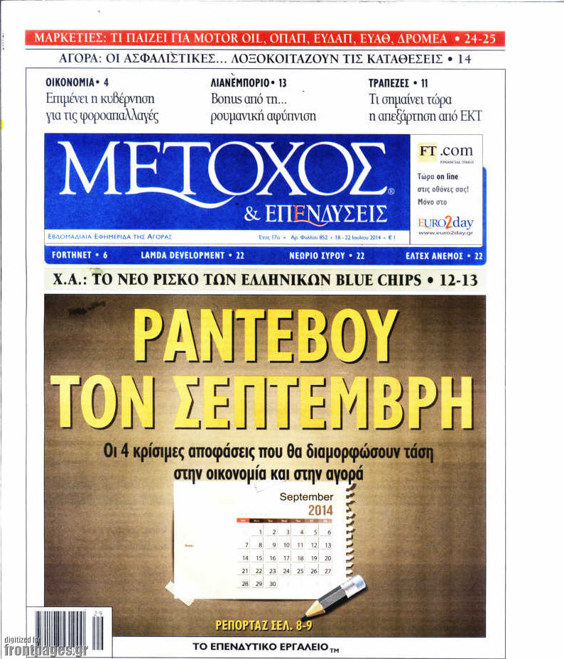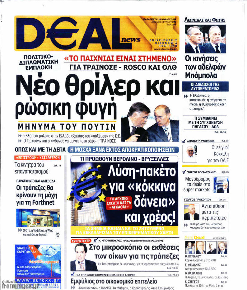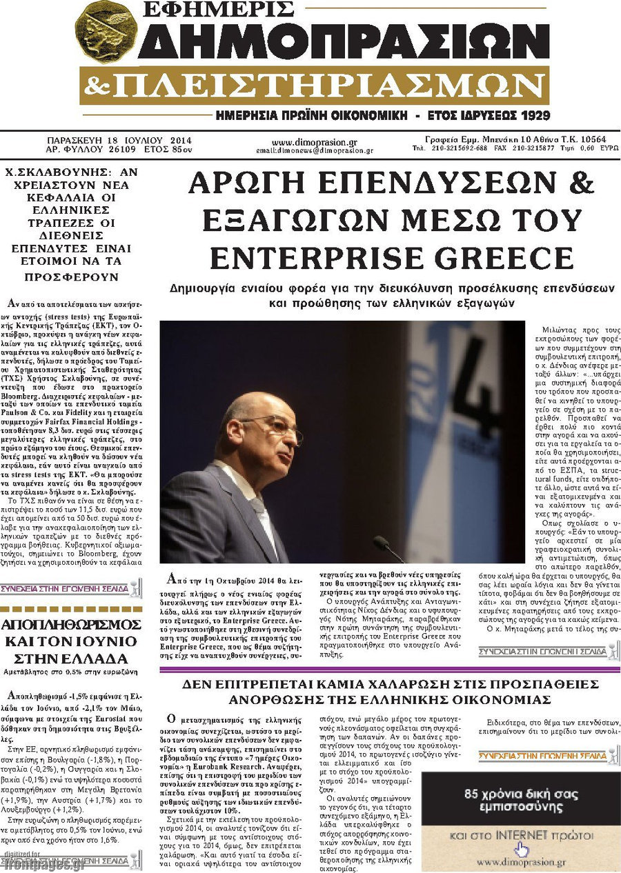 Οι oικονομικές εφημερίδες Enikos Newsroom 08:36, Παρασκευή 18 Ιουλίου 2014 Media Οι oικονομικές εφημερίδες Διαβάστε τα πρωτοσέλιδα των οικονομικών εφημερίδων: ΕΦΗΜΕΡΙΔΕΣ ΟΙΚΟΝΟΜΙΚΕΣ ΕΦΗΜΕΡΙΔΕΣ ΠΡΩΤΟΣΕΛΙΔΑ Μοιράσου το: σχολίασε κι εσύ (0 σχόλια) Ακολουθήστε το enikos.gr στο Google News και μάθετε πρώτοι όλες τις ειδήσεις Δείτε όλες τις τελευταίες ειδήσεις από την Ελλάδα και τον Κόσμο στο enikos.gr Ειδήσεις Ροή Ειδήσεων 46 λεπτά πριν Ευρωπαϊκή Ένωση: Συμφωνία για δάνειο 90 δισ. ευρώ στην Ουκρανία τη διετία 2026-2027 5 ώρες πριν ΟΠΕΚΕΠΕ: Προφυλακιστέος ο φερόμενος αρχηγός και ο λογιστής της εγκληματικής οργάνωσης 6 ώρες πριν Αυξάνουν την πίεση προς την κυβέρνηση οι αγρότες: Κλείνουν παρακαμπτήριους και ανοίγουν διόδια – Τι θα γίνει τις γιορτές 6 ώρες πριν Φοινικούντα: Το Σάββατο απολογείται ο 30χρονος γιος γνωστού επιχειρηματία της Πλάκας που παραδόθηκε – Όσα είπε στους αστυνομικούς και ο ρόλος του στο έγκλημα 5 ώρες πριν ΑΕΚ – Κραϊόβα 3-2: Επική ανατροπή και πρόκριση στους «16» του Conference League η Ένωση 6 ώρες πριν Αρχαιολόγοι ανακάλυψαν ρωμαϊκά τεχνουργήματα από μια πόλη που δεν υπήρξε ποτέ – Τα τρία εντυπωσιακά κτίρια και ο αμφορέας με τις… σαρδέλες 7 ώρες πριν Ύπνος: Η απλή βραδινή ρουτίνα για να προστατεύσετε τα μαλλιά σας από το κρύο κατά τη διάρκεια του χειμώνα 8 ώρες πριν Manifesting: Πώς να συναντήσετε τον σύντροφο της ζωής σας, ανάλογα με τον μήνα γέννησής σας 2 ημέρες πριν 20 χρόνια τα Χριστούγεννα ξεκινούν στα Public με μεγάλη ποικιλία σε δώρα! 10 λεπτά πριν Αυστραλία: Κήρυξε την Κυριακή (21/12) ημέρα εθνικού πένθους για τη φονική επίθεση στην παραλία Μπόνταϊ 20 λεπτά πριν Ρόδος: Δάσκαλος καράτε καταδικάστηκε για ασέλγεια σε ανήλικες αθλήτριες – Μαρτυρίες για αγγίγματα σε ευαίσθητα σημεία 34 λεπτά πριν Γουατεμάλα: Εξαρθρώθηκε κύκλωμα διακίνησης μεταναστών προς τις ΗΠΑ – Συνελήφθησαν 14 άτομα 39 λεπτά πριν Βουλγαρία: Χιλιάδες πολίτες στους δρόμους κατά της απερχόμενης κυβέρνησης και της διαφθοράς 46 λεπτά πριν Ευρωπαϊκή Ένωση: Συμφωνία για δάνειο 90 δισ. ευρώ στην Ουκρανία τη διετία 2026-2027 ENIKOS NETWORK Σε περίοδο αυξημένης δραστηριότητας η γρίπη στην Ελλάδα-Μέτρα προστασίας από τον ΕΟΔΥ Σκέφτεστε συνέχεια συζητήσεις που έχετε κάνει; Τι σημαίνει αυτό, σύμφωνα με ειδικό Στεγαστικό: Τι λέει η ΠΟΜΙΔΑ για τα νέα μέτρα που ανακοίνωσε ο Κυριάκος Μητσοτάκης Λαγκάρντ: Αισιόδοξη για την ανάπτυξη της Ευρωζώνης, αβέβαιη για τον πληθωρισμό Χαρτογραφώντας το «σημείο χωρίς επιστροφή»: Για πρώτη φορά αποκαλύπτεται με λεπτομέρεια το ακανθώδες όριο της ατμόσφαιρας τ... Η Google καταργεί τη λειτουργία «dark web report» – Πώς θα μπορούν οι χρήστες να διαγράφουν τα δεδομένα τους περισσότερα 02:50 , Παρασκευή 19 Δεκεμβρίου 2025 GNTM: «Κλείδωσαν» οι τέσσερις φιναλίστ – Μεγάλη ανατροπή στις τελευταίες αποχωρήσεις Για προτελευταία φορά εμφανίστηκαν στο πλατό του GNTM οι φιναλίστ του φετινού κύκλου, το βράδυ... 17:45 , Πέμπτη 18 Δεκεμβρίου 2025 ROUK ZOUK: Εορταστικό επεισόδιο με καλεσμένους τους πρωταγωνιστές του «Γιατί ρε πατέρα» Το Σάββατο 20 Δεκεμβρίου στις 21:00, η Ζέτα Μακρυπούλια υποδέχεται εκλεκτούς ηθοποιούς που όλο... 17:20 , Πέμπτη 18 Δεκεμβρίου 2025 Άγιος έρωτας: Η Χριστίνα εξομολογείται στον πατέρα Νικόλαο, απόψε στις 21:00 στον Alpha Η Νότα αποφασίζει να εκδικηθεί τον Πέτρο και τον Στέφανο, για χάρη του Λούη, όμως τα πράγματα ... 16:50 , Πέμπτη 18 Δεκεμβρίου 2025 Να μ’ αγαπάς: Ζωή και Φωτεινή συμφιλιώνονται ως μάνα με κόρη, απόψε στις 20:00 Η ταυτότητα το