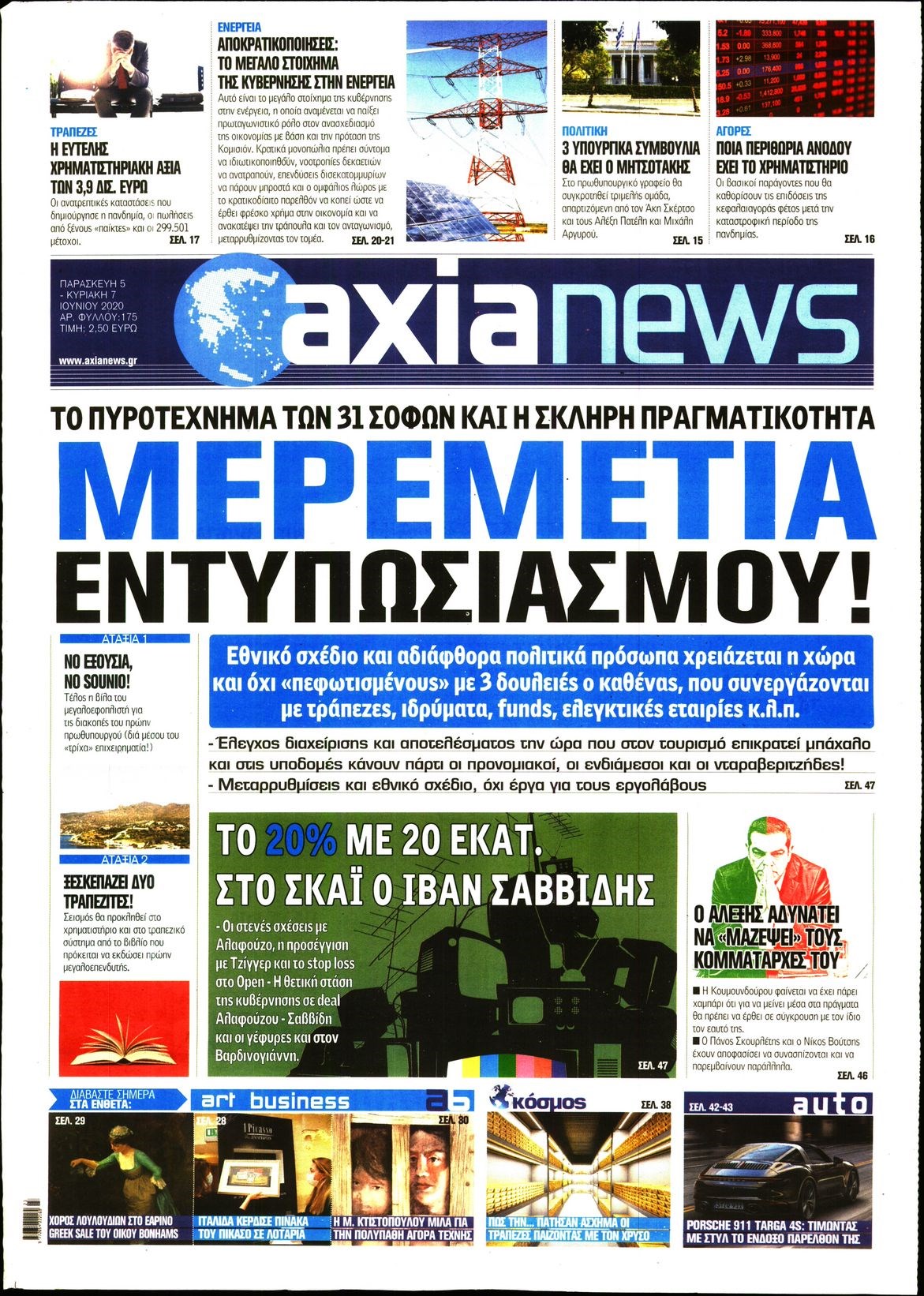 Οι οικονομικές εφημερίδες 5/6/2020 Διονύσης Νίκκας 06:34, Παρασκευή 05 Ιουνίου 2020 Media Διαβάστε τα πρωτοσέλιδα των οικονομικών εφημερίδων… ΟΙΚΟΝΟΜΙΚΕΣ ΕΦΗΜΕΡΙΔΕΣ Μοιράσου το: σχολίασε κι εσύ (0 σχόλια) Ακολουθήστε το enikos.gr στο Google News και μάθετε πρώτοι όλες τις ειδήσεις Δείτε όλες τις τελευταίες ειδήσεις από την Ελλάδα και τον Κόσμο στο enikos.gr Ειδήσεις Ροή Ειδήσεων 2 ώρες πριν «Τεστ» υπομονής η χριστουγεννιάτικη έξοδος: Οι ουρές χιλιομέτρων και η απόφαση να ανοίξουν επιπλέον λωρίδες – Εν αναμονή των επόμενων κινήσεων των αγροτών 2 ώρες πριν Τραγωδία στην Τουρκία: Νεκρός ο αρχηγός του Γενικού Επιτελείου της Λιβύης – Συνετρίβη λίγο μετά την απογείωση το ιδιωτικό τζετ που τον μετέφερε – ΦΩΤΟ και ΒΙΝΤΕΟ 3 ώρες πριν Θάνατος 3χρονου στην Αλεξανδρούπολη: «Το παιδί είχε φάει το προηγούμενο βράδυ» υποστηρίζει η μητέρα του – Στο νοσοκομείο τα αδελφάκια του 3 ώρες πριν Σύλληψη 35χρονου στα Καλύβια: Πιθανή σχέση του με τον σεσημασμένο 37χρονο Κρητικό αναζητούν οι Αρχές – Τα συμβόλαια θανάτου και το σενάριο για νέο χτύπημα 6 ώρες πριν Ιλίσια: Διασωληνωμένος και σε σοβαρή κατάσταση ο συντηρητής του ασανσέρ – Πώς έγινε το ατύχημα στο σούπερ μάρκετ 3 ώρες πριν Ανακαλύφθηκε τεράστιος κυκλικός λαβύρινθος που «οδηγεί» στην… Αρχαία Ρώμη – Τα ευρήματα με «άρωμα« Κρήτης 4 ώρες πριν Ύπνος: Ειδικός μοιράζεται 6 απλές συνήθειες που θα σας βοηθήσουν να κοιμάστε πιο γρήγορα κάθε βράδυ 5 ώρες πριν Αριθμολογία: Οι άνθρωποι με αυτές τις 4 ημερομηνίες γέννησης, διαθέτουν ένα σπάνιο χάρισμα -«Διαβάζουν τις ψυχές των άλλων» 16 ώρες πριν Η Coca-Cola και ο Ελληνικός Ερυθρός Σταυρός μαζί αυτά τα Χριστούγεννα: Μια μεγάλη αγκαλιά για τους συνανθρώπους μας που έχουν ανάγκη 2 λεπτά πριν ΗΠΑ: Εντολές εκκένωσης σε περιοχές του Λος Άντζελες ενόψει καταιγίδας που ενδέχεται να προκαλέσει σαρωτικές πλημμύρες 18 λεπτά πριν Γκιμαράες – Σπόρτινγκ Λισαβόνας 1-4: Νίκη με σούπερ Ιωαννίδη – ΒΙΝΤΕΟ 38 λεπτά πριν Αρχεία Επστάιν: «Ψεύτικη η κάρτα προς τον καταδικασμένο παιδεραστή Λάρι Νάσαρ» λέει το υπουργείο Δικαιοσύνης των ΗΠΑ 51 λεπτά πριν ΟΠΕΚΕΠΕ: Νέα πληρωμή 25,3 εκατ. ευρώ σε 43.100 δικαιούχους 1 ώρα πριν Στο Παρά Πέντε: Ο Γιώργος Καπουτζίδης αποκάλυψε τον λόγο που δεν θέλει να γράψει τρίτο κύκλο – ΒΙΝΤΕΟ ENIKOS NETWORK Πώς μας επηρεάζει η Χριστουγεννιάτικη μουσική; Τι μπορεί να σημαίνει αν δεν σας αρέσει Συμβουλές για να αποφευχθούν παιδικά ατυχήματα τα Χριστούγεννα Εορταστικό ωράριο: Ανοιχτά τα καταστήματα την τελευταία Κυριακή του χρόνου Αυξήσεις στις συντάξεις: Πόσα θα κερδίσετε από τον Ιανουάριο Ο Google Assistant θα παραμείνει λίγο περισσότερο για ορισμένους χρήστες Android Τεστ προσωπικότητας: Το βάζο που θα επιλέξετε αποκαλύπτει πώς λύνετε προβλήματα στη ζωή σας περισσότερα 23:21 , Τρίτη 23 Δεκεμβρίου 2025 Παρά Πέντε: Συγκίνηση και ενθουσιασμός στο «X» με το reunion – «Σαν να μην πέρασε μια μέρα…» Το «Παρά Πέντε» επέστρεψε το βράδυ της Τρίτης (23/12) με ένα επετειακό επεισόδιο. Η θρυλική σε... 23:12 , Τρίτη 23 Δεκεμβρίου 2025 Ο Χριστουγεννιάτικος Τηλεμαραθώνιος του ΑΝΤ1 συγκέντρωσε 3.330.000 ευρώ και θα στηρίξει 300.000 παιδιά Με μεγάλη επιτυχία, πραγματοποιήθηκε τη Δευτέρα 22 Δεκεμβρίου ο Χριστουγεννιάτικος Τηλεμαραθών... 22:25 , Τρίτη 23 Δεκεμβρίου 2025 Παρά Πέντε – Σμαράγδα Καρύδη: «Αυτή η σειρά έμεινε αγέραστη – Παιδιά που είναι 10 ετών, νομίζουν ότι το κάναμε τώρα» Τον Ιούνιο του 2007, έπειτα από δύο κύκλους, υψηλά νούμερα τηλεθέασης και 49 απ