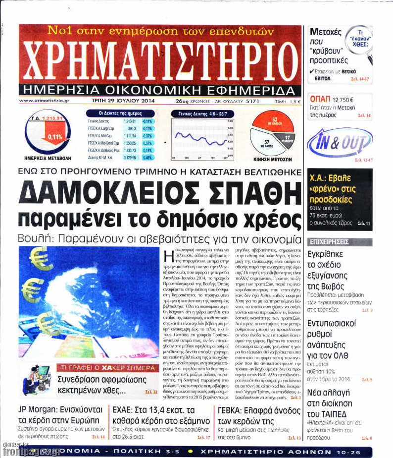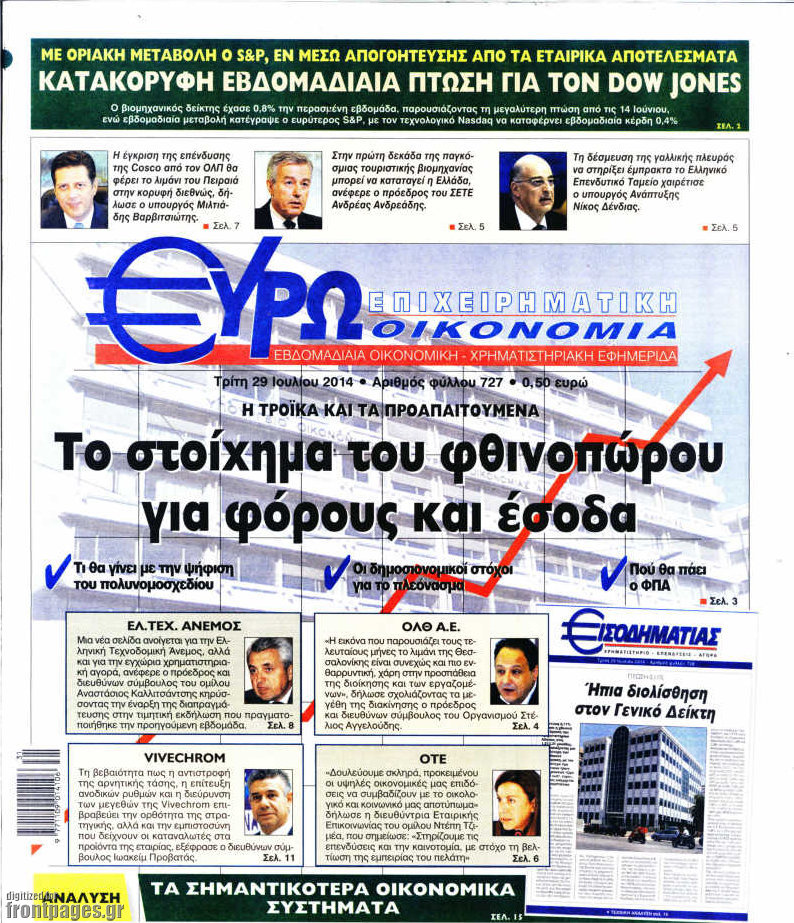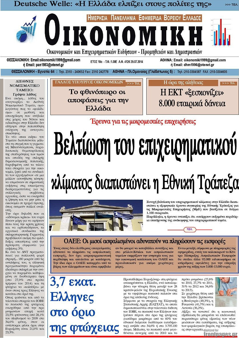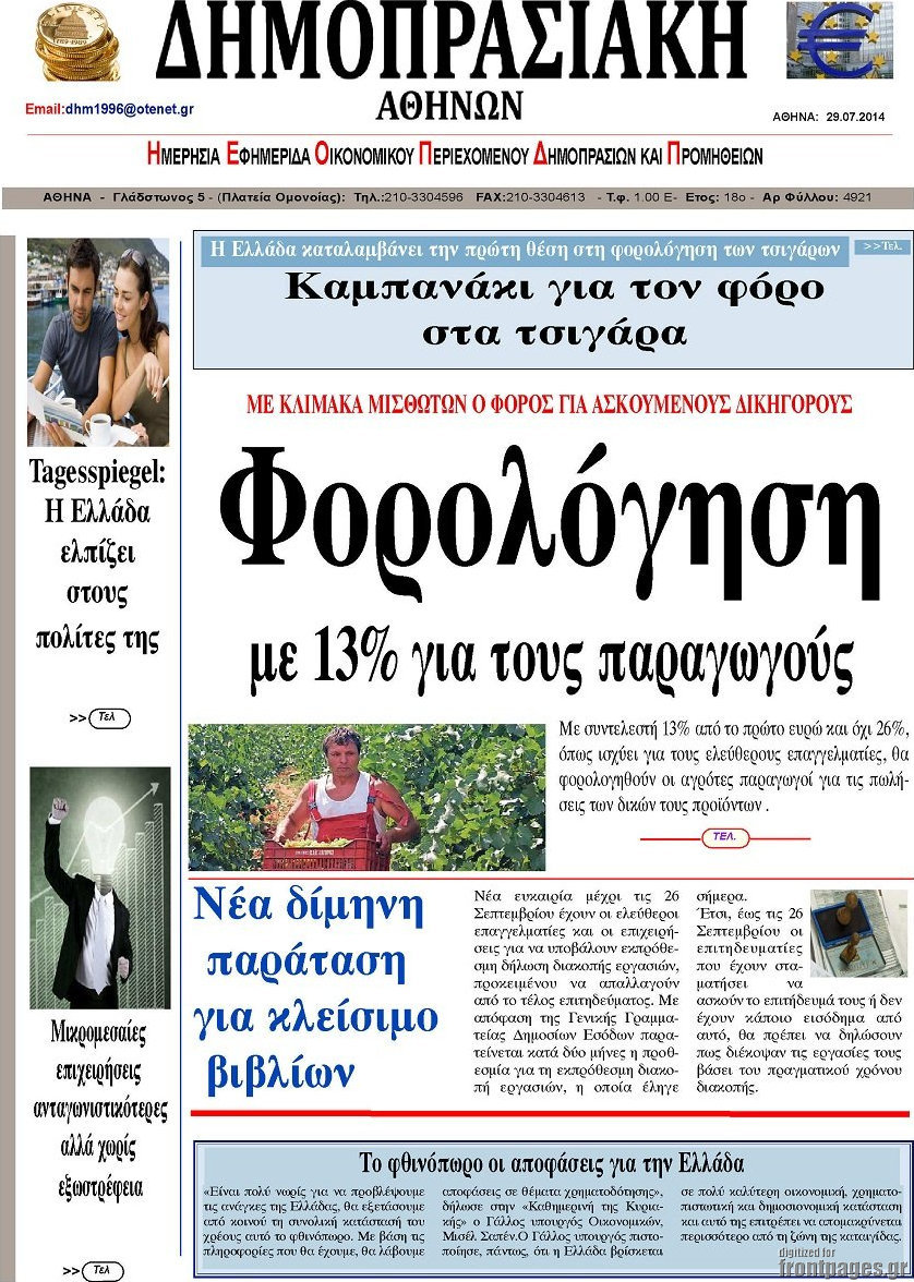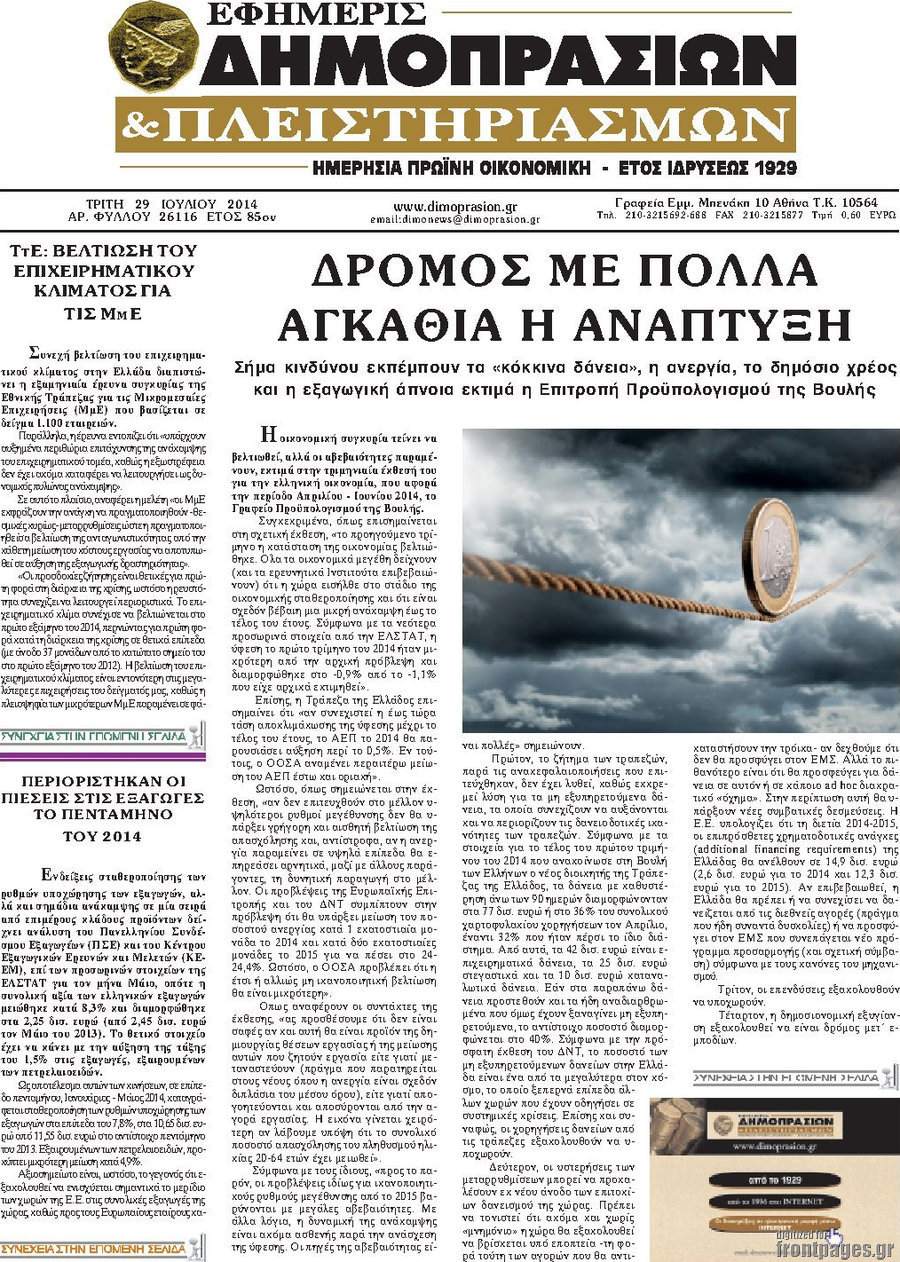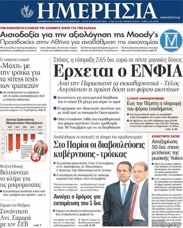 Οι οικονομικές εφημερίδες Enikos Newsroom 07:55, Τρίτη 29 Ιουλίου 2014 Media Οι οικονομικές εφημερίδες Διαβάστε τα πρωτοσέλιδα των οικονομικών εφημερίδων. ΟΙΚΟΝΟΜΙΚΕΣ ΕΦΗΜΕΡΙΔΕΣ ΠΡΩΤΟΣΕΛΙΔΑ Μοιράσου το: σχολίασε κι εσύ (0 σχόλια) Ακολουθήστε το enikos.gr στο Google News και μάθετε πρώτοι όλες τις ειδήσεις Δείτε όλες τις τελευταίες ειδήσεις από την Ελλάδα και τον Κόσμο στο enikos.gr Ειδήσεις Ροή Ειδήσεων 2 ώρες πριν Δημοσκόπηση Metron Analysis: Στις 10 μονάδες η διαφορά ΝΔ-ΠΑΣΟΚ, στην 3η θέση η Πλεύση Ελευθερίας – 8 στους 10 στηρίζουν τον αγώνα των αγροτών 6 ώρες πριν Αγρότες: «Όχι στον διάλογο, μας εμπαίζει η κυβέρνηση» – Αποφάσισαν κλιμάκωση των κινητοποιήσεων, τι θα γίνει τα Χριστούγεννα 2 ώρες πριν Νίκος Παππάς στον ΑΝΤ1: «Δεν κρύβομαι – Μετά το συμβάν ακολούθησα κανονικά το πρόγραμμά μου» – ΒΙΝΤΕΟ 3 ώρες πριν Αθήνα: Εξαρθρώθηκε εγκληματική οργάνωση που διακινούσε ναρκωτικά σε μορφή σοκολάτας – Δύο τράπερ ανάμεσα στους 4 συλληφθέντες – ΒΙΝΤΕΟ 2 ώρες πριν Διαμαντής Καραναστάσης: Οδηγούσε υπό την επήρεια αλκοόλ – Του αφαιρέθηκε το δίπλωμα και του επιβλήθηκε πρόστιμο 350 ευρώ 2 ώρες πριν Manifesting: Πώς να συναντήσετε τον σύντροφο της ζωής σας, ανάλογα με τον μήνα γέννησής σας 4 ώρες πριν Γάμος: 11 ψυχρές αλλά ευγενικές φράσεις, που λέει ένας άνδρας όταν σκέφτεται τον χωρισμό 3 ώρες πριν Σφουγγάρισμα: Η συνήθεια που θα σας βοηθήσει να διατηρήσετε το σπίτι σας καθαρό και τακτοποιημένο 2 ημέρες πριν 20 χρόνια τα Χριστούγεννα ξεκινούν στα Public με μεγάλη ποικιλία σε δώρα! 2 λεπτά πριν Αρχαιολόγοι ανακάλυψαν ρωμαϊκά τεχνουργήματα από μια πόλη που δεν υπήρξε ποτέ – Τα τρία εντυπωσιακά κτίρια και ο αμφορέας με τις… σαρδέλες 4 λεπτά πριν Στο ΟΑΚΑ για το «Παναθηναϊκός – Χάποελ » η Κίμπερλι Γκίλφοϊλ – ΦΩΤΟ 11 λεπτά πριν Ούρσουλα φον ντερ Λάιεν: Μετατίθεται για τον Ιανουάριο η υπογραφή της εμπορικής συμφωνίας «ΕΕ-MERCOSUR» 16 λεπτά πριν Φοινικούντα: Το Σάββατο απολογείται ο 30χρονος γιος γνωστού επιχειρηματία της Πλάκας που παραδόθηκε – Όσα είπε στους αστυνομικούς και ο ρόλος του στο έγκλημα 26 λεπτά πριν Αυξάνουν την πίεση προς την κυβέρνηση οι αγρότες: Κλείνουν παρακαμπτήριους και ανοίγουν διόδια – Τι θα γίνει τις γιορτές ENIKOS NETWORK Σε περίοδο αυξημένης δραστηριότητας η γρίπη στην Ελλάδα-Μέτρα προστασίας από τον ΕΟΔΥ Σκέφτεστε συνέχεια συζητήσεις που έχετε κάνει; Τι σημαίνει αυτό, σύμφωνα με ειδικό Λαγκάρντ: Αισιόδοξη για την ανάπτυξη της Ευρωζώνης, αβέβαιη για τον πληθωρισμό ΑΣΕΠ 2ΓΒ/2025: Σήμερα αρχίζει η υποβολή ενστάσεων – Πότε θα βγουν τα οριστικά αποτελέσματα Χαρτογραφώντας το «σημείο χωρίς επιστροφή»: Για πρώτη φορά αποκαλύπτεται με λεπτομέρεια το ακανθώδες όριο της ατμόσφαιρας τ... Η Google καταργεί τη λειτουργία «dark web report» – Πώς θα μπορούν οι χρήστες να διαγράφουν τα δεδομένα τους περισσότερα 17:45 , Πέμπτη 18 Δεκεμβρίου 2025 ROUK ZOUK: Εορταστικό επεισόδιο με καλεσμένους τους πρωταγωνιστές του «Γιατί ρε πατέρα» Το Σάββατο 20 Δεκεμβρίου στις 21:00, η Ζέτα Μακρυπούλια υποδέχεται εκλεκτούς ηθοποιούς που όλο... 17:20 , Πέμπτη 18 Δεκεμβρίου 2025 Άγιος έρωτας: Η Χριστίνα εξομολογείται στον πατέρα Νικόλαο, απόψε στις 21:00 στον Alpha Η Νότα αποφασίζει να εκδικηθεί τον Πέτρο και τον Στέφανο, για χάρη του Λούη, όμως τα πράγματα ... 16:50 , Πέμπτη 18 Δεκεμβρίου 2025 Να μ’ αγαπάς: Ζωή και Φωτεινή συμφιλιώνονται ως μάνα με κόρη, απόψε στις 20:00 Η ταυτότητα του Άγγελου αποκαλύπτεται στο νέο επεισόδιο της σειράς “Να μ’ αγαπάς... 15:52 , Πέμπ