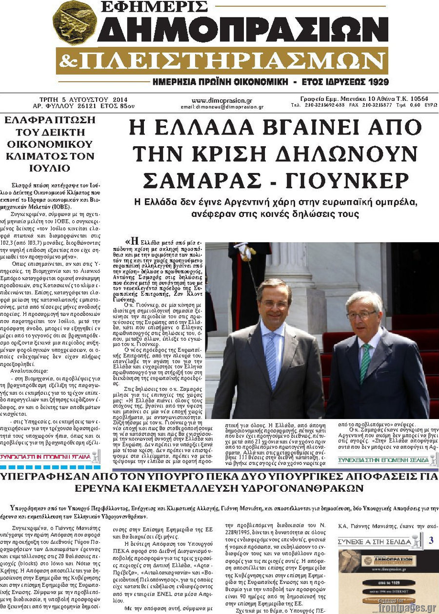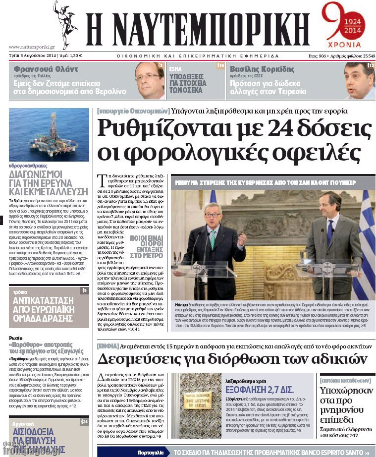 Οι οικονομικές εφημερίδες Enikos Newsroom 07:46, Τρίτη 05 Αυγούστου 2014 Media Οι οικονομικές εφημερίδες Διαβάστε τα πρωτοσέλιδα των οικονομικών εφημερίδων. ΠΡΩΤΟΣΕΛΙΔΑ Μοιράσου το: σχολίασε κι εσύ (0 σχόλια) Ακολουθήστε το enikos.gr στο Google News και μάθετε πρώτοι όλες τις ειδήσεις Δείτε όλες τις τελευταίες ειδήσεις από την Ελλάδα και τον Κόσμο στο enikos.gr Ειδήσεις Ροή Ειδήσεων 9 λεπτά πριν Κλιμακώνουν από σήμερα τις κινητοποιήσεις οι αγρότες: Νέα μπλόκα, κλείσιμο παρακαμπτηρίων και άνοιγμα διοδίων – Το νέο μήνυμα Μητσοτάκη 36 λεπτά πριν Συντάξεις: Οι κερδισμένοι και οι χαμένοι από τις αυξήσεις – Αναλυτικός οδηγός και παραδείγματα 4 ώρες πριν Ευρωπαϊκή Ένωση: Συμφωνία για δάνειο 90 δισ. ευρώ στην Ουκρανία τη διετία 2026-2027 – Μητσοτάκης: Η λύση που προκρίθηκε είναι η ενδεδειγμένη 56 λεπτά πριν Θανατηφόρο τροχαίο στη Νέα Φιλαδέλφεια: Νεκρός 27χρονος οδηγός μηχανής ύστερα από σύγκρουση με τρόλεϊ 8 ώρες πριν ΟΠΕΚΕΠΕ: Προφυλακιστέος ο φερόμενος αρχηγός και ο λογιστής της εγκληματικής οργάνωσης 2 ώρες πριν Οπτική ψευδαίσθηση: Μόνο αν έχεις αετίσια ματιά θα βρεις τον παπαγάλο σε 12 δευτερόλεπτα 2 ώρες πριν Κρύα χέρια και πόδια: Γιατρός εξηγεί ποια είναι η αίτια και πότε πρέπει να ανησυχήσετε 2 ώρες πριν Τα ζώδια σήμερα, Παρασκευή 19 Δεκεμβρίου: Τοξότες, με τη Νέα Σελήνη έρχεται η προσωπική ανανέωσή σας 2 ημέρες πριν 20 χρόνια τα Χριστούγεννα ξεκινούν στα Public με μεγάλη ποικιλία σε δώρα! 4 λεπτά πριν Την Κυριακή με τη Realnews: Δωροεπιταγή 10€ 2 λεπτά πριν Πανεπιστήμιο Μπράουν: Νεκρός ο ύποπτος για την επίθεση 8 λεπτά πριν Τέμπη: Συνεχίζεται σήμερα η δίκη για τη διαχείριση του βιντεοληπτικού υλικού 9 λεπτά πριν Κλιμακώνουν από σήμερα τις κινητοποιήσεις οι αγρότες: Νέα μπλόκα, κλείσιμο παρακαμπτηρίων και άνοιγμα διοδίων – Το νέο μήνυμα Μητσοτάκη 17 λεπτά πριν e-ΕΦΚΑ και ΔΥΠΑ: Τελευταία ημέρα πληρωμών σήμερα ENIKOS NETWORK Άνοια: Ειδικοί προειδοποιούν για 5 κοινές συνήθειες που μπορεί να αυξήσουν τον κίνδυνο 6 Χριστουγεννιάτικα δώρα για όσους τα έχουν όλα – Θα τους εκπλήξουν Συντάξεις: Οι κερδισμένοι και οι χαμένοι από τις αυξήσεις – Αναλυτικός οδηγός Στεγαστικό: Τι λέει η ΠΟΜΙΔΑ για τα νέα μέτρα που ανακοίνωσε ο Κυριάκος Μητσοτάκης Χαρτογραφώντας το «σημείο χωρίς επιστροφή»: Για πρώτη φορά αποκαλύπτεται με λεπτομέρεια το ακανθώδες όριο της ατμόσφαιρας τ... Η Google καταργεί τη λειτουργία «dark web report» – Πώς θα μπορούν οι χρήστες να διαγράφουν τα δεδομένα τους περισσότερα 05:48 , Παρασκευή 19 Δεκεμβρίου 2025 Οι οικονομικές εφημερίδες 19/12/2025 Διαβάστε τα πρωτοσέλιδα από τις οικονομικές εφημερίδες, σήμερα 19/12/2025. 05:43 , Παρασκευή 19 Δεκεμβρίου 2025 Οι αθλητικές εφημερίδες 19/12/2025 Διαβάστε τα πρωτοσέλιδα από τις αθλητικές εφημερίδες, σήμερα 19/12/2025. 05:38 , Παρασκευή 19 Δεκεμβρίου 2025 Οι πολιτικές εφημερίδες 19/12/2025 Διαβάστε τα πρωτοσέλιδα από τις πολιτικές εφημερίδες, σήμερα 19/12/2025. 02:50 , Παρασκευή 19 Δεκεμβρίου 2025 GNTM: «Κλείδωσαν» οι τέσσερις φιναλίστ – Μεγάλη ανατροπή στις τελευταίες αποχωρήσεις Για προτελευταία φορά εμφανίστηκαν στο πλατό του GNTM οι φιναλίστ του φετινού κύκλου, το βράδυ... ΤΕΛΕΥΤΑΙΕΣ ΕΙΔΗΣΕΙΣ 2 λεπτά πριν Πανεπιστήμιο Μπράουν: Νεκρός ο ύποπτος για την επίθεση 8 λεπτά πριν Τέμπη: Συνεχίζεται σήμερα η δίκη για τη διαχείριση του... 9 λεπτά πριν Κλιμακώνουν από σήμερα τις κινητοποιήσεις οι αγρότες:... 17 λεπτά πριν e-ΕΦΚΑ και ΔΥΠΑ: Τελευταία ημέρα πληρωμών σήμερα 24 λεπτά πριν Καιρός: Ηλιοφάνεια σήμερα – Έρχοντ
