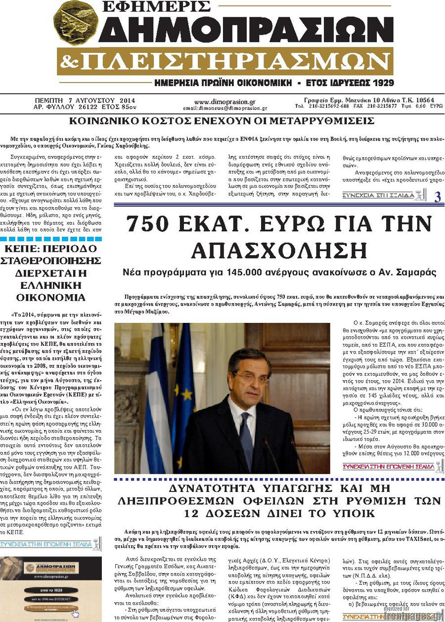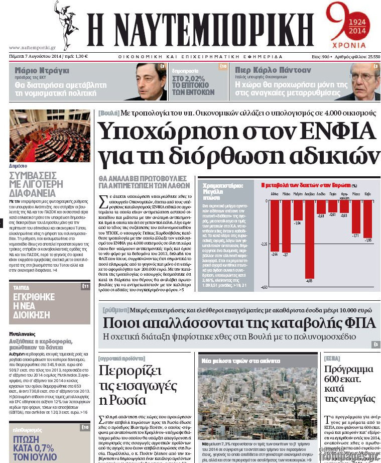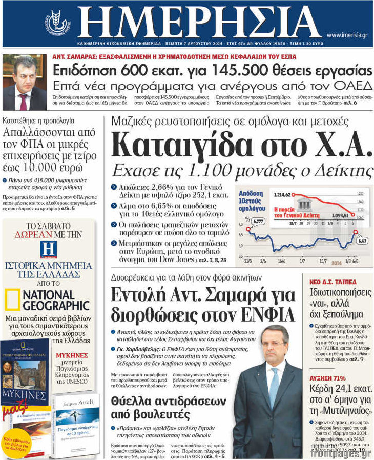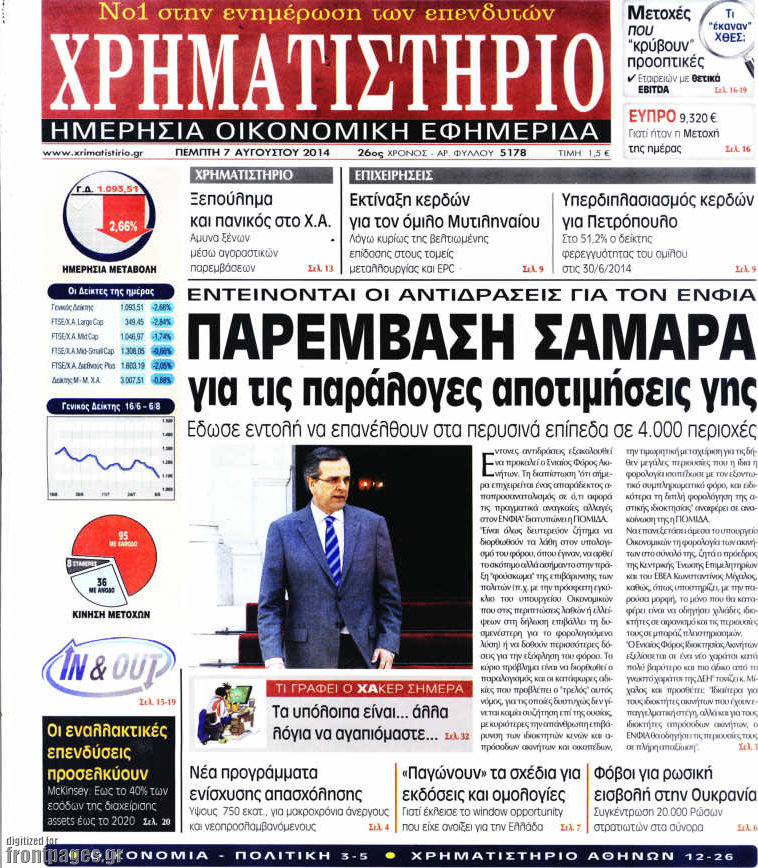 Οι οικονομικές εφημερίδες Enikos Newsroom 09:14, Πέμπτη 07 Αυγούστου 2014 Media Οι οικονομικές εφημερίδες Διαβάστε τα πρωτοσέλιδα των οικονομικών εφημερίδων. ΕΦΗΜΕΡΙΔΕΣ ΟΙΚΟΝΟΜΙΚΕΣ ΕΦΗΜΕΡΙΔΕΣ ΠΡΩΤΟΣΕΛΙΔΑ Μοιράσου το: σχολίασε κι εσύ (0 σχόλια) Ακολουθήστε το enikos.gr στο Google News και μάθετε πρώτοι όλες τις ειδήσεις Δείτε όλες τις τελευταίες ειδήσεις από την Ελλάδα και τον Κόσμο στο enikos.gr Ειδήσεις Ροή Ειδήσεων 5 λεπτά πριν Φοροδιαφυγή: Ποιοι φορολογούμενοι κινδυνεύουν να πληρώσουν «τσουχτερά» πρόστιμα 8 ώρες πριν Εκτός ευρωομάδας ΣΥΡΙΖΑ ο Νίκος Παππάς μετά την επίθεση στον δημοσιογράφο Νίκο Γιαννόπουλο – Η μήνυση και οι νέες δηλώσεις 9 ώρες πριν «Αγριεύουν» οι αγρότες: «Δεν συντρέχει λόγος συνάντησης με τον πρωθυπουργό» – Ώρα αποφάσεων στη σύσκεψη της Πέμπτης 9 ώρες πριν Κυψέλη: Χωρίς την οικογένειά της δίπλα της απολογήθηκε η 16χρονη – «Της είχε επιτεθεί κάποιος για να την βιάσει, φοβήθηκε και κυκλοφορούσε με μαχαίρι» 8 ώρες πριν Politico: Το πρόβλημα της Ευρώπης δεν είναι το Βέλγιο αλλά ο Ντόναλντ Τραμπ 1 ώρα πριν Καούρα: Το μπαχαρικό που είναι «εξίσου αποτελεσματικό» με την ομεπραζόλη, σύμφωνα με ειδικούς 2 ώρες πριν Τα ζώδια σήμερα, Πέμπτη 18 Δεκεμβρίου: Λέοντες, η καρδιά σας θέλει να εκφραστεί 8 ώρες πριν Μυστήριο με τεράστιες κυκλικές πέτρες 200 κιλών – Ανακαλύφθηκαν τυχαία κατά τη διάρκεια οδικών έργων και κανείς δεν ξέρει από πού προέρχονται 22 ώρες πριν 20 χρόνια τα Χριστούγεννα ξεκινούν στα Public με μεγάλη ποικιλία σε δώρα! 3 λεπτά πριν Καιρός: Ηλιοφάνεια σήμερα με παροδικές νεφώσεις – Αναλυτική πρόγνωση ανά περιοχή 5 λεπτά πριν Φοροδιαφυγή: Ποιοι φορολογούμενοι κινδυνεύουν να πληρώσουν «τσουχτερά» πρόστιμα 17 λεπτά πριν Εορτολόγιο: Ποιοι γιορτάζουν σήμερα 18 Δεκεμβρίου 29 λεπτά πριν Επιχειρήσεις: Έρχονται νέα μέτρα φορολογικών ελαφρύνσεων – Τα σχέδια για την προκαταβολή φόρου και το τέλος επιτηδεύματος 36 λεπτά πριν ΗΠΑ: Οριστική άρση κυρώσεων κατά της Συρίας – Ανοίγει ο δρόμος για επενδύσεις ENIKOS NETWORK Μπορείτε να εντοπίσετε το ποντικάκι που κρύβεται πίσω από όλα τα μανιτάρια; Μόνο όσοι έχουν τα μάτια γερακιού μπορούν να λύ... Το «λουλούδι σκαντζόχοιρος» που μπορεί να ενισχύσει το ανοσοποιητικό, να μειώσει τη φλεγμονή και να ρυθμίσει το σάκχαρο Φοροδιαφυγή: Ποιοι φορολογούμενοι κινδυνεύουν να πληρώσουν «τσουχτερά» πρόστιμα ΕΛΣΤΑΤ: Τι δείχνουν τα νέα στοιχεία για τις ηλεκτρονικές παραγγελίες των επιχειρήσεων Χαρτογραφώντας το «σημείο χωρίς επιστροφή»: Για πρώτη φορά αποκαλύπτεται με λεπτομέρεια το ακανθώδες όριο της ατμόσφαιρας τ... Η Google καταργεί τη λειτουργία «dark web report» – Πώς θα μπορούν οι χρήστες να διαγράφουν τα δεδομένα τους περισσότερα 05:48 , Πέμπτη 18 Δεκεμβρίου 2025 Οι οικονομικές εφημερίδες 18/12/2025 Διαβάστε τα πρωτοσέλιδα από τις οικονομικές εφημερίδες, σήμερα 18/12/2025. 05:43 , Πέμπτη 18 Δεκεμβρίου 2025 Οι αθλητικές εφημερίδες 18/12/2025 Διαβάστε τα πρωτοσέλιδα από τις αθλητικές εφημερίδες, σήμερα 18/12/2025. 05:38 , Πέμπτη 18 Δεκεμβρίου 2025 Οι πολιτικές εφημερίδες 18/12/2025 Διαβάστε τα πρωτοσέλιδα από τις πολιτικές εφημερίδες, σήμερα 18/12/2025. 05:22 , Πέμπτη 18 Δεκεμβρίου 2025 Το Ποντίκι σήμερα Πέμπτη 18/12/2025 Διαβάστε το πρωτοσέλιδο της εφημερίδας «Το Ποντίκι» σήμερα 18/12/2025. ΤΕΛΕΥΤΑΙΕΣ ΕΙΔΗΣΕΙΣ 3 λεπτά πριν Καιρός: Ηλιοφάνεια σήμερα με παροδικές νεφώσεις –... 5 λεπτά πριν Φοροδιαφυγή: Ποιοι φορολογούμενοι κινδυνεύουν να... 17 λεπτά πριν Εορτολόγιο: Ποιοι γιορτάζουν σήμερα 18 Δεκεμβρί