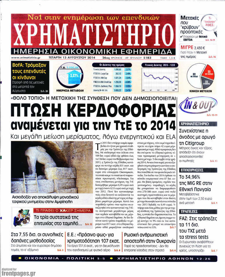 Οι oικονομικές εφημερίδες Enikos Newsroom 08:25, Τετάρτη 13 Αυγούστου 2014 Media Οι oικονομικές εφημερίδες Διαβάστε τα πρωτοσέλιδα των οικονομικών εφημερίδων: ΕΦΗΜΕΡΙΔΕΣ ΟΙΚΟΝΟΜΙΚΕΣ ΕΦΗΜΕΡΙΔΕΣ ΠΡΩΤΟΣΕΛΙΔΑ Μοιράσου το: σχολίασε κι εσύ (0 σχόλια) Ακολουθήστε το enikos.gr στο Google News και μάθετε πρώτοι όλες τις ειδήσεις Δείτε όλες τις τελευταίες ειδήσεις από την Ελλάδα και τον Κόσμο στο enikos.gr Ειδήσεις Ροή Ειδήσεων 34 λεπτά πριν ΣΥΡΙΖΑ: Διέγραψε τον ευρωβουλευτή Νίκο Παππά μετά την μήνυση δημοσιογράφου για ξυλοδαρμό 2 ώρες πριν Πώς στήθηκε η επιχείρηση «Ίπαλλος» που οδήγησε στη σύλληψη του «Έλληνα Εσκομπάρ» – «Ο πόλεμος ενάντια στους εμπόρους ναρκωτικών θα συνεχιστεί» 1 ώρα πριν Δίκη Χρυσής Αυγής: Την ενοχή και των 42 κατηγορουμένων ζητά η εισαγγελέας 2 ώρες πριν Κυψέλη: Στη φυλακή η 16χρονη που μαχαίρωσε συμμαθήτριά της 4 ώρες πριν Αμοργός: «Θα προσπαθήσω να το κάνω κάθε μέρα» – Ποιος είναι ο αγρότης που έστησε μόνος του το πρώτο μπλόκο στο νησί 2 ώρες πριν Τα 3 ζώδια που θα δουν τη ζωή τους να αλλάζει ριζικά το 2026 – «Όλα γίνονται καλύτερα σταδιακά» 7 ώρες πριν «Δεν είχα κλάψει από τότε που διαγνώστηκα με καρκίνο, ώσπου ένα τηλεφώνημα με έκανε να λυγίσω» – Η συγκλονιστική εξομολόγηση ενός άνδρα 3 ώρες πριν Ο σπάνιος σεισμός που έλυσε τα χέρια των επιστημόνων – Αποκάλυψε ακριβώς όσα αναζητούσαν 8 ώρες πριν 20 χρόνια τα Χριστούγεννα ξεκινούν στα Public με μεγάλη ποικιλία σε δώρα! 48 δευτερόλεπτα πριν Βασιλιάς Κάρολος: Η κίνηση απομόνωσης προς τον αδελφό του Άντριου, στο γεύμα των Χριστουγέννων 5 λεπτά πριν Παύλος Μαρινάκης για Νίκο Παππά: Έπρεπε να χειροδικήσει για να αναγκαστεί ο ΣΥΡΙΖΑ να τον διαγράψει 12 λεπτά πριν Ελένη Βασάρα: Ανοιχτό το ενδεχόμενο καθαίρεσης της Καρυστιανού από την προεδρία του Συλλόγου Θυμάτων Τεμπών – Η ανάρτηση του Δημήτρη Πλακιά 17 λεπτά πριν Μαργαρίτα Θεοδωράκη για Γιώργο Χατζιδάκι: Προσβλητικό το εξώδικο – Ο Μίκης έγραψε «απαγορεύεται το απαγορεύεται» 23 λεπτά πριν Ρόδος: Ανήλικος που βρισκόταν σε σχολική εκδρομή μεταφέρθηκε μεθυσμένος στο νοσοκομείο – 2 συλλήψεις ENIKOS NETWORK Γιατί αναζητούμε τα Χριστούγεννα όλο και νωρίτερα; Ποιοι οι ψυχολογικοί και οι συναισθηματικοί λόγοι Σοβαροί κίνδυνοι από τη λάθος χορήγηση φαρμάκου για τις αιμορραγίες-Συστάσεις προς τους γιατρούς Δάνεια σε ελβετικό φράγκο: Αύριο η κατάθεση της τροπολογίας στη Βουλή – Όλες οι λεπτομέρειες Επίδομα παιδιού: Πότε θα δοθεί η τελευταία δόση για το 2025 από τον ΟΠΕΚΑ και τι πρέπει να γνωρίζετε Χαρτογραφώντας το «σημείο χωρίς επιστροφή»: Για πρώτη φορά αποκαλύπτεται με λεπτομέρεια το ακανθώδες όριο της ατμόσφαιρας τ... Η Google καταργεί τη λειτουργία «dark web report» – Πώς θα μπορούν οι χρήστες να διαγράφουν τα δεδομένα τους περισσότερα 12:35 , Τετάρτη 17 Δεκεμβρίου 2025 Μίρκα Παπακωνσταντίνου: «Δεν ήμουν αισιόδοξη για τα νούμερα – Είμαι ρεαλίστρια» Στα γυρίσματα του εορταστικού επεισοδίου της αγαπημένης σειράς “Το Σόι Σου”, βρέθηκε η κάμερα ... 12:12 , Τετάρτη 17 Δεκεμβρίου 2025 Ακούστε την εκπομπή του Νίκου Χατζηνικολάου 17/12/2025 Ακούστε την εκπομπή του Νίκου Χατζηνικολάου στον ραδιοφωνικό σταθμό RealFm 97,8, την Τετάρτη 1... 11:35 , Τετάρτη 17 Δεκεμβρίου 2025 Home Alone: Το σπίτι της ταινίας θα ανακαινιστεί – Επιστροφή στην αισθητική της δεκαετίας του ’90 Οι νέοι ιδιοκτήτες του πραγματικού σπιτιού που παρουσιάζεται στην κλασική ταινία του 1990 «Hom... 11:25 , Τετάρτη 17 Δεκεμβρίου 2025 Grand Hotel: Απόψε το τελευταίο επεισό