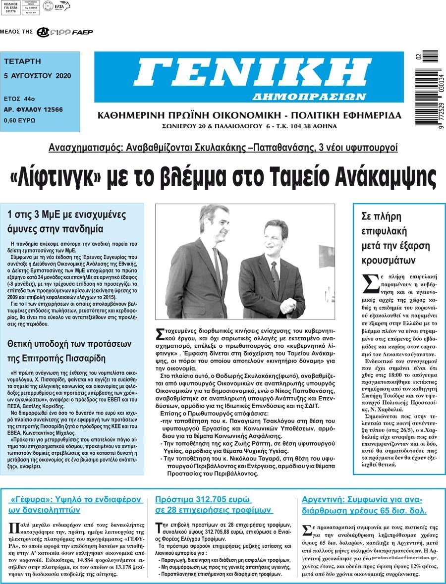 Οι οικονομικές εφημερίδες 5/8/2020 Σήφης Γαρυφαλάκης 06:16, Τετάρτη 05 Αυγούστου 2020 Media Διαβάστε τα πρωτοσέλιδα των οικονομικών εφημερίδων… ΕΦΗΜΕΡΙΔΕΣ ΟΙΚΟΝΟΜΙΚΕΣ ΕΦΗΜΕΡΙΔΕΣ ΠΡΩΤΟΣΕΛΙΔΑ ΠΡΩΤΟΣΕΛΙΔΑ ΕΦΗΜΕΡΙΔΩΝ Μοιράσου το: σχολίασε κι εσύ (0 σχόλια) Ακολουθήστε το enikos.gr στο Google News και μάθετε πρώτοι όλες τις ειδήσεις Δείτε όλες τις τελευταίες ειδήσεις από την Ελλάδα και τον Κόσμο στο enikos.gr Ειδήσεις Ροή Ειδήσεων 18 λεπτά πριν LIVE από Λοριάν: Η ύψωση της ελληνικής σημαίας στην πρώτη φρεγάτα FDI Belharra ΚΙΜΩΝ 30 λεπτά πριν Στην Ευελπίδων ο 22χρονος που καταγγέλλει τον Γιώργο Μαζωνάκη για ασελγείς πράξεις – «Έχουμε εμπιστοσύνη στη Δικαιοσύνη, καμία εκβίαση» λέει ο δικηγόρος του 3 ώρες πριν Νίκος Παππάς: Άφαντος παραμένει ο ευρωβουλευτής μετά την επίθεση στον Νίκο Γιαννόπουλο 1 ώρα πριν Βρυξέλλες: Ένταση με τους αγρότες – Πέταξαν πατάτες και κροτίδες 3 ώρες πριν Συναγερμός και στην Ελλάδα για τη «σούπερ γρίπη»: Πόσο σοβαρή είναι και ποιοι θεωρούνται πιο ευάλωτοι – 3 ειδικοί μιλούν στο enikos.gr 3 ώρες πριν Τα 4 ζώδια που λαμβάνουν ένα ισχυρό σημάδι από το σύμπαν – «Αποκαλύπτεται κάτι που μπορεί να αλλάξει τη ζωή μας» 4 ώρες πριν Η σύζυγός του παραπονιέται για τα χρήματα που της δίνει για ψώνια κάθε μήνα – «Λέει ότι νιώθει φτωχή και της είπα να βρει δουλειά» 3 ώρες πριν Αν κάνετε συνεχώς αυτά τα 8 πράγματα με τα κατοικίδιά σας, σας λείπει η ανθρώπινη επαφή 1 ημέρα πριν 20 χρόνια τα Χριστούγεννα ξεκινούν στα Public με μεγάλη ποικιλία σε δώρα! 4 λεπτά πριν Χαρίτσης: «Ο κ. Μητσοτάκης έδωσε το πράσινο φως για το λουκέτο στα ΕΛΤΑ» 9 λεπτά πριν Κατερίνα Καινούργιου για Γιώργο Μαζωνάκη: «Θεωρώ φρικτό αυτό το τσίρκο που έχει συμβεί τις τελευταίες μέρες στα Μέσα» 15 λεπτά πριν Μαρινάκης για Νίκο Παππά: Να δώσει απαντήσεις ο άνθρωπος που τον έβαλε στην πολιτική – Ήταν προσωπική επιλογή Τσίπρα 18 λεπτά πριν LIVE από Λοριάν: Η ύψωση της ελληνικής σημαίας στην πρώτη φρεγάτα FDI Belharra ΚΙΜΩΝ 20 λεπτά πριν Θεσσαλονίκη: Υπό κράτηση ο 48χρονος που κατηγορείται για φοροδιαφυγή ύψους 29,6 εκατ. ευρώ στη Γερμανία ENIKOS NETWORK Όμιλος ΙΑΤΡΟΠΟΛΙΣ: Πρωτοπόροι στη μοριακή απεικόνιση και στην πυρηνική ιατρική Τι περιλαμβάνει το σχέδιο της ΕΕ για την καρδιαγγειακή υγεία-Οι προτάσεις της Ελληνικής Καρδιολογικής Εταιρείας Ενοίκια: Τι αλλάζει με τη νέα τροπολογία στην πληρωμή Ειδικό επιδοτούμενο πρόγραμμα κατάρτισης από ΔΥΠΑ και ΕΛΓΟ – ΔΗΜΗΤΡΑ: Έως αύριο οι ενστάσεις – Όσα πρέπει να γνωρίζετε Χαρτογραφώντας το «σημείο χωρίς επιστροφή»: Για πρώτη φορά αποκαλύπτεται με λεπτομέρεια το ακανθώδες όριο της ατμόσφαιρας τ... Η Google καταργεί τη λειτουργία «dark web report» – Πώς θα μπορούν οι χρήστες να διαγράφουν τα δεδομένα τους περισσότερα 08:00 , Πέμπτη 18 Δεκεμβρίου 2025 Την Κυριακή με τη Realnews: Δωροεπιταγή 10€ Δωροεπιταγή αξίας 10€ για αγορές άνω των 60€ από τα πολυκαταστήματα FactoryOutlet H προσφορά ι... 07:50 , Πέμπτη 18 Δεκεμβρίου 2025 «Το σόι σου»: Backstage στα γυρίσματα για το εορταστικό επεισόδιο «Το σόι σου» φορά τα γιορτινά του για τα Χριστούγεννα και η Όλγα Λαφαζάνη, με την κάμερα του «... 07:36 , Πέμπτη 18 Δεκεμβρίου 2025 Οι αθλητικές μεταδόσεις 18/12/2025 – Πού θα δείτε τον αγώνα της ΑΕΚ με την Κραϊόβα για το Conference League Τα ματς ΑΕΚ – Ουνιβερσιτάτεα Κραϊόβα για το Conference League και Παναθηναϊκός – Χάποελ Τελ Αβ... 05:48 , Πέμπτη 18 Δεκεμβρίου 2025 Οι οικονομικές εφημερίδες 18/12/2025 Διαβάστε τα πρωτοσέλιδα από τις οικονομικές εφημερίδες, σήμερα 18/12/2025. ΤΕΛΕΥΤΑΙΕΣ ΕΙ