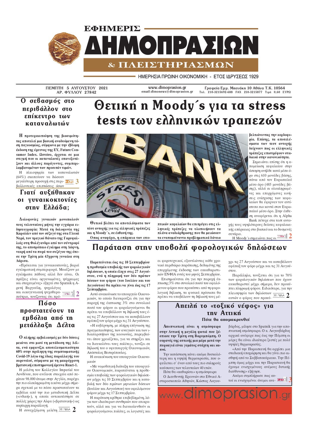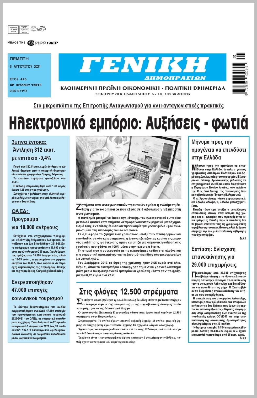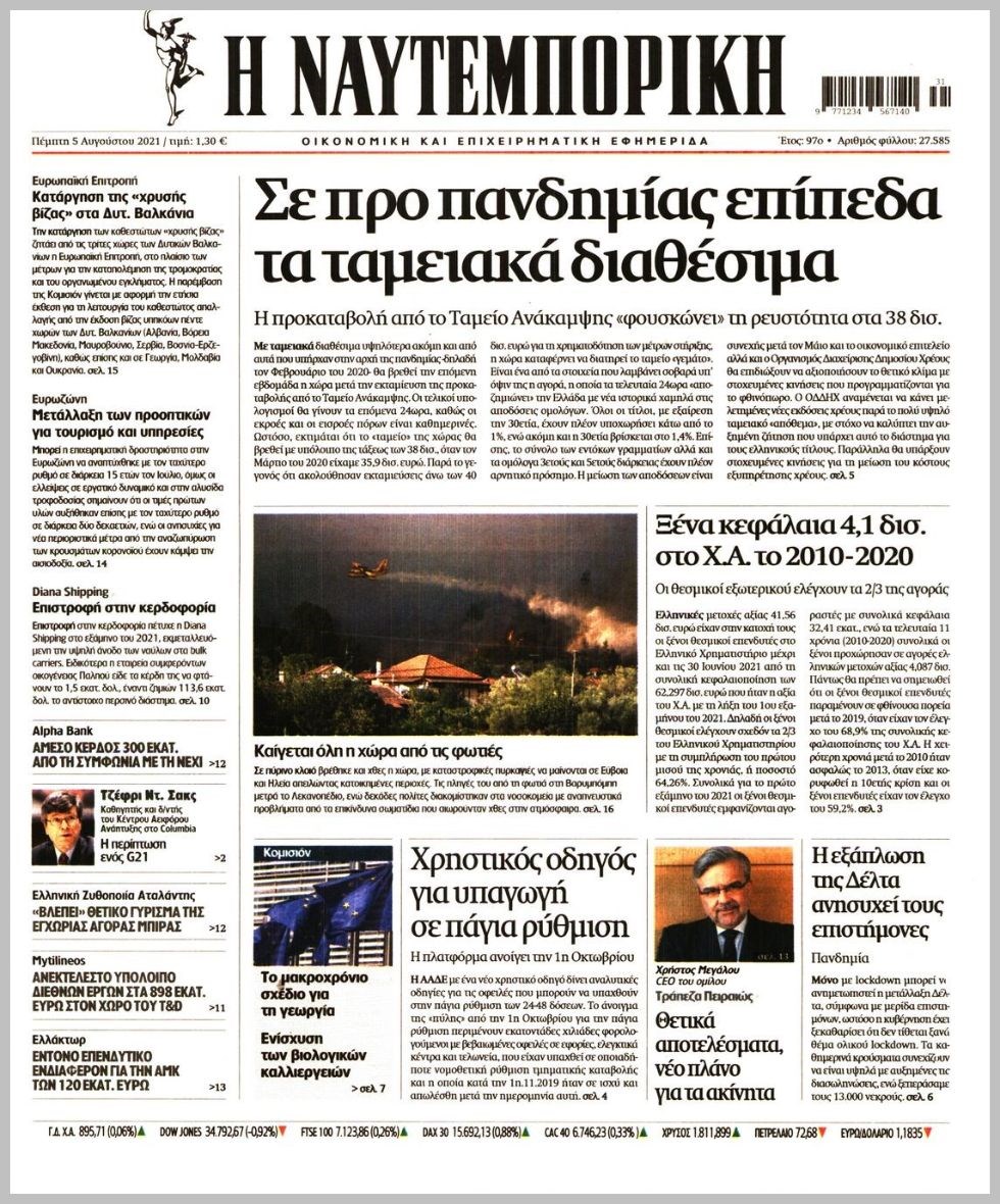 Οι οικονομικές εφημερίδες 5/8/2021 Διονύσης Νίκκας 06:56, Πέμπτη 05 Αυγούστου 2021 Media Διαβάστε τα πρωτοσέλιδα των οικονομικών εφημερίδων… ΟΙΚΟΝΟΜΙΚΕΣ ΕΦΗΜΕΡΙΔΕΣ Μοιράσου το: σχολίασε κι εσύ (0 σχόλια) Ακολουθήστε το enikos.gr στο Google News και μάθετε πρώτοι όλες τις ειδήσεις Δείτε όλες τις τελευταίες ειδήσεις από την Ελλάδα και τον Κόσμο στο enikos.gr Ειδήσεις Ροή Ειδήσεων 4 ώρες πριν Αυξάνουν την πίεση προς την κυβέρνηση οι αγρότες: Κλείνουν παρακαμπτήριους και ανοίγουν διόδια – Τι θα γίνει τις γιορτές 3 ώρες πριν ΟΠΕΚΕΠΕ: Προφυλακιστέος ο φερόμενος αρχηγός και ο λογιστής της εγκληματικής οργάνωσης 4 ώρες πριν Φοινικούντα: Το Σάββατο απολογείται ο 30χρονος γιος γνωστού επιχειρηματία της Πλάκας που παραδόθηκε – Όσα είπε στους αστυνομικούς και ο ρόλος του στο έγκλημα 4 ώρες πριν Μπορεί ο Μαδούρο να αντέξει τον αποκλεισμό του Τραμπ; Τι θα χρειαστεί η Ουάσινγκτον για να τον ανατρέψει 3 ώρες πριν ΑΕΚ – Κραϊόβα 3-2: Επική ανατροπή και πρόκριση στους «16» του Conference League η Ένωση 4 ώρες πριν Αρχαιολόγοι ανακάλυψαν ρωμαϊκά τεχνουργήματα από μια πόλη που δεν υπήρξε ποτέ – Τα τρία εντυπωσιακά κτίρια και ο αμφορέας με τις… σαρδέλες 5 ώρες πριν Ύπνος: Η απλή βραδινή ρουτίνα για να προστατεύσετε τα μαλλιά σας από το κρύο κατά τη διάρκεια του χειμώνα 6 ώρες πριν Manifesting: Πώς να συναντήσετε τον σύντροφο της ζωής σας, ανάλογα με τον μήνα γέννησής σας 2 ημέρες πριν 20 χρόνια τα Χριστούγεννα ξεκινούν στα Public με μεγάλη ποικιλία σε δώρα! 13 λεπτά πριν Γιώργος Μαζωνάκης: Αποθεώθηκε στην πρεμιέρα του στην «Ακτή Πειραιώς» λίγες ώρες μετά τις καταγγελίες – «Είμαι αληθινός», είπε με νόημα 28 λεπτά πριν Πόλεμος στην Ουκρανία: Ρωσικά drones έπληξαν την Οδησσό – Μία νεκρή και ζημιές σε ενεργειακές υποδομές 36 λεπτά πριν ΑΕΚ-Κραϊόβα: Τα highlights της μυθικής ανατροπής της «Ένωσης» 51 λεπτά πριν Μιχάλης Χρυσοχοΐδης από την Κωνσταντινούπολη: Κοινές επιχειρήσεις Ελλάδας – Τουρκίας ενάντια στο οργανωμένο έγκλημα 1 ώρα πριν Μάρκο Νίκολιτς: «Είμαι περήφανος για τους παίκτες μου, όποιος αντίπαλος και να έρθει θα προετοιμαστούμε» ENIKOS NETWORK Σε περίοδο αυξημένης δραστηριότητας η γρίπη στην Ελλάδα-Μέτρα προστασίας από τον ΕΟΔΥ Σκέφτεστε συνέχεια συζητήσεις που έχετε κάνει; Τι σημαίνει αυτό, σύμφωνα με ειδικό Στεγαστικό: Τι λέει η ΠΟΜΙΔΑ για τα νέα μέτρα που ανακοίνωσε ο Κυριάκος Μητσοτάκης Λαγκάρντ: Αισιόδοξη για την ανάπτυξη της Ευρωζώνης, αβέβαιη για τον πληθωρισμό Χαρτογραφώντας το «σημείο χωρίς επιστροφή»: Για πρώτη φορά αποκαλύπτεται με λεπτομέρεια το ακανθώδες όριο της ατμόσφαιρας τ... Η Google καταργεί τη λειτουργία «dark web report» – Πώς θα μπορούν οι χρήστες να διαγράφουν τα δεδομένα τους περισσότερα 17:45 , Πέμπτη 18 Δεκεμβρίου 2025 ROUK ZOUK: Εορταστικό επεισόδιο με καλεσμένους τους πρωταγωνιστές του «Γιατί ρε πατέρα» Το Σάββατο 20 Δεκεμβρίου στις 21:00, η Ζέτα Μακρυπούλια υποδέχεται εκλεκτούς ηθοποιούς που όλο... 17:20 , Πέμπτη 18 Δεκεμβρίου 2025 Άγιος έρωτας: Η Χριστίνα εξομολογείται στον πατέρα Νικόλαο, απόψε στις 21:00 στον Alpha Η Νότα αποφασίζει να εκδικηθεί τον Πέτρο και τον Στέφανο, για χάρη του Λούη, όμως τα πράγματα ... 16:50 , Πέμπτη 18 Δεκεμβρίου 2025 Να μ’ αγαπάς: Ζωή και Φωτεινή συμφιλιώνονται ως μάνα με κόρη, απόψε στις 20:00 Η ταυτότητα του Άγγελου αποκαλύπτεται στο νέο επεισόδιο της σειράς “Να μ’ αγαπάς... 15:52 , Πέμπτη 18 Δεκεμβρίου 2025 Το Σπίτι Δίπλα Στο Ποτάμι: Το καθηλωτικό τελευταίο επεισόδιο για το 2025 απόψε στις 22:30 Καθηλών