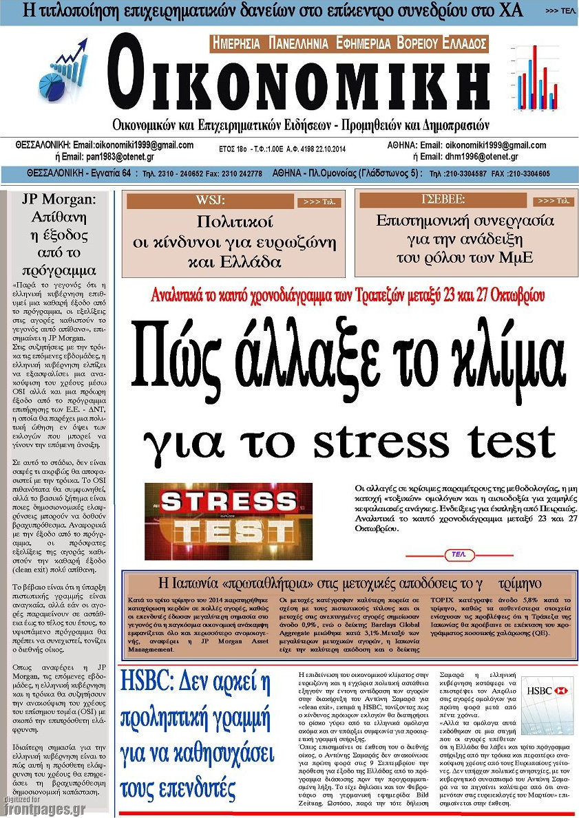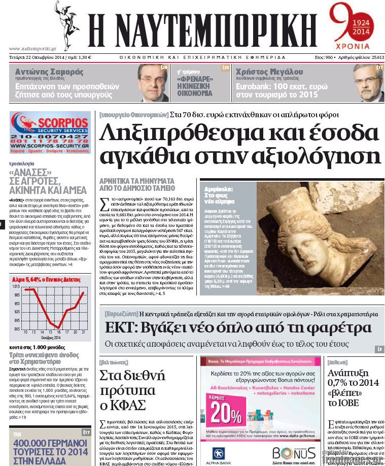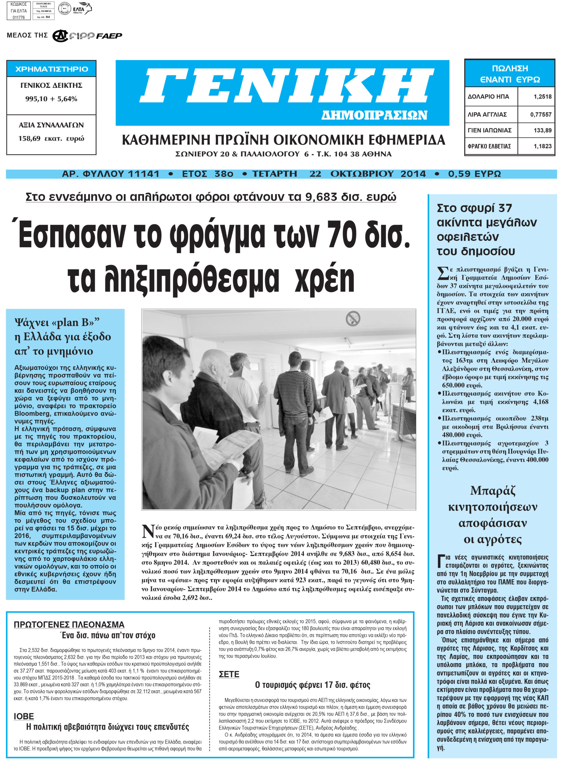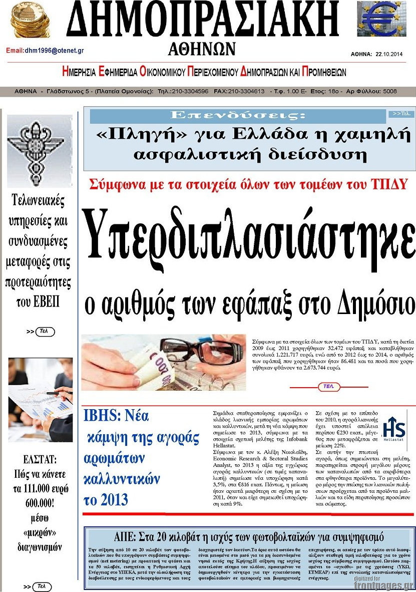 Οι οικονομικές εφημερίδες Enikos Newsroom 08:12, Τετάρτη 22 Οκτωβρίου 2014 Media Οι οικονομικές εφημερίδες Διαβάστε τα πρωτοσέλιδα των οικονομικών εφημερίδων: ΕΦΗΜΕΡΙΔΕΣ ΟΙΚΟΝΟΜΙΚΕΣ ΕΦΗΜΕΡΙΔΕΣ ΠΡΩΤΟΣΕΛΙΔΑ Μοιράσου το: σχολίασε κι εσύ (0 σχόλια) Ακολουθήστε το enikos.gr στο Google News και μάθετε πρώτοι όλες τις ειδήσεις Δείτε όλες τις τελευταίες ειδήσεις από την Ελλάδα και τον Κόσμο στο enikos.gr Ειδήσεις Ροή Ειδήσεων 2 ώρες πριν Εκτός ευρωομάδας ΣΥΡΙΖΑ ο Νίκος Παππάς μετά την επίθεση στον δημοσιογράφο Νίκο Γιαννόπουλο – Η μήνυση και οι νέες δηλώσεις 2 ώρες πριν «Αγριεύουν» οι αγρότες: «Δεν συντρέχει λόγος συνάντησης με τον πρωθυπουργό» – Ώρα αποφάσεων στη σύσκεψη της Πέμπτης 2 ώρες πριν Κυψέλη: Χωρίς την οικογένειά της δίπλα της απολογήθηκε η 16χρονη – «Της είχε επιτεθεί κάποιος για να την βιάσει, φοβήθηκε και κυκλοφορούσε με μαχαίρι» 2 ώρες πριν Politico: Το πρόβλημα της Ευρώπης δεν είναι το Βέλγιο αλλά ο Ντόναλντ Τραμπ 4 ώρες πριν Αλεξανδρούπολη: Πολυοργανική ανεπάρκεια λόγω υποσιτισμού η αιτία θανάτου του 3χρονου αγοριού 2 ώρες πριν Μυστήριο με τεράστιες κυκλικές πέτρες 200 κιλών – Ανακαλύφθηκαν τυχαία κατά τη διάρκεια οδικών έργων και κανείς δεν ξέρει από πού προέρχονται 3 ώρες πριν Ύπνος: Ειδικός εξηγεί τον πραγματικό λόγο που ξυπνάτε στις 4 τα ξημερώματα – Ο ρόλος των ορμονών και του κιρκάδιου ρυθμού 4 ώρες πριν Αριθμολογία: Οι άνθρωποι που έχουν γεννηθεί αυτές τις 4 ημερομηνίες, είναι τρυφεροί και αγαπούν ανιδιοτελώς 16 ώρες πριν 20 χρόνια τα Χριστούγεννα ξεκινούν στα Public με μεγάλη ποικιλία σε δώρα! 4 λεπτά πριν Σάρα Εσκενάζυ: Η πρώτη ανάρτηση για το θάνατο του πατέρα της, Αλμπέρτο Εσκενάζυ και η επιθυμία της οικογένειας 20 λεπτά πριν Παρί Σεν Ζερμέν – Φλαμένγκο 2-1 πεν. (1-1 κ.δ.): Οι Γάλλοι σήκωσαν και το Διηπειρωτικό με ήρωα τον Σαφόνοφ που έπιασε 4 πέναλτι 35 λεπτά πριν Βέλγους πολιτικούς και επικεφαλής χρηματοπιστωτικών ιδρυμάτων στοχοποιεί η Μόσχα για τα κατασχεθέντα περιουσιακά στοιχεία 50 λεπτά πριν ΗΠΑ: Αναζητείται δεύτερος ύποπτος για την επίθεση στο πανεπιστήμιο Μπράουν 1 ώρα πριν Λεωφόρος Αλεξάνδρας: Δεν εντοπίστηκε βόμβα έξω από το κολλέγιο – Προσήχθη άνδρας για το προειδοποιητικό σημείωμα ENIKOS NETWORK Αϋπνία: Το κόλπο που θα σας βοηθήσει να κοιμηθείτε απόψε – Είναι απλό και έχει αποτέλεσμα 2,6 εκατομμύρια πολίτες έχουν ήδη εμβολιαστεί κατά της γρίπης ΕΛΣΤΑΤ: Τι δείχνουν τα νέα στοιχεία για τις ηλεκτρονικές παραγγελίες των επιχειρήσεων ΚΕΠΕ: Οι 3 διακριτές συμβολές των ΜμΕ και της μεταποίησης στην ελληνική οικονομία Χαρτογραφώντας το «σημείο χωρίς επιστροφή»: Για πρώτη φορά αποκαλύπτεται με λεπτομέρεια το ακανθώδες όριο της ατμόσφαιρας τ... Η Google καταργεί τη λειτουργία «dark web report» – Πώς θα μπορούν οι χρήστες να διαγράφουν τα δεδομένα τους περισσότερα 22:24 , Τετάρτη 17 Δεκεμβρίου 2025 Το Σπίτι Δίπλα Στο Ποτάμι: Σε κίνδυνο η υγεία του Απόστολου – Τι θα δούμε απόψε “Το Σπίτι Δίπλα στο Ποτάμι” ξετυλίγει το νήμα της ζωής των πέντε αδελφών με καταισ... 21:14 , Τετάρτη 17 Δεκεμβρίου 2025 Παιχνίδια Εκδίκησης: Θα καταφέρει ο Χρήστος να κλονίσει την εμπιστοσύνη της Μάγιας απέναντι στον Άγη; Τα «Παιχνίδια Εκδίκησης» έρχονται απόψε στις 22:30, στον Αντ1, με το τελευταίο επεισόδιο της χ... 20:57 , Τετάρτη 17 Δεκεμβρίου 2025 Άγιος Έρωτας: Η Χλόη καταθέτει εναντίον του πατέρα της και ο Χάρης αποκαλύπτει στον Κλεάνθη ότι δεν είναι ο βιολογικός του πατέρας. Γεμάτο αποκαλύψεις είναι το νέο επεισό