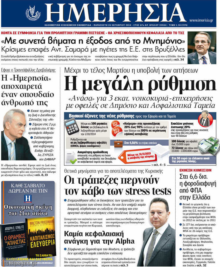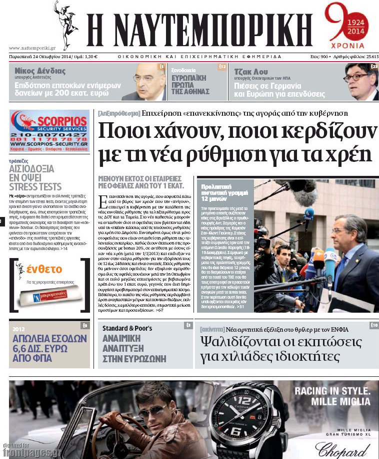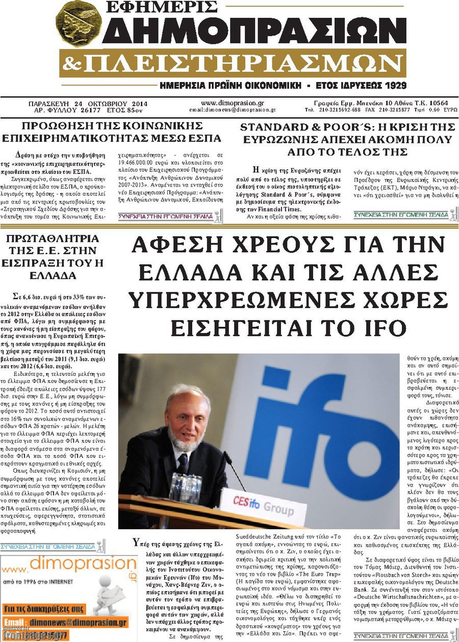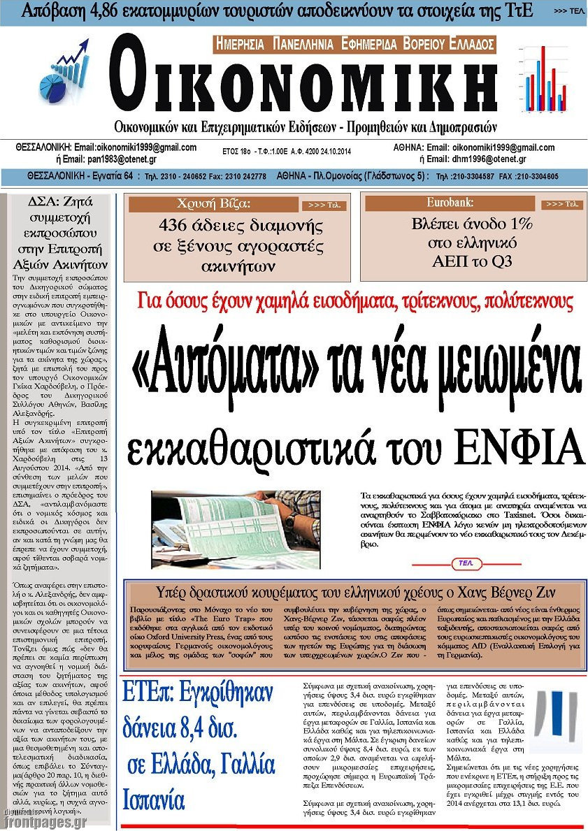 Οι οικονομικές εφημερίδες Enikos Newsroom 08:15, Παρασκευή 24 Οκτωβρίου 2014 Media Οι οικονομικές εφημερίδες Διαβάστε τα πρωτοσέλιδα των οικονομικών εφημερίδων: ΕΦΗΜΕΡΙΔΕΣ ΟΙΚΟΝΟΜΙΚΕΣ ΕΦΗΜΕΡΙΔΕΣ ΠΡΩΤΟΣΕΛΙΔΑ Μοιράσου το: σχολίασε κι εσύ (0 σχόλια) Ακολουθήστε το enikos.gr στο Google News και μάθετε πρώτοι όλες τις ειδήσεις Δείτε όλες τις τελευταίες ειδήσεις από την Ελλάδα και τον Κόσμο στο enikos.gr Ειδήσεις Ροή Ειδήσεων 2 ώρες πριν Δημοσκόπηση Metron Analysis: Στις 10 μονάδες η διαφορά ΝΔ-ΠΑΣΟΚ, στην 3η θέση η Πλεύση Ελευθερίας – 8 στους 10 στηρίζουν τον αγώνα των αγροτών 6 ώρες πριν Αγρότες: «Όχι στον διάλογο, μας εμπαίζει η κυβέρνηση» – Αποφάσισαν κλιμάκωση των κινητοποιήσεων, τι θα γίνει τα Χριστούγεννα 1 ώρα πριν Νίκος Παππάς στον ΑΝΤ1: «Δεν κρύβομαι – Μετά το συμβάν ακολούθησα κανονικά το πρόγραμμά μου» – ΒΙΝΤΕΟ 3 ώρες πριν Αθήνα: Εξαρθρώθηκε εγκληματική οργάνωση που διακινούσε ναρκωτικά σε μορφή σοκολάτας – Δύο τράπερ ανάμεσα στους 4 συλληφθέντες – ΒΙΝΤΕΟ 1 ώρα πριν Διαμαντής Καραναστάσης: Οδηγούσε υπό την επήρεια αλκοόλ – Του αφαιρέθηκε το δίπλωμα και του επιβλήθηκε πρόστιμο 350 ευρώ 2 ώρες πριν Manifesting: Πώς να συναντήσετε τον σύντροφο της ζωής σας, ανάλογα με τον μήνα γέννησής σας 4 ώρες πριν Γάμος: 11 ψυχρές αλλά ευγενικές φράσεις, που λέει ένας άνδρας όταν σκέφτεται τον χωρισμό 3 ώρες πριν Σφουγγάρισμα: Η συνήθεια που θα σας βοηθήσει να διατηρήσετε το σπίτι σας καθαρό και τακτοποιημένο 2 ημέρες πριν 20 χρόνια τα Χριστούγεννα ξεκινούν στα Public με μεγάλη ποικιλία σε δώρα! 6 λεπτά πριν Αυξάνουν την πίεση προς την κυβέρνηση οι αγρότες: Κλείνουν παρακαμπτήριους και ανοίγουν διόδια – Τι θα γίνει τις γιορτές 11 λεπτά πριν Ελισάβετ Κωνσταντινίδου για τον Γεράσιμο Μιχελή και την Πόπη Χριστοδούλου: «Ξέρω ότι έχουν πάει απλώς κάπου αλλού, ότι δεν είναι ο θάνατος έτσι όπως τον έχουμε στο μυαλό μας» 16 λεπτά πριν Κρήτη: Νέες αποκαλύψεις για τον 54χρονο που κατηγορείται ότι εξαπάτησε τους γονείς του 33χρονου – Ζητούσε τρίχες αγνοουμένων 23 λεπτά πριν Τσιάρας: Δεν θα κινδυνέψουν οι πληρωμές των αγροτών – Χρειαζόμαστε μια νέα πολιτική, ένα restart 29 λεπτά πριν Δέσποινα Βανδή: Το βίντεο που δημοσίευσε με τον Γιώργο Νικολαΐδη – «Έχουμε καταστραφεί από τα μελομακάρονά σου» ENIKOS NETWORK Σε περίοδο αυξημένης δραστηριότητας η γρίπη στην Ελλάδα-Μέτρα προστασίας από τον ΕΟΔΥ Σκέφτεστε συνέχεια συζητήσεις που έχετε κάνει; Τι σημαίνει αυτό, σύμφωνα με ειδικό Λαγκάρντ: Αισιόδοξη για την ανάπτυξη της Ευρωζώνης, αβέβαιη για τον πληθωρισμό ΑΣΕΠ 2ΓΒ/2025: Σήμερα αρχίζει η υποβολή ενστάσεων – Πότε θα βγουν τα οριστικά αποτελέσματα Χαρτογραφώντας το «σημείο χωρίς επιστροφή»: Για πρώτη φορά αποκαλύπτεται με λεπτομέρεια το ακανθώδες όριο της ατμόσφαιρας τ... Η Google καταργεί τη λειτουργία «dark web report» – Πώς θα μπορούν οι χρήστες να διαγράφουν τα δεδομένα τους περισσότερα 17:45 , Πέμπτη 18 Δεκεμβρίου 2025 ROUK ZOUK: Εορταστικό επεισόδιο με καλεσμένους τους πρωταγωνιστές του «Γιατί ρε πατέρα» Το Σάββατο 20 Δεκεμβρίου στις 21:00, η Ζέτα Μακρυπούλια υποδέχεται εκλεκτούς ηθοποιούς που όλο... 17:20 , Πέμπτη 18 Δεκεμβρίου 2025 Άγιος έρωτας: Η Χριστίνα εξομολογείται στον πατέρα Νικόλαο, απόψε στις 21:00 στον Alpha Η Νότα αποφασίζει να εκδικηθεί τον Πέτρο και τον Στέφανο, για χάρη του Λούη, όμως τα πράγματα ... 16:50 , Πέμπτη 18 Δεκεμβρίου 2025 Να μ’ αγαπάς: Ζωή και Φωτεινή συμφιλιώνονται ως μάνα με κόρη, απόψε στις 20:00 Η ταυτότητα του Άγγελου αποκαλύπτεται σ