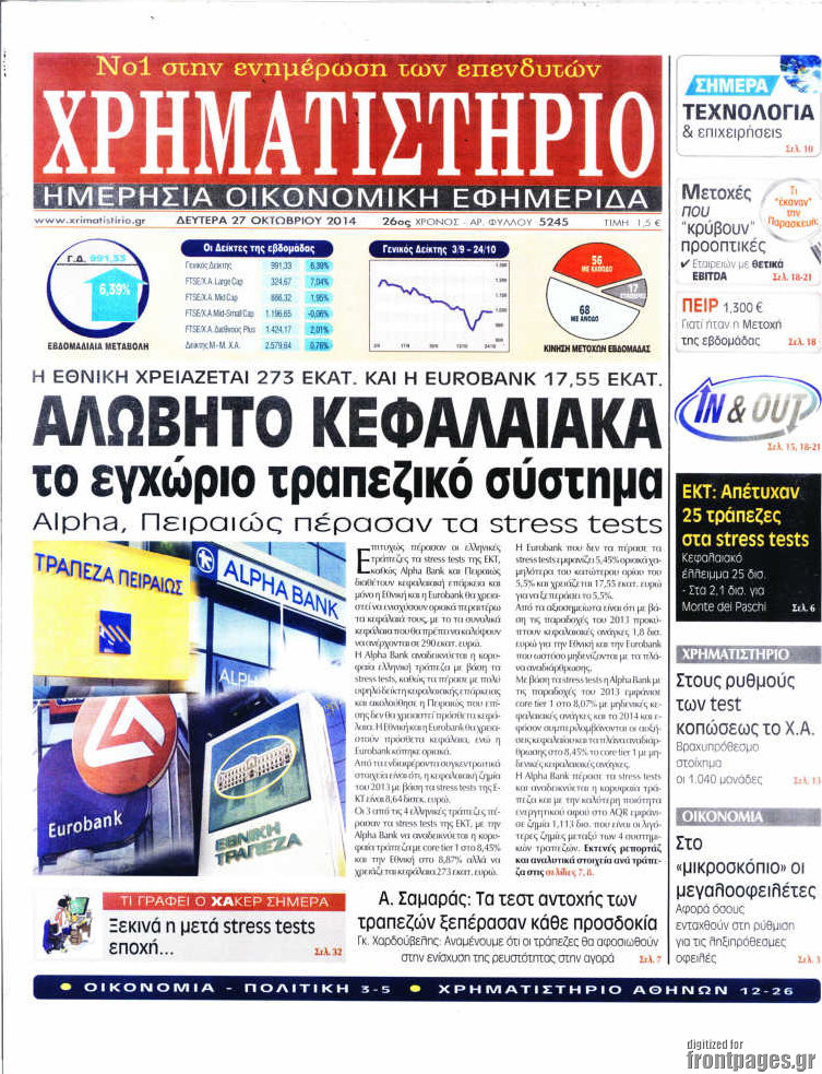 Οι οικονομικές εφημερίδες Enikos Newsroom 08:01, Τρίτη 28 Οκτωβρίου 2014 Media Οι οικονομικές εφημερίδες Διαβάστε τα πρωτοσέλιδα των οικονομικών εφημερίδων: ΕΦΗΜΕΡΙΔΕΣ ΟΙΚΟΝΟΜΙΚΕΣ ΕΦΗΜΕΡΙΔΕΣ ΠΡΩΤΟΣΕΛΙΔΑ Μοιράσου το: σχολίασε κι εσύ (0 σχόλια) Ακολουθήστε το enikos.gr στο Google News και μάθετε πρώτοι όλες τις ειδήσεις Δείτε όλες τις τελευταίες ειδήσεις από την Ελλάδα και τον Κόσμο στο enikos.gr Ειδήσεις Ροή Ειδήσεων 35 λεπτά πριν Έρευνα MRB: Η πρόθεση ψήφου και τα σημαντικότερα προβλήματα – Οι «λέξεις» που εκφράζουν τους πολίτες 27 λεπτά πριν Αλαλούμ με τις πληρωμές στους αγρότες: Δεν καταβλήθηκε η Βασική Ενίσχυση, αλλά έγινε παρακράτηση της εισφοράς στον ΕΛΓΑ – Τι απαντά η κυβέρνηση 1 ώρα πριν Αγρότες: Πολύωροι αποκλεισμοί και σήμερα στα τελωνεία Ευζώνων, Νίκης, Προμαχώνα και Εξοχής 2 ώρες πριν Ρομπ Ράινερ: Το δείπνο με τους Ομπάμα που δεν έγινε ποτέ και νέα στοιχεία για τον «καβγά» στο πάρτι – Βίντεο με τον γιο του να περιφέρεται κοντά στο σπίτι της τραγωδίας 1 ώρα πριν Κυψέλη: Μαθητές κλείδωσαν τους καθηγητές μέσα στο Γυμνάσιο μετά την επίθεση με μαχαίρι 20 λεπτά πριν Τα 4 ζώδια που ξαναβρίσκουν τον εαυτό τους – «Μπαίνετε επιτέλους στην ουσία των πραγμάτων» 4 ώρες πριν Οπτική ψευδαίσθηση: Μόνο αν είσαι ο Σέρλοκ Χολμς θα βρεις τον σκύλο σε 15 δευτερόλεπτα 3 ώρες πριν Νεολιθικός σκύλος βρέθηκε προσεκτικά θαμμένος στον βυθό λίμνης – Δίπλα του βρέθηκε ένα στιλέτο 2 ώρες πριν Έλαβε τελεσίγραφο από τη σύντροφό του – «Μου είπε πως ή θα της κάνω πρόταση στα δύο χρόνια σχέσης ή θα με χωρίσει» 3 λεπτά πριν Καραχάλιος: «Η κυρία Καρυστιανού πρέπει να καταλάβει ότι στην πολιτική κάθε ψέμα κοστίζει» 9 λεπτά πριν Λούκας Γιώρκας: «Έχω δεχθεί παρατραβηγμένες συμπεριφορές – Άφησα τον άνθρωπο να εκτονωθεί και συνέχισα» 14 λεπτά πριν Οι Νιου Γιορκ Νικς κατέκτησαν το NBA Cup – MVP ο Τζέιλεν Μπράνσον με 25 πόντους και 8 ασίστ 20 λεπτά πριν Τα 4 ζώδια που ξαναβρίσκουν τον εαυτό τους – «Μπαίνετε επιτέλους στην ουσία των πραγμάτων» 20 λεπτά πριν «Οδύσσεια»: Νέες εντυπωσιακές φωτογραφίες από το κινηματογραφικό έπος του Κρίστοφερ Νόλαν ENIKOS NETWORK Αδενώματα Υπόφυσης: Μια πάθηση καλοήθης, αλλά όχι αθώα Χρόνια Αναπνευστικά Νοσήματα: 400.000 θάνατοι ετησίως στην Ευρώπη Ειδικό επιδοτούμενο πρόγραμμα κατάρτισης της ΔΥΠΑ για ανέργους: Αρχίζει σήμερα η υποβολή ενστάσεων-Ποιους αφορά Δώρο Χριστουγέννων και επιδόματα της ΔΥΠΑ: Σήμερα αρχίζει η προπληρωμή τους-Ποιους αφορά Σύγχρονος Νοστράδαμος: Προειδοποιεί για «μεγάλο γεγονός» τους επόμενους μήνες που θα συγκλονίσει τη Βρετανία και τον κόσμο Τεστ παρατηρητικότητας: Μπορείτε να βρείτε τις 3 διαφορές στις εικόνες με έναν πιγκουίνο σε 14 δευτερόλεπτα περισσότερα 09:08 , Τετάρτη 17 Δεκεμβρίου 2025 Τηλεθέαση (16/12): Ανακατατάξεις στην πρωινή ψυχαγωγική ζώνη Ξεκάθαρη πρωτιά στην τηλεθέαση για την «Super Κατερίνα» στο δυναμικό κοινό με ποσοστό 18,5%, α... 08:00 , Τετάρτη 17 Δεκεμβρίου 2025 Την Κυριακή με τη Realnews: Δωροεπιταγή 10€ Δωροεπιταγή αξίας 10€ για αγορές άνω των 60€ από τα πολυκαταστήματα FactoryOutlet H προσφορά ι... 07:00 , Τετάρτη 17 Δεκεμβρίου 2025 Την Κυριακή με τη Realnews: Ό,τι και αν αγοράσεις, σκανάρεις και κερδίζεις! Την Κυριακή με τη Realnews: Ό,τι και αν αγοράσεις, σκανάρεις και κερδίζεις! Με το PADU app, το... 05:48 , Τετάρτη 17 Δεκεμβρίου 2025 Οι οικονομικές εφημερίδες 17/12/2025 Διαβάστε τα πρωτοσέλιδα από τις οικονομικές εφημερίδες, σήμερα 17/12/2025. ΤΕΛΕΥΤΑΙΕΣ ΕΙΔΗΣΕΙΣ 3 λεπτά πριν Καραχάλιος: «Η κυρία Καρυσ