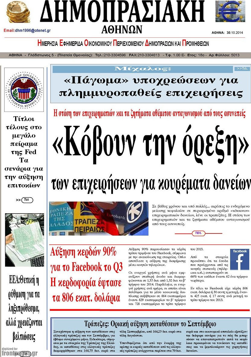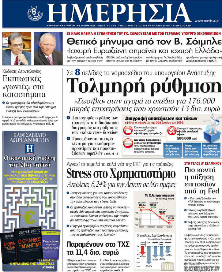 Οι οικονομικές εφημερίδες Enikos Newsroom 07:51, Πέμπτη 30 Οκτωβρίου 2014 Media Οι οικονομικές εφημερίδες Διαβάστε τα πρωτοσέλιδα των οικονομικών εφημερίδων: ΕΦΗΜΕΡΙΔΕΣ ΟΙΚΟΝΟΜΙΚΕΣ ΕΦΗΜΕΡΙΔΕΣ ΠΡΩΤΟΣΕΛΙΔΑ Μοιράσου το: σχολίασε κι εσύ (0 σχόλια) Ακολουθήστε το enikos.gr στο Google News και μάθετε πρώτοι όλες τις ειδήσεις Δείτε όλες τις τελευταίες ειδήσεις από την Ελλάδα και τον Κόσμο στο enikos.gr Ειδήσεις Ροή Ειδήσεων 5 ώρες πριν Εκτός ευρωομάδας ΣΥΡΙΖΑ ο Νίκος Παππάς μετά την επίθεση στον δημοσιογράφο Νίκο Γιαννόπουλο – Η μήνυση και οι νέες δηλώσεις 5 ώρες πριν «Αγριεύουν» οι αγρότες: «Δεν συντρέχει λόγος συνάντησης με τον πρωθυπουργό» – Ώρα αποφάσεων στη σύσκεψη της Πέμπτης 5 ώρες πριν Κυψέλη: Χωρίς την οικογένειά της δίπλα της απολογήθηκε η 16χρονη – «Της είχε επιτεθεί κάποιος για να την βιάσει, φοβήθηκε και κυκλοφορούσε με μαχαίρι» 5 ώρες πριν Politico: Το πρόβλημα της Ευρώπης δεν είναι το Βέλγιο αλλά ο Ντόναλντ Τραμπ 7 ώρες πριν Αλεξανδρούπολη: Πολυοργανική ανεπάρκεια λόγω υποσιτισμού η αιτία θανάτου του 3χρονου αγοριού 5 ώρες πριν Μυστήριο με τεράστιες κυκλικές πέτρες 200 κιλών – Ανακαλύφθηκαν τυχαία κατά τη διάρκεια οδικών έργων και κανείς δεν ξέρει από πού προέρχονται 6 ώρες πριν Ύπνος: Ειδικός εξηγεί τον πραγματικό λόγο που ξυπνάτε στις 4 τα ξημερώματα – Ο ρόλος των ορμονών και του κιρκάδιου ρυθμού 7 ώρες πριν Αριθμολογία: Οι άνθρωποι που έχουν γεννηθεί αυτές τις 4 ημερομηνίες, είναι τρυφεροί και αγαπούν ανιδιοτελώς 19 ώρες πριν 20 χρόνια τα Χριστούγεννα ξεκινούν στα Public με μεγάλη ποικιλία σε δώρα! 13 λεπτά πριν Αλ Τσαντίρι Νιουζ: «Λύγισε» ο Δημήτρης Λάλος για τον Δημήτρη Ήμελλο – «Τον μνημονεύω, να ‘ναι καλά εκεί που είναι» 28 λεπτά πριν GNTM: Με δάκρυα τον αποχαιρέτησε η Ηλιάνα Παπαγεωργίου πριν από τον ημιτελικό – «Αισθάνομαι πολύ παράξενα» 43 λεπτά πριν Αμερικανικά στρατεύματα στον Ισημερινό για «προσωρινή» επιχείρηση κατά των ναρκωτικών 58 λεπτά πριν Βραζιλία: Το Κογκρέσο ενέκρινε σχέδιο νόμου για τη μείωση της ποινής του πρώην προέδρου Μπολσονάρου 1 ώρα πριν Ένταση στο περιφερειακό συμβούλιο Δυτικής Μακεδονίας: Φωνές, σπρωξιές και διακοπή – Δείτε βίντεο ENIKOS NETWORK Αϋπνία: Το κόλπο που θα σας βοηθήσει να κοιμηθείτε απόψε – Είναι απλό και έχει αποτέλεσμα 2,6 εκατομμύρια πολίτες έχουν ήδη εμβολιαστεί κατά της γρίπης ΕΛΣΤΑΤ: Τι δείχνουν τα νέα στοιχεία για τις ηλεκτρονικές παραγγελίες των επιχειρήσεων ΚΕΠΕ: Οι 3 διακριτές συμβολές των ΜμΕ και της μεταποίησης στην ελληνική οικονομία Χαρτογραφώντας το «σημείο χωρίς επιστροφή»: Για πρώτη φορά αποκαλύπτεται με λεπτομέρεια το ακανθώδες όριο της ατμόσφαιρας τ... Η Google καταργεί τη λειτουργία «dark web report» – Πώς θα μπορούν οι χρήστες να διαγράφουν τα δεδομένα τους περισσότερα 02:30 , Πέμπτη 18 Δεκεμβρίου 2025 Αλ Τσαντίρι Νιουζ: Η κόρη της Πάολα στο κοινό – Η ατάκα Λαζόπουλου που την έκανε να «κοκκινήσει» Γιορτινή διάθεση και ευχάριστες στιγμές γέμισε η αποψινή, τελευταία για το 2025, εκπομπή του «... 22:24 , Τετάρτη 17 Δεκεμβρίου 2025 Το Σπίτι Δίπλα Στο Ποτάμι: Σε κίνδυνο η υγεία του Απόστολου – Τι θα δούμε απόψε “Το Σπίτι Δίπλα στο Ποτάμι” ξετυλίγει το νήμα της ζωής των πέντε αδελφών με καταισ... 21:14 , Τετάρτη 17 Δεκεμβρίου 2025 Παιχνίδια Εκδίκησης: Θα καταφέρει ο Χρήστος να κλονίσει την εμπιστοσύνη της Μάγιας απέναντι στον Άγη; Τα «Παιχνίδια Εκδίκησης» έρχονται απόψε στις 22:30, στον Αντ1, με το τελευταίο επεισόδιο της χ... 20:57 , Τετάρτη 17 Δεκεμβ