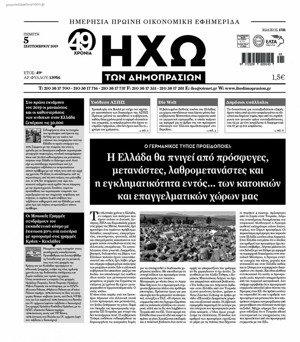 Οι οικονομικές εφημερίδες 5/9/2019 Κώστας Τεό 07:19, Πέμπτη 05 Σεπτεμβρίου 2019 Media Διαβάστε τα πρωτοσέλιδα των οικονομικών εφημερίδων: ΟΙΚΟΝΟΜΙΚΕΣ ΕΦΗΜΕΡΙΔΕΣ ΠΡΩΤΟΣΕΛΙΔΑ Μοιράσου το: σχολίασε κι εσύ (0 σχόλια) Ακολουθήστε το enikos.gr στο Google News και μάθετε πρώτοι όλες τις ειδήσεις Δείτε όλες τις τελευταίες ειδήσεις από την Ελλάδα και τον Κόσμο στο enikos.gr Ειδήσεις Ροή Ειδήσεων 1 ώρα πριν Υπόθεση Έπσταϊν: Το Υπουργείο Δικαιοσύνης δημοσιοποίησε μια σειρά από εξαιρετικά επεξεργασμένα αρχεία – «Λείπουν τα πιο σημαντικά έγγραφα», λένε οι Δημοκρατικοί 29 λεπτά πριν Ο «χάρτης» με τις αυξήσεις και τις φοροελαφρύνσεις του 2026 – Ποιοι και πόσα κερδίζουν 10 ώρες πριν Χριστούγεννα στα μπλόκα: Επιμένουν στις κινητοποιήσεις τους οι αγρότες – Ανοίγουν τα διόδια το Σαββατοκύριακο 2 ώρες πριν ΟΝΕΧ – MEGATUGS: Ξεκίνησε η ναυπήγηση ρυμουλκών στην Ελλάδα – Προθάλαμος πολεμικών πλοίων – Δείτε φωτογραφίες και βίντεο 1 ώρα πριν Καιρός: Αλλαγή σκηνικού σήμερα με βροχές και πτώση της θερμοκρασίας – Οι προβλέψεις των μετεωρολόγων για τα Χριστούγεννα 3 ώρες πριν Αυγά: Πόσα μπορείτε να τρώτε την ημέρα με ασφάλεια για μέγιστη πρόσληψη πρωτεΐνης 4 ώρες πριν Τα ζώδια σήμερα, Σάββατο 20 Δεκεμβρίου: Παρθένοι, το σύμπαν σας δίνει το κλειδί 3 ώρες πριν Οπτική ψευδαίσθηση: Μόνο αν είσαι ο Σέρλοκ Χολμς θα βρεις τον αριθμό «87» σε 7 δευτερόλεπτα 1 ώρα πριν Αρχαιολόγοι ανακάλυψαν σε χωράφι απεικόνιση 600 ετών ενός Αγίου – Τα στοιχεία που δείχνουν ότι μαρτύρησε 33 δευτερόλεπτα πριν Παιδική υπέρταση: Μια σιωπηλή απειλή που αυξάνεται διεθνώς 1 λεπτό πριν Αγχώνεται για το χριστουγεννιάτικο δώρο που πήρε στην πλούσια σύντροφό του – «Φοβάμαι πως θα το βρει φθηνιάρικο, φοράει βραχιόλια Cartier» 8 λεπτά πριν Enerwave: Το νέο «ρεύμα» στη λιανική ενέργειας που αλλάζει την εμπειρία του καταναλωτή 13 λεπτά πριν Γιώργος Μαζωνάκης: Τη Δευτέρα η μήνυση του τραγουδιστή κατά του 22χρονου 22 λεπτά πριν Αμαλία Κωστοπούλου: Το μήνυμα για το χειρουργείο στο γόνατο – «Αυτός ο τραυματισμός μού στέρησε πολλά…» ENIKOS NETWORK Πόσα κιλά παίρνουμε πραγματικά τα Χριστούγεννα, σύμφωνα με την επιστήμη – Πώς να το αποτρέψουμε; Το δημοφιλές ρόφημα που αυξάνει την πίεση πιο γρήγορα και από το αλάτι Mega χριστουγεννιάτικη φορολοταρία: «Κλείδωσε» η ημερομηνία για την κλήρωση – Ερωτήσεις και απαντήσεις Αναστολή μέτρων αναγκαστικής εκτέλεσης για κτηνοτρόφους που πλήττονται από την ευλογιά των αιγοπροβάτων Χαρτογραφώντας το «σημείο χωρίς επιστροφή»: Για πρώτη φορά αποκαλύπτεται με λεπτομέρεια το ακανθώδες όριο της ατμόσφαιρας τ... Η Google καταργεί τη λειτουργία «dark web report» – Πώς θα μπορούν οι χρήστες να διαγράφουν τα δεδομένα τους περισσότερα 08:14 , Σάββατο 20 Δεκεμβρίου 2025 Τρομεροί γονείς: Η Μαρία Καβογιάννη εισβάλλει στο σπίτι της οικογένειας Στεφανίδη Όσα θα δούμε στο νέο διπλό επεισόδιο της σειράς «Τρομεροί γονείς», σήμερα Σάββατο 20 Δεκεμβρίο... 05:48 , Σάββατο 20 Δεκεμβρίου 2025 Οι οικονομικές εφημερίδες 20/12/2025 Διαβάστε τα πρωτοσέλιδα από τις οικονομικές εφημερίδες, σήμερα 20/12/2025. 05:43 , Σάββατο 20 Δεκεμβρίου 2025 Οι αθλητικές εφημερίδες 20/12/2025 Διαβάστε τα πρωτοσέλιδα από τις αθλητικές εφημερίδες, σήμερα 20/12/2025. 05:38 , Σάββατο 20 Δεκεμβρίου 2025 Οι πολιτικές εφημερίδες 20/12/2025 Διαβάστε τα πρωτοσέλιδα από τις πολιτικές εφημερίδες, σήμερα 20/12/2025. ΤΕΛΕΥΤΑΙΕΣ ΕΙΔΗΣΕΙΣ 8 λεπτά πριν Enerwave: Το νέο «ρεύμα» στη λιανική ενέργειας που αλλάζει... 13 λεπτά πριν Γιώργος Μαζωνά