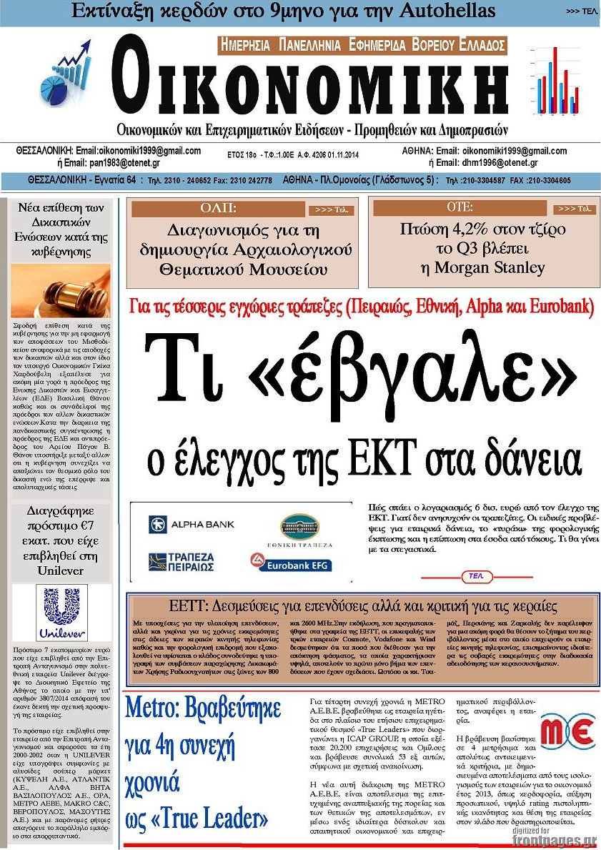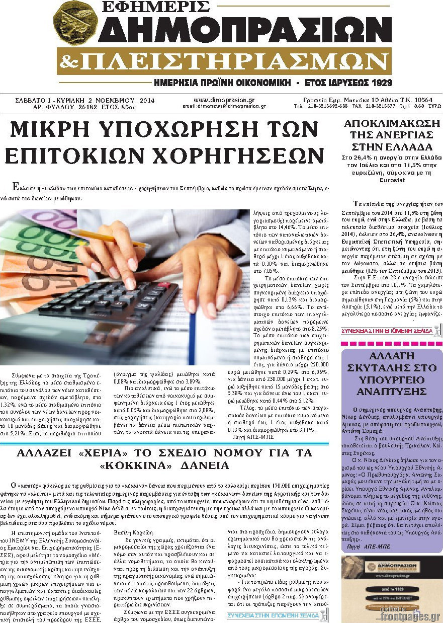 Οι οικονομικές εφημερίδες Enikos Newsroom 07:58, Σάββατο 01 Νοεμβρίου 2014 Media Οι οικονομικές εφημερίδες Διαβάστε τα πρωτοσέλιδα των οικονομικών εφημερίδων. ΟΙΚΟΝΟΜΙΚΕΣ ΕΦΗΜΕΡΙΔΕΣ ΠΡΩΤΟΣΕΛΙΔΑ Μοιράσου το: σχολίασε κι εσύ (0 σχόλια) Ακολουθήστε το enikos.gr στο Google News και μάθετε πρώτοι όλες τις ειδήσεις Δείτε όλες τις τελευταίες ειδήσεις από την Ελλάδα και τον Κόσμο στο enikos.gr Ειδήσεις Ροή Ειδήσεων 2 ώρες πριν Πώς δρούσε το κύκλωμα που διακινούσε ναρκωτικά σε σχολεία – Υπέβαλαν σε βασανιστήρια όσους δεν τηρούσαν τους «κανόνες πειθαρχίας» 3 ώρες πριν Αγρότες: Γιορτές στα μπλόκα με ανοιχτά διόδια – Δικογραφία στα Ιωάννινα για το σήκωμα των μπαρών 2 ώρες πριν Ζελένσκι: Οι Αμερικανοί πρότειναν συνάντηση Ουκρανίας, ΗΠΑ, Ρωσίας στο Μαϊάμι 2 ώρες πριν Αττική: Εξαρθρώθηκε εγκληματική οργάνωση που έκλεβε οχήματα, τα παραποιούσε και τα μεταπωλούσε σε πολίτες – Πώς δρούσε το κύκλωμα 1 ώρα πριν Μικαέλα Μπέντχαους: Ο πρώτος άνθρωπος σε αναπηρικό αμαξίδιο που ταξίδεψε στο διάστημα – ΒΙΝΤΕΟ 3 ώρες πριν Η τύχη χαμογελά σε 3 ζώδια έως τις 28 Δεκεμβρίου – «Προσέξτε τις επιλογές σας και η επιμονή σας θα ανταμειφθεί» 7 ώρες πριν Διαιτολόγος αποκαλύπτει 9 πρωινές συνήθειες που «λιώνουν» το κοιλιακό λίπος – «Υποστηρίζουν την υγιεινή απώλεια βάρους» 4 ώρες πριν Μία ανεκμετάλλευτη πηγή θα μπορούσε να προσφέρει ανεξάντλητη ενέργεια – Οι επιστήμονες ίσως γνωρίζουν πώς να την ξεκλειδώσουν 10 ώρες πριν Enerwave: Το νέο «ρεύμα» στη λιανική ενέργειας που αλλάζει την εμπειρία του καταναλωτή 4 λεπτά πριν Φωτιά σε αυτοκίνητο στην Λεωφόρο Κηφισίας στο ύψος της Φιλοθέης – Μεγάλο μποτιλιάρισμα στο σημείο 8 λεπτά πριν Πηνελόπη Πλάκα: Η εξομολόγηση για την προσωπική της ζωή – «Γούσταρα πάρα πολύ την ελευθερία μου» 20 λεπτά πριν Λούλα: Προειδοποιεί πως μια επέμβαση των ΗΠΑ στη Βενεζουέλα θα μπορούσε να είναι καταστροφική 28 λεπτά πριν Τραμπ: Πώς περνάει τις γιορτές των Χριστουγέννων – Τα δώρα που κάνει στα εγγόνια του 41 λεπτά πριν HOTΕΛ ΕΛVIRA: Η Ελβίρα μαθαίνει πως ο Χάρι μένει κρυφά στο ξενοδοχείο του Παντελή ENIKOS NETWORK Οι γυναίκες αποκαλύπτουν το πιο ελκυστικό πράγμα που μπορεί να κάνει ένας άνδρας Ομορφιά και αντιγήρανση: Ειδικοί μιλούν για συσκευές περιποίησης του δέρματος Ολοκληρώθηκαν πληρωμές 22,16 εκατ. ευρώ για το μεταφορικό ισοδύναμο – Κικίλιας: Στηρίζουμε τη νησιωτικότητα Η Realnews στο www.pressreader.com Χαρτογραφώντας το «σημείο χωρίς επιστροφή»: Για πρώτη φορά αποκαλύπτεται με λεπτομέρεια το ακανθώδες όριο της ατμόσφαιρας τ... Η Google καταργεί τη λειτουργία «dark web report» – Πώς θα μπορούν οι χρήστες να διαγράφουν τα δεδομένα τους περισσότερα 18:19 , Σάββατο 20 Δεκεμβρίου 2025 HOTΕΛ ΕΛVIRA: Η Ελβίρα μαθαίνει πως ο Χάρι μένει κρυφά στο ξενοδοχείο του Παντελή Συνεχίζονται οι εκλογές για πρόεδρο, στο νέο επεισόδιο της κωμικής σειράς του MEGA, HOTΕΛ ΕΛVI... 14:04 , Σάββατο 20 Δεκεμβρίου 2025 Η Realnews αυτής της Κυριακής (21/12/2025) Με τίτλο: «Ασπίδα προστασίας για την Ελλάδα» κυκλοφορεί, αυτήν την Κυριακή, η Realnews. Σημαντ... 12:53 , Σάββατο 20 Δεκεμβρίου 2025 Να μ’ αγαπάς: Το παρελθόν έρχεται στο φως – Καταιγιστικές εξελίξεις στα τελευταία επεισόδια του 2025 Ο Άγγελος αποκαλύπτεται, η Φωτεινή ανησυχεί για τον Λευτέρη και η Ζωή έρχεται αντιμέτωπη με το... 11:41 , Σάββατο 20 Δεκεμβρίου 2025 «Η αγάπη δεν χάνεται ποτέ»: Η μικρού μήκους ταινία κινουμένων σχεδίων που θέτει ερωτήματα για τη ζωή και τον θάνατο Ο θάνατος είναι ένα από τα πιο σκληρά θέματα που κα