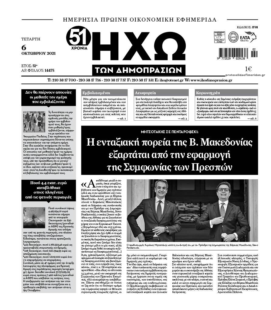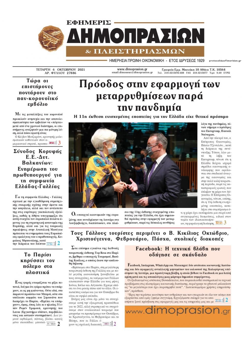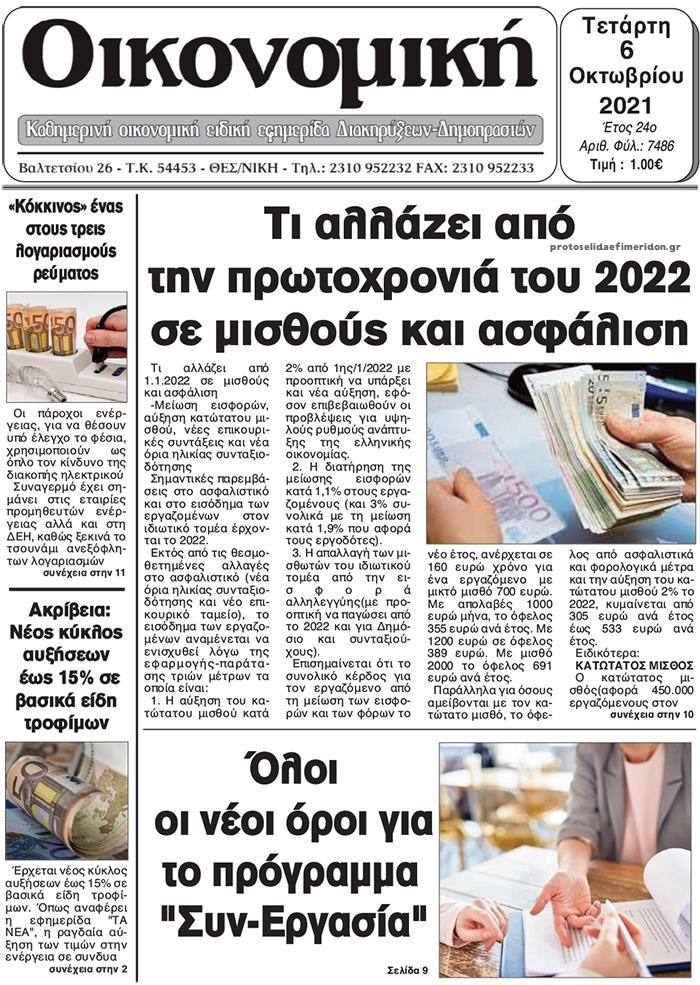 Οι οικονομικές εφημερίδες 6/10/2021 Διονύσης Νίκκας 06:50, Τετάρτη 06 Οκτωβρίου 2021 Media Διαβάστε τα πρωτοσέλιδα από τις οικονομικές εφημερίδες… ΟΙΚΟΝΟΜΙΚΕΣ ΕΦΗΜΕΡΙΔΕΣ Μοιράσου το: σχολίασε κι εσύ (0 σχόλια) Ακολουθήστε το enikos.gr στο Google News και μάθετε πρώτοι όλες τις ειδήσεις Δείτε όλες τις τελευταίες ειδήσεις από την Ελλάδα και τον Κόσμο στο enikos.gr Ειδήσεις Ροή Ειδήσεων 40 λεπτά πριν Ευρωπαϊκή Ένωση: Χωρίς συμφωνία, για την μακροπρόθεσμη χρηματοδότηση της Ουκρανίας, ολοκληρώθηκε η Σύνοδος Κορυφής στις Βρυξέλλες 4 ώρες πριν ΟΠΕΚΕΠΕ: Προφυλακιστέος ο φερόμενος αρχηγός και ο λογιστής της εγκληματικής οργάνωσης 5 ώρες πριν Αυξάνουν την πίεση προς την κυβέρνηση οι αγρότες: Κλείνουν παρακαμπτήριους και ανοίγουν διόδια – Τι θα γίνει τις γιορτές 5 ώρες πριν Φοινικούντα: Το Σάββατο απολογείται ο 30χρονος γιος γνωστού επιχειρηματία της Πλάκας που παραδόθηκε – Όσα είπε στους αστυνομικούς και ο ρόλος του στο έγκλημα 4 ώρες πριν ΑΕΚ – Κραϊόβα 3-2: Επική ανατροπή και πρόκριση στους «16» του Conference League η Ένωση 5 ώρες πριν Αρχαιολόγοι ανακάλυψαν ρωμαϊκά τεχνουργήματα από μια πόλη που δεν υπήρξε ποτέ – Τα τρία εντυπωσιακά κτίρια και ο αμφορέας με τις… σαρδέλες 6 ώρες πριν Ύπνος: Η απλή βραδινή ρουτίνα για να προστατεύσετε τα μαλλιά σας από το κρύο κατά τη διάρκεια του χειμώνα 7 ώρες πριν Manifesting: Πώς να συναντήσετε τον σύντροφο της ζωής σας, ανάλογα με τον μήνα γέννησής σας 2 ημέρες πριν 20 χρόνια τα Χριστούγεννα ξεκινούν στα Public με μεγάλη ποικιλία σε δώρα! 30 δευτερόλεπτα πριν Σίσσυ Τουμάση: «Είμαι ασθενοφοβική πάρα πολύ και με πιάνει μια παράνοια μ’ αυτό» 25 λεπτά πριν Ντόναλντ Τραμπ: Δεν χρειάζομαι την έγκριση του Κογκρέσου για να διατάξω στρατιωτικά πλήγματα στη Βενεζουέλα 40 λεπτά πριν Ευρωπαϊκή Ένωση: Χωρίς συμφωνία, για την μακροπρόθεσμη χρηματοδότηση της Ουκρανίας, ολοκληρώθηκε η Σύνοδος Κορυφής στις Βρυξέλλες 56 λεπτά πριν GNTM: «Κλείδωσαν» οι τέσσερις φιναλίστ – Μεγάλη ανατροπή στις τελευταίες αποχωρήσεις 1 ώρα πριν Γιώργος Μαζωνάκης: Αποθεώθηκε στην πρεμιέρα του στην «Ακτή Πειραιώς» λίγες ώρες μετά τις καταγγελίες – «Είμαι αληθινός», είπε με νόημα ENIKOS NETWORK Σε περίοδο αυξημένης δραστηριότητας η γρίπη στην Ελλάδα-Μέτρα προστασίας από τον ΕΟΔΥ Σκέφτεστε συνέχεια συζητήσεις που έχετε κάνει; Τι σημαίνει αυτό, σύμφωνα με ειδικό Στεγαστικό: Τι λέει η ΠΟΜΙΔΑ για τα νέα μέτρα που ανακοίνωσε ο Κυριάκος Μητσοτάκης Λαγκάρντ: Αισιόδοξη για την ανάπτυξη της Ευρωζώνης, αβέβαιη για τον πληθωρισμό Χαρτογραφώντας το «σημείο χωρίς επιστροφή»: Για πρώτη φορά αποκαλύπτεται με λεπτομέρεια το ακανθώδες όριο της ατμόσφαιρας τ... Η Google καταργεί τη λειτουργία «dark web report» – Πώς θα μπορούν οι χρήστες να διαγράφουν τα δεδομένα τους περισσότερα 02:50 , Παρασκευή 19 Δεκεμβρίου 2025 GNTM: «Κλείδωσαν» οι τέσσερις φιναλίστ – Μεγάλη ανατροπή στις τελευταίες αποχωρήσεις Για προτελευταία φορά εμφανίστηκαν στο πλατό του GNTM οι φιναλίστ του φετινού κύκλου, το βράδυ... 17:45 , Πέμπτη 18 Δεκεμβρίου 2025 ROUK ZOUK: Εορταστικό επεισόδιο με καλεσμένους τους πρωταγωνιστές του «Γιατί ρε πατέρα» Το Σάββατο 20 Δεκεμβρίου στις 21:00, η Ζέτα Μακρυπούλια υποδέχεται εκλεκτούς ηθοποιούς που όλο... 17:20 , Πέμπτη 18 Δεκεμβρίου 2025 Άγιος έρωτας: Η Χριστίνα εξομολογείται στον πατέρα Νικόλαο, απόψε στις 21:00 στον Alpha Η Νότα αποφασίζει να εκδικηθεί τον Πέτρο και τον Στέφανο, για χάρη του Λούη, όμως τα πράγματα ... 16:50 , Πέμπτη 18 Δεκεμβρίου 2025 Να