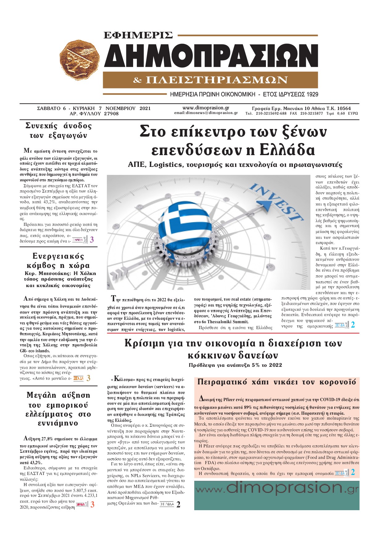 Οι οικονομικές εφημερίδες 6/11/2021 Διονύσης Νίκκας 07:22, Σάββατο 06 Νοεμβρίου 2021 Media Διαβάστε τα πρωτοσέλιδα από τις οικονομικές εφημερίδες… ΟΙΚΟΝΟΜΙΚΕΣ ΕΦΗΜΕΡΙΔΕΣ Μοιράσου το: σχολίασε κι εσύ (0 σχόλια) Ακολουθήστε το enikos.gr στο Google News και μάθετε πρώτοι όλες τις ειδήσεις Δείτε όλες τις τελευταίες ειδήσεις από την Ελλάδα και τον Κόσμο στο enikos.gr Ειδήσεις Ροή Ειδήσεων 2 ώρες πριν Αυξάνουν την πίεση προς την κυβέρνηση οι αγρότες: Κλείνουν παρακαμπτήριους και ανοίγουν διόδια – Τι θα γίνει τις γιορτές 1 ώρα πριν ΟΠΕΚΕΠΕ: Προφυλακιστέος ο φερόμενος αρχηγός και ο λογιστής της εγκληματικής οργάνωσης 2 ώρες πριν Φοινικούντα: Το Σάββατο απολογείται ο 30χρονος γιος γνωστού επιχειρηματία της Πλάκας που παραδόθηκε – Όσα είπε στους αστυνομικούς και ο ρόλος του στο έγκλημα 2 ώρες πριν Μπορεί ο Μαδούρο να αντέξει τον αποκλεισμό του Τραμπ; Τι θα χρειαστεί η Ουάσινγκτον για να τον ανατρέψει 3 ώρες πριν Πρίγκιπας Ουίλιαμ – Κέιτ: Η νέα οικογενειακή φωτογραφία για τις Χριστουγεννιάτικες κάρτες του 2025 3 ώρες πριν Ύπνος: Η απλή βραδινή ρουτίνα για να προστατεύσετε τα μαλλιά σας από το κρύο κατά τη διάρκεια του χειμώνα 4 ώρες πριν Manifesting: Πώς να συναντήσετε τον σύντροφο της ζωής σας, ανάλογα με τον μήνα γέννησής σας 2 ημέρες πριν 20 χρόνια τα Χριστούγεννα ξεκινούν στα Public με μεγάλη ποικιλία σε δώρα! 2 ώρες πριν Αρχαιολόγοι ανακάλυψαν ρωμαϊκά τεχνουργήματα από μια πόλη που δεν υπήρξε ποτέ – Τα τρία εντυπωσιακά κτίρια και ο αμφορέας με τις… σαρδέλες 1 λεπτό πριν Conference League: Με Νόα, Ντρίτα, Άλκμααρ ή Τσέλιε στους «16» η ΑΕΚ 10 λεπτά πριν Conference League: Απευθείας στους «16» η ΑΕΚ Λάρνακας και η Ρακόβ των Σβάρνα και Κωνσταντόπουλου – Τα αποτελέσματα και η βαθμολογία, 3η η ΑΕΚ 19 λεπτά πριν Σε ομάδες που συνδέονται με το ρωσικό κράτος αποδίδει η Δανία δύο κυβερνοεπιθέσεις που δέχθηκε 34 λεπτά πριν Βαθμολογία UEFA: Η Πολωνία προσπέρασε την Ελλάδα 50 λεπτά πριν Conference League: Οι ομάδες που προκρίθηκαν στους «16» και τα «ζευγαρώματα» στα νοκ άουτ ENIKOS NETWORK Σε περίοδο αυξημένης δραστηριότητας η γρίπη στην Ελλάδα-Μέτρα προστασίας από τον ΕΟΔΥ Σκέφτεστε συνέχεια συζητήσεις που έχετε κάνει; Τι σημαίνει αυτό, σύμφωνα με ειδικό Στεγαστικό: Τι λέει η ΠΟΜΙΔΑ για τα νέα μέτρα που ανακοίνωσε ο Κυριάκος Μητσοτάκης Λαγκάρντ: Αισιόδοξη για την ανάπτυξη της Ευρωζώνης, αβέβαιη για τον πληθωρισμό Χαρτογραφώντας το «σημείο χωρίς επιστροφή»: Για πρώτη φορά αποκαλύπτεται με λεπτομέρεια το ακανθώδες όριο της ατμόσφαιρας τ... Η Google καταργεί τη λειτουργία «dark web report» – Πώς θα μπορούν οι χρήστες να διαγράφουν τα δεδομένα τους περισσότερα 17:45 , Πέμπτη 18 Δεκεμβρίου 2025 ROUK ZOUK: Εορταστικό επεισόδιο με καλεσμένους τους πρωταγωνιστές του «Γιατί ρε πατέρα» Το Σάββατο 20 Δεκεμβρίου στις 21:00, η Ζέτα Μακρυπούλια υποδέχεται εκλεκτούς ηθοποιούς που όλο... 17:20 , Πέμπτη 18 Δεκεμβρίου 2025 Άγιος έρωτας: Η Χριστίνα εξομολογείται στον πατέρα Νικόλαο, απόψε στις 21:00 στον Alpha Η Νότα αποφασίζει να εκδικηθεί τον Πέτρο και τον Στέφανο, για χάρη του Λούη, όμως τα πράγματα ... 16:50 , Πέμπτη 18 Δεκεμβρίου 2025 Να μ’ αγαπάς: Ζωή και Φωτεινή συμφιλιώνονται ως μάνα με κόρη, απόψε στις 20:00 Η ταυτότητα του Άγγελου αποκαλύπτεται στο νέο επεισόδιο της σειράς “Να μ’ αγαπάς... 15:52 , Πέμπτη 18 Δεκεμβρίου 2025 Το Σπίτι Δίπλα Στο Ποτάμι: Το καθηλωτικό τελευταίο επεισόδιο για το 2025 απόψε στις 22:30 Καθηλώνει το σημερινό επεισόδιο της σειράς “Το Σπίτι Δίπλα Στο Ποτάμι” που έρχεται.