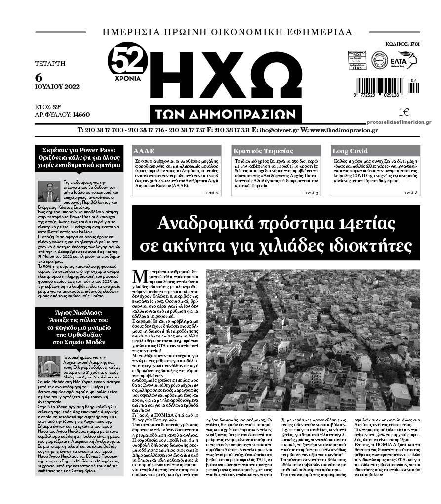 Οι οικονομικές εφημερίδες 6/7/2022 Σταύρος Ιωακείμ 06:43, Τετάρτη 06 Ιουλίου 2022 Media Διαβάστε τα πρωτοσέλιδα από τις οικονομικές εφημερίδες, σήμερα 06/07/2022. ΕΦΗΜΕΡΙΔΕΣ ΟΙΚΟΝΟΜΙΚΕΣ ΕΦΗΜΕΡΙΔΕΣ ΠΡΩΤΟΣΕΛΙΔΑ Μοιράσου το: Οι αθλητικές εφημερίδες 6/7/2022 Οι πολιτικές εφημερίδες 6/7/2022 ΗΠΑ: Μέτωπο βουλευτών στο Κογκρέσο κατά της πώλησης F16 στην Τουρκία – Δύο τροπολογίες στον αμυντικό προϋπολογισμό των ΗΠΑ σχολίασε κι εσύ (0 σχόλια) Ακολουθήστε το enikos.gr στο Google News και μάθετε πρώτοι όλες τις ειδήσεις Δείτε όλες τις τελευταίες ειδήσεις από την Ελλάδα και τον Κόσμο στο enikos.gr Ειδήσεις Ροή Ειδήσεων 1 ώρα πριν Η Ουκρανία χτύπησε τάνκερ του σκιώδους στόλου της Ρωσίας στη Μεσόγειο – Έπλεε νότια της Κρήτης 4 ώρες πριν Πούτιν: Η Ουκρανία δεν είναι έτοιμη για ειρηνευτικές συνομιλίες – Ο ρωσικός στρατός προελαύνει σε όλα τα μέτωπα 15 λεπτά πριν Θεσσαλονίκη: Στη φυλακή ο 44χρονος που κατηγορείται ότι προσπάθησε να πνίξει με κορδόνι την 34χρονη σύντροφό του 33 λεπτά πριν Εξώδικο επιχειρηματία στον Γιώργο Μαζωνάκη – Τι απαντά στις καταγγελίες του τραγουδιστή 1 ώρα πριν Βουλή: Υπερψηφίστηκε το νομοσχέδιο για την ένταξη του ΟΠΕΚΕΠΕ στην ΑΑΔΕ 5 ώρες πριν Αλλαγή σελίδας για 3 ζώδια – «Μία δύσκολη περίοδος φτάνει στο τέλος της» 2 ημέρες πριν 20 χρόνια τα Χριστούγεννα ξεκινούν στα Public με μεγάλη ποικιλία σε δώρα! 4 ώρες πριν Γεμάτος νεροχύτης; 5 σοβαρές ευθύνες που «φοβίζουν» όσους αφήνουν άπλυτα πιάτα 3 ώρες πριν Ειδικός μοιράζεται 6 κόλπα για να διατηρείστε σε φόρμα με πάνω από 40 ώρες εργασίας την εβδομάδα: «Προπονηθείτε πριν από τη δουλειά, όχι μετά» 9 λεπτά πριν ΝΒΑ: Η πρώτη… πεντάδα του Γιάννη Αντετοκούνμπο 11 λεπτά πριν Η Σάντυ Χατζηϊωάννου στο Game Time: Το παιδικό όνειρο με τον Αντώνη Νικοπολίδη και το ντουέτο με την Ευγενία Σαμαρά 15 λεπτά πριν Θεσσαλονίκη: Στη φυλακή ο 44χρονος που κατηγορείται ότι προσπάθησε να πνίξει με κορδόνι την 34χρονη σύντροφό του 19 λεπτά πριν Αυτό το έξυπνο μαθηματικό κόλπο θα μπορούσε να αλλάξει τον τρόπο με τον οποίο οι επιστήμονες μελετούν τους σεισμούς 22 λεπτά πριν Αυτιάς σε Επίτροπο Ενέργειας: «Ρίξτε τις τιμές του ρεύματος για να πέσει η ακρίβεια» ENIKOS NETWORK Τάξη στις ιατρικές διαφημίσεις για την προστασία των πολιτών βάζει ο ΙΣΑ Μακροζωία: Τι παίζει πιο σημαντικό ρόλο ακόμα και από την διατροφή και την άσκηση, σύμφωνα με μελέτη ΕΥΔΑΠ: Οδηγός για τις αλλαγές στα τιμολόγια του νερού – 17 ερωτήσεις και απαντήσεις e-ΕΦΚΑ: Νέα παράταση της προθεσμίας υποβολής για τις ΑΠΔ – Ποιες επιχειρήσεις αφορά Χαρτογραφώντας το «σημείο χωρίς επιστροφή»: Για πρώτη φορά αποκαλύπτεται με λεπτομέρεια το ακανθώδες όριο της ατμόσφαιρας τ... Η Google καταργεί τη λειτουργία «dark web report» – Πώς θα μπορούν οι χρήστες να διαγράφουν τα δεδομένα τους περισσότερα 08:00 , Παρασκευή 19 Δεκεμβρίου 2025 Την Κυριακή με τη Realnews: Δωροεπιταγή 10€ Δωροεπιταγή αξίας 10€ για αγορές άνω των 60€ από τα πολυκαταστήματα FactoryOutlet H προσφορά ι... 05:48 , Παρασκευή 19 Δεκεμβρίου 2025 Οι οικονομικές εφημερίδες 19/12/2025 Διαβάστε τα πρωτοσέλιδα από τις οικονομικές εφημερίδες, σήμερα 19/12/2025. 05:43 , Παρασκευή 19 Δεκεμβρίου 2025 Οι αθλητικές εφημερίδες 19/12/2025 Διαβάστε τα πρωτοσέλιδα από τις αθλητικές εφημερίδες, σήμερα 19/12/2025. 05:38 , Παρασκευή 19 Δεκεμβρίου 2025 Οι πολιτικές εφημερίδες 19/12/2025 Διαβάστε τα πρωτοσέλιδα από τις πολιτικές εφημερίδες, σήμερα 19/12/2025. ΤΕΛΕΥΤΑΙΕΣ ΕΙΔΗΣΕΙΣ 9 λεπτά πριν ΝΒΑ: Η πρώτη… πεντάδα του Γιάννη Αντετοκούνμπο 11 λεπ