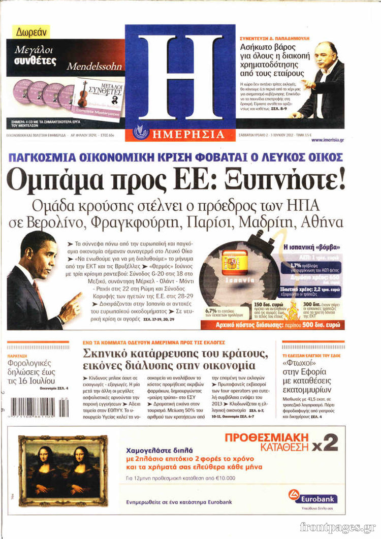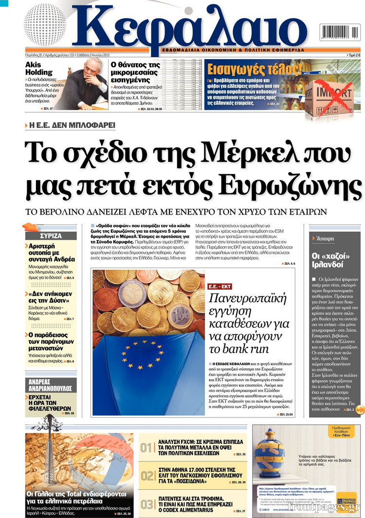 Οι οικονομικές εφημερίδες Enikos Newsroom 08:42, Σάββατο 02 Ιουνίου 2012 Media ΕΦΗΜΕΡΙΔΕΣ Μοιράσου το: σχολίασε κι εσύ (0 σχόλια) Ακολουθήστε το enikos.gr στο Google News και μάθετε πρώτοι όλες τις ειδήσεις Δείτε όλες τις τελευταίες ειδήσεις από την Ελλάδα και τον Κόσμο στο enikos.gr Ειδήσεις Ροή Ειδήσεων 8 ώρες πριν Χριστούγεννα στα μπλόκα: Επιμένουν στις κινητοποιήσεις τους οι αγρότες – Ανοίγουν τα διόδια το Σαββατοκύριακο 8 ώρες πριν Ουκρανία: Η άνευ προηγουμένου επίθεση σε ρωσικό τάνκερ στη Μεσόγειο και το μήνυμα προς στον Πούτιν – Το «μακρύ χέρι» του Κιέβου 7 ώρες πριν Πούτιν: Τα μηνύματα σε Ευρώπη και ΝΑΤΟ από το μαραθώνιο «σόου» του – Η απαίτηση για «σεβασμό» και η ειρήνη «με τους όρους» της Μόσχας 8 ώρες πριν Τραμπ: Δεν αποκλείει την πιθανότητα ενός πολέμου στη Βενεζουέλα – «Ο Μαδούρο ξέρει καλύτερα από τον καθένα τι ακριβώς θέλω» 9 ώρες πριν Συνεχίζει να προκαλεί ο Μίτσκοσκι: «Για μένα το όνομα Μακεδονία είναι ιερό» 11 λεπτά πριν Αυγά: Πόσα μπορείτε να τρώτε την ημέρα με ασφάλεια για μέγιστη πρόσληψη πρωτεΐνης 41 λεπτά πριν Τα ζώδια σήμερα, Σάββατο 20 Δεκεμβρίου: Παρθένοι, το σύμπαν σας δίνει το κλειδί 7 ώρες πριν Ανακαλύφθηκαν αρχαία χρυσά νομίσματα 2.200 ετών που απεικονίζουν τον θεό Απόλλωνα – Η άγνωστη σύνδεση με τον Φίλιππο Β΄ της Μακεδονίας 8 ώρες πριν Ύπνος: Μια κρυφή κατάσταση του εγκεφάλου πριν από τον ύπνο μπορεί να είναι το “κλειδί” για υψηλή ευφυΐα και δημιουργικότητα 3 λεπτά πριν Σαρωτικοί οι έλεγχοι στους δρόμους ενόψει εορτών – Μπλόκα της τροχαίας σε κεντρικές αρτηρίες της Αττικής 11 λεπτά πριν Αυγά: Πόσα μπορείτε να τρώτε την ημέρα με ασφάλεια για μέγιστη πρόσληψη πρωτεΐνης 18 λεπτά πριν Σαν σήμερα 20 Δεκεμβρίου: Τα σημαντικότερα γεγονότα της ημέρας 23 λεπτά πριν Οι οικονομικές εφημερίδες 20/12/2025 28 λεπτά πριν Οι αθλητικές εφημερίδες 20/12/2025 ENIKOS NETWORK Το ΕΚΑΒ τιμήθηκε από την Ακαδημία Αθηνών για τα 40 χρόνια προσφοράς του Έχετε πραγματικά μεγάλη καρδιά; 10 χαρακτηριστικά όσων έχουν καλοσύνη Αναστολή μέτρων αναγκαστικής εκτέλεσης για κτηνοτρόφους που πλήττονται από την ευλογιά των αιγοπροβάτων Πλήρης επάρκεια προϊόντων στις λαϊκές της Αττικής, παρά τις αγροτικές κινητοποιήσεις – Τι απαντούν οι πωλητές Χαρτογραφώντας το «σημείο χωρίς επιστροφή»: Για πρώτη φορά αποκαλύπτεται με λεπτομέρεια το ακανθώδες όριο της ατμόσφαιρας τ... Η Google καταργεί τη λειτουργία «dark web report» – Πώς θα μπορούν οι χρήστες να διαγράφουν τα δεδομένα τους περισσότερα 05:48 , Σάββατο 20 Δεκεμβρίου 2025 Οι οικονομικές εφημερίδες 20/12/2025 Διαβάστε τα πρωτοσέλιδα από τις οικονομικές εφημερίδες, σήμερα 20/12/2025. 05:43 , Σάββατο 20 Δεκεμβρίου 2025 Οι αθλητικές εφημερίδες 20/12/2025 Διαβάστε τα πρωτοσέλιδα από τις αθλητικές εφημερίδες, σήμερα 20/12/2025. 05:38 , Σάββατο 20 Δεκεμβρίου 2025 Οι πολιτικές εφημερίδες 20/12/2025 Διαβάστε τα πρωτοσέλιδα από τις πολιτικές εφημερίδες, σήμερα 20/12/2025. 04:20 , Σάββατο 20 Δεκεμβρίου 2025 Αγγελική Νικολούλη: Τα συλλυπητήρια για την απώλεια της Ειρήνης Μαρινάκη Τα συλληπητήρια στον πρόεδρο του Mega, τον Βαγγέλη Μαρινάκη, για την απώλεια της μητέρας του Ε... ΤΕΛΕΥΤΑΙΕΣ ΕΙΔΗΣΕΙΣ 3 λεπτά πριν Σαρωτικοί οι έλεγχοι στους δρόμους ενόψει εορτών –... 11 λεπτά πριν Αυγά: Πόσα μπορείτε να τρώτε την ημέρα με ασφάλεια για... 18 λεπτά πριν Σαν σήμερα 20 Δεκεμβρίου: Τα σημαντικότερα γεγονότα... 23 λεπτά πριν Οι οικονομικές εφημερίδες 20/12/2025 28 λεπτά πριν Οι αθλητικές εφημερίδες 20/12/2025 33 λεπτά πριν Οι πολιτικές εφημερίδες 
