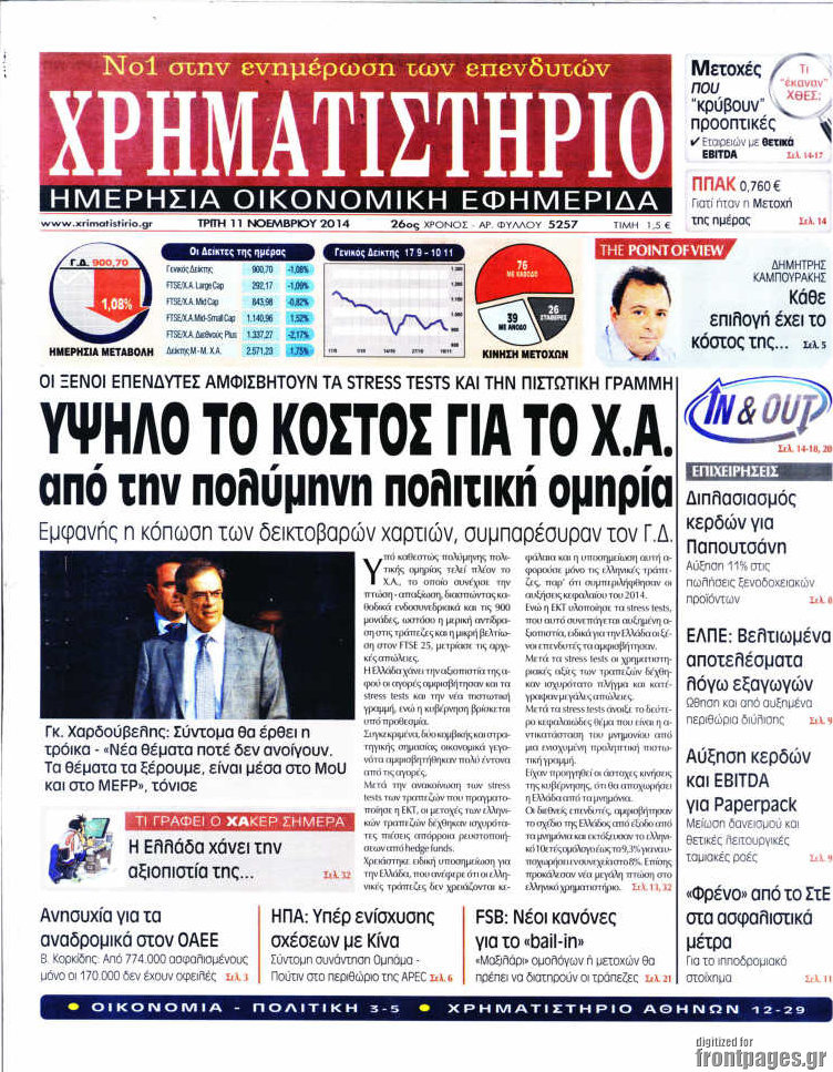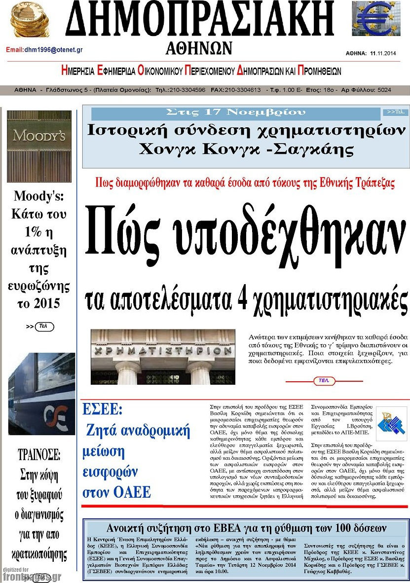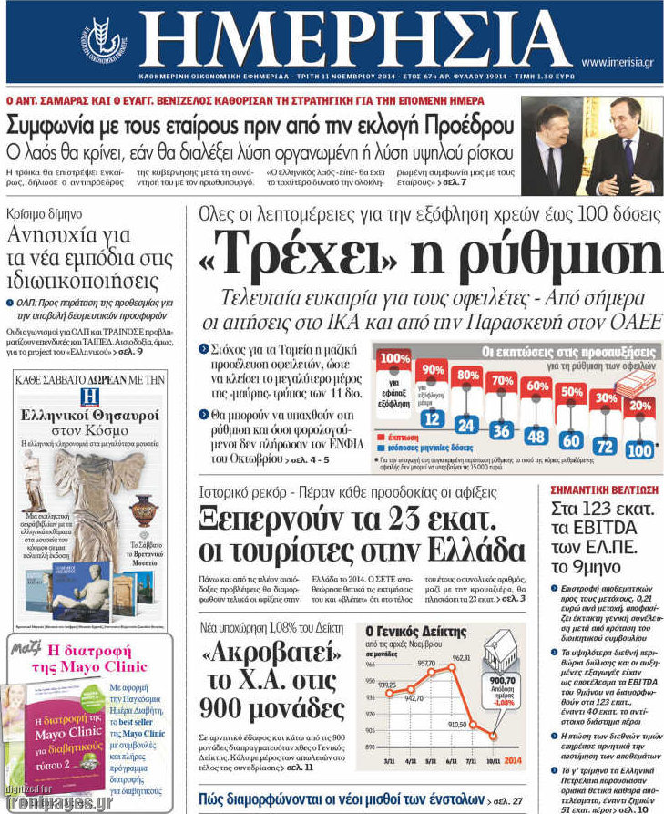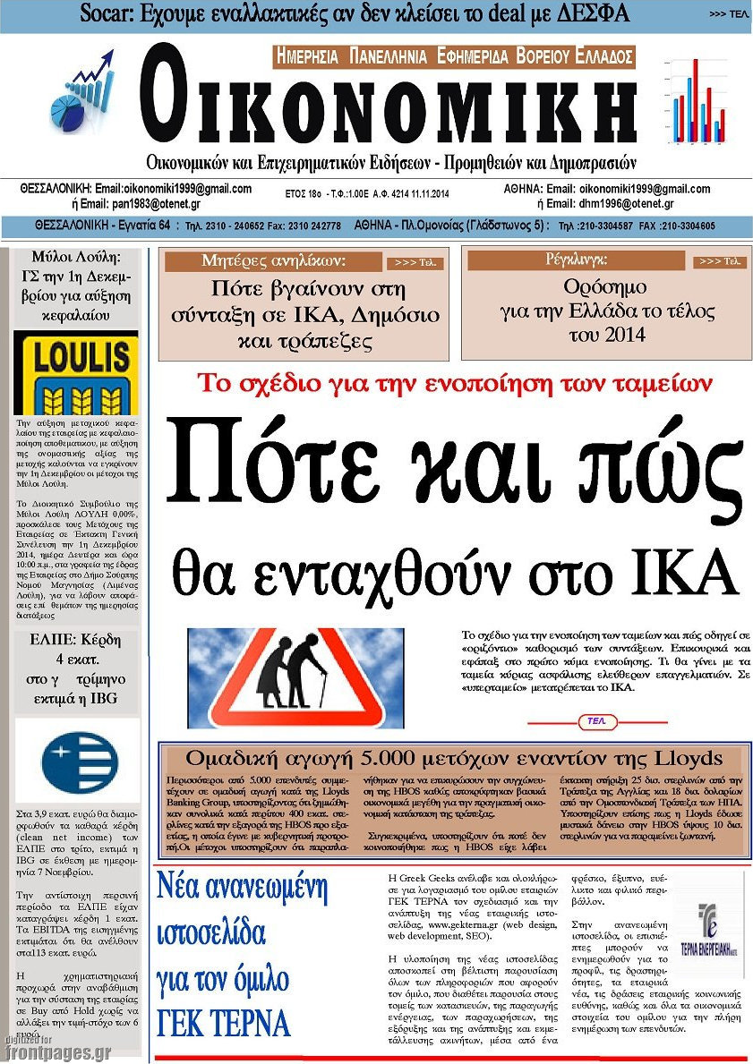 Οι οικονομικές εφημερίδες Enikos Newsroom 08:11, Τρίτη 11 Νοεμβρίου 2014 Media Οι οικονομικές εφημερίδες Διαβάστε τα πρωτοσέλιδα των οικονομικών εφημερίδων: ΟΙΚΟΝΟΜΙΚΕΣ ΕΦΗΜΕΡΙΔΕΣ ΠΡΩΤΟΣΕΛΙΔΑ Μοιράσου το: σχολίασε κι εσύ (0 σχόλια) Ακολουθήστε το enikos.gr στο Google News και μάθετε πρώτοι όλες τις ειδήσεις Δείτε όλες τις τελευταίες ειδήσεις από την Ελλάδα και τον Κόσμο στο enikos.gr Ειδήσεις Ροή Ειδήσεων 4 ώρες πριν Μεσόγειος: Η διαδρομή του ρωσικού τάνκερ «Qendil» και η στοχευμένη επίθεση της Ουκρανίας με drone – Ο Πούτιν προειδοποίησε για αντίποινα 18 λεπτά πριν Αγρότες: Έκλεισαν για μία ώρα την παρακαμπτήρια της Ιόνιας Οδού στη θέση Χαλίκι 2 ώρες πριν Εμπλοκή και αερομαχίες με οπλισμένα τουρκικά F-16 στο Αιγαίο 2 ώρες πριν Πούτιν: «Ναι, είμαι ερωτευμένος» – Βίντεο από τη σπάνια προσωπική παραδοχή του 21 λεπτά πριν Ανδρέας Λυκουρέντζος: Υπέβαλε την παραίτησή του ο πρόεδρος του ΕΛΓΑ, αλλά δεν έγινε δεκτή – Όλο το παρασκήνιο 31 λεπτά πριν Αριθμολογία: Οι άνθρωποι που έχουν γεννηθεί αυτές τις 4 ημερομηνίες, συχνά παρεξηγούνται – «Η καλοσύνη τους κρύβει τεράστια δύναμη» 3 ώρες πριν Μήπως έχετε χάσει τον εαυτό σας στη σχέση σας; 7 «αθόρυβες» υποχωρήσεις που μάλλον κάνατε, χωρίς να το συνειδητοποιήσετε 2 ώρες πριν Ξεχάστε το καθάρισμα το Σαββατοκύριακο: Ο «κανόνας των 20 λεπτών» που θα σας λύσει τα χέρια 4 ώρες πριν Κουίζ για την παλιά Αθήνα: Αναγνωρίζετε την περιοχή; Έχετε περάσει 100% από εκεί 2 λεπτά πριν Συνεχίζει να προκαλεί ο Μίτσκοσκι: «Για μένα το όνομα Μακεδονία είναι ιερό» 12 λεπτά πριν Ο Γιάννης Κακλέας σκηνοθετεί Βερόνικα Δαβάκη και Ιβάν Σβιτάιλο στη «Locandiera» 18 λεπτά πριν Αγρότες: Έκλεισαν για μία ώρα την παρακαμπτήρια της Ιόνιας Οδού στη θέση Χαλίκι 21 λεπτά πριν Ανδρέας Λυκουρέντζος: Υπέβαλε την παραίτησή του ο πρόεδρος του ΕΛΓΑ, αλλά δεν έγινε δεκτή – Όλο το παρασκήνιο 26 λεπτά πριν Ηράκλειο: «Ιπτάμενοι» Άγιοι Βασίληδες μοίρασαν δώρα και χαμόγελα στα παιδιά στο ΠΑΓΝΗ – Δείτε βίντεο ENIKOS NETWORK Το ΕΚΑΒ τιμήθηκε από την Ακαδημία Αθηνών για τα 40 χρόνια προσφοράς του Έχετε πραγματικά μεγάλη καρδιά; 10 χαρακτηριστικά όσων έχουν καλοσύνη Έρχονται νέες προσλήψεις σε Δήμο – Όλες οι λεπτομέρειες Επίδομα παιδιού: Πότε ανοίγει ξανά η πλατφόρμα για τις αιτήσεις Χαρτογραφώντας το «σημείο χωρίς επιστροφή»: Για πρώτη φορά αποκαλύπτεται με λεπτομέρεια το ακανθώδες όριο της ατμόσφαιρας τ... Η Google καταργεί τη λειτουργία «dark web report» – Πώς θα μπορούν οι χρήστες να διαγράφουν τα δεδομένα τους περισσότερα 20:37 , Παρασκευή 19 Δεκεμβρίου 2025 Don’t Forget The Lyrics: Η Έλλη Κοκκίνου υποδέχεται 4 παίκτες που θα κάνουν τα πάντα για να μη χάσουν ούτε… μισή λέξη από τους στίχους Το «Don’t Forget The Lyrics» επιστρέφει απόψε, Παρασκευή 19 Δεκεμβρίου, στις 21:00 με νέο επει... 19:31 , Παρασκευή 19 Δεκεμβρίου 2025 GNTM: Απόψε ο μεγάλος τελικός για τους 4 φιναλίστ Έπειτα από μήνες γεμάτους μόδα, δημιουργία και έντονες αναμετρήσεις, το GNTM 2025 κορυφώνεται,... 18:11 , Παρασκευή 19 Δεκεμβρίου 2025 Το σόι σου: Ο Άρης έρχεται στην Ελλάδα για τις γιορτές των Χριστουγέννων – Τι θα δούμε στο αποψινό εορταστικό επεισόδιο Ένα απολαυστικό, εορταστικό επεισόδιο της σειράς “Το σόι σου”, γεμάτο ευτράπελα αλ... 15:15 , Παρασκευή 19 Δεκεμβρίου 2025 Την Κυριακή με τη Realnews: Ό,τι και αν αγοράσεις, σκανάρεις και κερδίζεις! Την Κυριακή με τη Realnews: Ό,τι και αν αγοράσεις, σκανάρεις και κερδίζεις! Με το PADU app, το... ΤΕΛΕΥΤΑΙΕΣ ΕΙΔΗΣΕΙΣ 2 λεπτά πριν Συνεχίζει να προκαλεί ο Μίτσκοσκι: «Γι