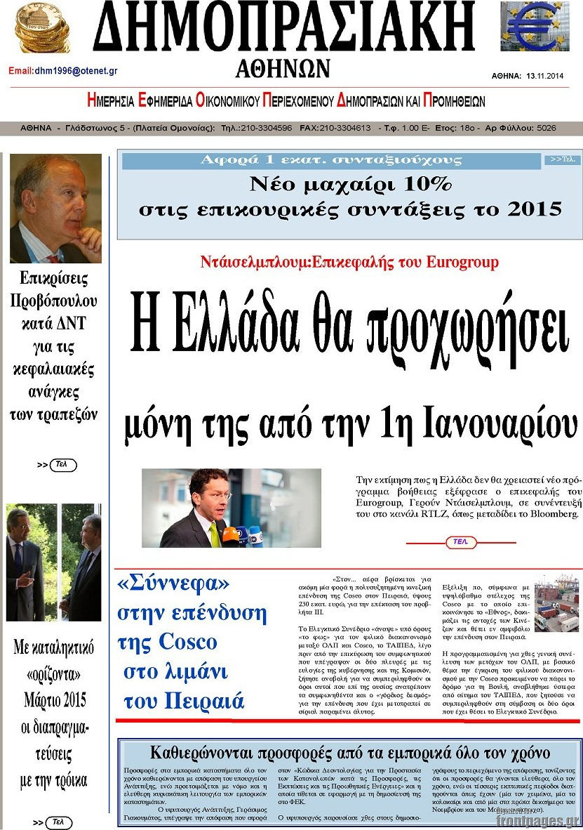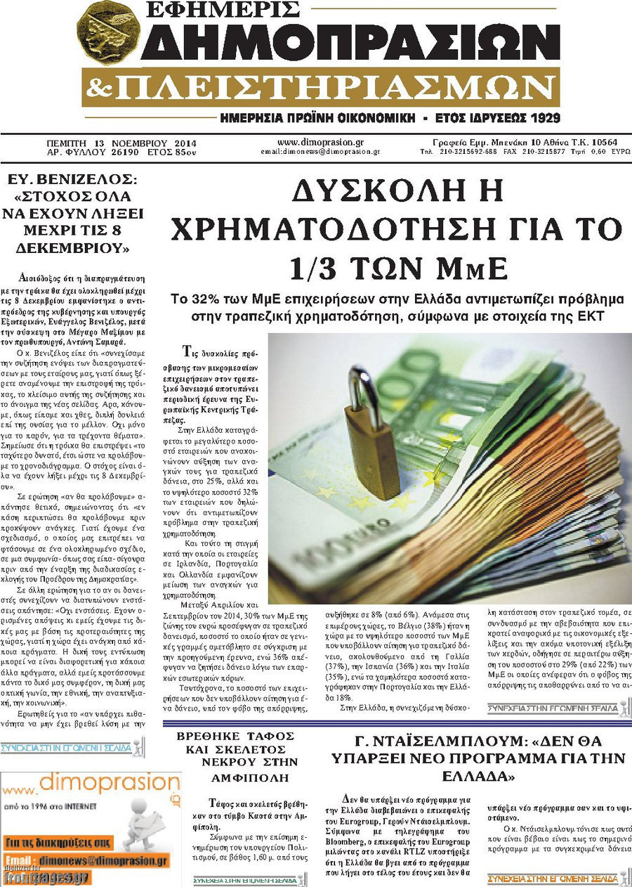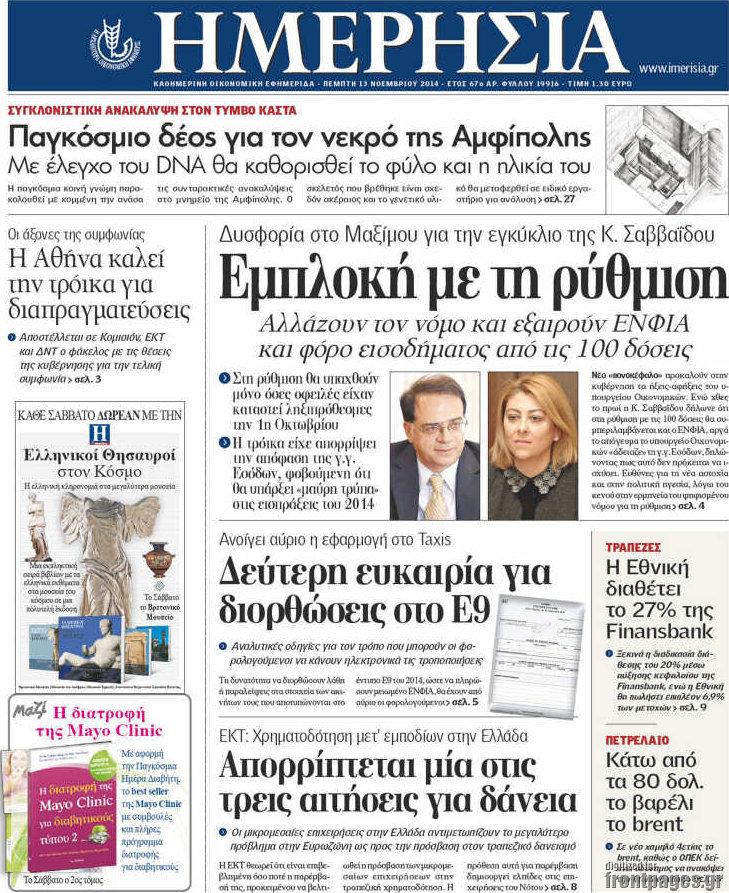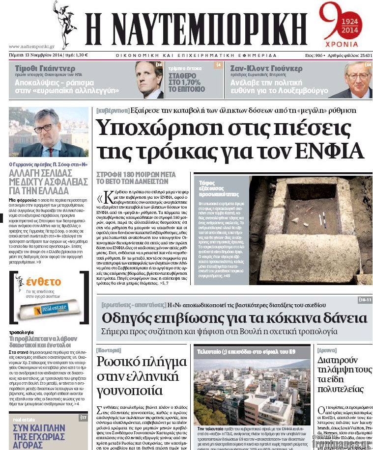 Οι οικονομικές εφημερίδες Enikos Newsroom 08:10, Πέμπτη 13 Νοεμβρίου 2014 Media Οι οικονομικές εφημερίδες Διαβάστε τα πρωτοσέλιδα των οικονομικών εφημερίδων: ΕΦΗΜΕΡΙΔΕΣ ΟΙΚΟΝΟΜΙΚΕΣ ΕΦΗΜΕΡΙΔΕΣ ΠΡΩΤΟΣΕΛΙΔΑ Μοιράσου το: σχολίασε κι εσύ (0 σχόλια) Ακολουθήστε το enikos.gr στο Google News και μάθετε πρώτοι όλες τις ειδήσεις Δείτε όλες τις τελευταίες ειδήσεις από την Ελλάδα και τον Κόσμο στο enikos.gr Ειδήσεις Ροή Ειδήσεων 1 ώρα πριν Αυξάνουν την πίεση προς την κυβέρνηση οι αγρότες: Κλείνουν παρακαμπτήριους και ανοίγουν διόδια – Τι θα γίνει τις γιορτές 17 λεπτά πριν ΟΠΕΚΕΠΕ: Προφυλακιστέος ο φερόμενος αρχηγός και ο λογιστής της εγκληματικής οργάνωσης 1 ώρα πριν Φοινικούντα: Το Σάββατο απολογείται ο 30χρονος γιος γνωστού επιχειρηματία της Πλάκας που παραδόθηκε – Όσα είπε στους αστυνομικούς και ο ρόλος του στο έγκλημα 58 λεπτά πριν Μπορεί ο Μαδούρο να αντέξει τον αποκλεισμό του Τραμπ; Τι θα χρειαστεί η Ουάσινγκτον για να τον ανατρέψει 2 ώρες πριν Πρίγκιπας Ουίλιαμ – Κέιτ: Η νέα οικογενειακή φωτογραφία για τις Χριστουγεννιάτικες κάρτες του 2025 2 ώρες πριν Ύπνος: Η απλή βραδινή ρουτίνα για να προστατεύσετε τα μαλλιά σας από το κρύο κατά τη διάρκεια του χειμώνα 3 ώρες πριν Manifesting: Πώς να συναντήσετε τον σύντροφο της ζωής σας, ανάλογα με τον μήνα γέννησής σας 2 ημέρες πριν 20 χρόνια τα Χριστούγεννα ξεκινούν στα Public με μεγάλη ποικιλία σε δώρα! 1 ώρα πριν Αρχαιολόγοι ανακάλυψαν ρωμαϊκά τεχνουργήματα από μια πόλη που δεν υπήρξε ποτέ – Τα τρία εντυπωσιακά κτίρια και ο αμφορέας με τις… σαρδέλες 17 λεπτά πριν ΟΠΕΚΕΠΕ: Προφυλακιστέος ο φερόμενος αρχηγός και ο λογιστής της εγκληματικής οργάνωσης 27 λεπτά πριν Αθηνά Μαξίμου: Η τρυφερή ανάρτηση για τα γενέθλια του Αιμίλιου Χειλάκη – «Είναι η εκλεκτική συγγένειά μου, η επιλογή και η ευθύνη μου» 42 λεπτά πριν Παναθηναϊκός – Χάποελ Τελ Αβίβ 93-82: Με… φόρα από την Κωνσταντινούπολη 58 λεπτά πριν Μπορεί ο Μαδούρο να αντέξει τον αποκλεισμό του Τραμπ; Τι θα χρειαστεί η Ουάσινγκτον για να τον ανατρέψει 1 ώρα πριν Αρχαιολόγοι ανακάλυψαν ρωμαϊκά τεχνουργήματα από μια πόλη που δεν υπήρξε ποτέ – Τα τρία εντυπωσιακά κτίρια και ο αμφορέας με τις… σαρδέλες ENIKOS NETWORK Σε περίοδο αυξημένης δραστηριότητας η γρίπη στην Ελλάδα-Μέτρα προστασίας από τον ΕΟΔΥ Σκέφτεστε συνέχεια συζητήσεις που έχετε κάνει; Τι σημαίνει αυτό, σύμφωνα με ειδικό Στεγαστικό: Τι λέει η ΠΟΜΙΔΑ για τα νέα μέτρα που ανακοίνωσε ο Κυριάκος Μητσοτάκης Λαγκάρντ: Αισιόδοξη για την ανάπτυξη της Ευρωζώνης, αβέβαιη για τον πληθωρισμό Χαρτογραφώντας το «σημείο χωρίς επιστροφή»: Για πρώτη φορά αποκαλύπτεται με λεπτομέρεια το ακανθώδες όριο της ατμόσφαιρας τ... Η Google καταργεί τη λειτουργία «dark web report» – Πώς θα μπορούν οι χρήστες να διαγράφουν τα δεδομένα τους περισσότερα 17:45 , Πέμπτη 18 Δεκεμβρίου 2025 ROUK ZOUK: Εορταστικό επεισόδιο με καλεσμένους τους πρωταγωνιστές του «Γιατί ρε πατέρα» Το Σάββατο 20 Δεκεμβρίου στις 21:00, η Ζέτα Μακρυπούλια υποδέχεται εκλεκτούς ηθοποιούς που όλο... 17:20 , Πέμπτη 18 Δεκεμβρίου 2025 Άγιος έρωτας: Η Χριστίνα εξομολογείται στον πατέρα Νικόλαο, απόψε στις 21:00 στον Alpha Η Νότα αποφασίζει να εκδικηθεί τον Πέτρο και τον Στέφανο, για χάρη του Λούη, όμως τα πράγματα ... 16:50 , Πέμπτη 18 Δεκεμβρίου 2025 Να μ’ αγαπάς: Ζωή και Φωτεινή συμφιλιώνονται ως μάνα με κόρη, απόψε στις 20:00 Η ταυτότητα του Άγγελου αποκαλύπτεται στο νέο επεισόδιο της σειράς “Να μ’ αγαπάς... 15:52 , Πέμπτη 18 Δεκεμβρίου 2025 Το Σπίτι Δίπλ