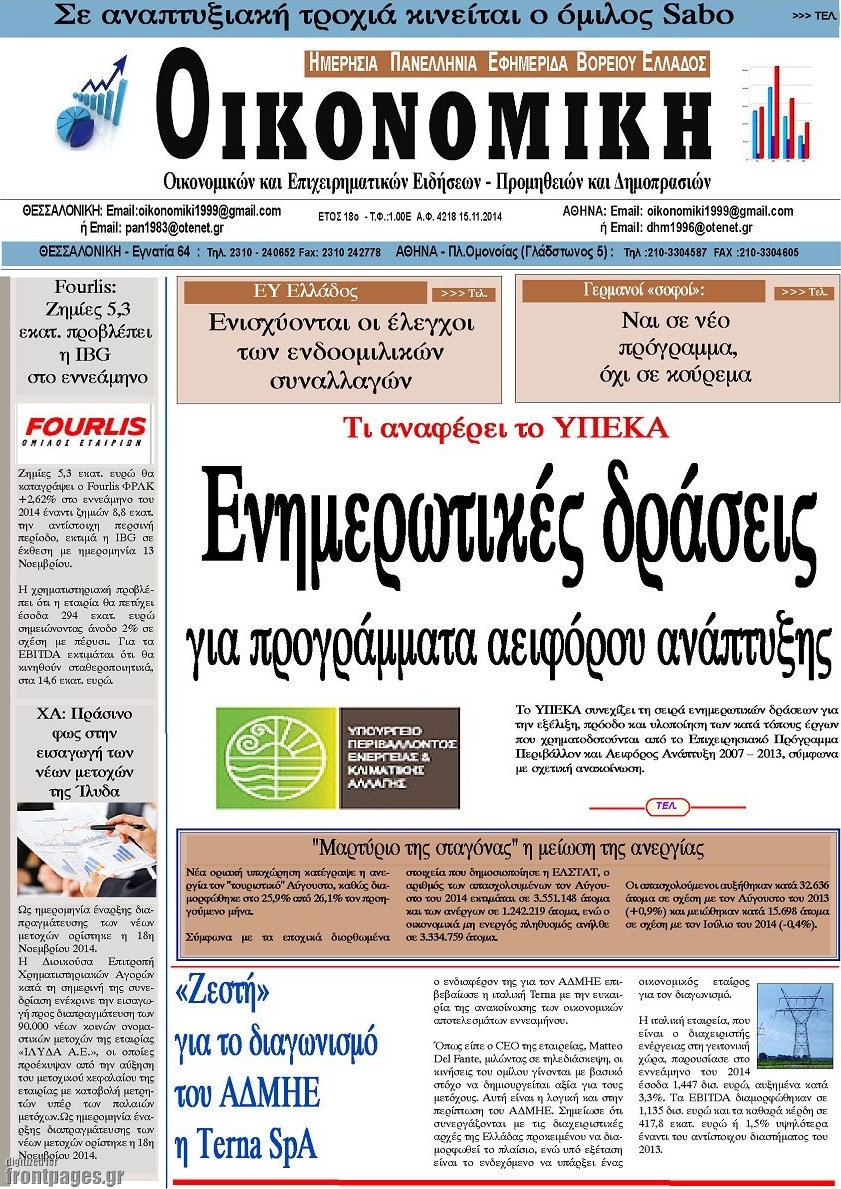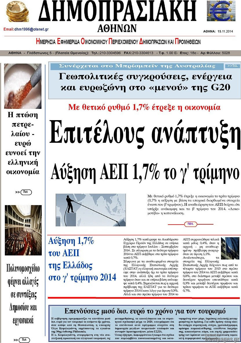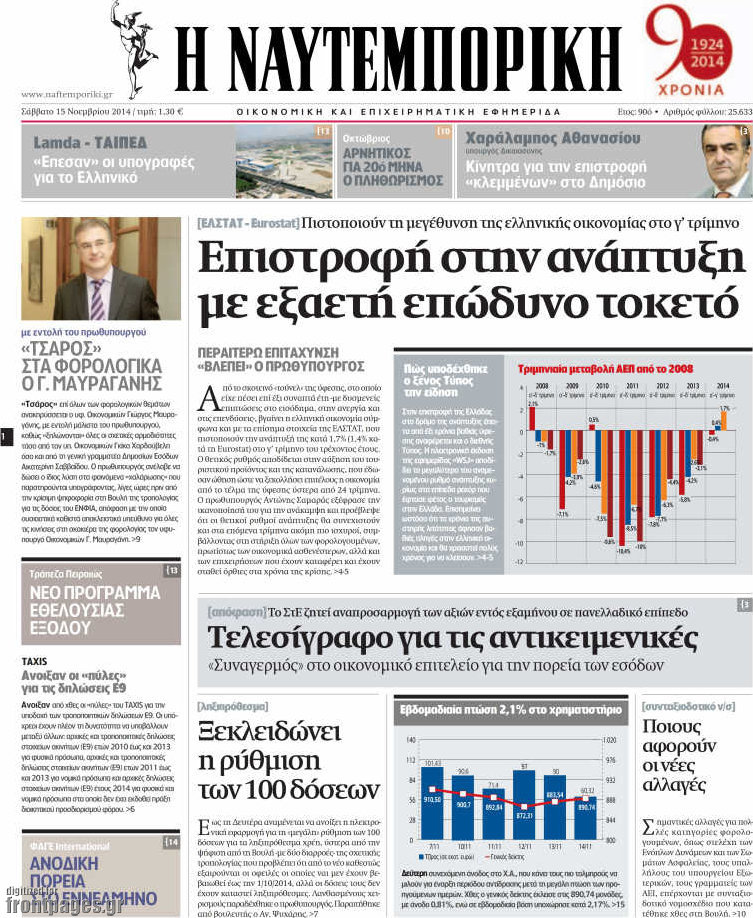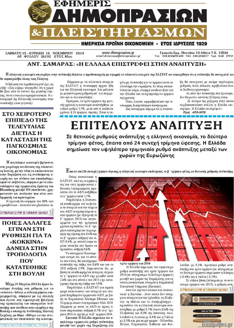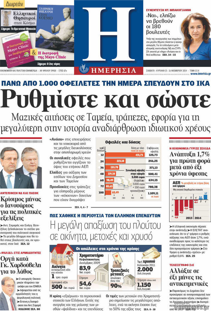 Οι οικονομικές εφημερίδες Enikos Newsroom 08:07, Σάββατο 15 Νοεμβρίου 2014 Media Οι οικονομικές εφημερίδες ΟΙΚΟΝΟΜΙΚΕΣ ΕΦΗΜΕΡΙΔΕΣ ΠΡΩΤΟΣΕΛΙΔΑ Μοιράσου το: σχολίασε κι εσύ (0 σχόλια) Ακολουθήστε το enikos.gr στο Google News και μάθετε πρώτοι όλες τις ειδήσεις Δείτε όλες τις τελευταίες ειδήσεις από την Ελλάδα και τον Κόσμο στο enikos.gr Ειδήσεις Ροή Ειδήσεων 4 ώρες πριν Εκτός ευρωομάδας ΣΥΡΙΖΑ ο Νίκος Παππάς μετά την επίθεση στον δημοσιογράφο Νίκο Γιαννόπουλο – Η μήνυση και οι νέες δηλώσεις 4 ώρες πριν «Αγριεύουν» οι αγρότες: «Δεν συντρέχει λόγος συνάντησης με τον πρωθυπουργό» – Ώρα αποφάσεων στη σύσκεψη της Πέμπτης 4 ώρες πριν Κυψέλη: Χωρίς την οικογένειά της δίπλα της απολογήθηκε η 16χρονη – «Της είχε επιτεθεί κάποιος για να την βιάσει, φοβήθηκε και κυκλοφορούσε με μαχαίρι» 4 ώρες πριν Politico: Το πρόβλημα της Ευρώπης δεν είναι το Βέλγιο αλλά ο Ντόναλντ Τραμπ 6 ώρες πριν Αλεξανδρούπολη: Πολυοργανική ανεπάρκεια λόγω υποσιτισμού η αιτία θανάτου του 3χρονου αγοριού 4 ώρες πριν Μυστήριο με τεράστιες κυκλικές πέτρες 200 κιλών – Ανακαλύφθηκαν τυχαία κατά τη διάρκεια οδικών έργων και κανείς δεν ξέρει από πού προέρχονται 5 ώρες πριν Ύπνος: Ειδικός εξηγεί τον πραγματικό λόγο που ξυπνάτε στις 4 τα ξημερώματα – Ο ρόλος των ορμονών και του κιρκάδιου ρυθμού 6 ώρες πριν Αριθμολογία: Οι άνθρωποι που έχουν γεννηθεί αυτές τις 4 ημερομηνίες, είναι τρυφεροί και αγαπούν ανιδιοτελώς 18 ώρες πριν 20 χρόνια τα Χριστούγεννα ξεκινούν στα Public με μεγάλη ποικιλία σε δώρα! 20 λεπτά πριν Σουδάν: Επιδρομή drone σε χωριό του Νότιου Κορντοφάν – Οκτώ νεκροί 36 λεπτά πριν Αλ Τσαντίρι Νιουζ: Η κόρη της Πάολα στο κοινό – Η ατάκα Λαζόπουλου που την έκανε να «κοκκινήσει» 50 λεπτά πριν Ρωσία: Ουκρανικές δυνάμεις έπληξαν πλοίο στο λιμάνι του Ροστόφ – Αναφορές για θύματα 1 ώρα πριν Βρυξέλλες: Νυχτερινό… μπλόκο αγροτών μπροστά από το κτίριο της Ευρωπαϊκής Επιτροπής – Πάνω από 100 τρακτέρ απέκλεισαν την λεωφόρο 1 ώρα πριν Euroleague: Απρόσμενη ήττα για την Μονακό του Βασίλη Σπανούλη – Η βαθμολογία μετά το τέλος της 16ης αγωνιστικής ENIKOS NETWORK Αϋπνία: Το κόλπο που θα σας βοηθήσει να κοιμηθείτε απόψε – Είναι απλό και έχει αποτέλεσμα 2,6 εκατομμύρια πολίτες έχουν ήδη εμβολιαστεί κατά της γρίπης ΕΛΣΤΑΤ: Τι δείχνουν τα νέα στοιχεία για τις ηλεκτρονικές παραγγελίες των επιχειρήσεων ΚΕΠΕ: Οι 3 διακριτές συμβολές των ΜμΕ και της μεταποίησης στην ελληνική οικονομία Χαρτογραφώντας το «σημείο χωρίς επιστροφή»: Για πρώτη φορά αποκαλύπτεται με λεπτομέρεια το ακανθώδες όριο της ατμόσφαιρας τ... Η Google καταργεί τη λειτουργία «dark web report» – Πώς θα μπορούν οι χρήστες να διαγράφουν τα δεδομένα τους περισσότερα 02:30 , Πέμπτη 18 Δεκεμβρίου 2025 Αλ Τσαντίρι Νιουζ: Η κόρη της Πάολα στο κοινό – Η ατάκα Λαζόπουλου που την έκανε να «κοκκινήσει» Γιορτινή διάθεση και ευχάριστες στιγμές γέμισε η αποψινή, τελευταία για το 2025, εκπομπή του «... 22:24 , Τετάρτη 17 Δεκεμβρίου 2025 Το Σπίτι Δίπλα Στο Ποτάμι: Σε κίνδυνο η υγεία του Απόστολου – Τι θα δούμε απόψε “Το Σπίτι Δίπλα στο Ποτάμι” ξετυλίγει το νήμα της ζωής των πέντε αδελφών με καταισ... 21:14 , Τετάρτη 17 Δεκεμβρίου 2025 Παιχνίδια Εκδίκησης: Θα καταφέρει ο Χρήστος να κλονίσει την εμπιστοσύνη της Μάγιας απέναντι στον Άγη; Τα «Παιχνίδια Εκδίκησης» έρχονται απόψε στις 22:30, στον Αντ1, με το τελευταίο επεισόδιο της χ... 20:57 , Τετάρτη 17 Δεκεμβρίου 2025 Άγιος Έρωτας: Η Χλόη καταθέτει εναντίον του πατέρα της και ο Χάρης αποκαλύπτει στον 