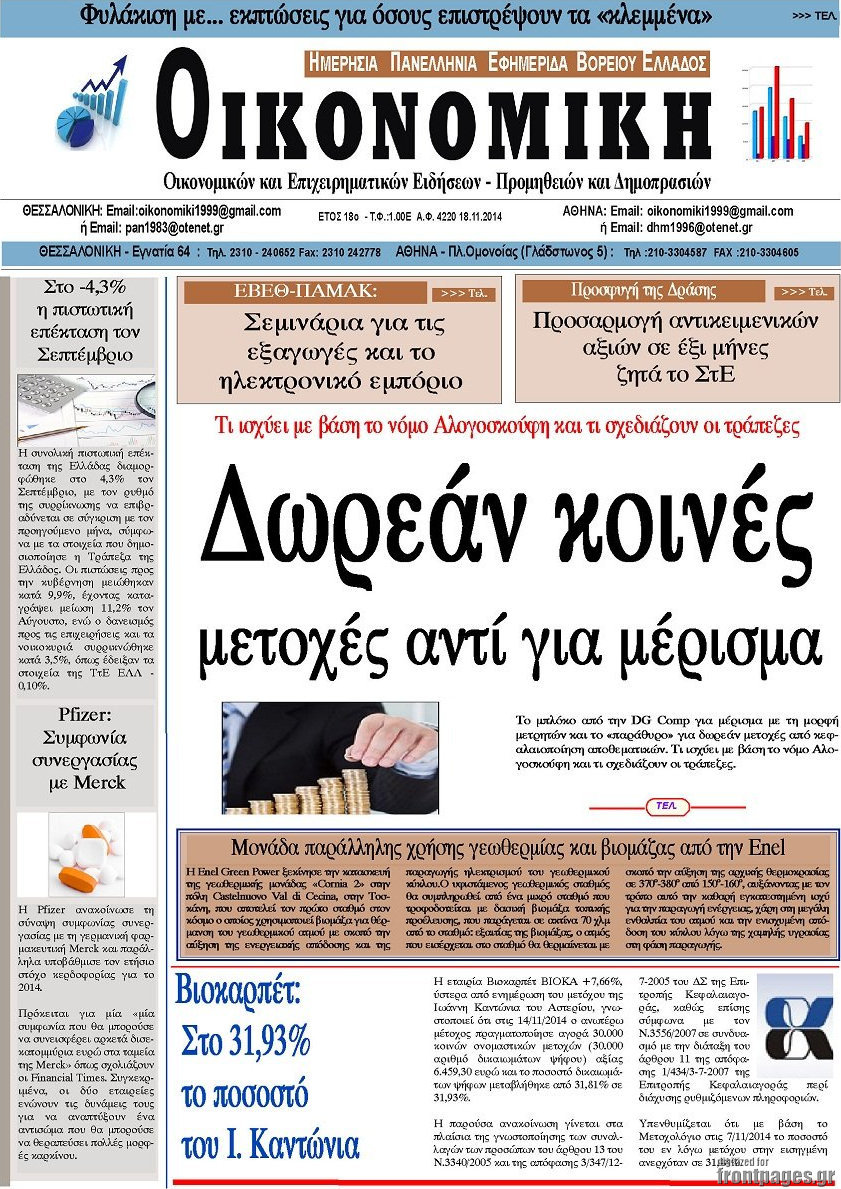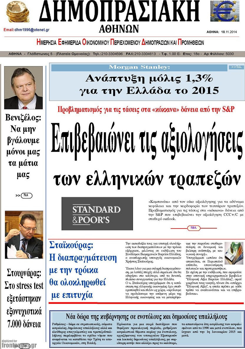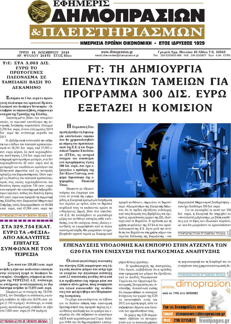 Οι οικονομικές εφημερίδες Enikos Newsroom 07:37, Τρίτη 18 Νοεμβρίου 2014 Media Οι οικονομικές εφημερίδες Διαβάστε τα πρωτοσέλιδα των οικονομικών εφημερίδων: ΟΙΚΟΝΟΜΙΚΕΣ ΕΦΗΜΕΡΙΔΕΣ ΠΡΩΤΟΣΕΛΙΔΑ Μοιράσου το: σχολίασε κι εσύ (0 σχόλια) Ακολουθήστε το enikos.gr στο Google News και μάθετε πρώτοι όλες τις ειδήσεις Δείτε όλες τις τελευταίες ειδήσεις από την Ελλάδα και τον Κόσμο στο enikos.gr Ειδήσεις Ροή Ειδήσεων 5 ώρες πριν Νέα Πέραμος: Πού στρέφονται οι έρευνες των αρχών για το άγριο έγκλημα με θύμα τον 27χρονο επιχειρηματία – «Δεν είχε πειράξει κανέναν» λένε οι γονείς του 5 ώρες πριν Μητσοτάκης για τη συνταγματική αναθεώρηση: «Φιλοδοξία μου είναι το 2030 να έχουμε κλείσει όλες τις εκκρεμότητες με το πελατειακό κράτος» 5 ώρες πριν Εξαφάνιση Λόρας: Ο πατέρας της ήταν αυτός που αποκάλυψε ότι ταξίδεψε στη Γερμανία – Το πρόσωπο-«κλειδί», η νέα μαρτυρία και οι «στοχευμένες» κινήσεις της ανήλικης 8 ώρες πριν Δημοσκόπηση Alco: Στις 13 μονάδες η διαφορά ΝΔ-ΠΑΣΟΚ – Πώς αξιολογούν οι πολίτες τις νέες πολιτικές κινήσεις; 4 ώρες πριν The Washington Post: Τι έχουμε μάθει ως τώρα από τα νέα στοιχεία στην υπόθεση Επστάιν – «Η αλήθεια να φτάσει στο κόκκαλο» 35 λεπτά πριν Τα ζώδια σήμερα, Τρίτη 3 Φεβρουαρίου 2026: Τοξότες, σας εξαντλεί να είστε συνεχώς «στην τσίτα» και ψάχνετε κάτι διαφορετικό 7 ώρες πριν Ποιος είναι ο έρωτας της ζωή σας; Ανακαλύψτε την αδελφή-ψυχή σας με βάση τον μήνα γέννησή σας 9 ώρες πριν Λευκές περσίδες ξανά: Η απλή μέθοδος για να εξαφανίσετε την κιτρινίλα χωρίς τρίψιμο 6 ώρες πριν Ύπνος: Η βραδινή ρουτίνα που εγγυάται 8 ώρες ξεκούρασης, σύμφωνα με ειδικό 16 λεπτά πριν Η Κούβα «αδειάζει» τον Τραμπ: Δεν υπάρχει επίσημος διάλογος με τις ΗΠΑ, μόνο διπλωματικές «ανταλλαγές» 35 λεπτά πριν Τα ζώδια σήμερα, Τρίτη 3 Φεβρουαρίου 2026: Τοξότες, σας εξαντλεί να είστε συνεχώς «στην τσίτα» και ψάχνετε κάτι διαφορετικό 41 λεπτά πριν Λαβρόφ: Θεμιτοί στόχοι οι ξένες στρατιωτικές δυνάμεις στην Ουκρανία 58 λεπτά πριν Δημήτρης Νατσιός: Η μονιμότητα των δημοσίων αποτελεί κόκκινη γραμμή για εμάς – Η «Νίκη» θα κατέβει αυτόνομα στις εκλογές 1 ώρα πριν Ουκρανία: Tο Κίεβο δέχεται πυραυλική επίθεση – Ισχυρές εκρήξεις ENIKOS NETWORK 5 πράγματα που κάνουν μαζί τα ευτυχισμένα ζευγάρια Δύο παιδιά με γρίπη στις ΜΕΘ – Συνεχίζεται η απειλή των εποχικών λοιμώξεων Επιθεώρηση Εργασίας: Αυξήθηκαν κατά 4% οι έλεγχοι το 2025 – Στα 53,4 εκατ. ευρώ τα πρόστιμα Τα ξενοδοχεία κατέθεσαν αγωγή κατά της Booking για παράνομες ρήτρες Ευπάθεια στο moltbook ai αποκαλύπτει email, tokens σύνδεσης και api keys Αυτός είναι ο ρόλος της μικρής τρύπας στους νυχοκόπτες – «Είμαι ο μόνος που δεν το ήξερε;»» περισσότερα 18:18 , Δευτέρα 02 Φεβρουαρίου 2026 Άγιος Έρωτας: Η μικρή Ελευθερία δεν θέλει τους νέους της γονείς και η Χλόη καταφεύγει στον πατέρα Νικόλαο Όσα θα δούμε απόψε στο νέο επεισόδιο της σειράς “Άγιος Έρωτας” στις 22:00 στον Alp... 18:07 , Δευτέρα 02 Φεβρουαρίου 2026 MasterChef 10: Το πρώτο Mystery Box έχει την παιχνιδιάρικη υπογραφή του Πάνου Ιωαννίδη Μετά τις πρώτες εβδομάδες και τις διαδικασίες, που προηγήθηκαν, 14 διαγωνιζόμενοι της πρώτης μ... 17:45 , Δευτέρα 02 Φεβρουαρίου 2026 Grand Hotel: Ο Πέτρος και η Αλίκη είναι και πάλι μαζί Καταιγιστικές οι εξελίξεις στο νέο διπλό επεισόδιο της σειράς “Grand Hotel” στις 2... 17:15 , Δευτέρα 02 Φεβρουαρίου 2026 Να μ’ αγαπάς: Η Φωτεινή ανακοινώνει στη Ζωή πως είναι έγκυος, απόψε στις 20:00, με διπλό επεισόδιο Ο Θεόφιλος λαμβάνει τα αποτελέσματα του τεστ DΝA, στο νέο διπλό επεισόδιο 