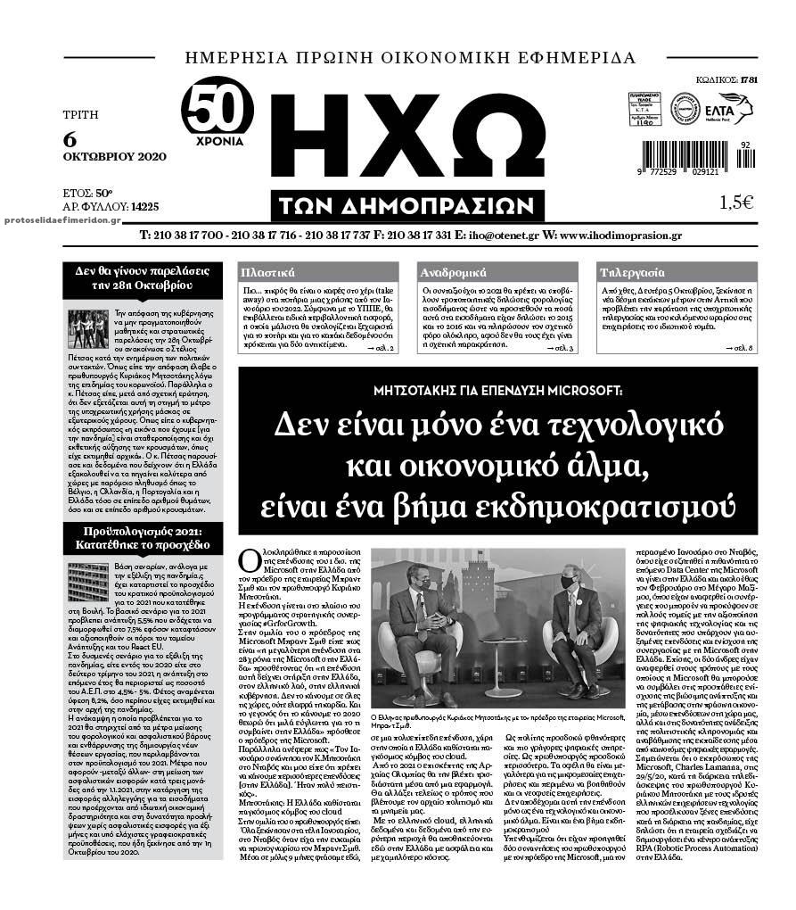 Οι οικονομικές εφημερίδες 6/10/2020 Σήφης Γαρυφαλάκης 06:12, Τρίτη 06 Οκτωβρίου 2020 Media Διαβάστε τα πρωτοσέλιδα των οικονομικών εφημερίδων… ΕΦΗΜΕΡΙΔΕΣ ΟΙΚΟΝΟΜΙΚΕΣ ΕΦΗΜΕΡΙΔΕΣ ΠΡΩΤΟΣΕΛΙΔΑ ΠΡΩΤΟΣΕΛΙΔΑ ΕΦΗΜΕΡΙΔΩΝ Μοιράσου το: σχολίασε κι εσύ (0 σχόλια) Ακολουθήστε το enikos.gr στο Google News και μάθετε πρώτοι όλες τις ειδήσεις Δείτε όλες τις τελευταίες ειδήσεις από την Ελλάδα και τον Κόσμο στο enikos.gr Ειδήσεις Ροή Ειδήσεων 7 ώρες πριν Μητσοτάκης: Αναγκαία η μεταρρύθμιση του πρωτογενούς τομέα – Τα 6 νέα μέτρα για το στεγαστικό και οι αναφορές σε «Ιθάκη» και «πολιτικούς του καναπέ» 6 ώρες πριν Δάνεια σε ελβετικό φράγκο: Τα βασικά σημεία της ρύθμισης – ανάσας για 40.000 δανειολήπτες – Αναλυτικός οδηγός με ερωτήσεις και απαντήσεις 6 ώρες πριν Κυψέλη: Εξιτήριο πήρε η 14χρονη μαθήτρια που μαχαιρώθηκε από την 16χρονη σε σχολείο – «Θέλω να βοηθήσω το παιδί, έχει μπλέξει με κακές παρέες» 6 ώρες πριν Τραμπ: Γιατί κατέθεσε τώρα την αγωγή κατά του BBC – Πώς η κίνησή του εξυπηρετεί το νέο δόγμα του για «αντίσταση» στην Ευρώπη, υπέρ των συντηρητικών 7 ώρες πριν ΟΠΕΚΕΠΕ – Παράνομες επιδοτήσεις: Ελεύθεροι με περιοριστικούς όρους και οι 7 κατηγορούμενοι που απολογήθηκαν σήμερα 6 ώρες πριν Ανακαλύφθηκε βυθισμένη πέτρινη κατασκευή ανοιχτά της Κριμαίας – Αποτελεί μέρος αρχαίας ελληνικής αποικίας 7 ώρες πριν Ύπνος: Αυτό μπορεί να είναι το χειρότερο λάθος για το βιολογικό ρολόι σας, σύμφωνα με ειδικό 8 ώρες πριν Αριθμολογία: Οι άνθρωποι που έχουν γεννηθεί αυτές τις 3 ημερομηνίες, προσελκύουν μεγάλη τύχη πριν από το τέλος του 2025 10 ώρες πριν Οι 7 συμπεριφορές που μαρτυρούν ότι ένας άνδρας επενδύει μακροπρόθεσμα σε μια σχέση 11 λεπτά πριν Παλαιστινιακό: «Η λύση των δύο κρατών είναι ο μόνος βιώσιμος δρόμος», τόνισε η Ελλάδα στο Συμβούλιο Ασφαλείας του ΟΗΕ 18 λεπτά πριν Ελένη Καρακάση: «Ένιωθα πολύ αδικημένη, δεν μπορούσα να ελέγξω τον εαυτό μου σε δύσκολες στιγμές» 27 λεπτά πριν Κλαούδια Σέινμπαουμ προς Ντόναλντ Τραμπ για φαιντανύλη: Να επιτεθούμε στα αίτια κατανάλωσης αντί να την κατατάσσουμε στα «όπλα μαζικής καταστροφής» 35 λεπτά πριν Ρωσία: Ουκρανική επίθεση με drones στο Κρασνοντάρ – Δύο τραυματίες, ζημιές σε σπίτια και διακοπή ρεύματος 43 λεπτά πριν Αντόνιο Ταγιάνι: Νομικά εμπόδια για τη χρήση των ρωσικών κεφαλαίων υπέρ της Ουκρανίας ENIKOS NETWORK Αίτημα ΙΣΑ για την εξαίρεση των προσωπικών γιατρών από τις κατ’ οίκον επισκέψεις Η σκανδιναβική μέθοδος στον ύπνο που μπορεί να σώσει έναν γάμο Πιερρακάκης: Ο προϋπολογισμός συμβάλλει ουσιαστικά στην ενίσχυση της αγοραστικής δύναμης της πλειονότητας των εργαζομένων e-ΕΦΚΑ: Παρατείνεται η προθεσμία για την υποβολή ΑΠΔ – Ποιους αφορά Σύγχρονος Νοστράδαμος: Προειδοποιεί για «μεγάλο γεγονός» τους επόμενους μήνες που θα συγκλονίσει τη Βρετανία και τον κόσμο Τεστ παρατηρητικότητας: Μπορείτε να βρείτε τις 3 διαφορές στις εικόνες με έναν πιγκουίνο σε 14 δευτερόλεπτα περισσότερα 20:06 , Τρίτη 16 Δεκεμβρίου 2025 Ο ΣΚΑΙ καταγγέλλει τον ΕΚΚΟΜΕΔ Επιστολή με την οποία καταγράφει την έντονη διαμαρτυρία του προς τον διευθύνοντα σύμβουλο του... 17:40 , Τρίτη 16 Δεκεμβρίου 2025 Eurovision: Στις 4 Ιανουαρίου αποκαλύπτονται τα 28 τραγούδια του ελληνικού τελικού Η αγωνία τελειώνει, η γιορτή της Eurovision αρχίζει στην ΕΡΤ από τις πρώτες ημέρες της νέας χρ... 17:09 , Τρίτη 16 Δεκεμβρίου 2025 Alter Ego Media: Βαθύτατη θλίψη και ειλικρινή συλλυπητήρια για την απώλεια της Ειρήνης Μαρινάκη Τη βαθύτατη θ