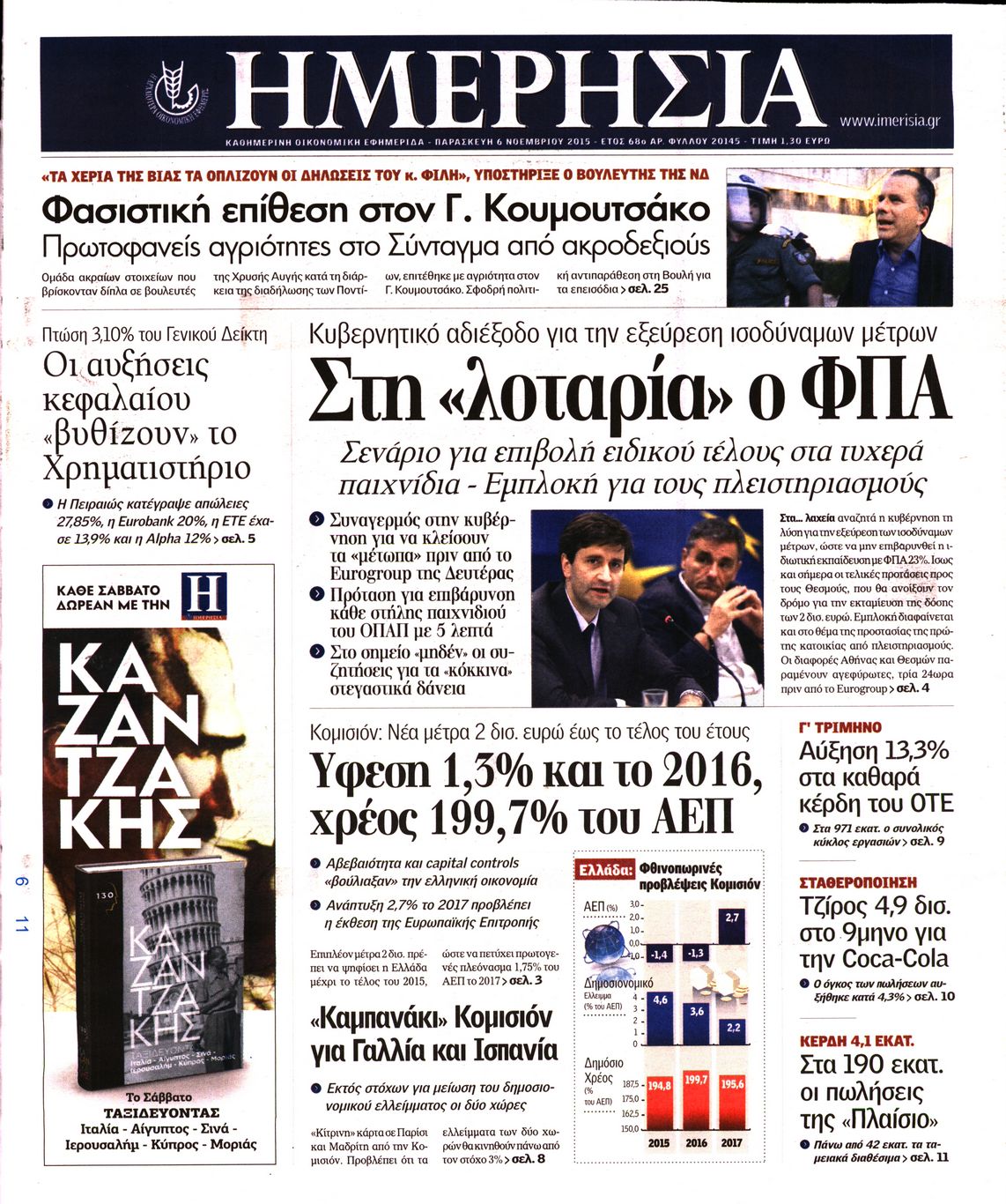 Οι οικονομικές εφημερίδες 6/11/2015 Enikos Newsroom 06:09, Παρασκευή 06 Νοεμβρίου 2015 Media Διαβάστε τα σημερινά πρωτοσέλιδα των οικονομικών εφημερίδων: ΟΙΚΟΝΟΜΙΚΕΣ ΕΦΗΜΕΡΙΔΕΣ ΠΡΩΤΟΣΕΛΙΔΑ Μοιράσου το: σχολίασε κι εσύ (0 σχόλια) Ακολουθήστε το enikos.gr στο Google News και μάθετε πρώτοι όλες τις ειδήσεις Δείτε όλες τις τελευταίες ειδήσεις από την Ελλάδα και τον Κόσμο στο enikos.gr Ειδήσεις Ροή Ειδήσεων 56 λεπτά πριν Ευρωπαϊκή Ένωση: Χωρίς συμφωνία, για την μακροπρόθεσμη χρηματοδότηση της Ουκρανίας, ολοκληρώθηκε η Σύνοδος Κορυφής στις Βρυξέλλες 4 ώρες πριν ΟΠΕΚΕΠΕ: Προφυλακιστέος ο φερόμενος αρχηγός και ο λογιστής της εγκληματικής οργάνωσης 5 ώρες πριν Αυξάνουν την πίεση προς την κυβέρνηση οι αγρότες: Κλείνουν παρακαμπτήριους και ανοίγουν διόδια – Τι θα γίνει τις γιορτές 5 ώρες πριν Φοινικούντα: Το Σάββατο απολογείται ο 30χρονος γιος γνωστού επιχειρηματία της Πλάκας που παραδόθηκε – Όσα είπε στους αστυνομικούς και ο ρόλος του στο έγκλημα 4 ώρες πριν ΑΕΚ – Κραϊόβα 3-2: Επική ανατροπή και πρόκριση στους «16» του Conference League η Ένωση 5 ώρες πριν Αρχαιολόγοι ανακάλυψαν ρωμαϊκά τεχνουργήματα από μια πόλη που δεν υπήρξε ποτέ – Τα τρία εντυπωσιακά κτίρια και ο αμφορέας με τις… σαρδέλες 6 ώρες πριν Ύπνος: Η απλή βραδινή ρουτίνα για να προστατεύσετε τα μαλλιά σας από το κρύο κατά τη διάρκεια του χειμώνα 7 ώρες πριν Manifesting: Πώς να συναντήσετε τον σύντροφο της ζωής σας, ανάλογα με τον μήνα γέννησής σας 2 ημέρες πριν 20 χρόνια τα Χριστούγεννα ξεκινούν στα Public με μεγάλη ποικιλία σε δώρα! 9 λεπτά πριν Αιματηρή βομβιστική επίθεση στην Υεμένη: Τουλάχιστον τρεις νεκροί και 13 τραυματίες 12 λεπτά πριν Στη Φλόριντα σήμερα οι διαβουλεύσεις σχετικά με τα επόμενα στάδια για τη Λωρίδα της Γάζας 16 λεπτά πριν Σίσσυ Τουμάση: «Είμαι ασθενοφοβική πάρα πολύ και με πιάνει μια παράνοια μ’ αυτό» 41 λεπτά πριν Ντόναλντ Τραμπ: Δεν χρειάζομαι την έγκριση του Κογκρέσου για να διατάξω στρατιωτικά πλήγματα στη Βενεζουέλα 56 λεπτά πριν Ευρωπαϊκή Ένωση: Χωρίς συμφωνία, για την μακροπρόθεσμη χρηματοδότηση της Ουκρανίας, ολοκληρώθηκε η Σύνοδος Κορυφής στις Βρυξέλλες ENIKOS NETWORK Σε περίοδο αυξημένης δραστηριότητας η γρίπη στην Ελλάδα-Μέτρα προστασίας από τον ΕΟΔΥ Σκέφτεστε συνέχεια συζητήσεις που έχετε κάνει; Τι σημαίνει αυτό, σύμφωνα με ειδικό Στεγαστικό: Τι λέει η ΠΟΜΙΔΑ για τα νέα μέτρα που ανακοίνωσε ο Κυριάκος Μητσοτάκης Λαγκάρντ: Αισιόδοξη για την ανάπτυξη της Ευρωζώνης, αβέβαιη για τον πληθωρισμό Χαρτογραφώντας το «σημείο χωρίς επιστροφή»: Για πρώτη φορά αποκαλύπτεται με λεπτομέρεια το ακανθώδες όριο της ατμόσφαιρας τ... Η Google καταργεί τη λειτουργία «dark web report» – Πώς θα μπορούν οι χρήστες να διαγράφουν τα δεδομένα τους περισσότερα 02:50 , Παρασκευή 19 Δεκεμβρίου 2025 GNTM: «Κλείδωσαν» οι τέσσερις φιναλίστ – Μεγάλη ανατροπή στις τελευταίες αποχωρήσεις Για προτελευταία φορά εμφανίστηκαν στο πλατό του GNTM οι φιναλίστ του φετινού κύκλου, το βράδυ... 17:45 , Πέμπτη 18 Δεκεμβρίου 2025 ROUK ZOUK: Εορταστικό επεισόδιο με καλεσμένους τους πρωταγωνιστές του «Γιατί ρε πατέρα» Το Σάββατο 20 Δεκεμβρίου στις 21:00, η Ζέτα Μακρυπούλια υποδέχεται εκλεκτούς ηθοποιούς που όλο... 17:20 , Πέμπτη 18 Δεκεμβρίου 2025 Άγιος έρωτας: Η Χριστίνα εξομολογείται στον πατέρα Νικόλαο, απόψε στις 21:00 στον Alpha Η Νότα αποφασίζει να εκδικηθεί τον Πέτρο και τον Στέφανο, για χάρη του Λούη, όμως τα πράγματα ... 16:50 , Πέμπτη 18 Δεκεμβρίου 2025 Να μ’ αγαπάς: Ζωή και Φωτεινή συμφιλιώνοντ