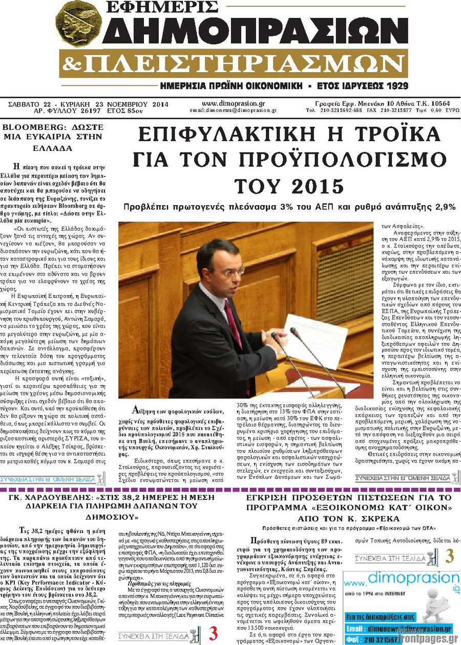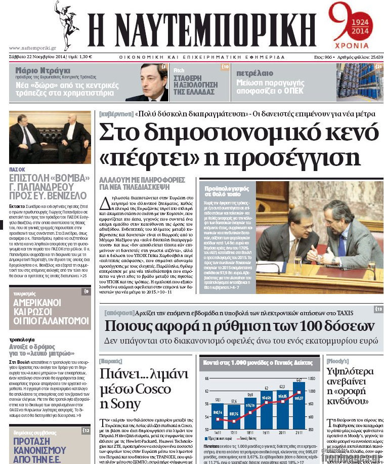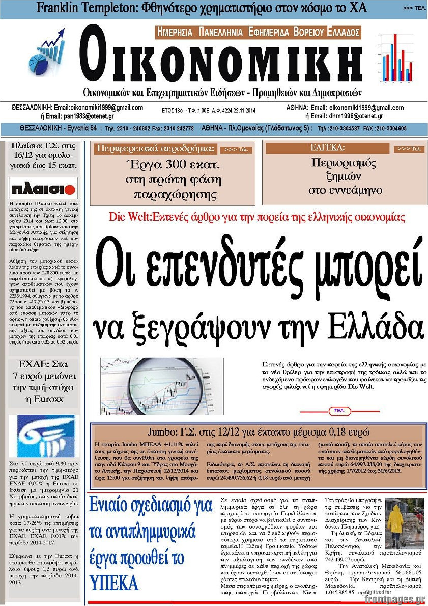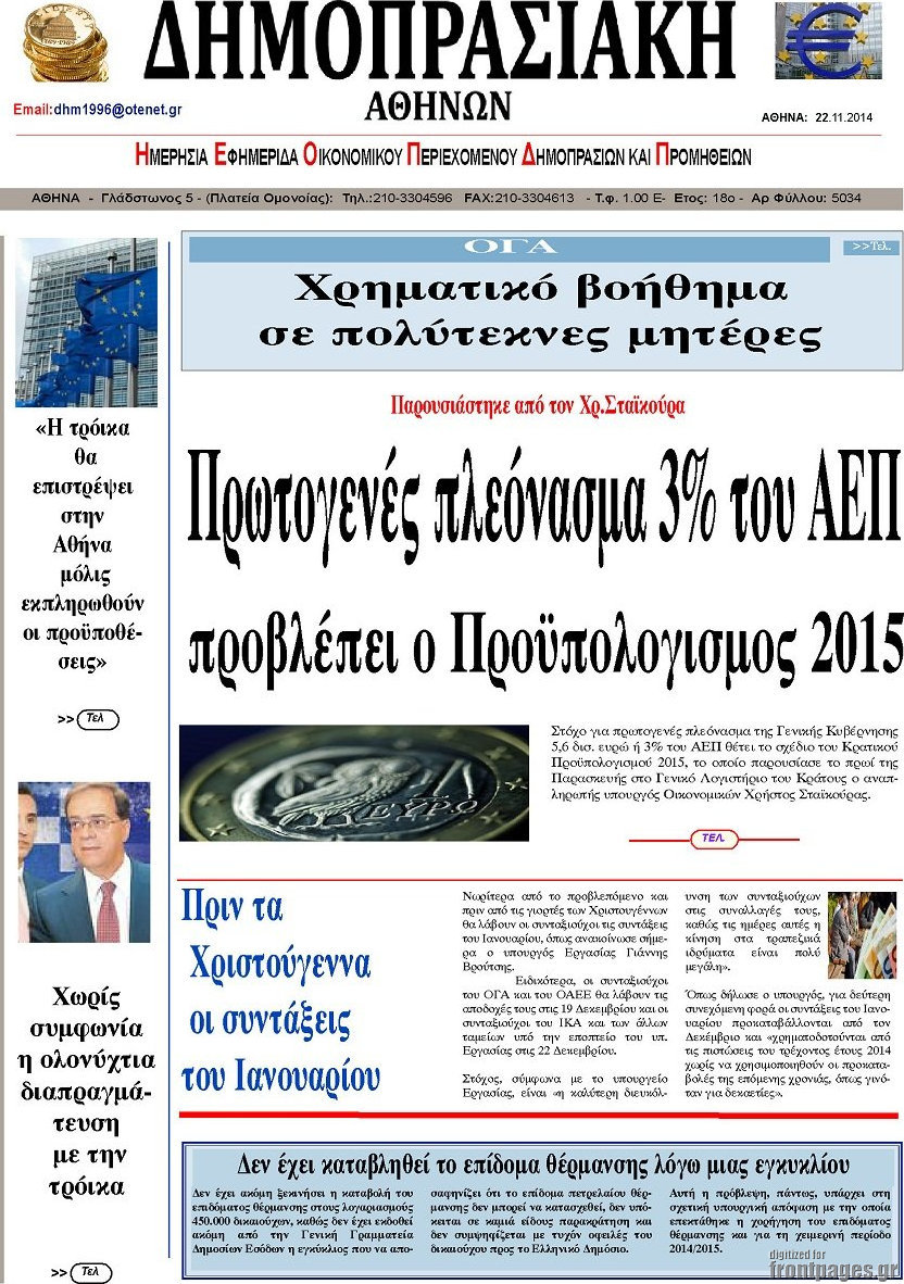Οι οικονομικές εφημερίδες Enikos Newsroom 07:37, Σάββατο 22 Νοεμβρίου 2014 Media Οι οικονομικές εφημερίδες Διαβάστε τα πρωτοσέλιδα των οικονομικών εφημερίδων: ΟΙΚΟΝΟΜΙΚΕΣ ΕΦΗΜΕΡΙΔΕΣ ΠΡΩΤΟΣΕΛΙΔΑ Μοιράσου το: σχολίασε κι εσύ (0 σχόλια) Ακολουθήστε το enikos.gr στο Google News και μάθετε πρώτοι όλες τις ειδήσεις Δείτε όλες τις τελευταίες ειδήσεις από την Ελλάδα και τον Κόσμο στο enikos.gr Ειδήσεις Ροή Ειδήσεων 33 λεπτά πριν Εκτός ευρωομάδας ΣΥΡΙΖΑ ο Νίκος Παππάς μετά την επίθεση στον δημοσιογράφο Νίκο Γιαννόπουλο – Η μήνυση και οι νέες δηλώσεις 1 ώρα πριν «Αγριεύουν» οι αγρότες: «Δεν συντρέχει λόγος συνάντησης με τον πρωθυπουργό» – Ώρα αποφάσεων στη σύσκεψη της Πέμπτης 56 λεπτά πριν Κυψέλη: Χωρίς την οικογένειά της δίπλα της απολογήθηκε η 16χρονη – «Της είχε επιτεθεί κάποιος για να την βιάσει, φοβήθηκε και κυκλοφορούσε με μαχαίρι» 28 λεπτά πριν Politico: Το πρόβλημα της Ευρώπης δεν είναι το Βέλγιο αλλά ο Ντόναλντ Τραμπ 2 ώρες πριν Αλεξανδρούπολη: Πολυοργανική ανεπάρκεια λόγω υποσιτισμού η αιτία θανάτου του 3χρονου αγοριού 46 λεπτά πριν Μυστήριο με τεράστιες κυκλικές πέτρες 200 κιλών – Ανακαλύφθηκαν τυχαία κατά τη διάρκεια οδικών έργων και κανείς δεν ξέρει από πού προέρχονται 2 ώρες πριν Ύπνος: Ειδικός εξηγεί τον πραγματικό λόγο που ξυπνάτε στις 4 τα ξημερώματα – Ο ρόλος των ορμονών και του κιρκάδιου ρυθμού 3 ώρες πριν Αριθμολογία: Οι άνθρωποι που έχουν γεννηθεί αυτές τις 4 ημερομηνίες, είναι τρυφεροί και αγαπούν ανιδιοτελώς 14 ώρες πριν 20 χρόνια τα Χριστούγεννα ξεκινούν στα Public με μεγάλη ποικιλία σε δώρα! 28 λεπτά πριν Politico: Το πρόβλημα της Ευρώπης δεν είναι το Βέλγιο αλλά ο Ντόναλντ Τραμπ 33 λεπτά πριν Εκτός ευρωομάδας ΣΥΡΙΖΑ ο Νίκος Παππάς μετά την επίθεση στον δημοσιογράφο Νίκο Γιαννόπουλο – Η μήνυση και οι νέες δηλώσεις 33 λεπτά πριν Κύπελλο Ελλάδας: Η Μαρκό έστειλε τον ΠΑΟΚ στον Ολυμπιακό… μέσω Ατρόμητου 36 λεπτά πριν Άκης Σκέρτσος: Μήνυση και αγωγή κατά της Ζωής Κωνσταντοπούλου θα καταθέσει ο υπουργός Επικρατείας 46 λεπτά πριν Μυστήριο με τεράστιες κυκλικές πέτρες 200 κιλών – Ανακαλύφθηκαν τυχαία κατά τη διάρκεια οδικών έργων και κανείς δεν ξέρει από πού προέρχονται ENIKOS NETWORK Αϋπνία: Το κόλπο που θα σας βοηθήσει να κοιμηθείτε απόψε – Είναι απλό και έχει αποτέλεσμα 2,6 εκατομμύρια πολίτες έχουν ήδη εμβολιαστεί κατά της γρίπης ΕΛΣΤΑΤ: Τι δείχνουν τα νέα στοιχεία για τις ηλεκτρονικές παραγγελίες των επιχειρήσεων ΚΕΠΕ: Οι 3 διακριτές συμβολές των ΜμΕ και της μεταποίησης στην ελληνική οικονομία Χαρτογραφώντας το «σημείο χωρίς επιστροφή»: Για πρώτη φορά αποκαλύπτεται με λεπτομέρεια το ακανθώδες όριο της ατμόσφαιρας τ... Η Google καταργεί τη λειτουργία «dark web report» – Πώς θα μπορούν οι χρήστες να διαγράφουν τα δεδομένα τους περισσότερα 22:24 , Τετάρτη 17 Δεκεμβρίου 2025 Το Σπίτι Δίπλα Στο Ποτάμι: Σε κίνδυνο η υγεία του Απόστολου – Τι θα δούμε απόψε “Το Σπίτι Δίπλα στο Ποτάμι” ξετυλίγει το νήμα της ζωής των πέντε αδελφών με καταισ... 21:14 , Τετάρτη 17 Δεκεμβρίου 2025 Παιχνίδια Εκδίκησης: Θα καταφέρει ο Χρήστος να κλονίσει την εμπιστοσύνη της Μάγιας απέναντι στον Άγη; Τα «Παιχνίδια Εκδίκησης» έρχονται απόψε στις 22:30, στον Αντ1, με το τελευταίο επεισόδιο της χ... 20:57 , Τετάρτη 17 Δεκεμβρίου 2025 Άγιος Έρωτας: Η Χλόη καταθέτει εναντίον του πατέρα της και ο Χάρης αποκαλύπτει στον Κλεάνθη ότι δεν είναι ο βιολογικός του πατέρας. Γεμάτο αποκαλύψεις είναι το νέο επεισόδιο της σειράς “Άγιος Έρωτας” απόψε στι