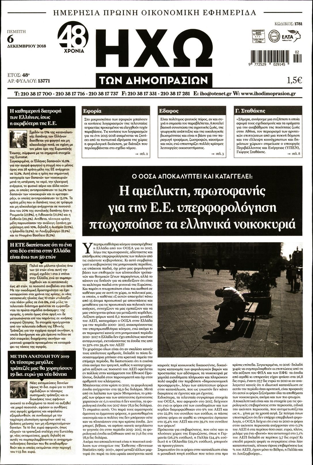 Οι οικονομικές εφημερίδες 6/12/18 Enikos Newsroom 06:25, Πέμπτη 06 Δεκεμβρίου 2018 Media Διαβάστε τα πρωτοσέλιδα: ΟΙΚΟΝΟΜΙΚΕΣ ΕΦΗΜΕΡΙΔΕΣ ΠΡΩΤΟΣΕΛΙΔΑ Μοιράσου το: σχολίασε κι εσύ (0 σχόλια) Ακολουθήστε το enikos.gr στο Google News και μάθετε πρώτοι όλες τις ειδήσεις Δείτε όλες τις τελευταίες ειδήσεις από την Ελλάδα και τον Κόσμο στο enikos.gr Ειδήσεις Ροή Ειδήσεων 3 ώρες πριν Χριστούγεννα στα μπλόκα: Επιμένουν στις κινητοποιήσεις τους οι αγρότες – Ανοίγουν τα διόδια το Σαββατοκύριακο 4 ώρες πριν Ουκρανία: Η άνευ προηγουμένου επίθεση σε ρωσικό τάνκερ στη Μεσόγειο και το μήνυμα προς στον Πούτιν – Το «μακρύ χέρι» του Κιέβου 3 ώρες πριν Πούτιν: Τα μηνύματα σε Ευρώπη και ΝΑΤΟ από το μαραθώνιο «σόου» του – Η απαίτηση για «σεβασμό» και η ειρήνη «με τους όρους» της Μόσχας 4 ώρες πριν Τραμπ: Δεν αποκλείει την πιθανότητα ενός πολέμου στη Βενεζουέλα – «Ο Μαδούρο ξέρει καλύτερα από τον καθένα τι ακριβώς θέλω» 4 ώρες πριν Συνεχίζει να προκαλεί ο Μίτσκοσκι: «Για μένα το όνομα Μακεδονία είναι ιερό» 3 ώρες πριν Ανακαλύφθηκαν αρχαία χρυσά νομίσματα 2.200 ετών που απεικονίζουν τον θεό Απόλλωνα – Η άγνωστη σύνδεση με τον Φίλιππο Β΄ της Μακεδονίας 4 ώρες πριν Ύπνος: Μια κρυφή κατάσταση του εγκεφάλου πριν από τον ύπνο μπορεί να είναι το “κλειδί” για υψηλή ευφυΐα και δημιουργικότητα 5 ώρες πριν Αριθμολογία: Οι άνθρωποι που έχουν γεννηθεί αυτές τις 4 ημερομηνίες, συχνά παρεξηγούνται – «Η καλοσύνη τους κρύβει τεράστια δύναμη» 6 ώρες πριν Ξεχάστε το καθάρισμα το Σαββατοκύριακο: Ο «κανόνας των 20 λεπτών» που θα σας λύσει τα χέρια 11 λεπτά πριν Πρόταση γάμου στο ΣΕΦ κατά την διάρκεια του αγώνα Ολυμπιακός-Βιλερμπάν – Δείτε βίντεο 26 λεπτά πριν Euroleague: Επέστρεψε στις νίκες ο Ολυμπιακός, πήρε την ματσάρα της χρονιάς η Μπάρτσα – Τα αποτελέσματα και η βαθμολογία 41 λεπτά πριν Συρία: Μαζικά πλήγματα των ΗΠΑ σε θέσεις του Ισλαμικού Κράτους – Χέγκσεθ: «Δεν είναι αρχή πολέμου, είναι μια δήλωση εκδίκησης» για το θάνατο των στρατιωτών μας 54 λεπτά πριν Ουκρανία: Ολοκληρώθηκαν οι συνομιλίες με τους Αμερικανούς κι Ευρωπαίους διαπραγματευτές 1 ώρα πριν Μπαρτσελόνα – Μπασκόνια 134-124: Οι «μπλαουγκράνα» πήραν το ματς της χρονιάς ύστερα από τρεις παρατάσεις ENIKOS NETWORK Το ΕΚΑΒ τιμήθηκε από την Ακαδημία Αθηνών για τα 40 χρόνια προσφοράς του Έχετε πραγματικά μεγάλη καρδιά; 10 χαρακτηριστικά όσων έχουν καλοσύνη Αναστολή μέτρων αναγκαστικής εκτέλεσης για κτηνοτρόφους που πλήττονται από την ευλογιά των αιγοπροβάτων Πλήρης επάρκεια προϊόντων στις λαϊκές της Αττικής, παρά τις αγροτικές κινητοποιήσεις – Τι απαντούν οι πωλητές Χαρτογραφώντας το «σημείο χωρίς επιστροφή»: Για πρώτη φορά αποκαλύπτεται με λεπτομέρεια το ακανθώδες όριο της ατμόσφαιρας τ... Η Google καταργεί τη λειτουργία «dark web report» – Πώς θα μπορούν οι χρήστες να διαγράφουν τα δεδομένα τους περισσότερα 22:42 , Παρασκευή 19 Δεκεμβρίου 2025 Γιώργος Γιαννόπουλος για “Το σόι σου”: “Είναι ευτυχία και ευλογία αυτή η σειρά” «Είναι ευτυχία και ευλογία η συγκυρία αυτής της σειράς», θα πει ο Γιώργος Γιαννόπουλος -ο αγαπ... 20:37 , Παρασκευή 19 Δεκεμβρίου 2025 Don’t Forget The Lyrics: Η Έλλη Κοκκίνου υποδέχεται 4 παίκτες που θα κάνουν τα πάντα για να μη χάσουν ούτε… μισή λέξη από τους στίχους Το «Don’t Forget The Lyrics» επιστρέφει απόψε, Παρασκευή 19 Δεκεμβρίου, στις 21:00 με νέο επει... 19:31 , Παρασκευή 19 Δεκεμβρίου 2025 GNTM: Απόψε ο μεγάλος τελικός για τους 4 φιναλίστ Έπειτα από μήνες γεμάτους μόδα, δημιουργία και έντ