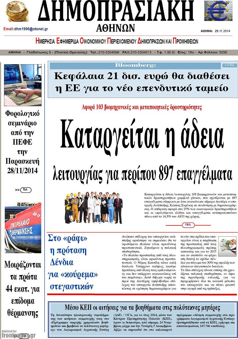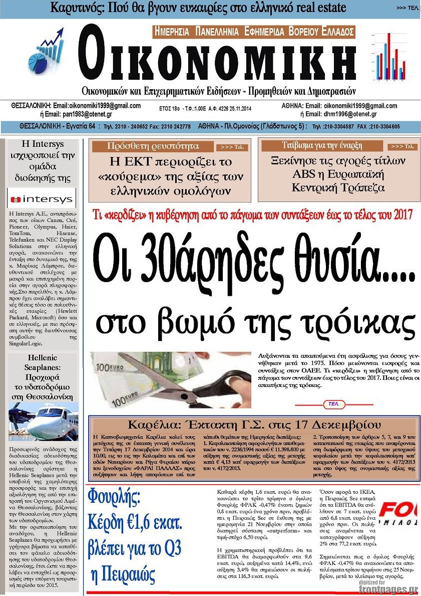 Οι οικονομικές εφημερίδες Enikos Newsroom 07:32, Τρίτη 25 Νοεμβρίου 2014 Media Οι οικονομικές εφημερίδες Διαβάστε τα πρωτοσέλιδα των οικονομικών εφημερίδων: ΟΙΚΟΝΟΜΙΚΕΣ ΕΦΗΜΕΡΙΔΕΣ ΠΡΩΤΟΣΕΛΙΔΑ Μοιράσου το: σχολίασε κι εσύ (0 σχόλια) Ακολουθήστε το enikos.gr στο Google News και μάθετε πρώτοι όλες τις ειδήσεις Δείτε όλες τις τελευταίες ειδήσεις από την Ελλάδα και τον Κόσμο στο enikos.gr Ειδήσεις Ροή Ειδήσεων 4 ώρες πριν Αγρότες: «Όχι στον διάλογο, μας εμπαίζει η κυβέρνηση» – Αποφάσισαν κλιμάκωση των κινητοποιήσεων, τι θα γίνει τα Χριστούγεννα 1 ώρα πριν Αθήνα: Εξαρθρώθηκε εγκληματική οργάνωση που διακινούσε ναρκωτικά σε μορφή σοκολάτας – Δύο τράπερ ανάμεσα στους 4 συλληφθέντες – ΒΙΝΤΕΟ 1 ώρα πριν Στη φυλακή ο «Έλληνας Εσκομπάρ» και τρεις συνεργοί του για το φορτίο με την κοκαΐνη – Τι υποστήριξε στην απολογία του 2 ώρες πριν Γιώργος Μαζωνάκης: «Έχει υποστεί ένα σωρό εκβιαστικές πρακτικές – Του είπαν ότι θα του βάλουν τον συγκεκριμένο άνθρωπο να τον καταγγείλει» 51 λεπτά πριν Γεωργιάδης για Κωνσταντοπούλου: «Έχει καταφέρει να ξεπεράσει ακόμη και τον εαυτό της – Το ερώτημα είναι “γιατί τώρα;”» 5 ώρες πριν Τα 5 ζώδια που θα ευνοηθούν στα οικονομικά τους το 2026 – «Τραβούν το χρήμα σαν μαγνήτες» 2 ώρες πριν Γάμος: 11 ψυχρές αλλά ευγενικές φράσεις, που λέει ένας άνδρας όταν σκέφτεται τον χωρισμό 60 λεπτά πριν Σφουγγάρισμα: Η συνήθεια που θα σας βοηθήσει να διατηρήσετε το σπίτι σας καθαρό και τακτοποιημένο 1 ημέρα πριν 20 χρόνια τα Χριστούγεννα ξεκινούν στα Public με μεγάλη ποικιλία σε δώρα! 9 λεπτά πριν Hellenic Train: Καθυστερήσεις στον Προαστιακό λόγω φωτιάς κοντά στη σιδηροδρομική γραμμή 20 λεπτά πριν ΗΠΑ: Νέες φωτογραφίες από τον φάκελο Επστάιν έδωσαν στην δημοσιότητα οι Δημοκρατικοί 26 λεπτά πριν ΕΦΕΤ: Συμβουλές για ασφαλή κατανάλωση τροφίμων κατά την εορταστική περίοδο των Χριστουγέννων 34 λεπτά πριν Φάμελλος: Η κινητοποίηση των αγροτών είναι για το συμφέρον όλων των κοινωνικών ομάδων – Πρέπει να φύγετε το συντομότερο 39 λεπτά πριν Primeira Liga: 8ος πιο ακριβός παίκτης στην Πορτογαλία ο Παυλίδης με αξία 35 εκατ. ευρώ – 27ος ο Ιωαννίδης, 45ος ο Βαγιαννίδης ENIKOS NETWORK Σε περίοδο αυξημένης δραστηριότητας η γρίπη στην Ελλάδα-Μέτρα προστασίας από τον ΕΟΔΥ Σκέφτεστε συνέχεια συζητήσεις που έχετε κάνει; Τι σημαίνει αυτό, σύμφωνα με ειδικό Servicers: Μικρή μείωση στα κόκκινα δάνεια που διαχειρίζονται – Αναλυτικά τα στοιχεία ΑΑΔΕ: “Αλλάζει πρόσωπο” το Φορολογικό Μητρώο για πολίτες και επιχειρήσεις – Όλες οι λεπτομέρειες Χαρτογραφώντας το «σημείο χωρίς επιστροφή»: Για πρώτη φορά αποκαλύπτεται με λεπτομέρεια το ακανθώδες όριο της ατμόσφαιρας τ... Η Google καταργεί τη λειτουργία «dark web report» – Πώς θα μπορούν οι χρήστες να διαγράφουν τα δεδομένα τους περισσότερα 17:45 , Πέμπτη 18 Δεκεμβρίου 2025 ROUK ZOUK: Εορταστικό επεισόδιο με καλεσμένους τους πρωταγωνιστές του «Γιατί ρε πατέρα» Το Σάββατο 20 Δεκεμβρίου στις 21:00, η Ζέτα Μακρυπούλια υποδέχεται εκλεκτούς ηθοποιούς που όλο... 17:20 , Πέμπτη 18 Δεκεμβρίου 2025 Άγιος έρωτας: Η Χριστίνα εξομολογείται στον πατέρα Νικόλαο, απόψε στις 21:00 στον Alpha Η Νότα αποφασίζει να εκδικηθεί τον Πέτρο και τον Στέφανο, για χάρη του Λούη, όμως τα πράγματα ... 16:50 , Πέμπτη 18 Δεκεμβρίου 2025 Να μ’ αγαπάς: Ζωή και Φωτεινή συμφιλιώνονται ως μάνα με κόρη, απόψε στις 20:00 Η ταυτότητα του Άγγελου αποκαλύπτεται στο νέο επεισόδιο της σειράς “Να μ’ αγαπάς... 15:52 , Πέμπτη 18 Δεκεμβρίου 2025 Το Σπίτι Δίπλα Στο Ποτάμι: Το