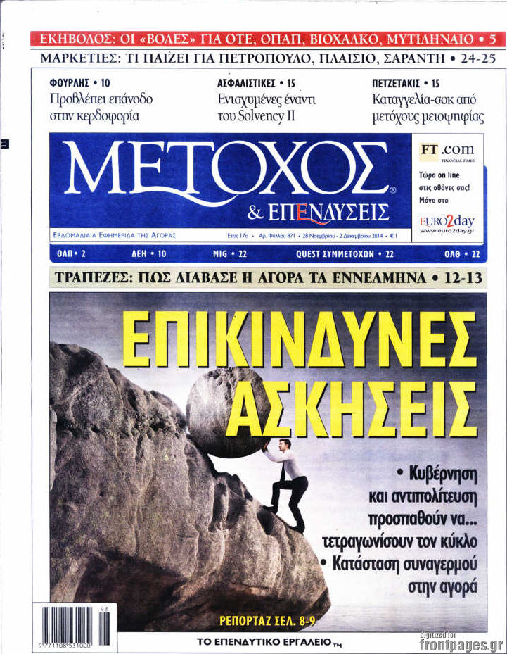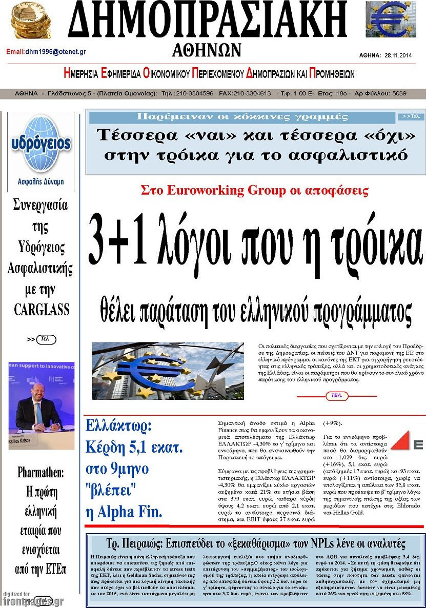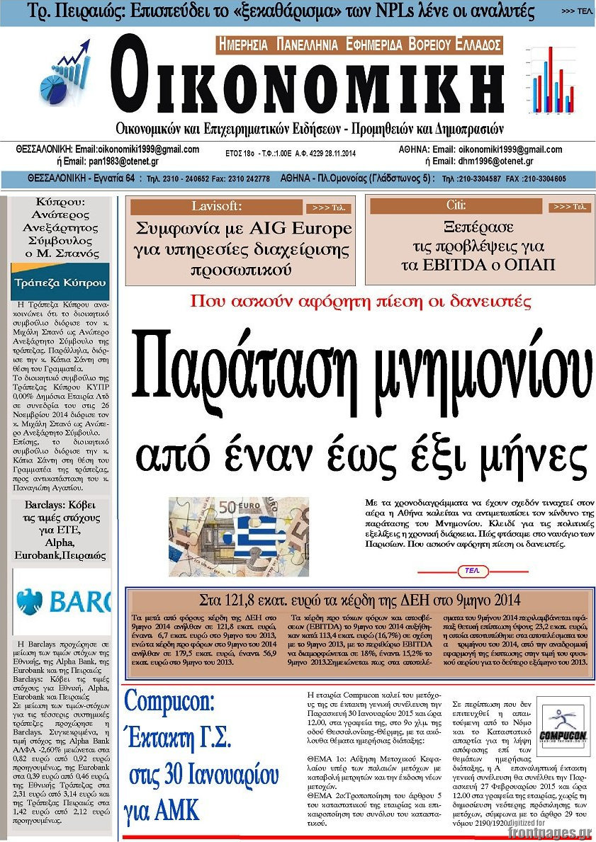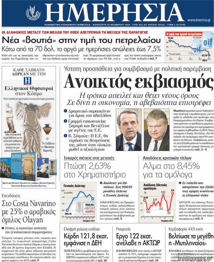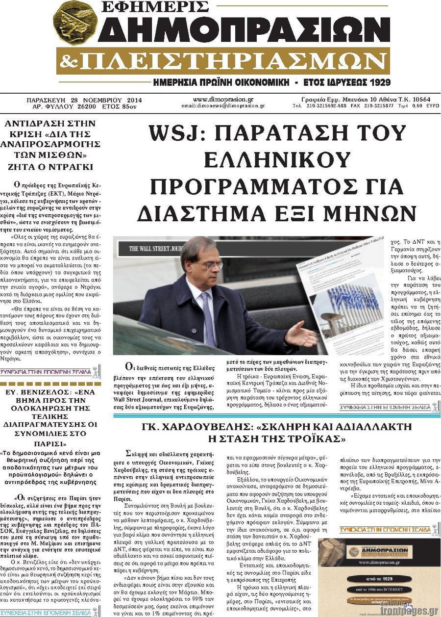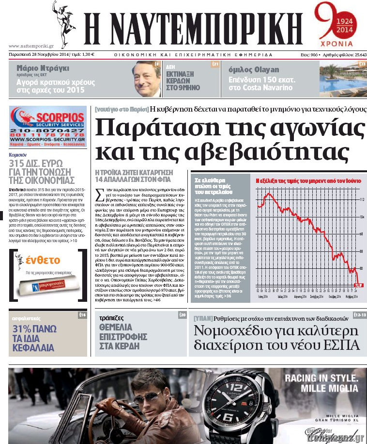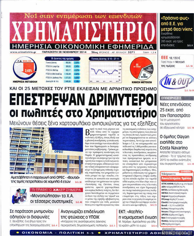 Οι οικονομικές εφημερίδες Enikos Newsroom 07:29, Παρασκευή 28 Νοεμβρίου 2014 Media Οι οικονομικές εφημερίδες Διαβάστε τα πρωτοσέλιδα των οικονομικών εφημερίδων: ΟΙΚΟΝΟΜΙΚΕΣ ΕΦΗΜΕΡΙΔΕΣ ΠΡΩΤΟΣΕΛΙΔΑ Μοιράσου το: σχολίασε κι εσύ (0 σχόλια) Ακολουθήστε το enikos.gr στο Google News και μάθετε πρώτοι όλες τις ειδήσεις Δείτε όλες τις τελευταίες ειδήσεις από την Ελλάδα και τον Κόσμο στο enikos.gr Ειδήσεις Ροή Ειδήσεων 1 ώρα πριν Υπόθεση Έπσταϊν: Το Υπουργείο Δικαιοσύνης δημοσιοποίησε μια σειρά από εξαιρετικά επεξεργασμένα αρχεία – «Λείπουν τα πιο σημαντικά έγγραφα», λένε οι Δημοκρατικοί 3 ώρες πριν Σαρωτικοί οι έλεγχοι στους δρόμους ενόψει εορτών – Μπλόκα της τροχαίας σε κεντρικές αρτηρίες της Αττικής 1 ώρα πριν ΟΝΕΧ – MEGATUGS: Ξεκίνησε η ναυπήγηση ρυμουλκών στην Ελλάδα – Προθάλαμος πολεμικών πλοίων – Δείτε φωτογραφίες και βίντεο 1 ώρα πριν Καιρός: Αλλαγή σκηνικού σήμερα με βροχές και πτώση της θερμοκρασίας – Οι προβλέψεις των μετεωρολόγων για τα Χριστούγεννα 10 ώρες πριν Χριστούγεννα στα μπλόκα: Επιμένουν στις κινητοποιήσεις τους οι αγρότες – Ανοίγουν τα διόδια το Σαββατοκύριακο 3 ώρες πριν Αυγά: Πόσα μπορείτε να τρώτε την ημέρα με ασφάλεια για μέγιστη πρόσληψη πρωτεΐνης 3 ώρες πριν Τα ζώδια σήμερα, Σάββατο 20 Δεκεμβρίου: Παρθένοι, το σύμπαν σας δίνει το κλειδί 3 ώρες πριν Οπτική ψευδαίσθηση: Μόνο αν είσαι ο Σέρλοκ Χολμς θα βρεις τον αριθμό «87» σε 7 δευτερόλεπτα 45 λεπτά πριν Αρχαιολόγοι ανακάλυψαν σε χωράφι απεικόνιση 600 ετών ενός Αγίου – Τα στοιχεία που δείχνουν ότι μαρτύρησε 7 λεπτά πριν Αμαλία Κωστοπούλου: Το μήνυμα για το χειρουργείο στο γόνατο – «Αυτός ο τραυματισμός μού στέρησε πολλά…» 14 λεπτά πριν Ο «χάρτης» με τις αυξήσεις και τις φοροελαφρύνσεις του 2026 – Ποιοι και πόσα κερδίζουν 22 λεπτά πριν Η τέλεια συνταγή για cookies με κομμάτια σοκολάτας 30 λεπτά πριν MyHealth App: Τα στοιχεία για τον Προσωπικό Βοηθό Υγείας Πολίτη – Τι ερωτήματα έγιναν μέσα σε 7 ημέρες 38 λεπτά πριν Τρομεροί γονείς: Η Μαρία Καβογιάννη εισβάλλει στο σπίτι της οικογένειας Στεφανίδη ENIKOS NETWORK Το τεστ των 10 δευτερολέπτων που μπορεί να προβλέψει το προσδόκιμο ζωής σας – Τι λέει ειδικός του Cleveland Επιλέξτε καρέκλα για να μάθετε ποια είναι τα κρυφά χαρακτηριστικά σας – Τι αποκάλυψε για εσάς αυτό το τεστ προσωπικότητας; Mega χριστουγεννιάτικη φορολοταρία: «Κλείδωσε» η ημερομηνία για την κλήρωση – Ερωτήσεις και απαντήσεις Αναστολή μέτρων αναγκαστικής εκτέλεσης για κτηνοτρόφους που πλήττονται από την ευλογιά των αιγοπροβάτων Χαρτογραφώντας το «σημείο χωρίς επιστροφή»: Για πρώτη φορά αποκαλύπτεται με λεπτομέρεια το ακανθώδες όριο της ατμόσφαιρας τ... Η Google καταργεί τη λειτουργία «dark web report» – Πώς θα μπορούν οι χρήστες να διαγράφουν τα δεδομένα τους περισσότερα 08:14 , Σάββατο 20 Δεκεμβρίου 2025 Τρομεροί γονείς: Η Μαρία Καβογιάννη εισβάλλει στο σπίτι της οικογένειας Στεφανίδη Όσα θα δούμε στο νέο διπλό επεισόδιο της σειράς «Τρομεροί γονείς», σήμερα Σάββατο 20 Δεκεμβρίο... 05:48 , Σάββατο 20 Δεκεμβρίου 2025 Οι οικονομικές εφημερίδες 20/12/2025 Διαβάστε τα πρωτοσέλιδα από τις οικονομικές εφημερίδες, σήμερα 20/12/2025. 05:43 , Σάββατο 20 Δεκεμβρίου 2025 Οι αθλητικές εφημερίδες 20/12/2025 Διαβάστε τα πρωτοσέλιδα από τις αθλητικές εφημερίδες, σήμερα 20/12/2025. 05:38 , Σάββατο 20 Δεκεμβρίου 2025 Οι πολιτικές εφημερίδες 20/12/2025 Διαβάστε τα πρωτοσέλιδα από τις πολιτικές εφημερίδες, σήμερα 20/12/2025. ΤΕΛΕΥΤΑΙΕΣ ΕΙΔΗΣΕΙΣ 7 λεπτά πριν Αμαλία Κωστοπούλου: Το μήνυμα 