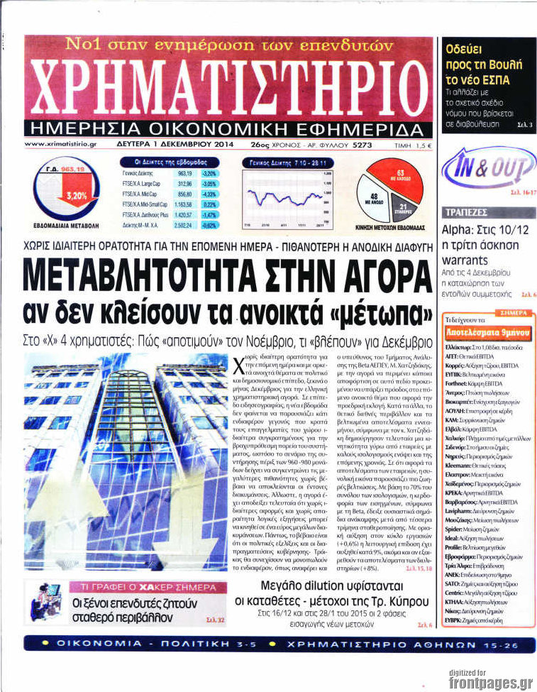Οι οικονομικές εφημερίδες Enikos Newsroom 07:50, Δευτέρα 01 Δεκεμβρίου 2014 Media Οι οικονομικές εφημερίδες Διαβάστε τα πρωτοσέλιδα των οικονομικών εφημερίδων: ΟΙΚΟΝΟΜΙΚΕΣ ΕΦΗΜΕΡΙΔΕΣ ΠΡΩΤΟΣΕΛΙΔΑ Μοιράσου το: σχολίασε κι εσύ (0 σχόλια) Ακολουθήστε το enikos.gr στο Google News και μάθετε πρώτοι όλες τις ειδήσεις Δείτε όλες τις τελευταίες ειδήσεις από την Ελλάδα και τον Κόσμο στο enikos.gr Ειδήσεις Ροή Ειδήσεων 38 λεπτά πριν Μητσοτάκης: Αναγκαία η μεταρρύθμιση του πρωτογενούς τομέα – Τα 6 νέα μέτρα για το στεγαστικό και οι αναφορές σε «Ιθάκη» και «πολιτικούς του καναπέ» 1 ώρα πριν Βουλή: Με 159 «ναι» εγκρίθηκε ο προϋπολογισμός 2026 4 ώρες πριν Κυψέλη: «Ζητούσα συνάντηση με ψυχολόγο του σχολείου και μου έλεγαν “δεν έχουμε”» λέει η μητέρα της 16χρονης – «Η συμπεριφορά της είναι απρόβλεπτη» 5 ώρες πριν Χαλάνδρι: Βίντεο ντοκουμέντο από την στιγμή της σύλληψης του γιου του Μιχάλη Κατρίνη 2 ώρες πριν Αγρότες: Συμμετέχουν στις απεργιακές κινητοποίησες – Με τα τρακτέρ στο κέντρο Λάρισας, Τρικάλων, Βόλου και Ιωαννίνων 1 ώρα πριν Αριθμολογία: Οι άνθρωποι που έχουν γεννηθεί αυτές τις 3 ημερομηνίες, προσελκύουν μεγάλη τύχη πριν από το τέλος του 2025 3 ώρες πριν Οι 7 συμπεριφορές που μαρτυρούν ότι ένας άνδρας επενδύει μακροπρόθεσμα σε μια σχέση 6 ώρες πριν Το σύμπαν θα «δοκιμάσει» 4 ζώδια το 2026 – «Δεν μπορείτε πλέον να κλείνετε τα μάτια σε όσα χρειάζονται αλλαγή» 2 ώρες πριν Χριστουγεννιάτικος στολισμός: Το λάθος στην διακόσμηση που κάνει το αποτέλεσμα να φαίνεται κακόγουστο 27 δευτερόλεπτα πριν Κλήρωση ΤΖΟΚΕΡ 16/12/2025: Αυτοί είναι οι τυχεροί αριθμοί 6 λεπτά πριν ΟΠΕΚΕΠΕ – Παράνομες επιδοτήσεις: Ελεύθεροι με περιοριστικούς όρους και οι 7 κατηγορούμενοι που απολογήθηκαν σήμερα 7 λεπτά πριν Υπουργείο Αγροτικής Ανάπτυξης: Αναρτήθηκαν οι πίνακες με τους δικαιούχους της Εξισωτικής Αποζημίωσης 2025 12 λεπτά πριν Ύπνος: Αυτό μπορεί να είναι το χειρότερο λάθος για το βιολογικό ρολόι σας, σύμφωνα με ειδικό 15 λεπτά πριν Χωρίς στάση στον σταθμό «Βικτώρια» οι συρμοί του Ηλεκτρικού με κατεύθυνση την Κηφισιά από τις 10 το βράδυ ENIKOS NETWORK Αίτημα ΙΣΑ για την εξαίρεση των προσωπικών γιατρών από τις κατ’ οίκον επισκέψεις Η σκανδιναβική μέθοδος στον ύπνο που μπορεί να σώσει έναν γάμο Έρευνα Klarna: Πώς επηρεάζει η ακρίβεια τους Έλληνες καταναλωτές για τις χριστουγεννιάτικες αγορές Ηλεκτρικό ρεύμα: Αλλάξτε πάροχο μέσω του gov.gr – Τα βήματα που πρέπει να ακολουθήσετε Σύγχρονος Νοστράδαμος: Προειδοποιεί για «μεγάλο γεγονός» τους επόμενους μήνες που θα συγκλονίσει τη Βρετανία και τον κόσμο Τεστ παρατηρητικότητας: Μπορείτε να βρείτε τις 3 διαφορές στις εικόνες με έναν πιγκουίνο σε 14 δευτερόλεπτα περισσότερα 20:06 , Τρίτη 16 Δεκεμβρίου 2025 Ο ΣΚΑΙ καταγγέλλει τον ΕΚΚΟΜΕΔ Επιστολή με την οποία καταγράφει την έντονη διαμαρτυρία του προς τον διευθύνοντα σύμβουλο του... 17:40 , Τρίτη 16 Δεκεμβρίου 2025 Eurovision: Στις 4 Ιανουαρίου αποκαλύπτονται τα 28 τραγούδια του ελληνικού τελικού Η αγωνία τελειώνει, η γιορτή της Eurovision αρχίζει στην ΕΡΤ από τις πρώτες ημέρες της νέας χρ... 17:09 , Τρίτη 16 Δεκεμβρίου 2025 Alter Ego Media: Βαθύτατη θλίψη και ειλικρινή συλλυπητήρια για την απώλεια της Ειρήνης Μαρινάκη Τη βαθύτατη θλίψη και τα ειλικρινή συλλυπητήριά της εκφράζει η Alter Ego Media για τον θάνατο ... 13:00 , Τρίτη 16 Δεκεμβρίου 2025 «Στο Παρά Πέντε – 20 Χρόνια Μετά»: Κυκλοφόρησε το τρέιλερ του επετειακού επεισοδίου της θρυλικής σειράς – Πότε θα προβληθεί Η αντίστροφη 