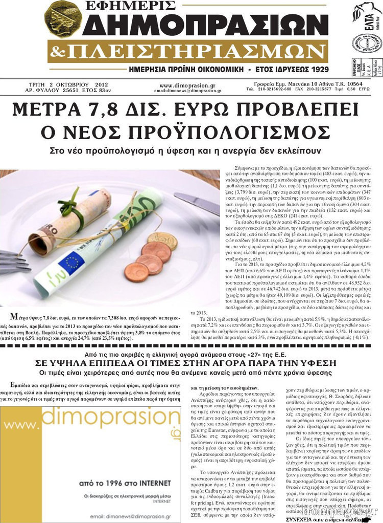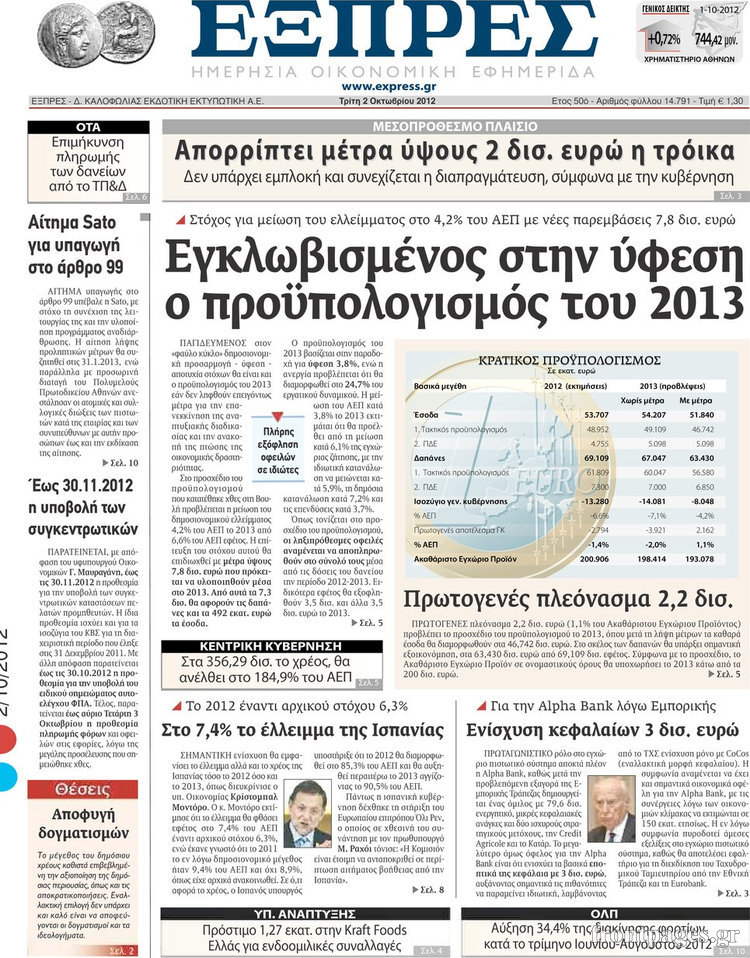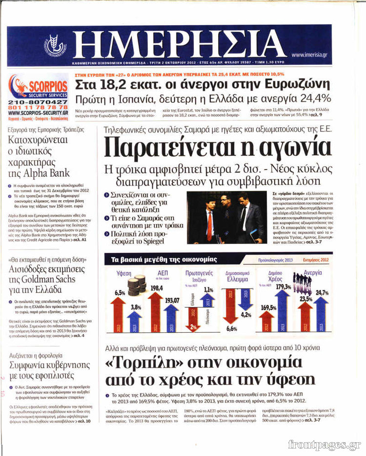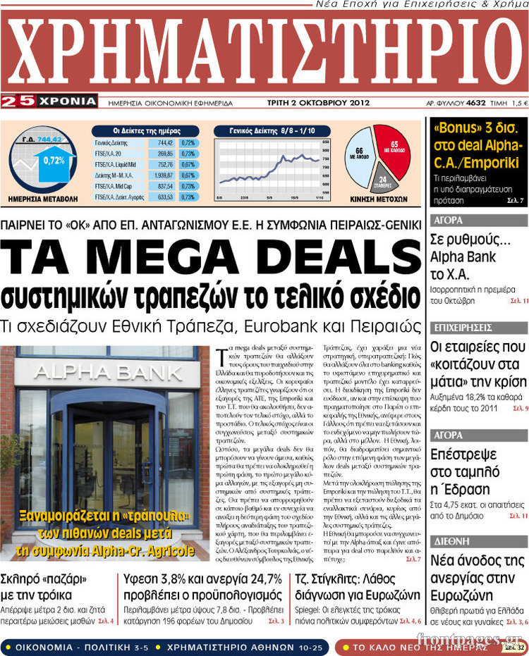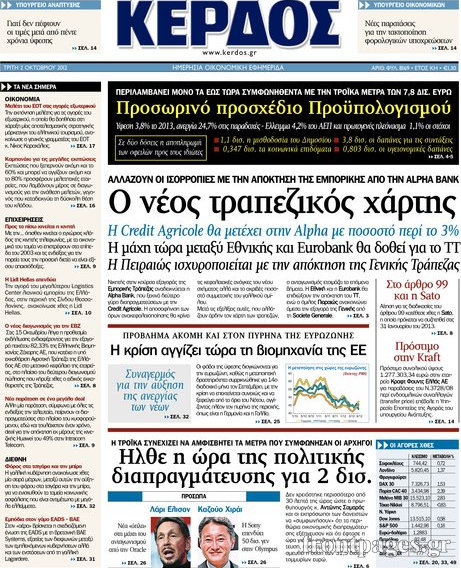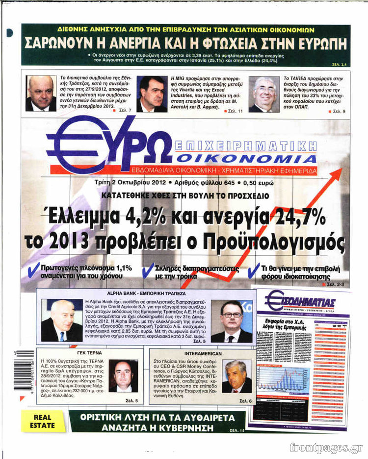 Τα πρωτοσέλιδα των σημερινών οικονομικών εφημερίδων.