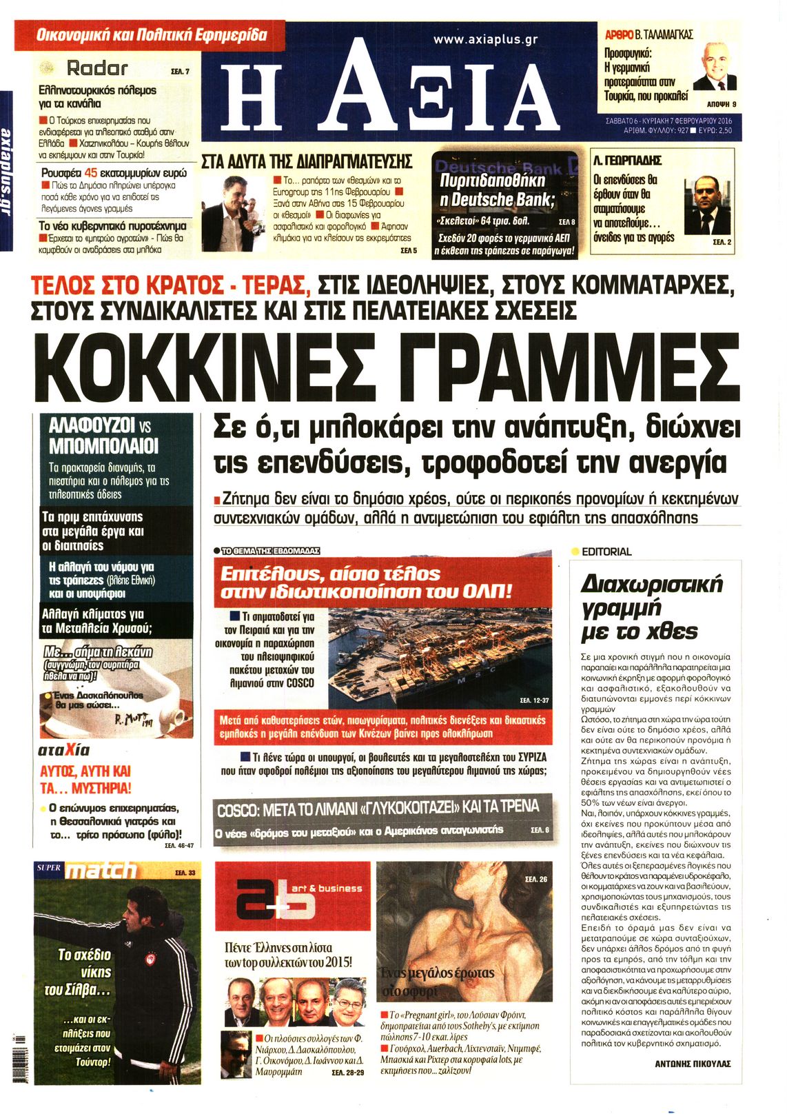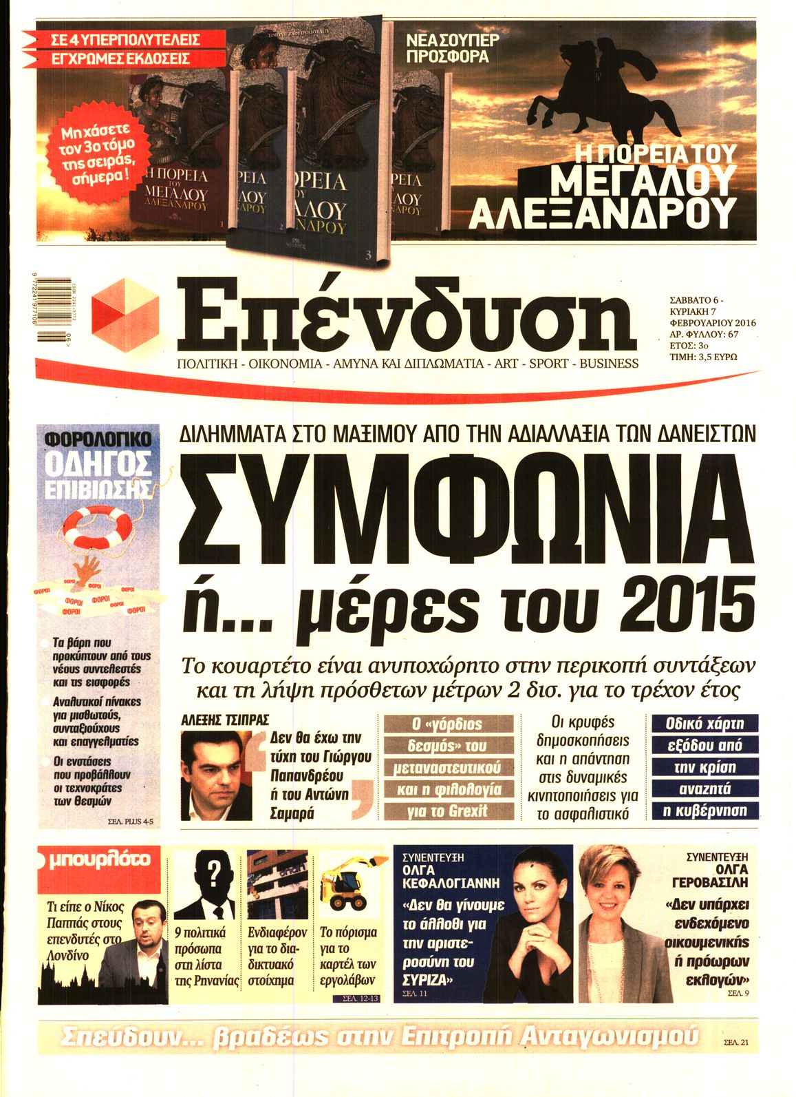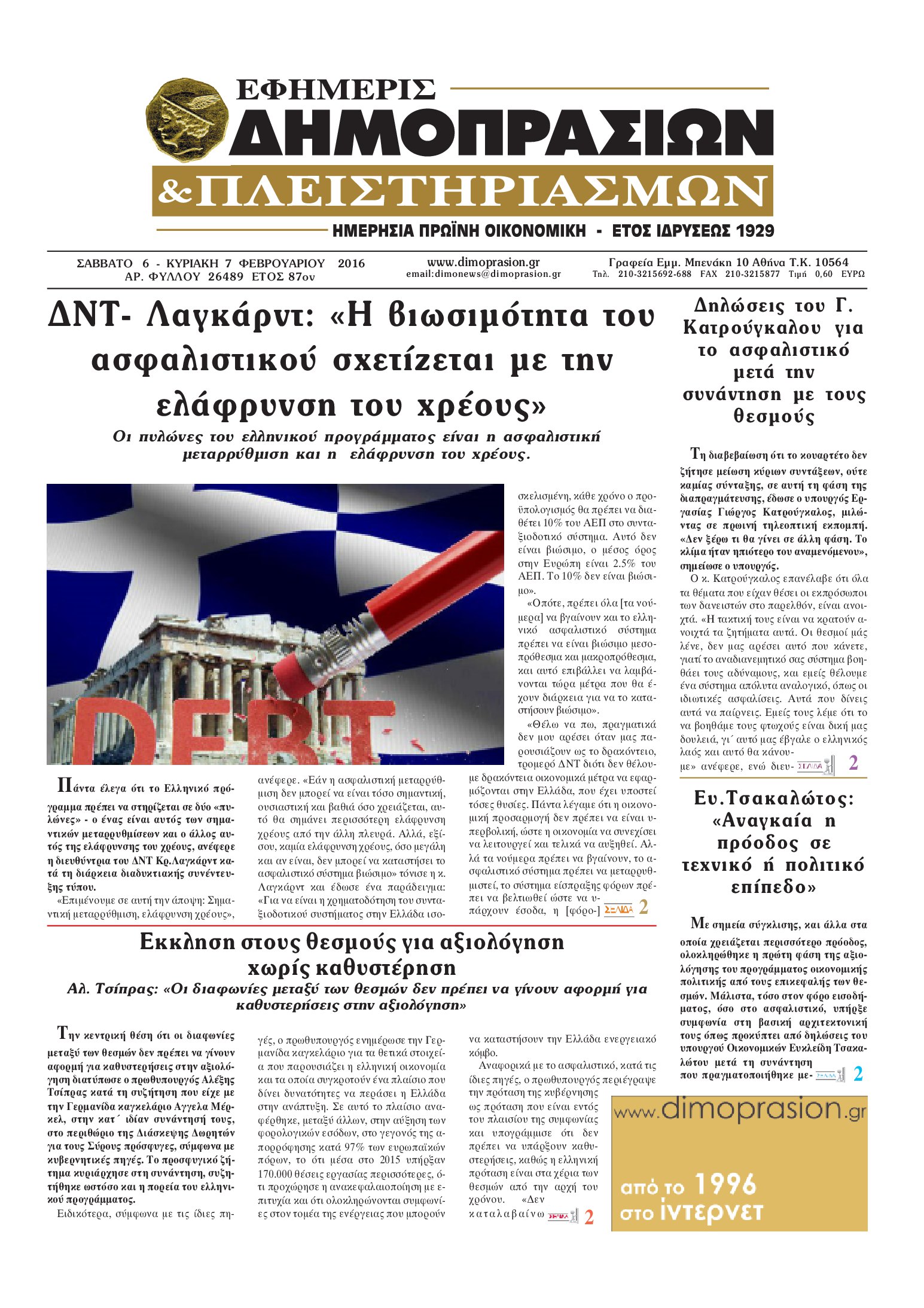 Οι οικονομικές εφημερίδες 6/2/2016 Enikos Newsroom 08:10, Σάββατο 06 Φεβρουαρίου 2016 Media Διαβάστε τα σημερινά πρωτοσέλιδα των οικονομικών εφημερίδων ΟΙΚΟΝΟΜΙΚΕΣ ΕΦΗΜΕΡΙΔΕΣ ΠΡΩΤΟΣΕΛΙΔΑ Μοιράσου το: σχολίασε κι εσύ (0 σχόλια) Ακολουθήστε το enikos.gr στο Google News και μάθετε πρώτοι όλες τις ειδήσεις Δείτε όλες τις τελευταίες ειδήσεις από την Ελλάδα και τον Κόσμο στο enikos.gr Ειδήσεις Ροή Ειδήσεων 41 λεπτά πριν Μητσοτάκης για αγρότες: Ελπίζω πως θα απομακρυνθούν σύντομα από τα μπλόκα 2 ώρες πριν Έρευνα MRB: Η πρόθεση ψήφου και τα σημαντικότερα προβλήματα – Οι «λέξεις» που εκφράζουν τους πολίτες 2 ώρες πριν Αλαλούμ με τις πληρωμές στους αγρότες: Δεν καταβλήθηκε η Βασική Ενίσχυση, αλλά έγινε παρακράτηση της εισφοράς στον ΕΛΓΑ – Τι απαντά η κυβέρνηση 2 ώρες πριν Κλέφτες άρπαξαν έναν… 12μετρο φουσκωτό Άγιο Βασίλη – «Αν κάποιος έχει πληροφορίες να επικοινωνήσει μαζί μας» 1 ώρα πριν Εξεταστική ΟΠΕΚΕΠΕ – Μυλωνάκης: «Ουδέποτε είχα πληροφόρηση ή ενημέρωσα οποιονδήποτε για επισυνδέσεις της δικογραφίας» 2 ώρες πριν Τα 4 ζώδια που ξαναβρίσκουν τον εαυτό τους – «Μπαίνετε επιτέλους στην ουσία των πραγμάτων» 3 ώρες πριν 20 χρόνια τα Χριστούγεννα ξεκινούν στα Public με μεγάλη ποικιλία σε δώρα! 2 ώρες πριν «Δεν είχα κλάψει από τότε που διαγνώστηκα με καρκίνο, ώσπου ένα τηλεφώνημα με έκανε να λυγίσω» – Η συγκλονιστική εξομολόγηση ενός άνδρα 30 λεπτά πριν Τα 7 σπάνια χαρακτηριστικά που κάνουν κάποιους ανθρώπους ακαταμάχητους 2 λεπτά πριν Μεγάλη Χριστουγεννιάτικη Αγορά στην πλατεία Κοτζιά: Ξύλινα σπιτάκια, καρουζέλ και μουσική – Όλο το πρόγραμμα 6 λεπτά πριν Εξεταστική για τον ΟΠΕΚΕΠΕ: Αντιπαράθεση για την ταυτότητα του «Φραπέ» 11 λεπτά πριν Έρευνα MRB: Οι πιο δημοφιλείς υπουργοί 18 λεπτά πριν Ακούστε την εκπομπή του Νίκου Χατζηνικολάου 17/12/2025 25 λεπτά πριν Μεξικό: Χάος στο Κογκρέσο με βουλευτίνες να «μαλλιοτραβιούνται» – Βίντεο από τη μαζική σύρραξη ENIKOS NETWORK Ανησυχητική αύξηση της υπέρτασης στα παιδιά – Πώς θα τα προστατέψουμε; Αδενώματα Υπόφυσης: Μια πάθηση καλοήθης, αλλά όχι αθώα Προϋπολογισμός: Στα 12,6 δισ. ευρώ το πρωτογενές πλεόνασμα το 11μηνο-Δείτε αναλυτικά τα στοιχεία Ελεύθεροι επαγγελματίες: Ποιοι κλάδοι δήλωσαν τους υψηλότερους ετήσιους τζίρους και ποιοι τους χαμηλότερους-Δείτε τα στοιχε... Σύγχρονος Νοστράδαμος: Προειδοποιεί για «μεγάλο γεγονός» τους επόμενους μήνες που θα συγκλονίσει τη Βρετανία και τον κόσμο Τεστ παρατηρητικότητας: Μπορείτε να βρείτε τις 3 διαφορές στις εικόνες με έναν πιγκουίνο σε 14 δευτερόλεπτα περισσότερα 12:12 , Τετάρτη 17 Δεκεμβρίου 2025 Ακούστε την εκπομπή του Νίκου Χατζηνικολάου 17/12/2025 Ακούστε την εκπομπή του Νίκου Χατζηνικολάου στον ραδιοφωνικό σταθμό RealFm 97,8, την Τετάρτη 1... 11:35 , Τετάρτη 17 Δεκεμβρίου 2025 Home Alone: Το σπίτι της ταινίας θα ανακαινιστεί – Επιστροφή στην αισθητική της δεκαετίας του ’90 Οι νέοι ιδιοκτήτες του πραγματικού σπιτιού που παρουσιάζεται στην κλασική ταινία του 1990 «Hom... 11:25 , Τετάρτη 17 Δεκεμβρίου 2025 Grand Hotel: Απόψε το τελευταίο επεισόδιο της χρονιάς – Όλα τα μυστικά μένουν εδώ Το τελευταίο επεισόδιο της χρονιάς της σειράς «Grand Hotel» θα προβληθεί απόψε στις 21:00. Ο Ά... 09:08 , Τετάρτη 17 Δεκεμβρίου 2025 Τηλεθέαση (16/12): Ανακατατάξεις στην πρωινή ψυχαγωγική ζώνη Ξεκάθαρη πρωτιά στην τηλεθέαση για την «Super Κατερίνα» στο δυναμικό κοινό με ποσοστό 18,5%, α... ΤΕΛΕΥΤΑΙΕΣ ΕΙΔΗΣΕΙΣ 2 λεπτά πριν Μεγάλη Χριστουγεννιάτικη Αγορά στην πλατεία Κοτζιά:... 6 λεπτά πριν Εξ