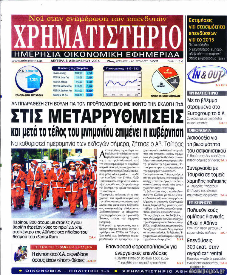 Οι οικονομικές εφημερίδες Enikos Newsroom 07:38, Δευτέρα 08 Δεκεμβρίου 2014 Media Οι οικονομικές εφημερίδες Διαβάστε τα πρωτοσέλιδα των οικονομικών εφημερίδων: ΟΙΚΟΝΟΜΙΚΕΣ ΕΦΗΜΕΡΙΔΕΣ ΠΡΩΤΟΣΕΛΙΔΑ Μοιράσου το: σχολίασε κι εσύ (0 σχόλια) Ακολουθήστε το enikos.gr στο Google News και μάθετε πρώτοι όλες τις ειδήσεις Δείτε όλες τις τελευταίες ειδήσεις από την Ελλάδα και τον Κόσμο στο enikos.gr Ειδήσεις Ροή Ειδήσεων 35 λεπτά πριν LIVE από Λοριάν: Η ύψωση της ελληνικής σημαίας στην πρώτη φρεγάτα FDI Belharra ΚΙΜΩΝ 47 λεπτά πριν Στην Ευελπίδων ο 22χρονος που καταγγέλλει τον Γιώργο Μαζωνάκη για ασελγείς πράξεις – «Έχουμε εμπιστοσύνη στη Δικαιοσύνη, καμία εκβίαση» λέει ο δικηγόρος του 3 ώρες πριν Νίκος Παππάς: Άφαντος παραμένει ο ευρωβουλευτής μετά την επίθεση στον Νίκο Γιαννόπουλο 1 ώρα πριν Βρυξέλλες: Ένταση με τους αγρότες – Πέταξαν πατάτες και κροτίδες 3 ώρες πριν Συναγερμός και στην Ελλάδα για τη «σούπερ γρίπη»: Πόσο σοβαρή είναι και ποιοι θεωρούνται πιο ευάλωτοι – 3 ειδικοί μιλούν στο enikos.gr 4 ώρες πριν Τα 4 ζώδια που λαμβάνουν ένα ισχυρό σημάδι από το σύμπαν – «Αποκαλύπτεται κάτι που μπορεί να αλλάξει τη ζωή μας» 5 ώρες πριν Η σύζυγός του παραπονιέται για τα χρήματα που της δίνει για ψώνια κάθε μήνα – «Λέει ότι νιώθει φτωχή και της είπα να βρει δουλειά» 3 ώρες πριν Αν κάνετε συνεχώς αυτά τα 8 πράγματα με τα κατοικίδιά σας, σας λείπει η ανθρώπινη επαφή 1 ημέρα πριν 20 χρόνια τα Χριστούγεννα ξεκινούν στα Public με μεγάλη ποικιλία σε δώρα! 5 δευτερόλεπτα πριν Γιώργος Μαζωνάκης: «Δεν ζήτησα χρήματα, παρά μόνο ηθική δικαίωση» – Οι πρώτες δηλώσεις του 22χρονου μετά την κατάθεση της μήνυσης 4 λεπτά πριν Χριστουγεννιάτικο τραπέζι: Πόσο θα κοστίσει φέτος – Σε ποια είδη τραβούν… την ανηφόρα οι τιμές 13 λεπτά πριν Σκέρτσος για Κωνσταντοπούλου: «Είναι αδίστακτη, βαθιά κυνική και ουσιαστικά αδιάφορη απέναντι στην αλήθεια και τη δικαιοσύνη» 21 λεπτά πριν Χαρίτσης: «Ο κ. Μητσοτάκης έδωσε το πράσινο φως για το λουκέτο στα ΕΛΤΑ» 25 λεπτά πριν Κατερίνα Καινούργιου για Γιώργο Μαζωνάκη: «Θεωρώ φρικτό αυτό το τσίρκο που έχει συμβεί τις τελευταίες μέρες στα Μέσα» ENIKOS NETWORK Όμιλος ΙΑΤΡΟΠΟΛΙΣ: Πρωτοπόροι στη μοριακή απεικόνιση και στην πυρηνική ιατρική Τι περιλαμβάνει το σχέδιο της ΕΕ για την καρδιαγγειακή υγεία-Οι προτάσεις της Ελληνικής Καρδιολογικής Εταιρείας Χριστουγεννιάτικο τραπέζι: Πόσο θα κοστίσει φέτος – Σε ποια είδη τραβούν… την ανηφόρα οι τιμές Ενοίκια: Τι αλλάζει με τη νέα τροπολογία στην πληρωμή Χαρτογραφώντας το «σημείο χωρίς επιστροφή»: Για πρώτη φορά αποκαλύπτεται με λεπτομέρεια το ακανθώδες όριο της ατμόσφαιρας τ... Η Google καταργεί τη λειτουργία «dark web report» – Πώς θα μπορούν οι χρήστες να διαγράφουν τα δεδομένα τους περισσότερα 08:00 , Πέμπτη 18 Δεκεμβρίου 2025 Την Κυριακή με τη Realnews: Δωροεπιταγή 10€ Δωροεπιταγή αξίας 10€ για αγορές άνω των 60€ από τα πολυκαταστήματα FactoryOutlet H προσφορά ι... 07:50 , Πέμπτη 18 Δεκεμβρίου 2025 «Το σόι σου»: Backstage στα γυρίσματα για το εορταστικό επεισόδιο «Το σόι σου» φορά τα γιορτινά του για τα Χριστούγεννα και η Όλγα Λαφαζάνη, με την κάμερα του «... 07:36 , Πέμπτη 18 Δεκεμβρίου 2025 Οι αθλητικές μεταδόσεις 18/12/2025 – Πού θα δείτε τον αγώνα της ΑΕΚ με την Κραϊόβα για το Conference League Τα ματς ΑΕΚ – Ουνιβερσιτάτεα Κραϊόβα για το Conference League και Παναθηναϊκός – Χάποελ Τελ Αβ... 05:48 , Πέμπτη 18 Δεκεμβρίου 2025 Οι οικονομικές εφημερίδες 18/12/2025 Διαβάστε τα πρωτοσέλιδα από τις οικονομικές εφημερίδες, σήμερα 18/