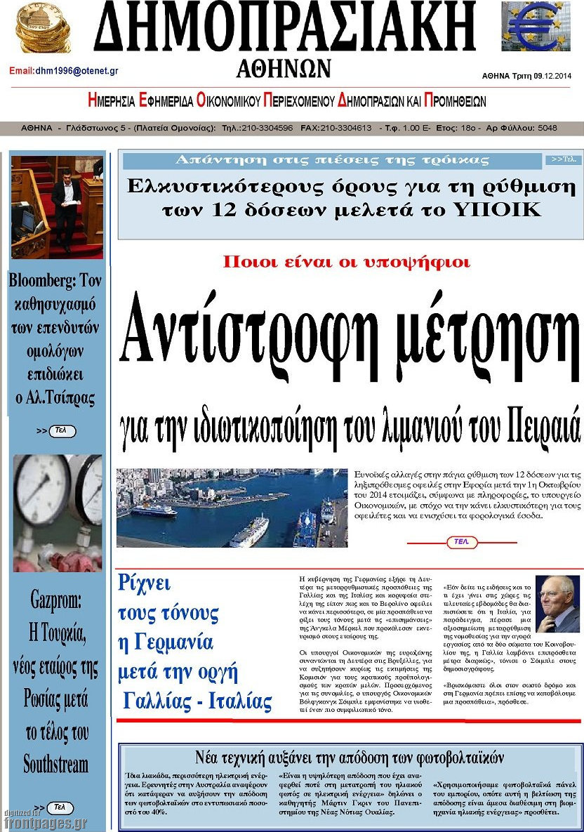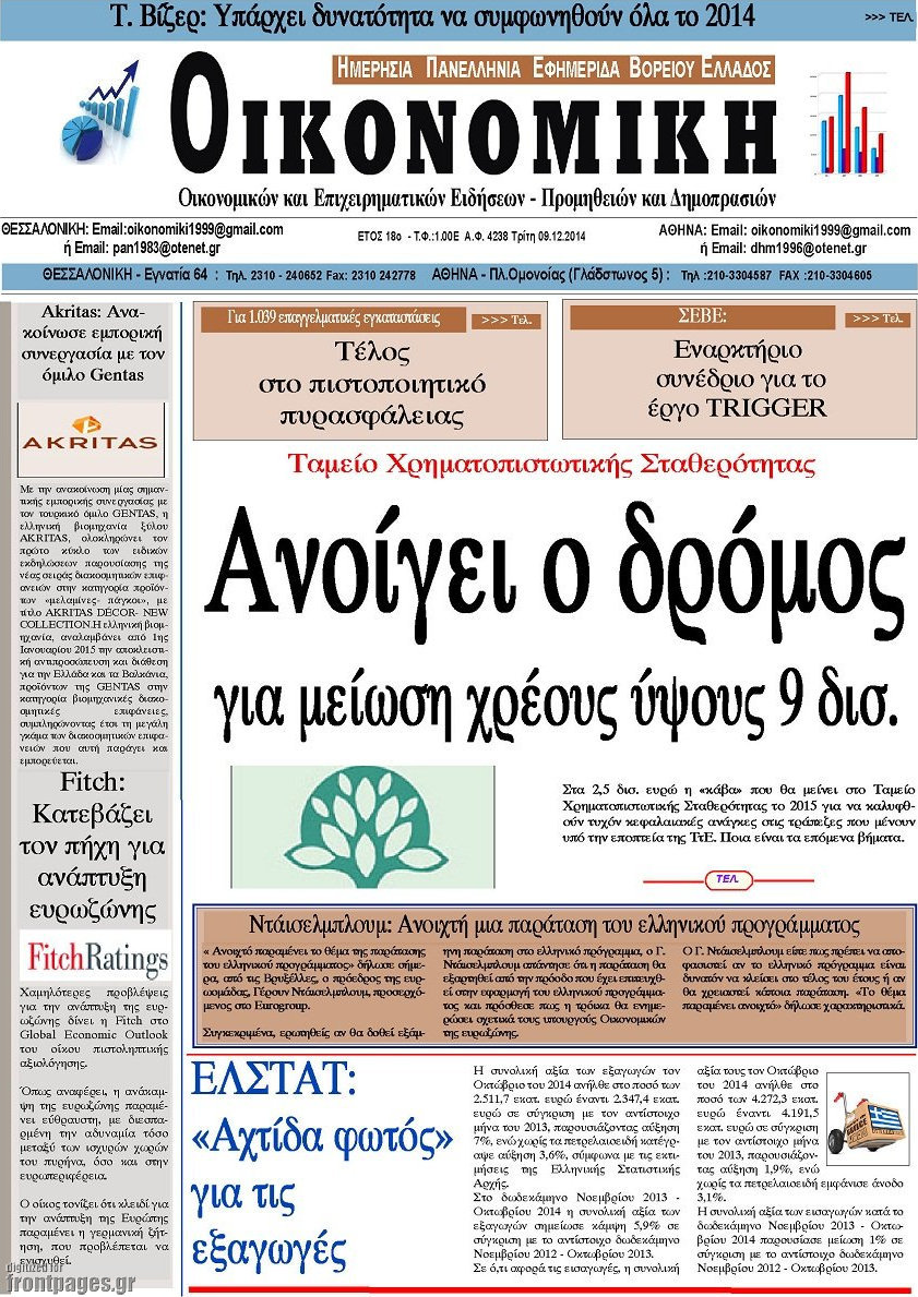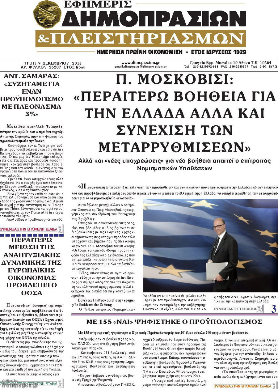 Οι οικονομικές εφημερίδες Enikos Newsroom 07:36, Τρίτη 09 Δεκεμβρίου 2014 Media Οι οικονομικές εφημερίδες Διαβάστε τα πρωτοσέλιδα των οικονομικών εφημερίδων: ΟΙΚΟΝΟΜΙΚΕΣ ΕΦΗΜΕΡΙΔΕΣ ΠΡΩΤΟΣΕΛΙΔΑ Μοιράσου το: σχολίασε κι εσύ (0 σχόλια) Ακολουθήστε το enikos.gr στο Google News και μάθετε πρώτοι όλες τις ειδήσεις Δείτε όλες τις τελευταίες ειδήσεις από την Ελλάδα και τον Κόσμο στο enikos.gr Ειδήσεις Ροή Ειδήσεων 2 ώρες πριν Νέα Πέραμος: Πού στρέφονται οι έρευνες των αρχών για το άγριο έγκλημα με θύμα τον 27χρονο επιχειρηματία – «Δεν είχε πειράξει κανέναν» λένε οι γονείς του 3 ώρες πριν Μητσοτάκης για τη συνταγματική αναθεώρηση: «Φιλοδοξία μου είναι το 2030 να έχουμε κλείσει όλες τις εκκρεμότητες με το πελατειακό κράτος» 2 ώρες πριν Εξαφάνιση Λόρας: Ο πατέρας της ήταν αυτός που αποκάλυψε ότι ταξίδεψε στη Γερμανία – Το πρόσωπο-«κλειδί», η νέα μαρτυρία και οι «στοχευμένες» κινήσεις της ανήλικης 5 ώρες πριν Δημοσκόπηση Alco: Στις 13 μονάδες η διαφορά ΝΔ-ΠΑΣΟΚ – Πώς αξιολογούν οι πολίτες τις νέες πολιτικές κινήσεις; 2 ώρες πριν The Washington Post: Τι έχουμε μάθει ως τώρα από τα νέα στοιχεία στην υπόθεση Επστάιν – «Η αλήθεια να φτάσει στο κόκκαλο» 4 ώρες πριν Ποιος είναι ο έρωτας της ζωή σας; Ανακαλύψτε την αδελφή-ψυχή σας με βάση τον μήνα γέννησή σας 6 ώρες πριν Λευκές περσίδες ξανά: Η απλή μέθοδος για να εξαφανίσετε την κιτρινίλα χωρίς τρίψιμο 3 ώρες πριν Ύπνος: Η βραδινή ρουτίνα που εγγυάται 8 ώρες ξεκούρασης, σύμφωνα με ειδικό 2 ώρες πριν Ανακαλύφθηκε σπάνιο ψηφιδωτό από τη Βίλα των Αμαζόνων σε αρχαία ελληνιστική πόλη – Η εικονογραφία του Νείλου και η μυστηριώδης σκηνή με το άρμα 1 λεπτό πριν Αντώνης Ρέμος: Αποκάλυψε την περιπέτεια της υγείας της μητέρας του – «Την έχω και εγώ στο νοσοκομείο» 13 λεπτά πριν ΠΑΣΟΚ: Μια τρίτη κυβερνητική ΝΔ ισοδυναμεί με συνέχιση των ανισοτήτων, αποδυνάμωση των θεσμών, σκάνδαλα, αναξιοκρατία και αδιαφάνεια 25 λεπτά πριν Καρίμ Μπενζεμά: Επισημοποιήθηκε η «βόμβα» της μεταγραφής τους στην Αλ Χιλάλ 35 λεπτά πριν Θανάσης Κοντογεώργης: Η συνταγματική αναθεώρηση υπερβαίνει την κομματική σκοπιμότητα 56 λεπτά πριν Βρεφικό γάλα και πάνες: Δυσβάσταχτο το κόστος για τους νέους γονείς – Ανέρχεται σε εκατοντάδες ευρώ το μήνα ENIKOS NETWORK 5 πράγματα που κάνουν μαζί τα ευτυχισμένα ζευγάρια Δύο παιδιά με γρίπη στις ΜΕΘ – Συνεχίζεται η απειλή των εποχικών λοιμώξεων Επιθεώρηση Εργασίας: Αυξήθηκαν κατά 4% οι έλεγχοι το 2025 – Στα 53,4 εκατ. ευρώ τα πρόστιμα Τα ξενοδοχεία κατέθεσαν αγωγή κατά της Booking για παράνομες ρήτρες Ευπάθεια στο moltbook ai αποκαλύπτει email, tokens σύνδεσης και api keys Αυτός είναι ο ρόλος της μικρής τρύπας στους νυχοκόπτες – «Είμαι ο μόνος που δεν το ήξερε;»» περισσότερα 18:18 , Δευτέρα 02 Φεβρουαρίου 2026 Άγιος Έρωτας: Η μικρή Ελευθερία δεν θέλει τους νέους της γονείς και η Χλόη καταφεύγει στον πατέρα Νικόλαο Όσα θα δούμε απόψε στο νέο επεισόδιο της σειράς “Άγιος Έρωτας” στις 22:00 στον Alp... 18:07 , Δευτέρα 02 Φεβρουαρίου 2026 MasterChef 10: Το πρώτο Mystery Box έχει την παιχνιδιάρικη υπογραφή του Πάνου Ιωαννίδη Μετά τις πρώτες εβδομάδες και τις διαδικασίες, που προηγήθηκαν, 14 διαγωνιζόμενοι της πρώτης μ... 17:45 , Δευτέρα 02 Φεβρουαρίου 2026 Grand Hotel: Ο Πέτρος και η Αλίκη είναι και πάλι μαζί Καταιγιστικές οι εξελίξεις στο νέο διπλό επεισόδιο της σειράς “Grand Hotel” στις 2... 17:15 , Δευτέρα 02 Φεβρουαρίου 2026 Να μ’ αγαπάς: Η Φωτεινή ανακοινώνει στη Ζωή πως είναι έγκυος, απόψε στις 20:00, με διπλό επεισόδιο Ο Θεόφιλος λαμβάνε
