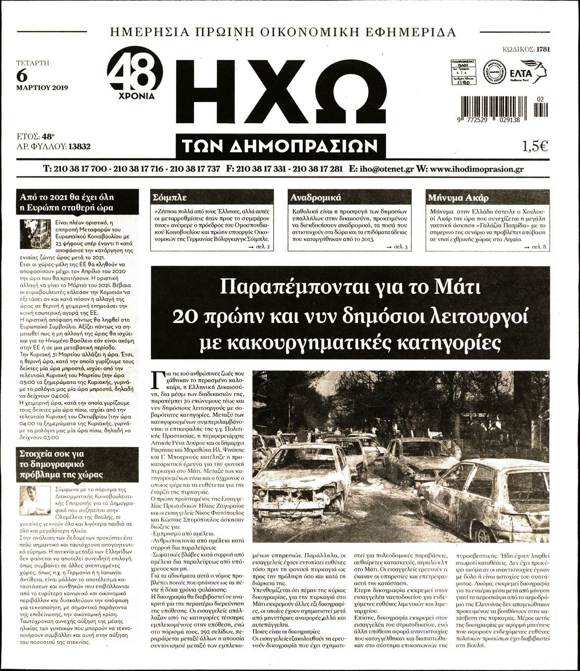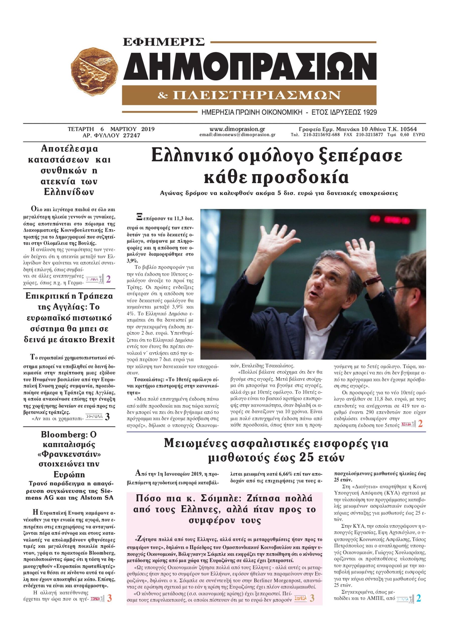 Οι οικονομικές εφημερίδες 6/3/19 Enikos Newsroom 06:47, Τετάρτη 06 Μαρτίου 2019 Media Διαβάστε τα πρωτοσέλιδα των οικονομικών εφημερίδων: ΟΙΚΟΝΟΜΙΚΕΣ ΕΦΗΜΕΡΙΔΕΣ ΠΡΩΤΟΣΕΛΙΔΑ Μοιράσου το: σχολίασε κι εσύ (0 σχόλια) Ακολουθήστε το enikos.gr στο Google News και μάθετε πρώτοι όλες τις ειδήσεις Δείτε όλες τις τελευταίες ειδήσεις από την Ελλάδα και τον Κόσμο στο enikos.gr Ειδήσεις Ροή Ειδήσεων 45 λεπτά πριν Ευρωπαϊκή Ένωση: Χωρίς συμφωνία, για την μακροπρόθεσμη χρηματοδότηση της Ουκρανίας, ολοκληρώθηκε η Σύνοδος Κορυφής στις Βρυξέλλες 4 ώρες πριν ΟΠΕΚΕΠΕ: Προφυλακιστέος ο φερόμενος αρχηγός και ο λογιστής της εγκληματικής οργάνωσης 5 ώρες πριν Αυξάνουν την πίεση προς την κυβέρνηση οι αγρότες: Κλείνουν παρακαμπτήριους και ανοίγουν διόδια – Τι θα γίνει τις γιορτές 5 ώρες πριν Φοινικούντα: Το Σάββατο απολογείται ο 30χρονος γιος γνωστού επιχειρηματία της Πλάκας που παραδόθηκε – Όσα είπε στους αστυνομικούς και ο ρόλος του στο έγκλημα 4 ώρες πριν ΑΕΚ – Κραϊόβα 3-2: Επική ανατροπή και πρόκριση στους «16» του Conference League η Ένωση 5 ώρες πριν Αρχαιολόγοι ανακάλυψαν ρωμαϊκά τεχνουργήματα από μια πόλη που δεν υπήρξε ποτέ – Τα τρία εντυπωσιακά κτίρια και ο αμφορέας με τις… σαρδέλες 6 ώρες πριν Ύπνος: Η απλή βραδινή ρουτίνα για να προστατεύσετε τα μαλλιά σας από το κρύο κατά τη διάρκεια του χειμώνα 7 ώρες πριν Manifesting: Πώς να συναντήσετε τον σύντροφο της ζωής σας, ανάλογα με τον μήνα γέννησής σας 2 ημέρες πριν 20 χρόνια τα Χριστούγεννα ξεκινούν στα Public με μεγάλη ποικιλία σε δώρα! 41 δευτερόλεπτα πριν Στη Φλόριντα σήμερα οι διαβουλεύσεις σχετικά με τα επόμενα στάδια για τη Λωρίδα της Γάζας 5 λεπτά πριν Σίσσυ Τουμάση: «Είμαι ασθενοφοβική πάρα πολύ και με πιάνει μια παράνοια μ’ αυτό» 29 λεπτά πριν Ντόναλντ Τραμπ: Δεν χρειάζομαι την έγκριση του Κογκρέσου για να διατάξω στρατιωτικά πλήγματα στη Βενεζουέλα 45 λεπτά πριν Ευρωπαϊκή Ένωση: Χωρίς συμφωνία, για την μακροπρόθεσμη χρηματοδότηση της Ουκρανίας, ολοκληρώθηκε η Σύνοδος Κορυφής στις Βρυξέλλες 1 ώρα πριν GNTM: «Κλείδωσαν» οι τέσσερις φιναλίστ – Μεγάλη ανατροπή στις τελευταίες αποχωρήσεις ENIKOS NETWORK Σε περίοδο αυξημένης δραστηριότητας η γρίπη στην Ελλάδα-Μέτρα προστασίας από τον ΕΟΔΥ Σκέφτεστε συνέχεια συζητήσεις που έχετε κάνει; Τι σημαίνει αυτό, σύμφωνα με ειδικό Στεγαστικό: Τι λέει η ΠΟΜΙΔΑ για τα νέα μέτρα που ανακοίνωσε ο Κυριάκος Μητσοτάκης Λαγκάρντ: Αισιόδοξη για την ανάπτυξη της Ευρωζώνης, αβέβαιη για τον πληθωρισμό Χαρτογραφώντας το «σημείο χωρίς επιστροφή»: Για πρώτη φορά αποκαλύπτεται με λεπτομέρεια το ακανθώδες όριο της ατμόσφαιρας τ... Η Google καταργεί τη λειτουργία «dark web report» – Πώς θα μπορούν οι χρήστες να διαγράφουν τα δεδομένα τους περισσότερα 02:50 , Παρασκευή 19 Δεκεμβρίου 2025 GNTM: «Κλείδωσαν» οι τέσσερις φιναλίστ – Μεγάλη ανατροπή στις τελευταίες αποχωρήσεις Για προτελευταία φορά εμφανίστηκαν στο πλατό του GNTM οι φιναλίστ του φετινού κύκλου, το βράδυ... 17:45 , Πέμπτη 18 Δεκεμβρίου 2025 ROUK ZOUK: Εορταστικό επεισόδιο με καλεσμένους τους πρωταγωνιστές του «Γιατί ρε πατέρα» Το Σάββατο 20 Δεκεμβρίου στις 21:00, η Ζέτα Μακρυπούλια υποδέχεται εκλεκτούς ηθοποιούς που όλο... 17:20 , Πέμπτη 18 Δεκεμβρίου 2025 Άγιος έρωτας: Η Χριστίνα εξομολογείται στον πατέρα Νικόλαο, απόψε στις 21:00 στον Alpha Η Νότα αποφασίζει να εκδικηθεί τον Πέτρο και τον Στέφανο, για χάρη του Λούη, όμως τα πράγματα ... 16:50 , Πέμπτη 18 Δεκεμβρίου 2025 Να μ’ αγαπάς: Ζωή και Φωτεινή συμφιλιώνονται ως μάνα