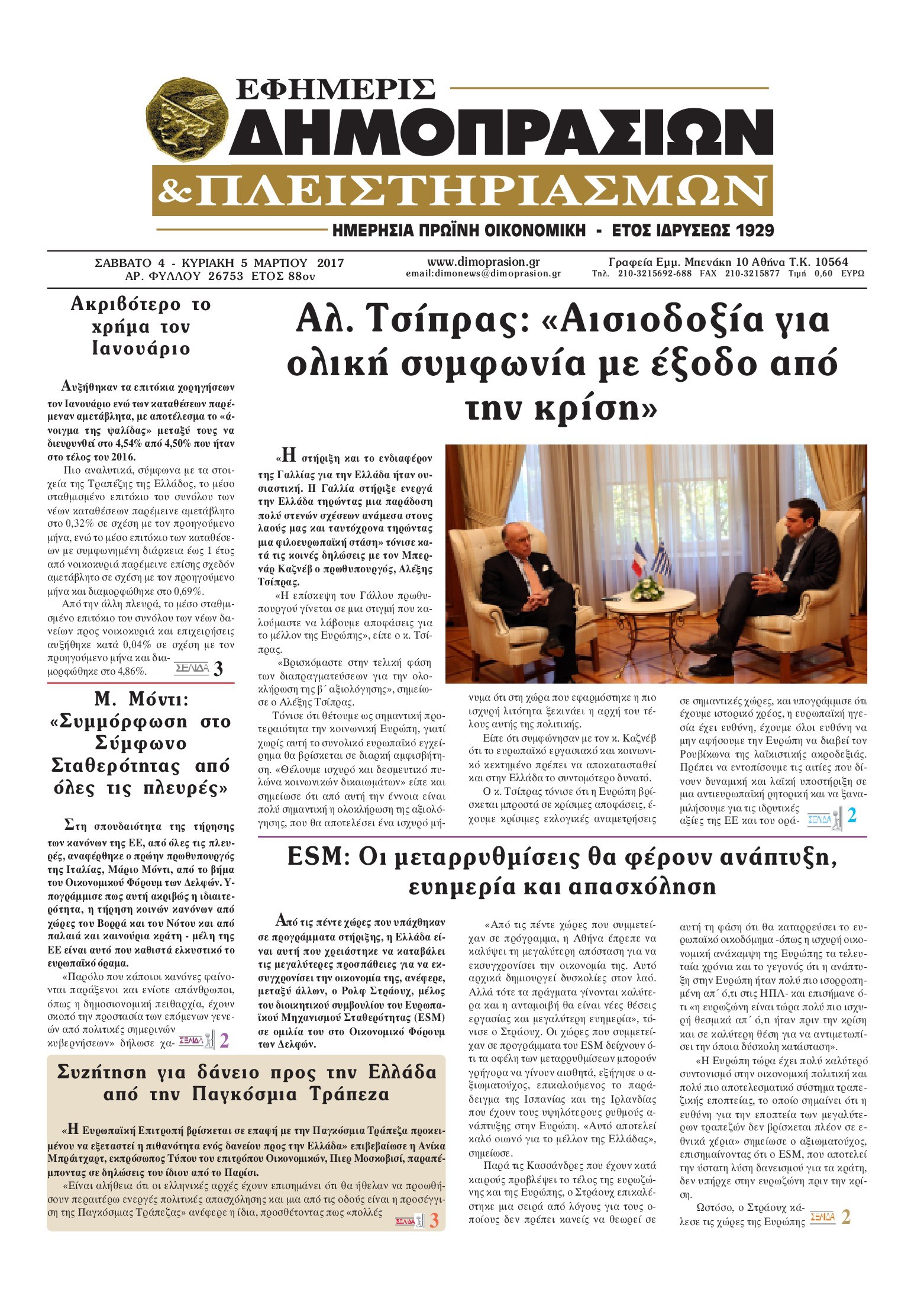 Οι οικονομικές εφημερίδες 6/3/2017