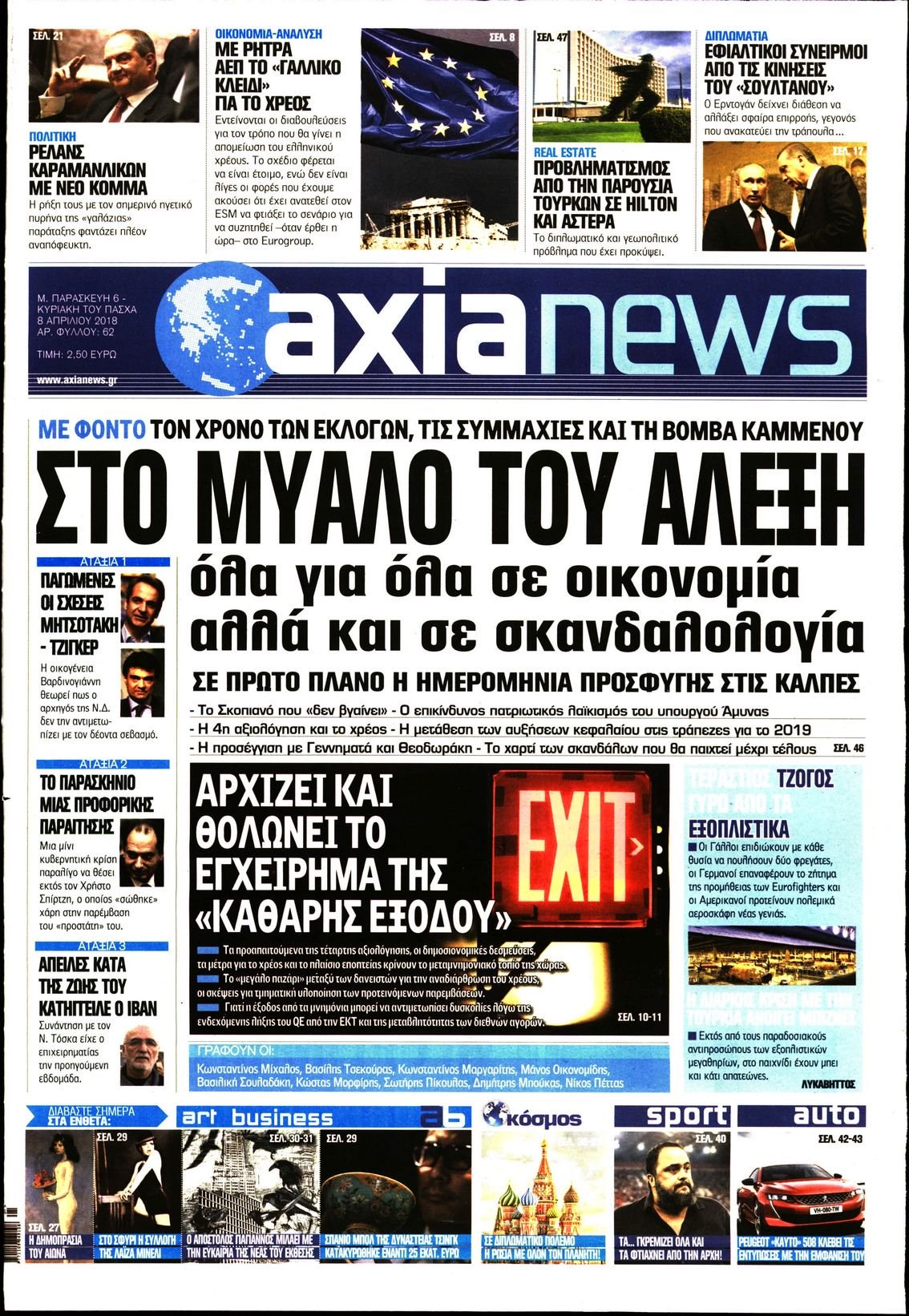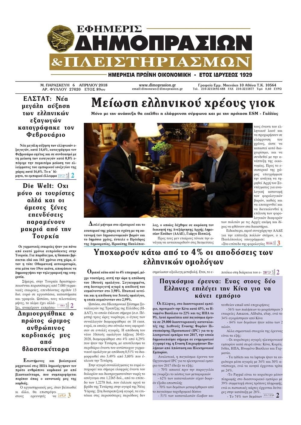 Οι οικονομικές εφημερίδες 6/4/2018 Κώστας Τεό 06:55, Παρασκευή 06 Απριλίου 2018 Media Διαβάστε τα σημερινά πρωτοσέλιδα των οικονομικών εφημερίδων: ΟΙΚΟΝΟΜΙΚΕΣ ΕΦΗΜΕΡΙΔΕΣ ΠΡΩΤΟΣΕΛΙΔΑ Μοιράσου το: σχολίασε κι εσύ (0 σχόλια) Ακολουθήστε το enikos.gr στο Google News και μάθετε πρώτοι όλες τις ειδήσεις Δείτε όλες τις τελευταίες ειδήσεις από την Ελλάδα και τον Κόσμο στο enikos.gr Ειδήσεις Ροή Ειδήσεων 20 λεπτά πριν Αγρότες: «Όχι στον διάλογο, μας εμπαίζει η κυβέρνηση» – Αποφάσισαν κλιμάκωση των κινητοποιήσεων 48 λεπτά πριν Την πρώτη Belharra παρέλαβε η χώρα μας, υψώθηκε η ελληνική σημαία στη φρεγάτα «Κίμων» – Δένδιας: «Το ισχυρότερο Πολεμικό Ναυτικό που είχε ποτέ ο ελληνισμός» 3 ώρες πριν Γιώργος Μαζωνάκης: «Δεν ζήτησα χρήματα, παρά μόνο ηθική δικαίωση» – Οι πρώτες δηλώσεις του 21χρονου μετά την κατάθεση της μήνυσης 2 ώρες πριν Δίκη Βαλυράκη: Καταθέτει ο βασικός αυτόπτης μάρτυρας – «Δέχτηκα πιέσεις να μη μιλήσω, πήγα να ψωνίσω και αυτοκίνητο με χτύπησε στο πόδι» 7 ώρες πριν Συναγερμός και στην Ελλάδα για τη «σούπερ γρίπη»: Πόσο σοβαρή είναι και ποιοι θεωρούνται πιο ευάλωτοι – 3 ειδικοί μιλούν στο enikos.gr 1 ώρα πριν Τα 5 ζώδια που θα ευνοηθούν στα οικονομικά τους το 2026 – «Τραβούν το χρήμα σαν μαγνήτες» 6 ώρες πριν Αν κάνετε συνεχώς αυτά τα 8 πράγματα με τα κατοικίδιά σας, σας λείπει η ανθρώπινη επαφή 2 ώρες πριν Αυτό που κρύβεται κάτω από τη Γροιλανδία θα μπορούσε να ανατρέψει όσα γνωρίζουμε για την άνοδο της στάθμης των θαλασσών 1 ημέρα πριν 20 χρόνια τα Χριστούγεννα ξεκινούν στα Public με μεγάλη ποικιλία σε δώρα! 5 λεπτά πριν Μιχάλης Χουρδάκης: «Είμαι διαθέσιμος να συμβάλω στην προσωρινή κάλυψη του ιατρείου της Ψερίμου» – Η επιστολή στον Άδωνι Γεωργιάδη 9 λεπτά πριν Κουίζ για την παλιά Αθήνα: Αναγνωρίζετε την περιοχή; Είναι από τις πιο γνωστές 15 λεπτά πριν Λάμπρος Κωνσταντάρας για τα φετινά Χριστούγεννα: «Θα είναι πάρα πολύ δύσκολα, γιατί θα είναι τα πρώτα χωρίς τον πατέρα μου» 20 λεπτά πριν Αγρότες: «Όχι στον διάλογο, μας εμπαίζει η κυβέρνηση» – Αποφάσισαν κλιμάκωση των κινητοποιήσεων 23 λεπτά πριν Να μ’ αγαπάς: Ζωή και Φωτεινή συμφιλιώνονται ως μάνα με κόρη, απόψε στις 20:00 ENIKOS NETWORK 100 χρόνια ΠΙΣ: Ένας αιώνας προσφοράς στην Ιατρική και την κοινωνία Ένα ποτήρι την ημέρα από αυτόν τον χυμό μειώνει τη χοληστερίνη, τη φλεγμονή και την πίεση Κρατική επιχορήγηση έως 14.500 ευρώ: Ποιοι θα λάβουν από σήμερα την προκαταβολή στον τραπεζικό λογαριασμό τους Αυτόματη απόδοση ΦΠΑ: Τα δύο σενάρια που επεξεργάζεται η ΑΑΔΕ Χαρτογραφώντας το «σημείο χωρίς επιστροφή»: Για πρώτη φορά αποκαλύπτεται με λεπτομέρεια το ακανθώδες όριο της ατμόσφαιρας τ... Η Google καταργεί τη λειτουργία «dark web report» – Πώς θα μπορούν οι χρήστες να διαγράφουν τα δεδομένα τους περισσότερα 16:50 , Πέμπτη 18 Δεκεμβρίου 2025 Να μ’ αγαπάς: Ζωή και Φωτεινή συμφιλιώνονται ως μάνα με κόρη, απόψε στις 20:00 Η ταυτότητα του Άγγελου αποκαλύπτεται στο νέο επεισόδιο της σειράς “Να μ’ αγαπάς... 15:52 , Πέμπτη 18 Δεκεμβρίου 2025 Το Σπίτι Δίπλα Στο Ποτάμι: Το καθηλωτικό τελευταίο επεισόδιο για το 2025 απόψε στις 22:30 Καθηλώνει το σημερινό επεισόδιο της σειράς “Το Σπίτι Δίπλα Στο Ποτάμι” που έρχεται... 15:20 , Πέμπτη 18 Δεκεμβρίου 2025 Άγιος έρωτας – Η Ελευθερία Αρβανιτάκη τραγουδά και ο Γιάννης Τσορτέκης καθηλώνει με τον χορό του Ο Κλεάνθης χορεύει στους ήχους της Ελευθερίας Αρβανιτάκη στη σειρά “Άγιος Έρωτας“.... 08:00 , Πέμπτη 18 Δεκεμβρίου 2025 Την Κυριακή με τη Realnews: Δωροεπ
