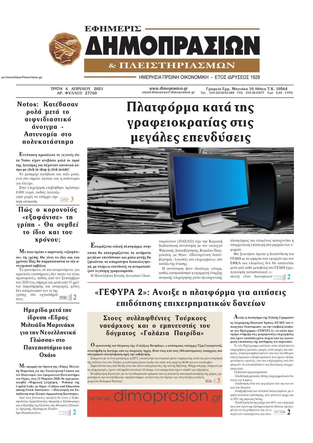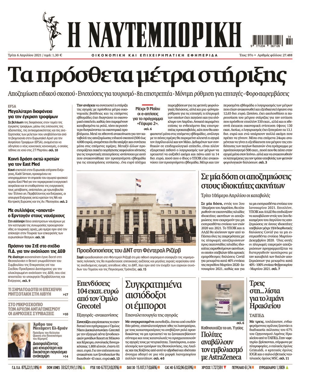 Οι οικονομικές εφημερίδες 6/4/2021 Σήφης Γαρυφαλάκης 06:11, Τρίτη 06 Απριλίου 2021 Media Διαβάστε τα πρωτοσέλιδα των οικονομικών εφημερίδων… ΕΦΗΜΕΡΙΔΕΣ ΟΙΚΟΝΟΜΙΚΕΣ ΕΦΗΜΕΡΙΔΕΣ ΠΡΩΤΟΣΕΛΙΔΑ ΠΡΩΤΟΣΕΛΙΔΑ ΕΦΗΜΕΡΙΔΩΝ Μοιράσου το: σχολίασε κι εσύ (0 σχόλια) Ακολουθήστε το enikos.gr στο Google News και μάθετε πρώτοι όλες τις ειδήσεις Δείτε όλες τις τελευταίες ειδήσεις από την Ελλάδα και τον Κόσμο στο enikos.gr Ειδήσεις Ροή Ειδήσεων 8 ώρες πριν Μητσοτάκης: Αναγκαία η μεταρρύθμιση του πρωτογενούς τομέα – Τα 6 νέα μέτρα για το στεγαστικό και οι αναφορές σε «Ιθάκη» και «πολιτικούς του καναπέ» 7 ώρες πριν Δάνεια σε ελβετικό φράγκο: Τα βασικά σημεία της ρύθμισης – ανάσας για 40.000 δανειολήπτες – Αναλυτικός οδηγός με ερωτήσεις και απαντήσεις 6 ώρες πριν Κυψέλη: Εξιτήριο πήρε η 14χρονη μαθήτρια που μαχαιρώθηκε από την 16χρονη σε σχολείο – «Θέλω να βοηθήσω το παιδί, έχει μπλέξει με κακές παρέες» 6 ώρες πριν Τραμπ: Γιατί κατέθεσε τώρα την αγωγή κατά του BBC – Πώς η κίνησή του εξυπηρετεί το νέο δόγμα του για «αντίσταση» στην Ευρώπη, υπέρ των συντηρητικών 7 ώρες πριν ΟΠΕΚΕΠΕ – Παράνομες επιδοτήσεις: Ελεύθεροι με περιοριστικούς όρους και οι 7 κατηγορούμενοι που απολογήθηκαν σήμερα 6 ώρες πριν Ανακαλύφθηκε βυθισμένη πέτρινη κατασκευή ανοιχτά της Κριμαίας – Αποτελεί μέρος αρχαίας ελληνικής αποικίας 7 ώρες πριν Ύπνος: Αυτό μπορεί να είναι το χειρότερο λάθος για το βιολογικό ρολόι σας, σύμφωνα με ειδικό 8 ώρες πριν Αριθμολογία: Οι άνθρωποι που έχουν γεννηθεί αυτές τις 3 ημερομηνίες, προσελκύουν μεγάλη τύχη πριν από το τέλος του 2025 10 ώρες πριν Οι 7 συμπεριφορές που μαρτυρούν ότι ένας άνδρας επενδύει μακροπρόθεσμα σε μια σχέση 4 λεπτά πριν Κολομβία: Νεκροί τέσσερις αστυνομικοί σε βομβιστικές επιθέσεις ανταρτών 12 λεπτά πριν Στάση εργασίας 11:00 – 17:00 σήμερα στα λεωφορεία του ΟΑΣΑ – Ποιες γραμμές θα λειτουργήσουν 28 λεπτά πριν Παλαιστινιακό: «Η λύση των δύο κρατών είναι ο μόνος βιώσιμος δρόμος», τόνισε η Ελλάδα στο Συμβούλιο Ασφαλείας του ΟΗΕ 35 λεπτά πριν Ελένη Καρακάση: «Ένιωθα πολύ αδικημένη, δεν μπορούσα να ελέγξω τον εαυτό μου σε δύσκολες στιγμές» 43 λεπτά πριν Κλαούδια Σέινμπαουμ προς Ντόναλντ Τραμπ για φαιντανύλη: Να επιτεθούμε στα αίτια κατανάλωσης αντί να την κατατάσσουμε στα «όπλα μαζικής καταστροφής» ENIKOS NETWORK Αίτημα ΙΣΑ για την εξαίρεση των προσωπικών γιατρών από τις κατ’ οίκον επισκέψεις Η σκανδιναβική μέθοδος στον ύπνο που μπορεί να σώσει έναν γάμο Πιερρακάκης: Ο προϋπολογισμός συμβάλλει ουσιαστικά στην ενίσχυση της αγοραστικής δύναμης της πλειονότητας των εργαζομένων e-ΕΦΚΑ: Παρατείνεται η προθεσμία για την υποβολή ΑΠΔ – Ποιους αφορά Σύγχρονος Νοστράδαμος: Προειδοποιεί για «μεγάλο γεγονός» τους επόμενους μήνες που θα συγκλονίσει τη Βρετανία και τον κόσμο Τεστ παρατηρητικότητας: Μπορείτε να βρείτε τις 3 διαφορές στις εικόνες με έναν πιγκουίνο σε 14 δευτερόλεπτα περισσότερα 20:06 , Τρίτη 16 Δεκεμβρίου 2025 Ο ΣΚΑΙ καταγγέλλει τον ΕΚΚΟΜΕΔ Επιστολή με την οποία καταγράφει την έντονη διαμαρτυρία του προς τον διευθύνοντα σύμβουλο του... 17:40 , Τρίτη 16 Δεκεμβρίου 2025 Eurovision: Στις 4 Ιανουαρίου αποκαλύπτονται τα 28 τραγούδια του ελληνικού τελικού Η αγωνία τελειώνει, η γιορτή της Eurovision αρχίζει στην ΕΡΤ από τις πρώτες ημέρες της νέας χρ... 17:09 , Τρίτη 16 Δεκεμβρίου 2025 Alter Ego Media: Βαθύτατη θλίψη και ειλικρινή συλλυπητήρια για την απώλεια της Ειρήνης Μαρινάκη Τη βαθύτατη θλίψη και τα ειλικρινή συλλυπητ