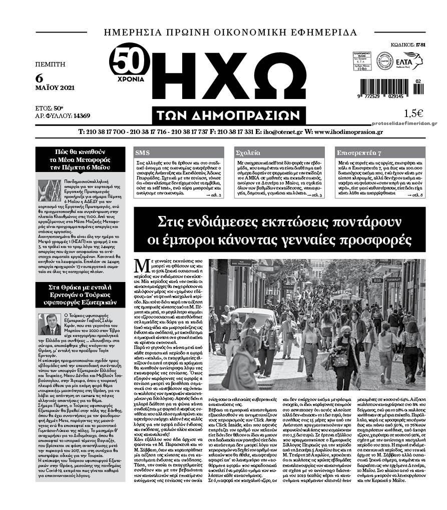 Οι οικονομικές εφημερίδες 6/5/2021 Σήφης Γαρυφαλάκης 06:11, Πέμπτη 06 Μαΐου 2021 Media Διαβάστε τα πρωτοσέλιδα των οικονομικών εφημερίδων… ΕΦΗΜΕΡΙΔΕΣ ΟΙΚΟΝΟΜΙΚΕΣ ΕΦΗΜΕΡΙΔΕΣ ΠΡΩΤΟΣΕΛΙΔΑ ΠΡΩΤΟΣΕΛΙΔΑ ΕΦΗΜΕΡΙΔΩΝ Μοιράσου το: σχολίασε κι εσύ (0 σχόλια) Ακολουθήστε το enikos.gr στο Google News και μάθετε πρώτοι όλες τις ειδήσεις Δείτε όλες τις τελευταίες ειδήσεις από την Ελλάδα και τον Κόσμο στο enikos.gr Ειδήσεις Ροή Ειδήσεων 2 ώρες πριν Αυξάνουν την πίεση προς την κυβέρνηση οι αγρότες: Κλείνουν παρακαμπτήριους και ανοίγουν διόδια – Τι θα γίνει τις γιορτές 33 λεπτά πριν ΟΠΕΚΕΠΕ: Προφυλακιστέος ο φερόμενος αρχηγός και ο λογιστής της εγκληματικής οργάνωσης 2 ώρες πριν Φοινικούντα: Το Σάββατο απολογείται ο 30χρονος γιος γνωστού επιχειρηματία της Πλάκας που παραδόθηκε – Όσα είπε στους αστυνομικούς και ο ρόλος του στο έγκλημα 1 ώρα πριν Μπορεί ο Μαδούρο να αντέξει τον αποκλεισμό του Τραμπ; Τι θα χρειαστεί η Ουάσινγκτον για να τον ανατρέψει 3 ώρες πριν Πρίγκιπας Ουίλιαμ – Κέιτ: Η νέα οικογενειακή φωτογραφία για τις Χριστουγεννιάτικες κάρτες του 2025 2 ώρες πριν Ύπνος: Η απλή βραδινή ρουτίνα για να προστατεύσετε τα μαλλιά σας από το κρύο κατά τη διάρκεια του χειμώνα 3 ώρες πριν Manifesting: Πώς να συναντήσετε τον σύντροφο της ζωής σας, ανάλογα με τον μήνα γέννησής σας 2 ημέρες πριν 20 χρόνια τα Χριστούγεννα ξεκινούν στα Public με μεγάλη ποικιλία σε δώρα! 1 ώρα πριν Αρχαιολόγοι ανακάλυψαν ρωμαϊκά τεχνουργήματα από μια πόλη που δεν υπήρξε ποτέ – Τα τρία εντυπωσιακά κτίρια και ο αμφορέας με τις… σαρδέλες 13 λεπτά πριν ΑΕΚ – Κραϊόβα 3-2: Επική ανατροπή και πρόκριση στους «16» του Conference League η Ένωση 33 λεπτά πριν ΟΠΕΚΕΠΕ: Προφυλακιστέος ο φερόμενος αρχηγός και ο λογιστής της εγκληματικής οργάνωσης 44 λεπτά πριν Αθηνά Μαξίμου: Η τρυφερή ανάρτηση για τα γενέθλια του Αιμίλιου Χειλάκη – «Είναι η εκλεκτική συγγένειά μου, η επιλογή και η ευθύνη μου» 59 λεπτά πριν Παναθηναϊκός – Χάποελ Τελ Αβίβ 93-82: Με… φόρα από την Κωνσταντινούπολη 1 ώρα πριν Μπορεί ο Μαδούρο να αντέξει τον αποκλεισμό του Τραμπ; Τι θα χρειαστεί η Ουάσινγκτον για να τον ανατρέψει ENIKOS NETWORK Σε περίοδο αυξημένης δραστηριότητας η γρίπη στην Ελλάδα-Μέτρα προστασίας από τον ΕΟΔΥ Σκέφτεστε συνέχεια συζητήσεις που έχετε κάνει; Τι σημαίνει αυτό, σύμφωνα με ειδικό Στεγαστικό: Τι λέει η ΠΟΜΙΔΑ για τα νέα μέτρα που ανακοίνωσε ο Κυριάκος Μητσοτάκης Λαγκάρντ: Αισιόδοξη για την ανάπτυξη της Ευρωζώνης, αβέβαιη για τον πληθωρισμό Χαρτογραφώντας το «σημείο χωρίς επιστροφή»: Για πρώτη φορά αποκαλύπτεται με λεπτομέρεια το ακανθώδες όριο της ατμόσφαιρας τ... Η Google καταργεί τη λειτουργία «dark web report» – Πώς θα μπορούν οι χρήστες να διαγράφουν τα δεδομένα τους περισσότερα 17:45 , Πέμπτη 18 Δεκεμβρίου 2025 ROUK ZOUK: Εορταστικό επεισόδιο με καλεσμένους τους πρωταγωνιστές του «Γιατί ρε πατέρα» Το Σάββατο 20 Δεκεμβρίου στις 21:00, η Ζέτα Μακρυπούλια υποδέχεται εκλεκτούς ηθοποιούς που όλο... 17:20 , Πέμπτη 18 Δεκεμβρίου 2025 Άγιος έρωτας: Η Χριστίνα εξομολογείται στον πατέρα Νικόλαο, απόψε στις 21:00 στον Alpha Η Νότα αποφασίζει να εκδικηθεί τον Πέτρο και τον Στέφανο, για χάρη του Λούη, όμως τα πράγματα ... 16:50 , Πέμπτη 18 Δεκεμβρίου 2025 Να μ’ αγαπάς: Ζωή και Φωτεινή συμφιλιώνονται ως μάνα με κόρη, απόψε στις 20:00 Η ταυτότητα του Άγγελου αποκαλύπτεται στο νέο επεισόδιο της σειράς “Να μ’ αγαπάς... 15:52 , Πέμπτη 18 Δεκεμβρίου 2025 Το Σπίτι Δίπλα Στο Ποτάμι: Το καθηλωτικό τελευταίο επεισόδιο για το 2025
