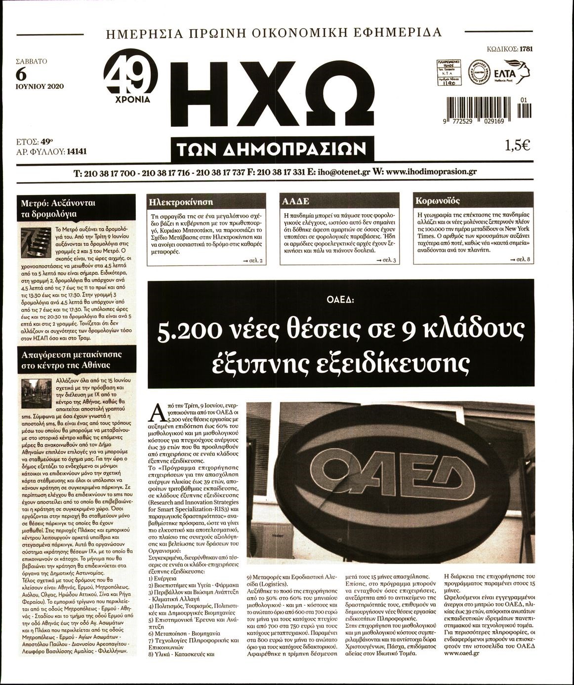 Οι οικονομικές εφημερίδες 6/6/2020 Διονύσης Νίκκας 08:17, Σάββατο 06 Ιουνίου 2020 Media Διαβάστε τα πρωτοσέλιδα των οικονομικών εφημερίδων… ΟΙΚΟΝΟΜΙΚΕΣ ΕΦΗΜΕΡΙΔΕΣ Μοιράσου το: σχολίασε κι εσύ (0 σχόλια) Ακολουθήστε το enikos.gr στο Google News και μάθετε πρώτοι όλες τις ειδήσεις Δείτε όλες τις τελευταίες ειδήσεις από την Ελλάδα και τον Κόσμο στο enikos.gr Ειδήσεις Ροή Ειδήσεων 5 ώρες πριν Χριστούγεννα στα μπλόκα: Επιμένουν στις κινητοποιήσεις τους οι αγρότες – Ανοίγουν τα διόδια το Σαββατοκύριακο 6 ώρες πριν Ουκρανία: Η άνευ προηγουμένου επίθεση σε ρωσικό τάνκερ στη Μεσόγειο και το μήνυμα προς στον Πούτιν – Το «μακρύ χέρι» του Κιέβου 5 ώρες πριν Πούτιν: Τα μηνύματα σε Ευρώπη και ΝΑΤΟ από το μαραθώνιο «σόου» του – Η απαίτηση για «σεβασμό» και η ειρήνη «με τους όρους» της Μόσχας 6 ώρες πριν Τραμπ: Δεν αποκλείει την πιθανότητα ενός πολέμου στη Βενεζουέλα – «Ο Μαδούρο ξέρει καλύτερα από τον καθένα τι ακριβώς θέλω» 7 ώρες πριν Συνεχίζει να προκαλεί ο Μίτσκοσκι: «Για μένα το όνομα Μακεδονία είναι ιερό» 5 ώρες πριν Ανακαλύφθηκαν αρχαία χρυσά νομίσματα 2.200 ετών που απεικονίζουν τον θεό Απόλλωνα – Η άγνωστη σύνδεση με τον Φίλιππο Β΄ της Μακεδονίας 6 ώρες πριν Ύπνος: Μια κρυφή κατάσταση του εγκεφάλου πριν από τον ύπνο μπορεί να είναι το “κλειδί” για υψηλή ευφυΐα και δημιουργικότητα 7 ώρες πριν Αριθμολογία: Οι άνθρωποι που έχουν γεννηθεί αυτές τις 4 ημερομηνίες, συχνά παρεξηγούνται – «Η καλοσύνη τους κρύβει τεράστια δύναμη» 8 ώρες πριν Ξεχάστε το καθάρισμα το Σαββατοκύριακο: Ο «κανόνας των 20 λεπτών» που θα σας λύσει τα χέρια 1 λεπτό πριν Βολιβία: Μαζική διαδηλώσεις εναντίον της κατάργησης των επιδοτήσεων των τιμών των καυσίμων 17 λεπτά πριν Φως στο Τούνελ: Έφτασε η ώρα της αλήθειας για την δολοφονία της χήρας του πρώην υπουργού στο Κολωνάκι 32 λεπτά πριν Ντόναλντ Τραμπ: Προστέθηκε το όνομά του στην πρόσοψη του Κέντρου Κένεντι – Οργισμένη αντίδραση των συγγενών του JFK 47 λεπτά πριν Ταμίλα Κουλίεβα: «Δεν θέλω να είμαι κάποια που πορεύεται συνεχώς με τις ίδιες αναφορές» 1 ώρα πριν Η Ελλάδα προσχωρεί στη Διεθνή Επιτροπή Αποζημιώσεων για την Ουκρανία ENIKOS NETWORK Το ΕΚΑΒ τιμήθηκε από την Ακαδημία Αθηνών για τα 40 χρόνια προσφοράς του Έχετε πραγματικά μεγάλη καρδιά; 10 χαρακτηριστικά όσων έχουν καλοσύνη Αναστολή μέτρων αναγκαστικής εκτέλεσης για κτηνοτρόφους που πλήττονται από την ευλογιά των αιγοπροβάτων Πλήρης επάρκεια προϊόντων στις λαϊκές της Αττικής, παρά τις αγροτικές κινητοποιήσεις – Τι απαντούν οι πωλητές Χαρτογραφώντας το «σημείο χωρίς επιστροφή»: Για πρώτη φορά αποκαλύπτεται με λεπτομέρεια το ακανθώδες όριο της ατμόσφαιρας τ... Η Google καταργεί τη λειτουργία «dark web report» – Πώς θα μπορούν οι χρήστες να διαγράφουν τα δεδομένα τους περισσότερα 02:50 , Σάββατο 20 Δεκεμβρίου 2025 GNTM: Η Ξένια Τσίρκοβα αναδείχθηκε μεγάλη νικήτρια και πήρε τις 50.000 ευρώ – Ποιος βρέθηκε σε απόσταση αναπνοής; Με φαντασμαγορικό τρόπο ολοκληρώθηκε το βράδυ της Παρασκευής ο μεγάλος τελικός του GNTM, μέσα ... 22:42 , Παρασκευή 19 Δεκεμβρίου 2025 Γιώργος Γιαννόπουλος για “Το σόι σου”: “Είναι ευτυχία και ευλογία αυτή η σειρά” «Είναι ευτυχία και ευλογία η συγκυρία αυτής της σειράς», θα πει ο Γιώργος Γιαννόπουλος -ο αγαπ... 20:37 , Παρασκευή 19 Δεκεμβρίου 2025 Don’t Forget The Lyrics: Η Έλλη Κοκκίνου υποδέχεται 4 παίκτες που θα κάνουν τα πάντα για να μη χάσουν ούτε… μισή λέξη από τους στίχους Το «Don’t Forget The Lyrics» επιστρέφει απόψε, Παρασκε